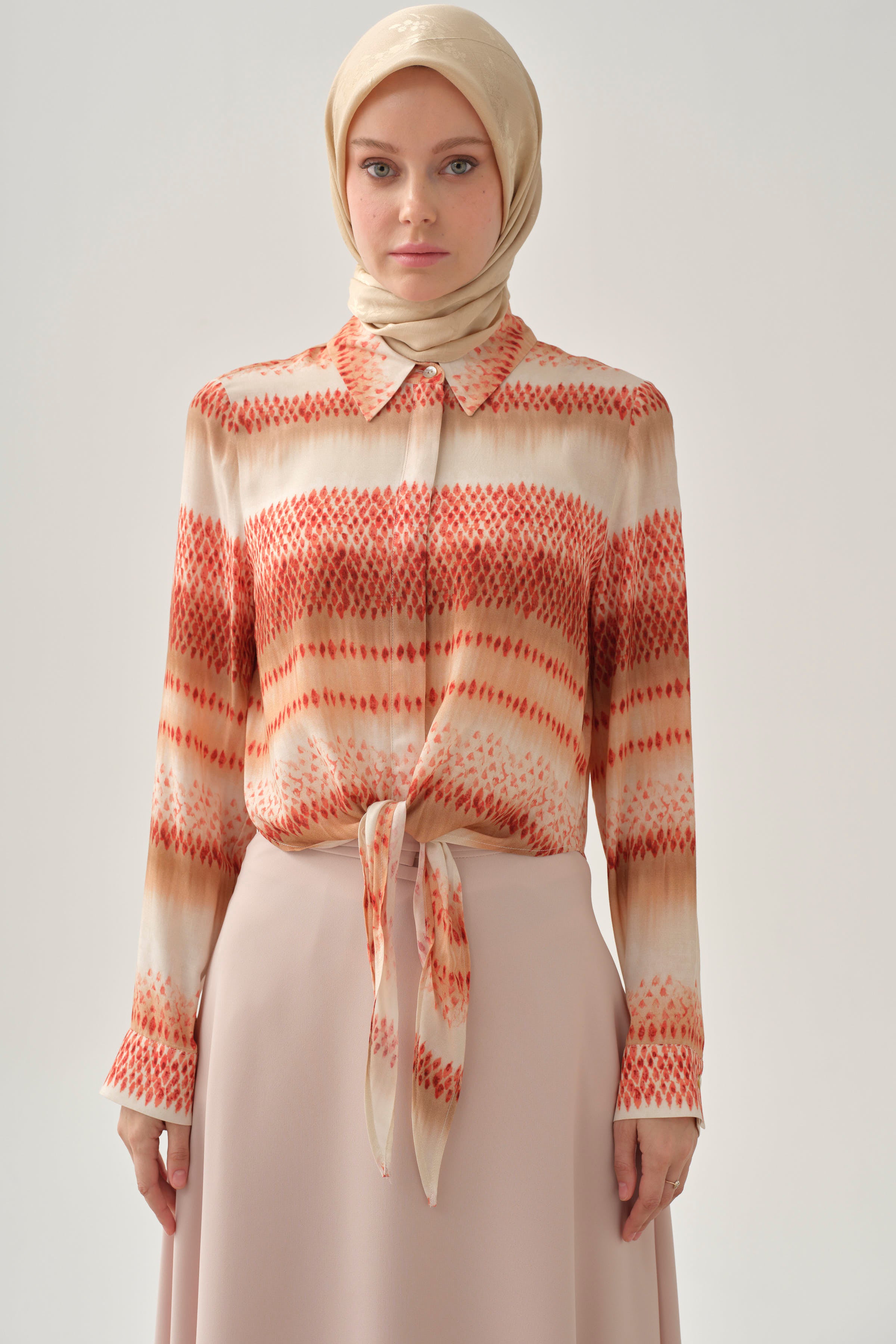 Chemise courte à motif dégradé - Corail
