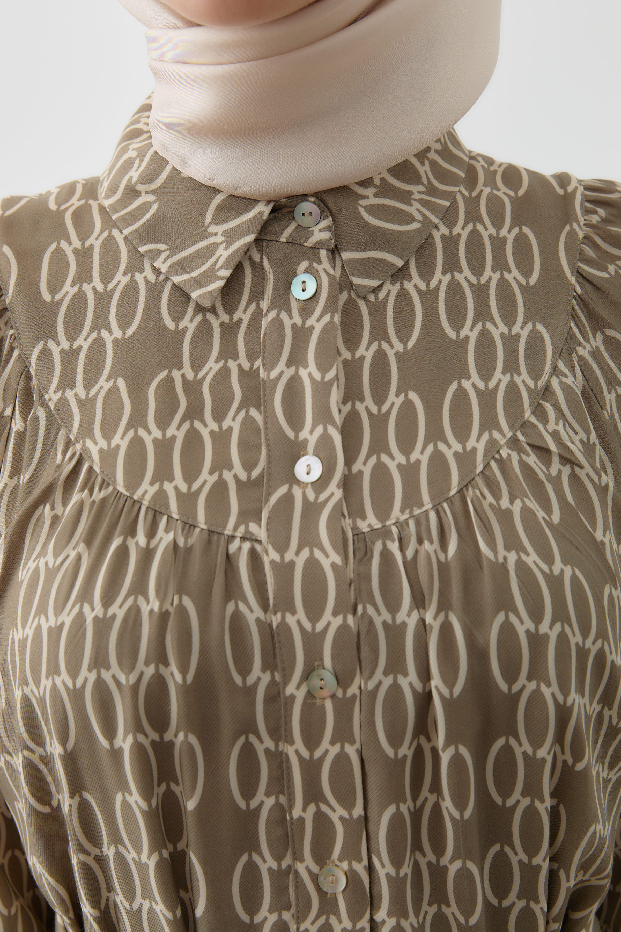 Robe à motif avec fronces et empiècement - Taupe