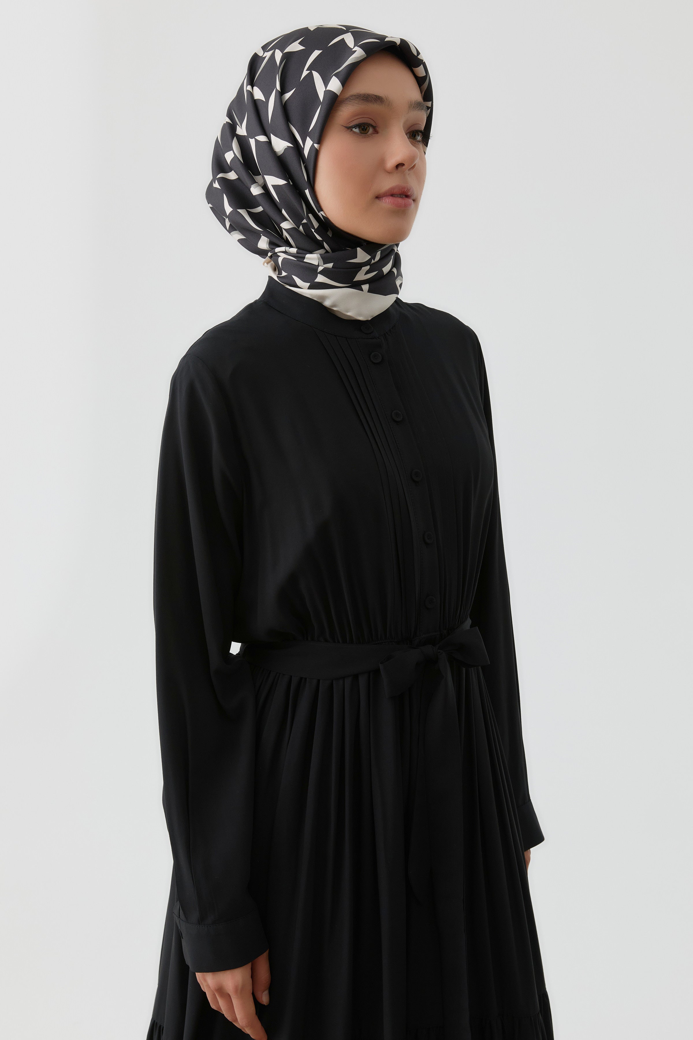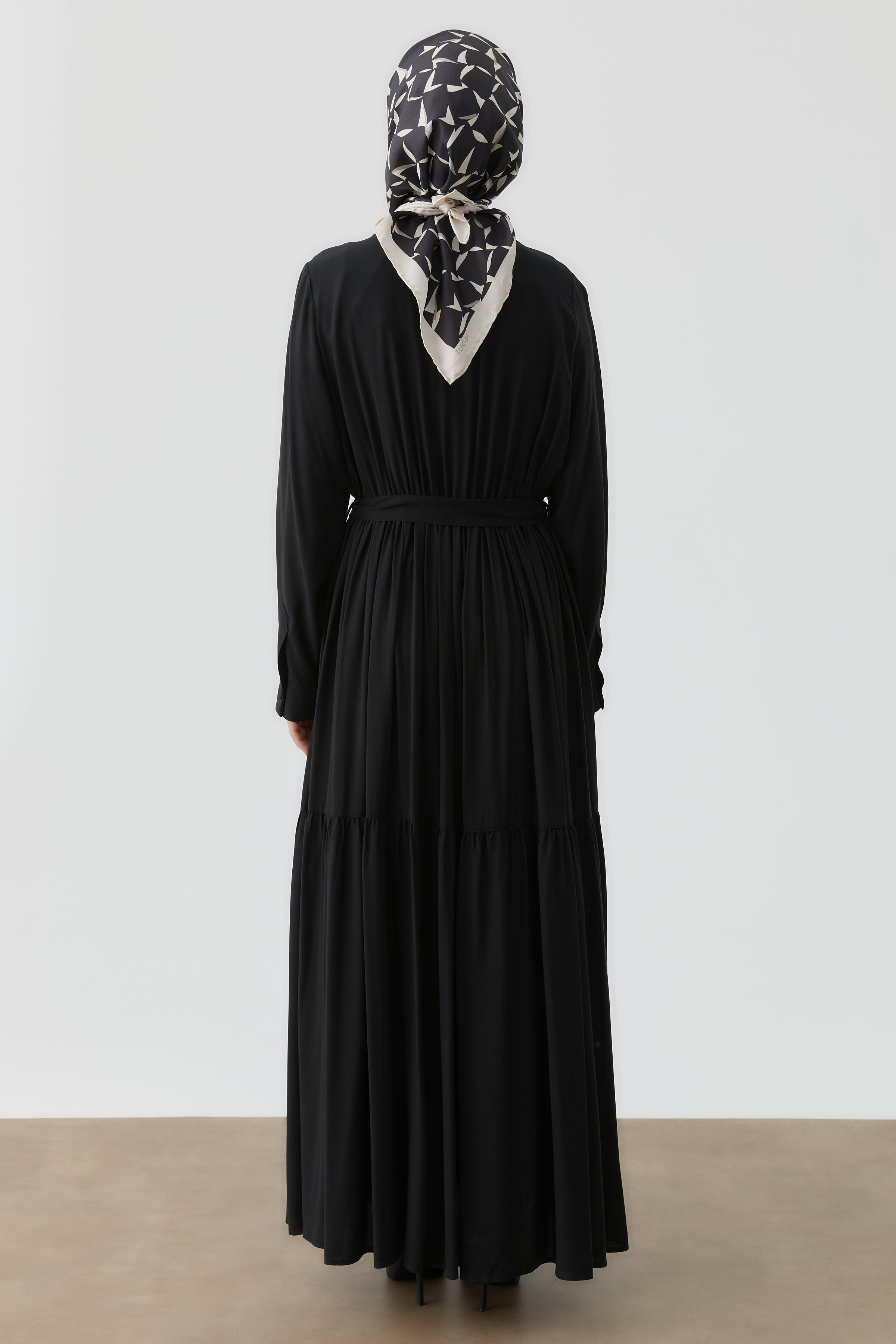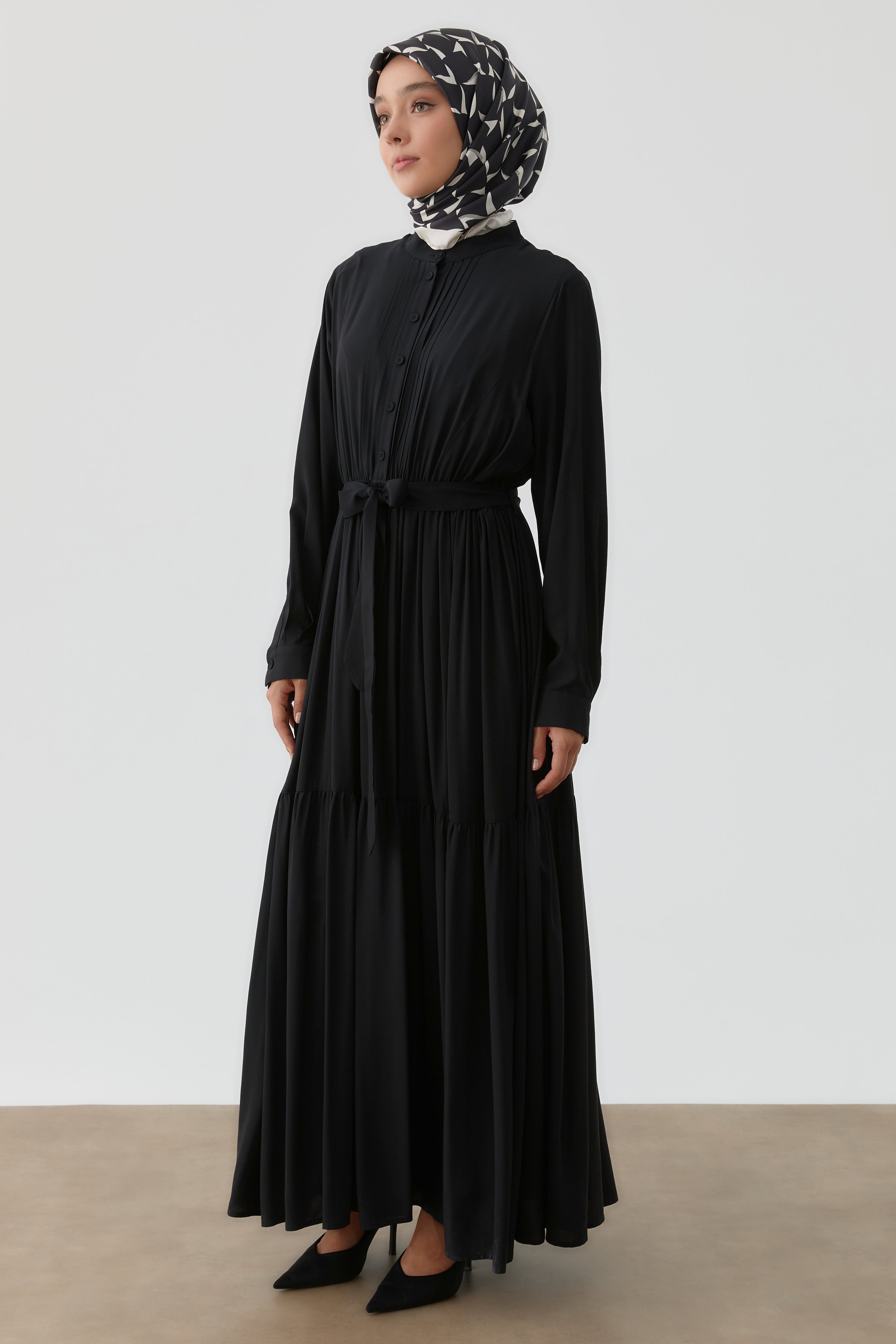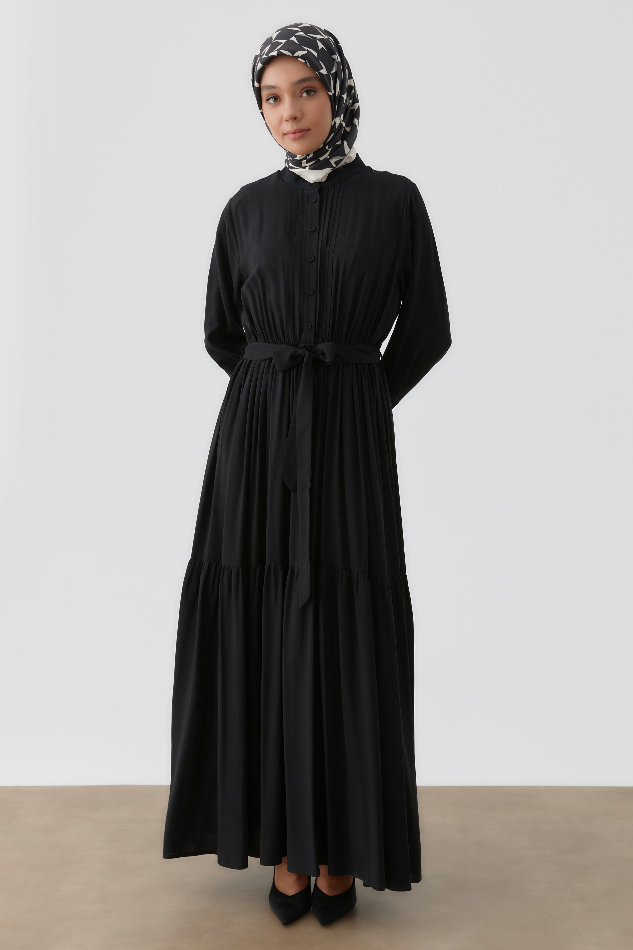 Robe à taille élastiquée avec plis nervurés - Noir