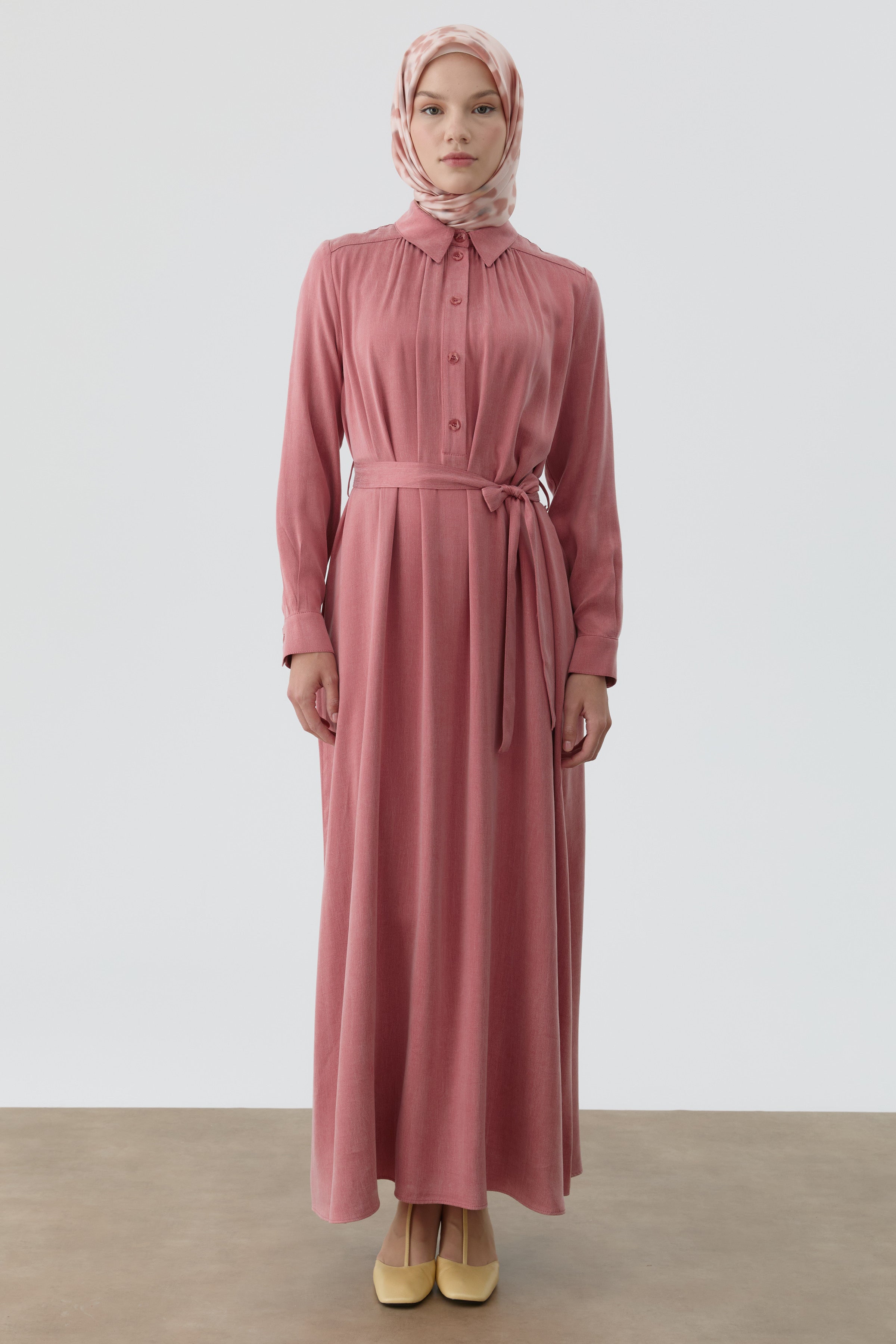 Robe ceinturée avec empiècement - Bois de rose