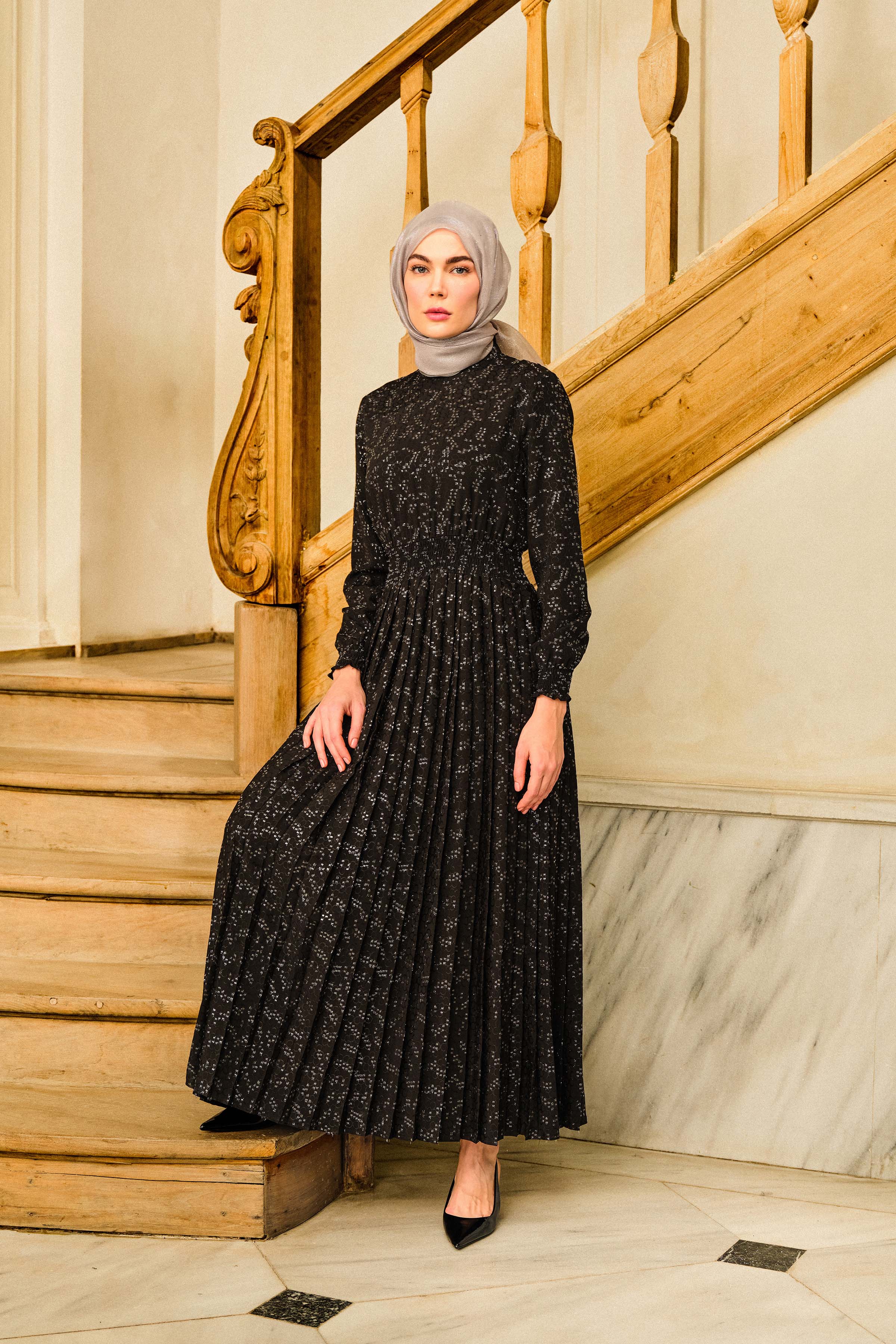 Robe plissée à détails élastiques - Noir