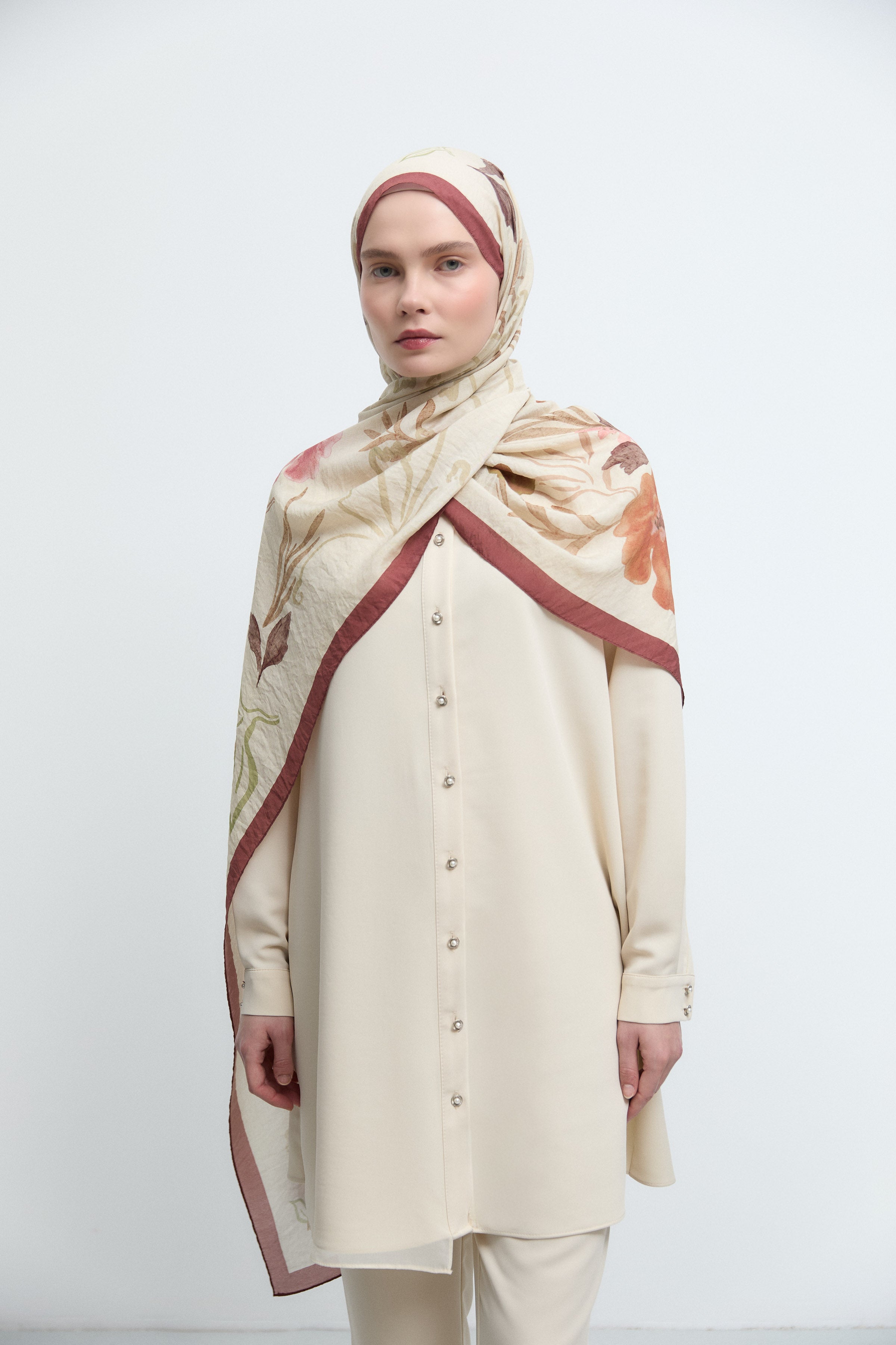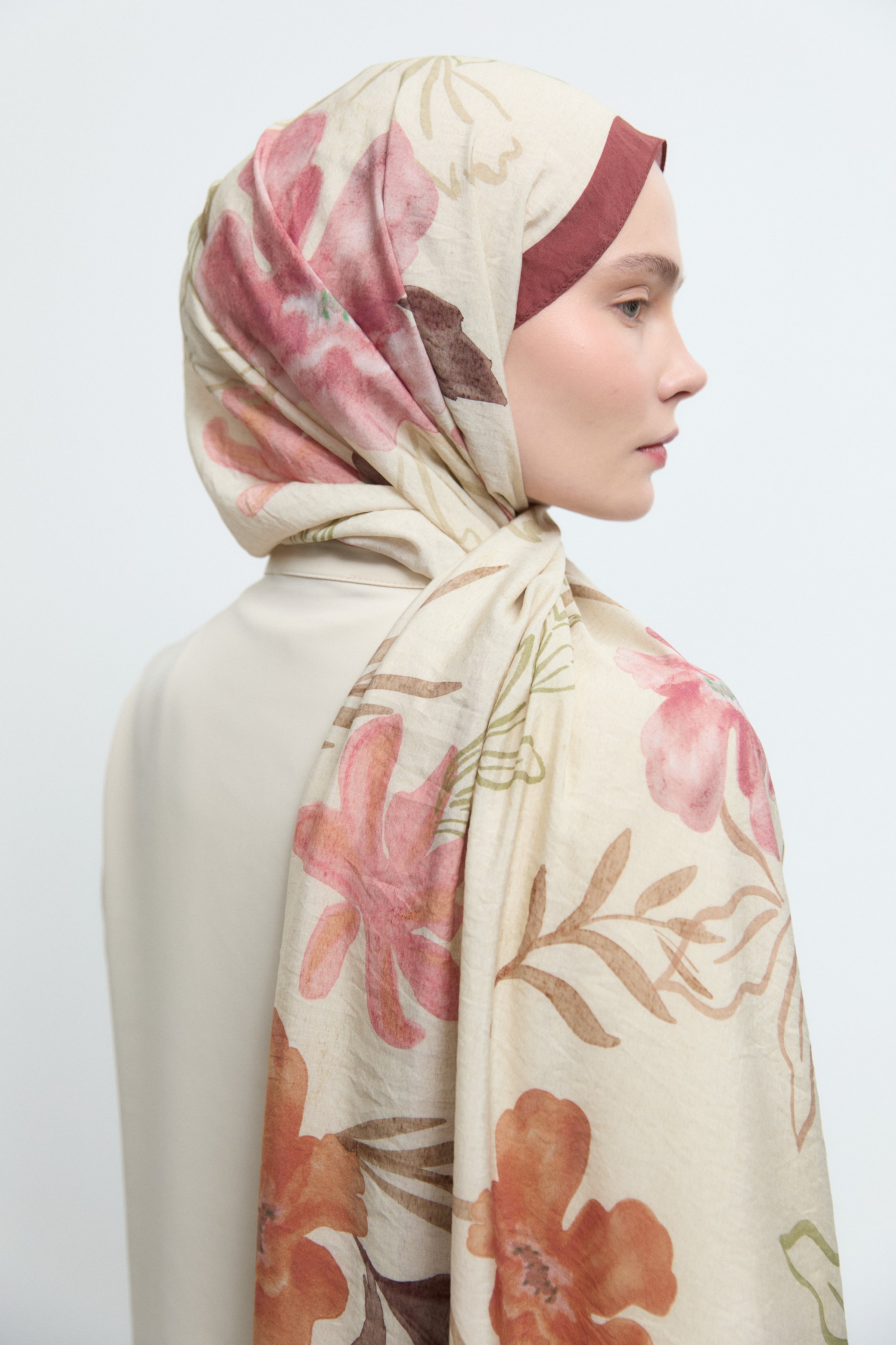 Écharpe en soie unie - Beige