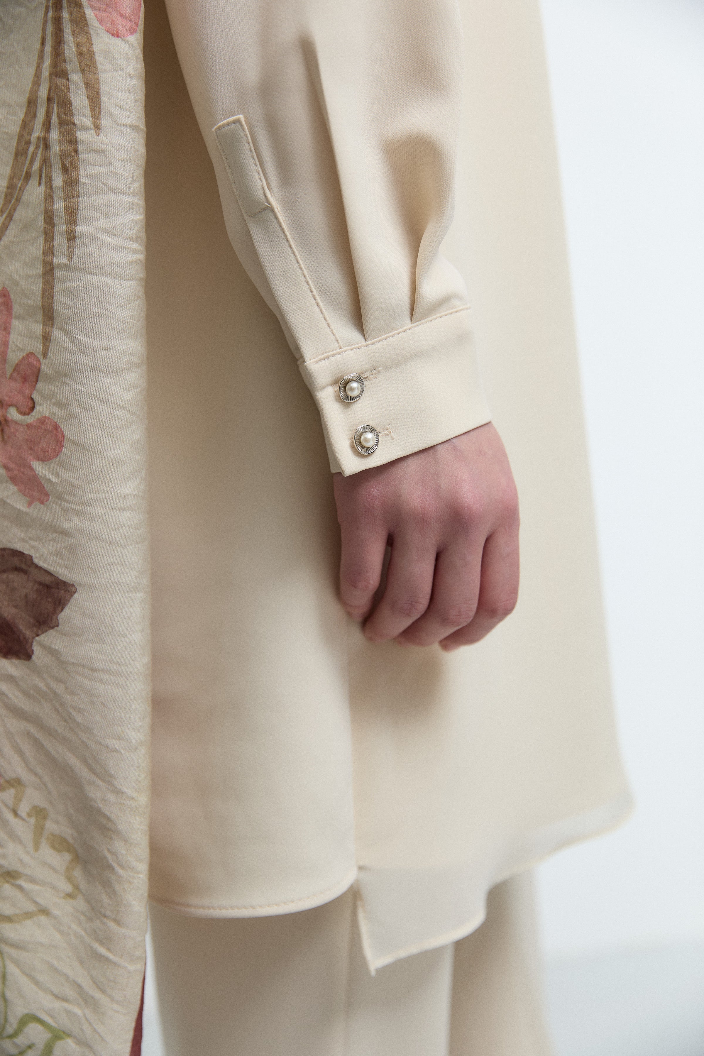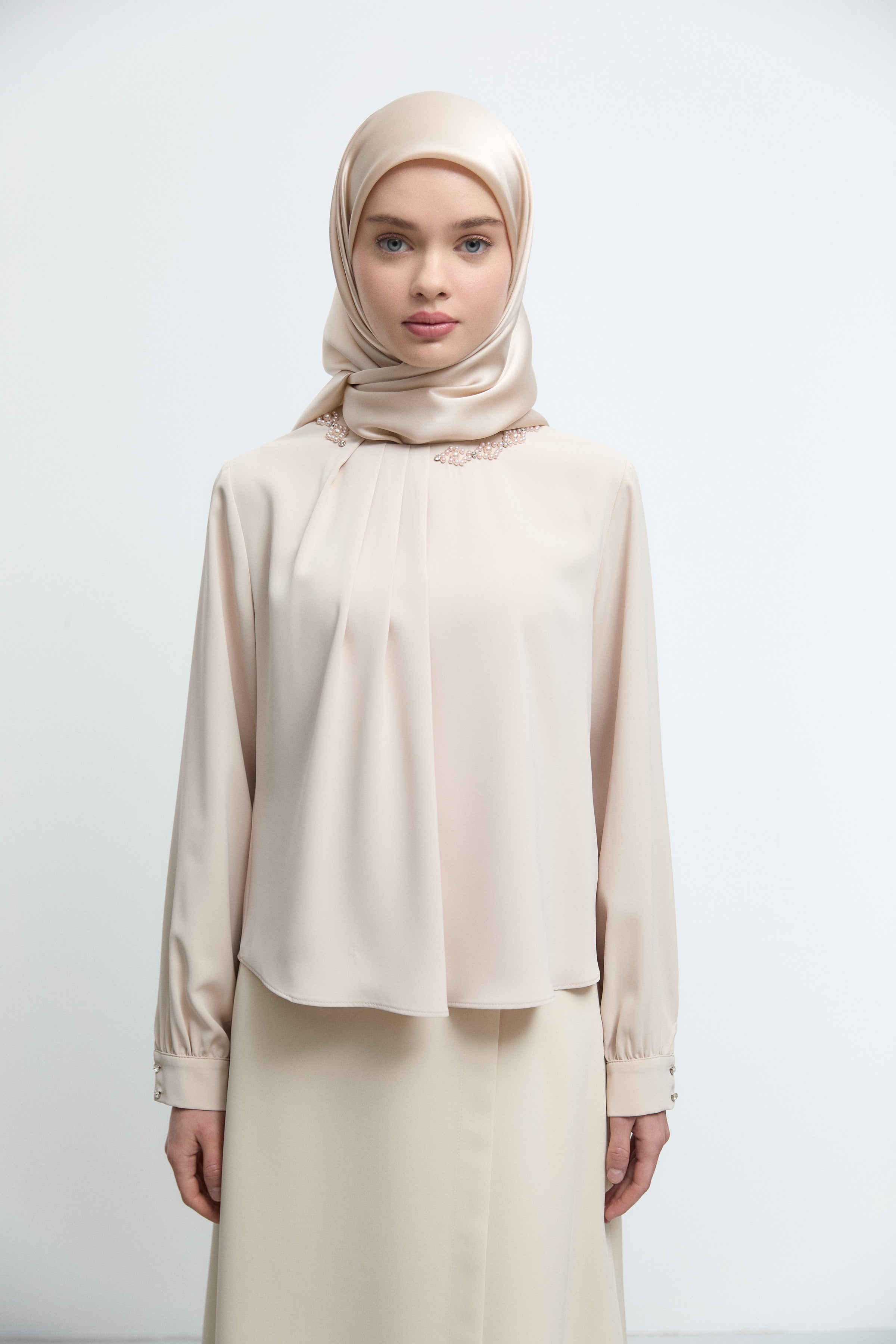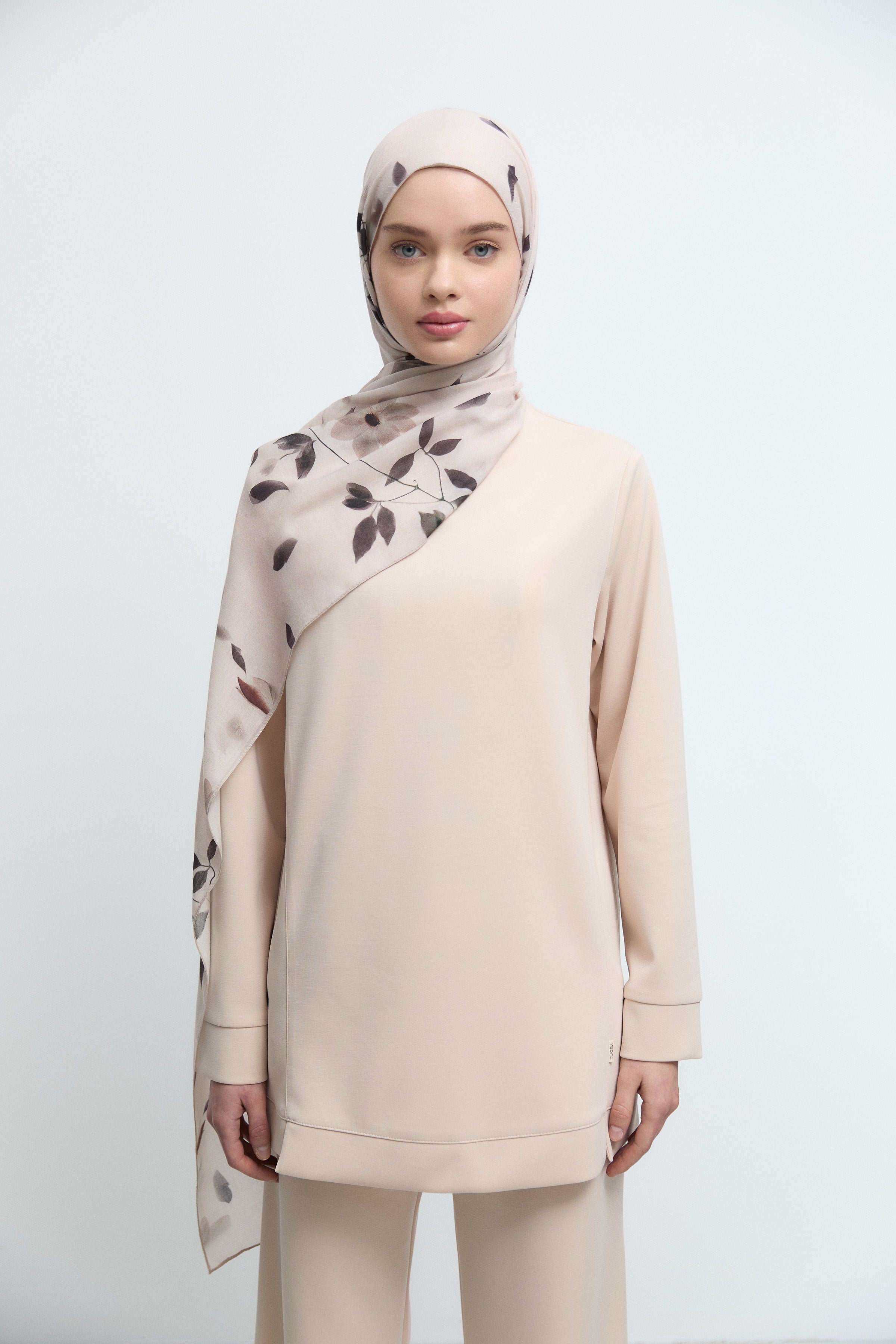 Tunique à empiècement en tulle frontal - Beige