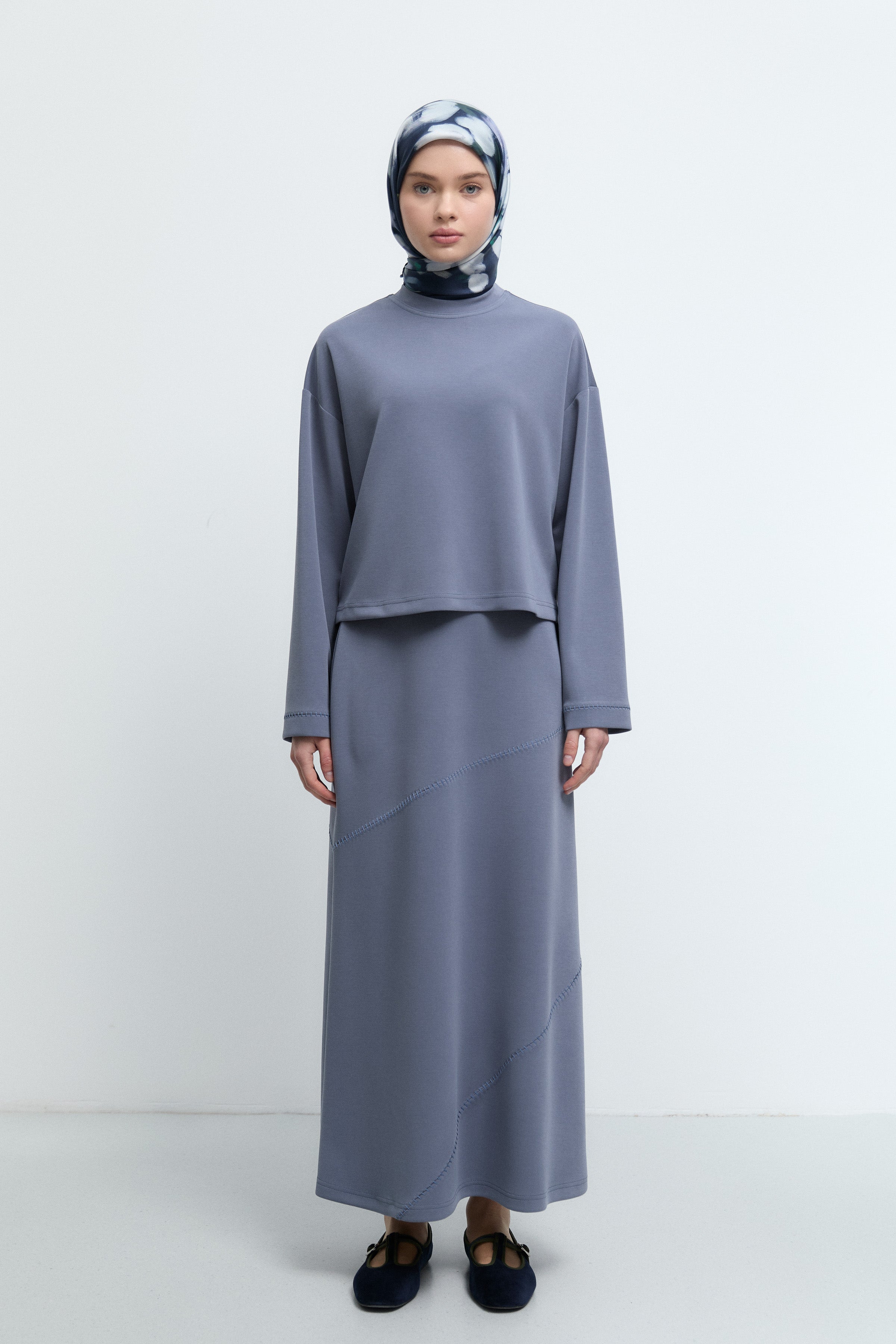 Ensemble avec détail couture et broderie - Indigo