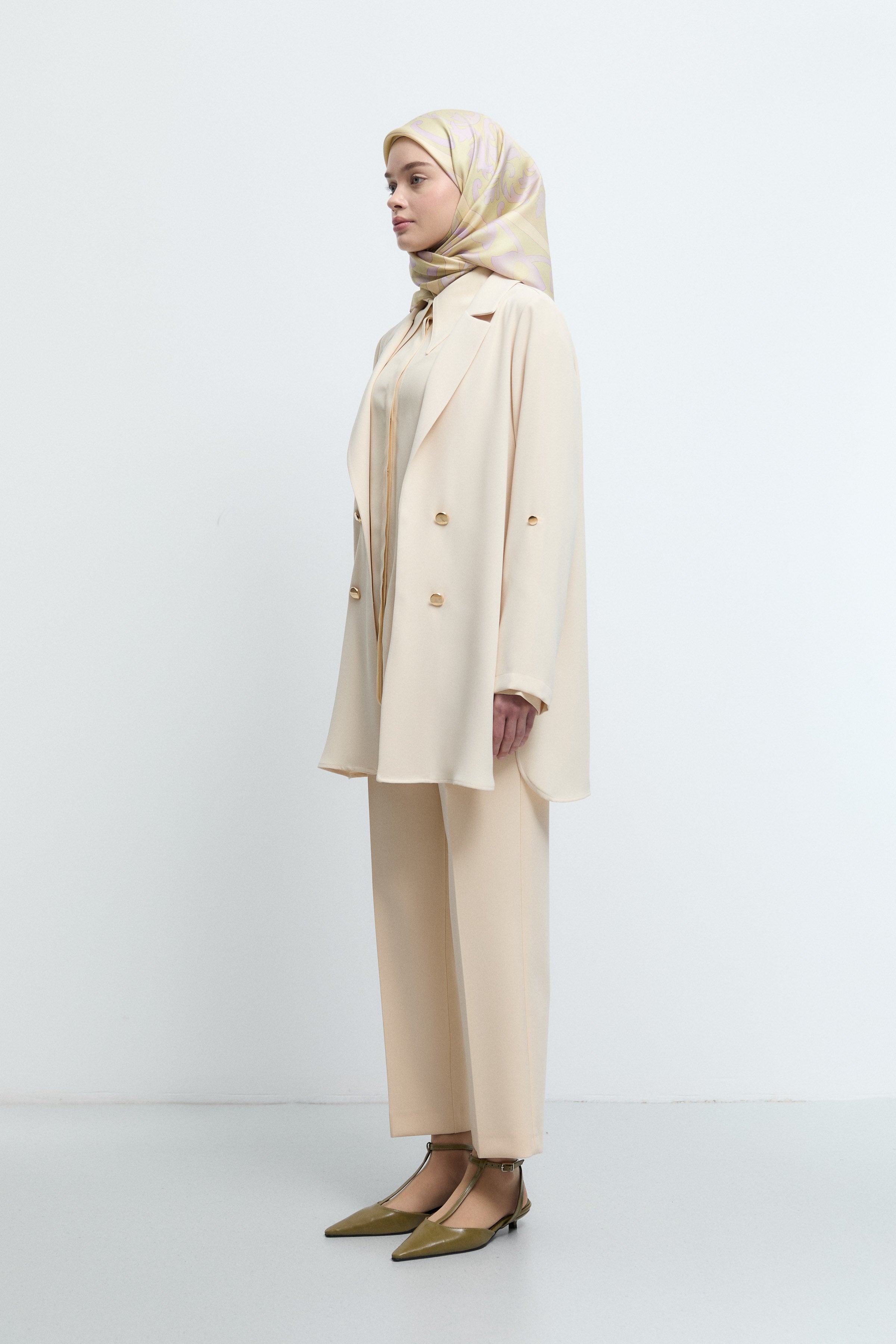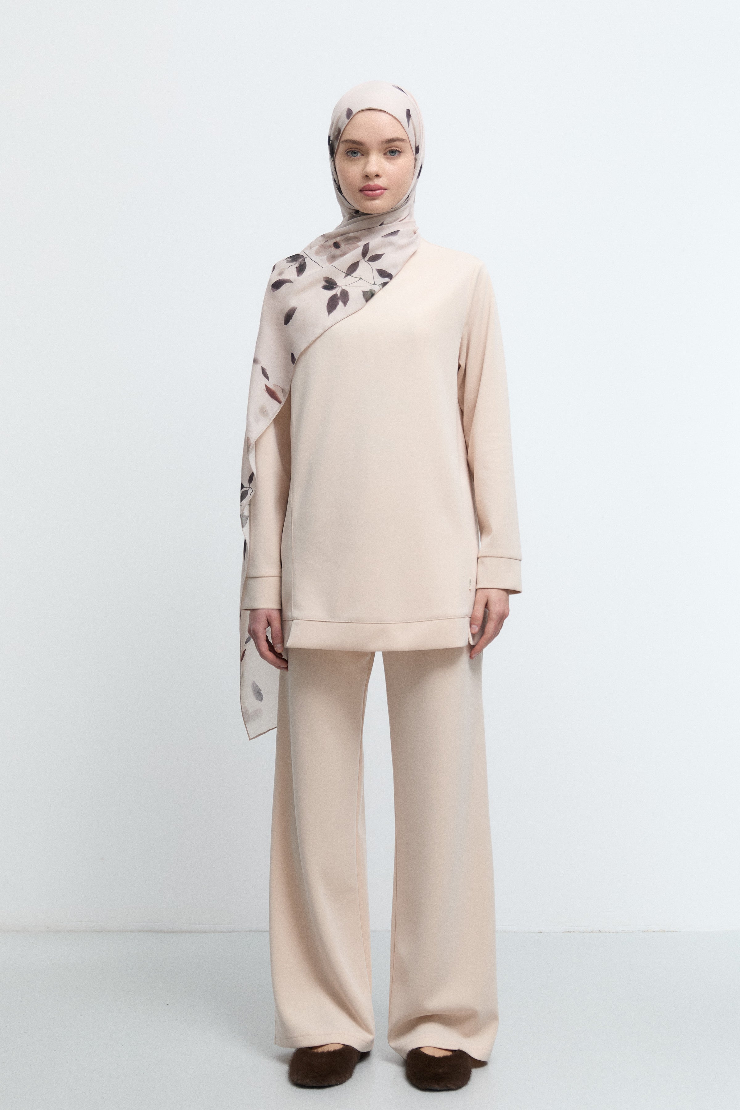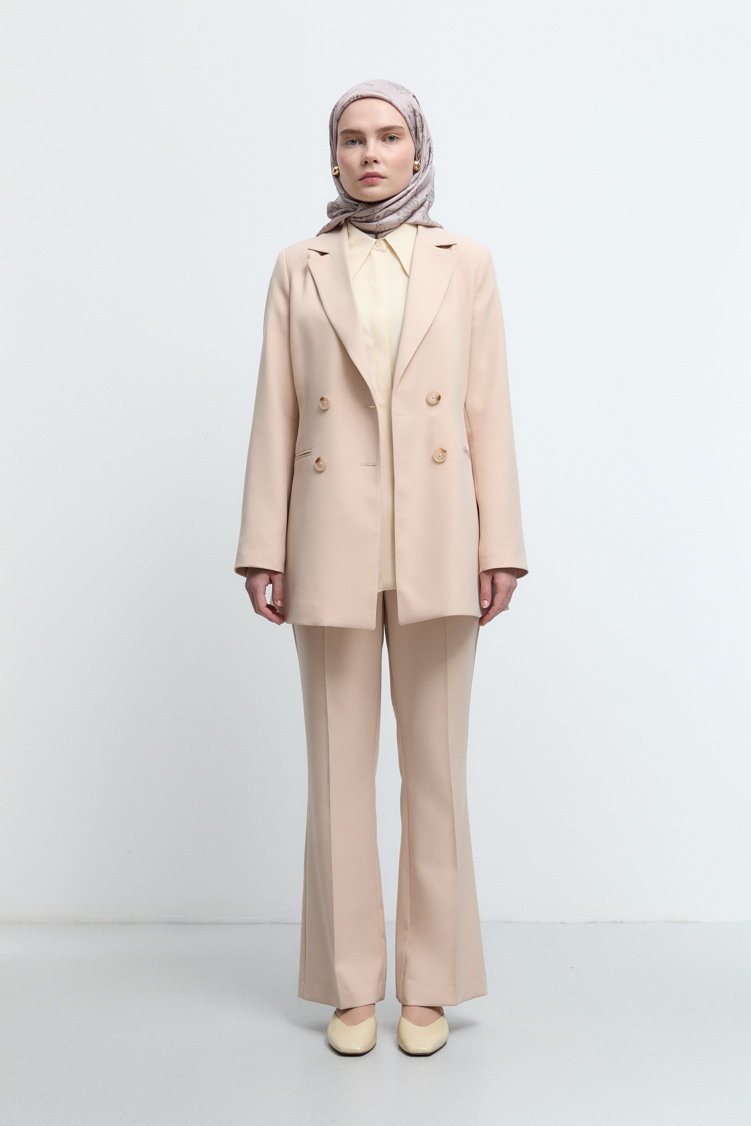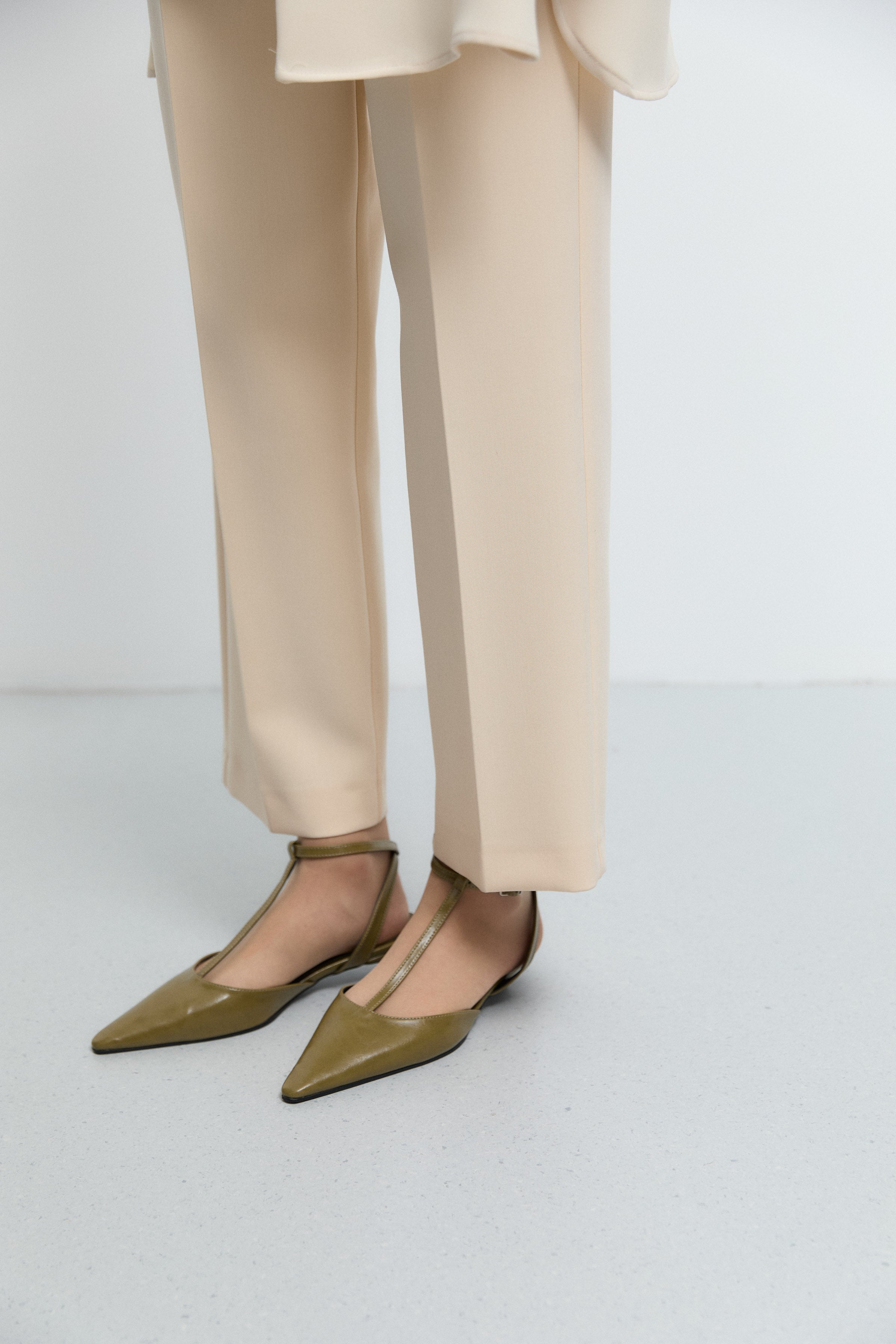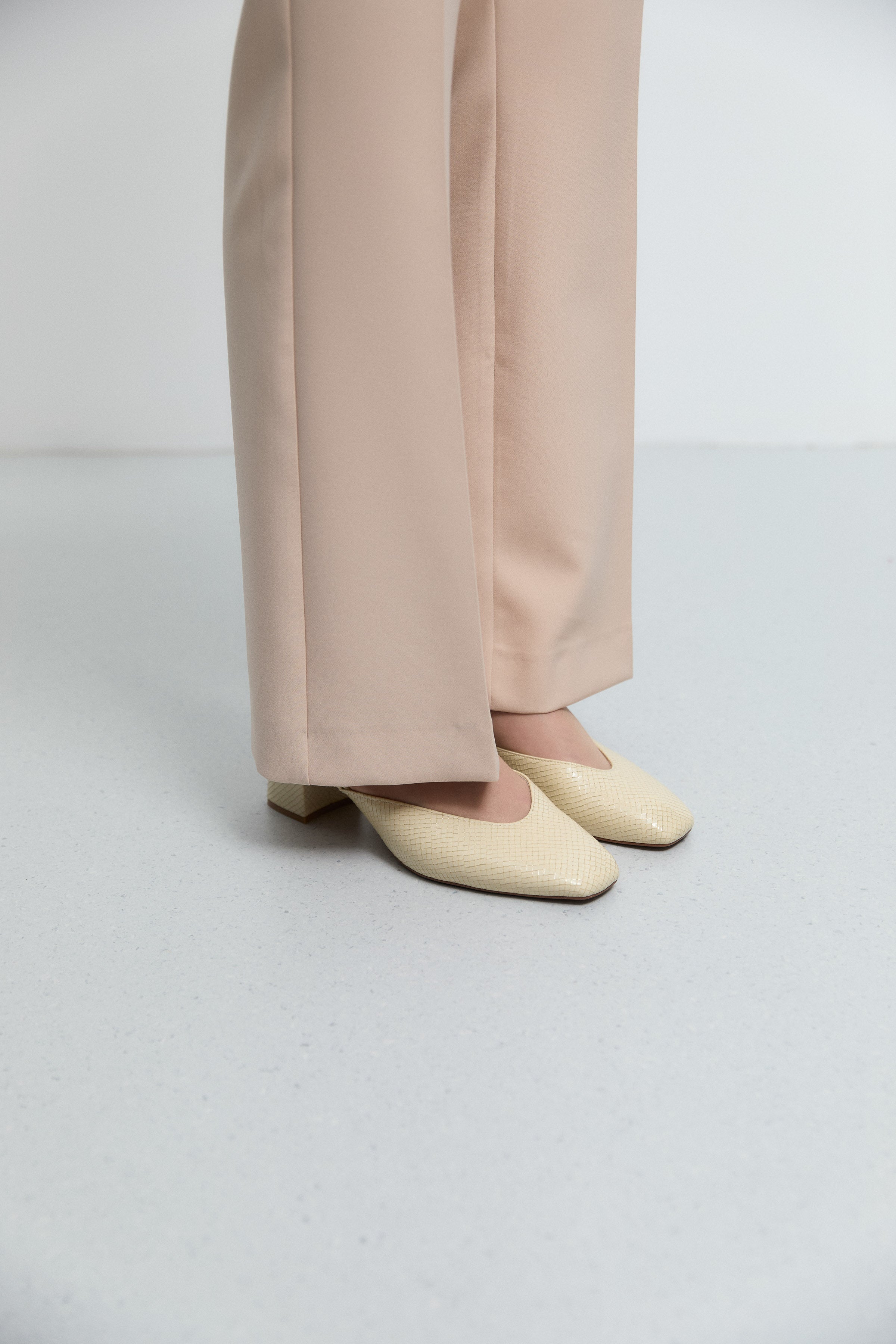 Pantalon minimal à coupe évasée - Beige