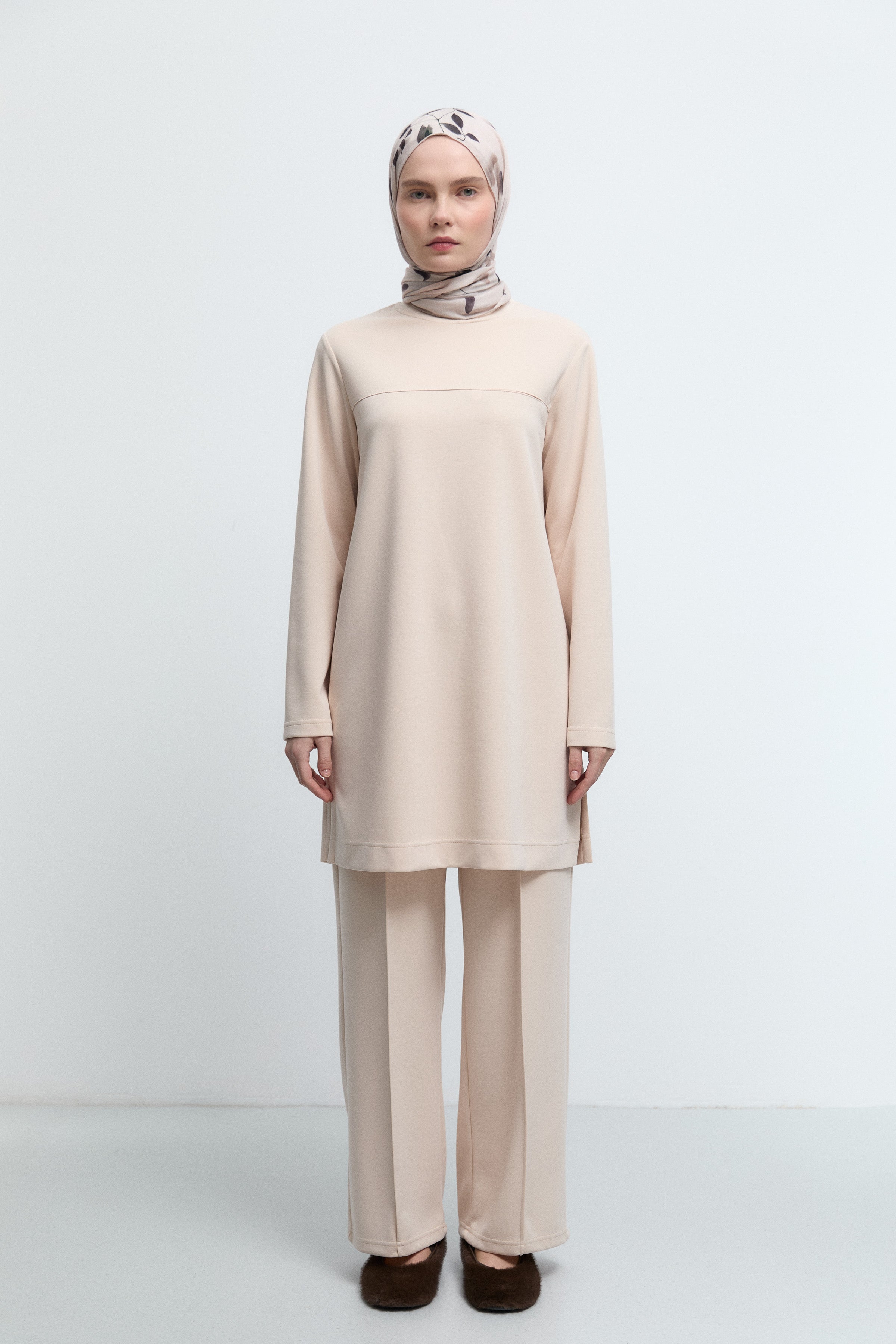 Ensemble tricoté à col rond - Écru