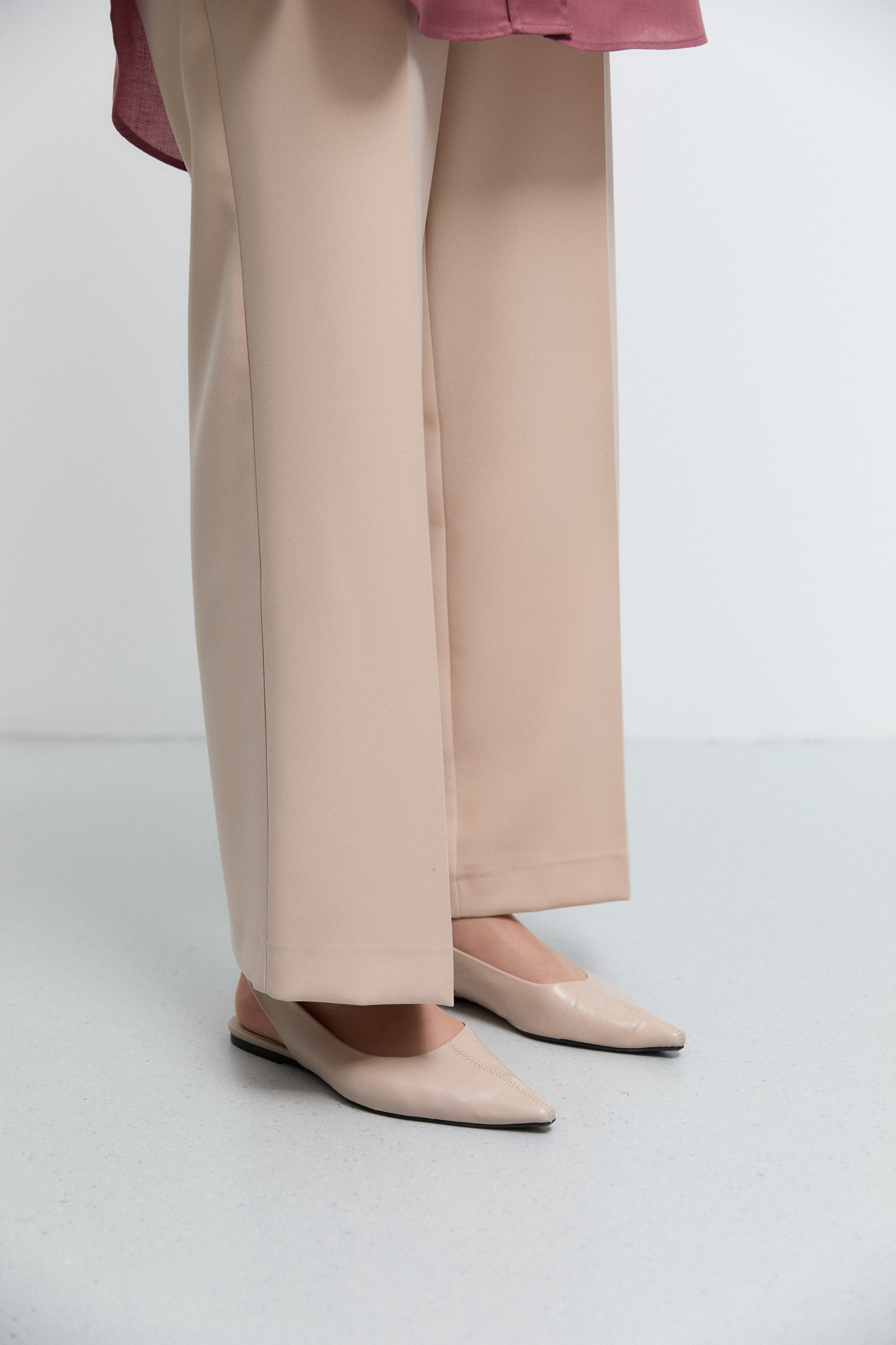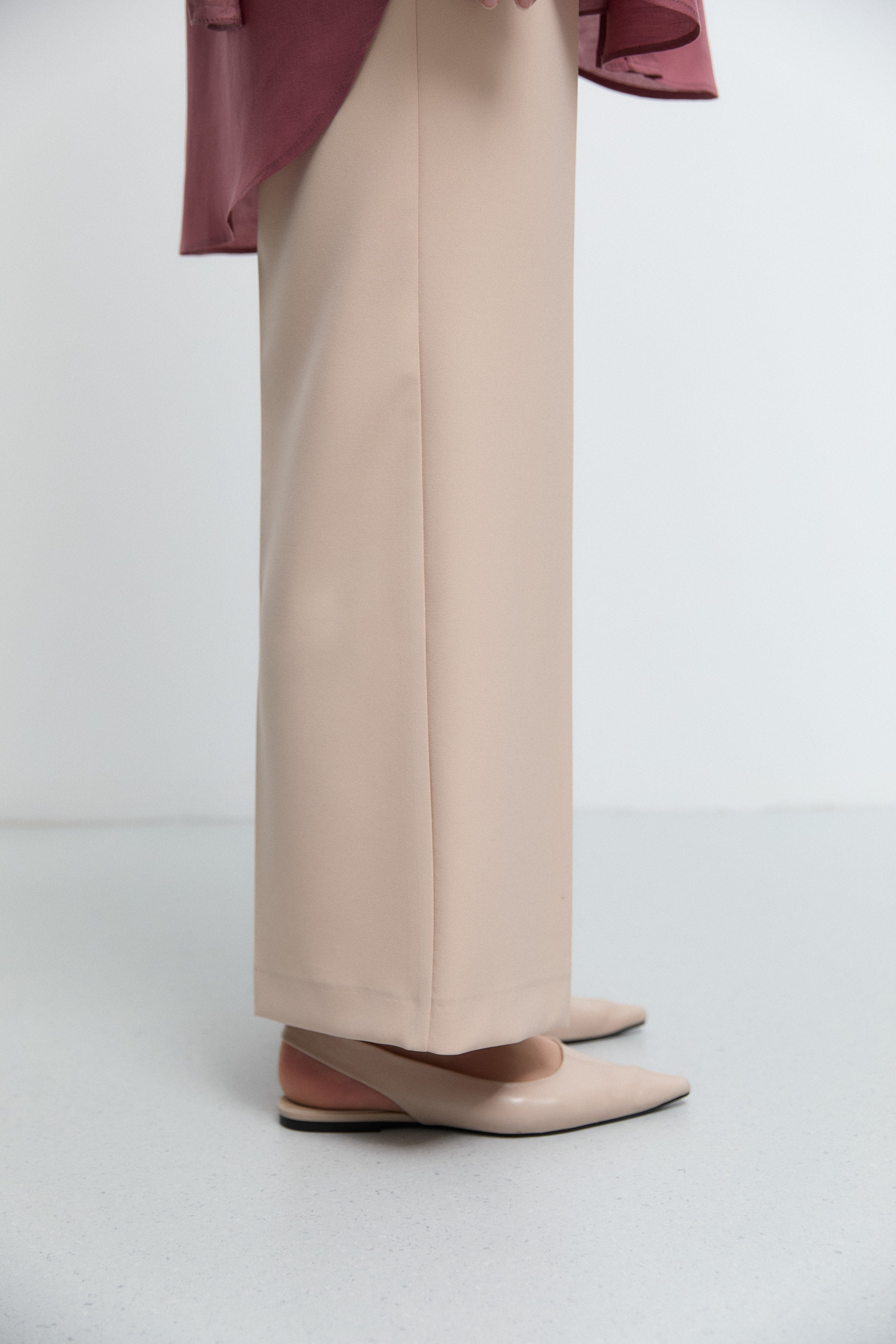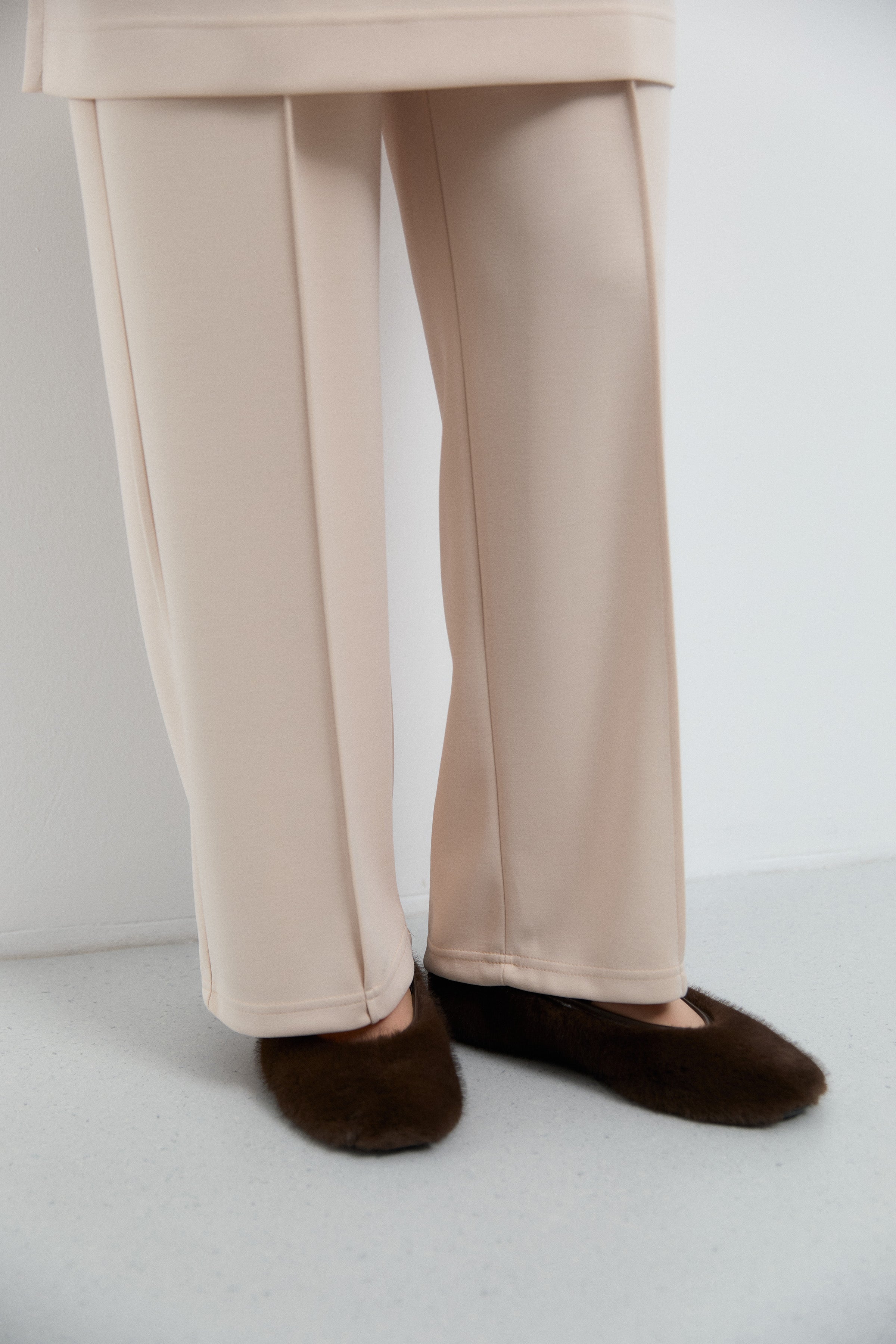 Pantalon minimal à taille semi-élastiquée - Beige