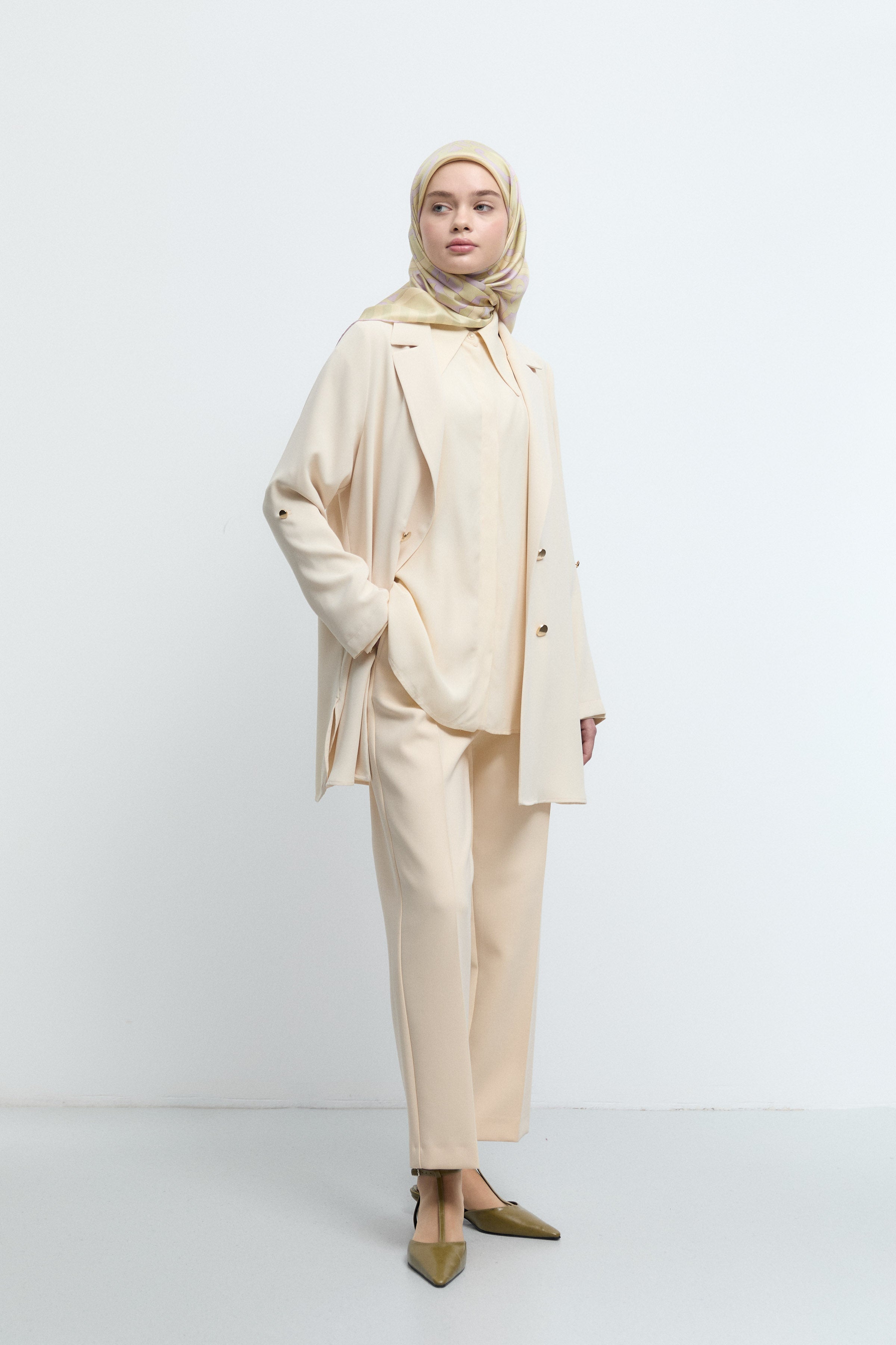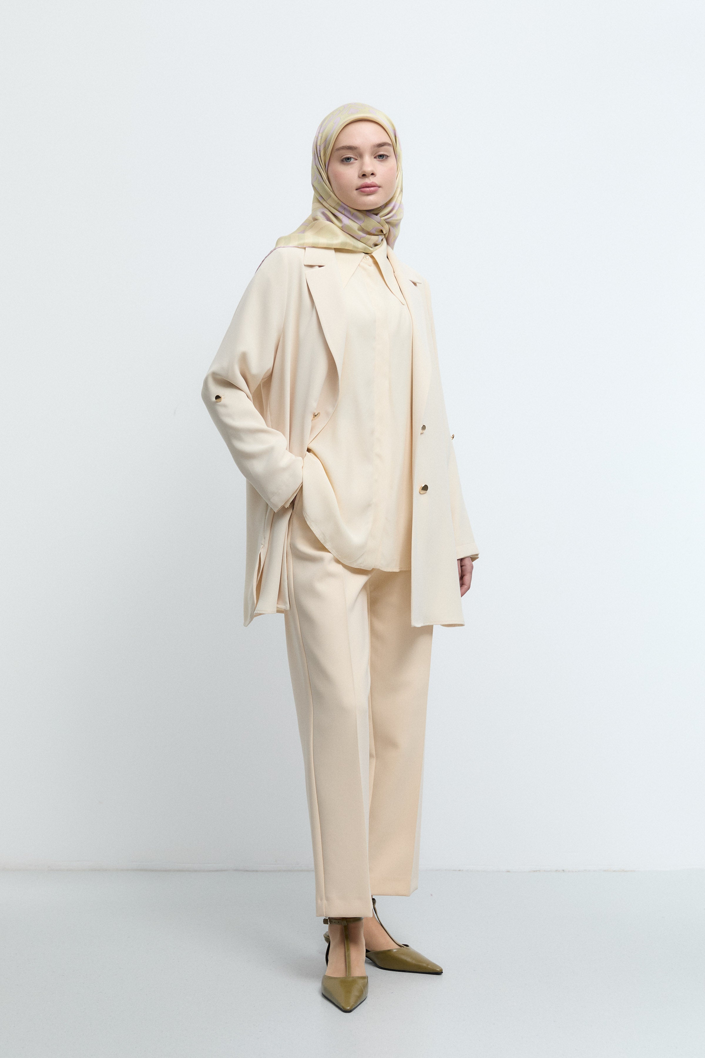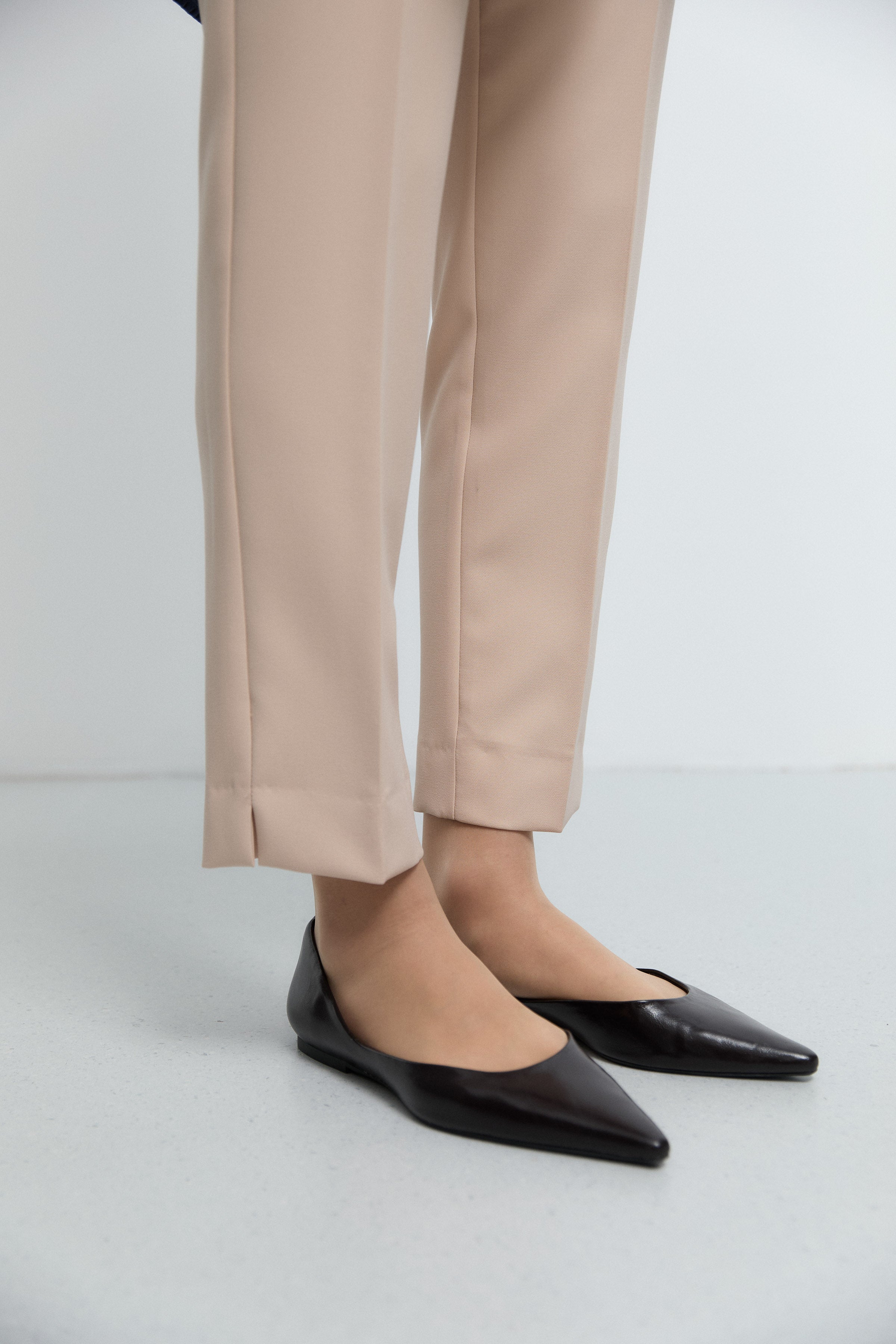 Pantalon minimal à taille semi-élastiquée - Beige