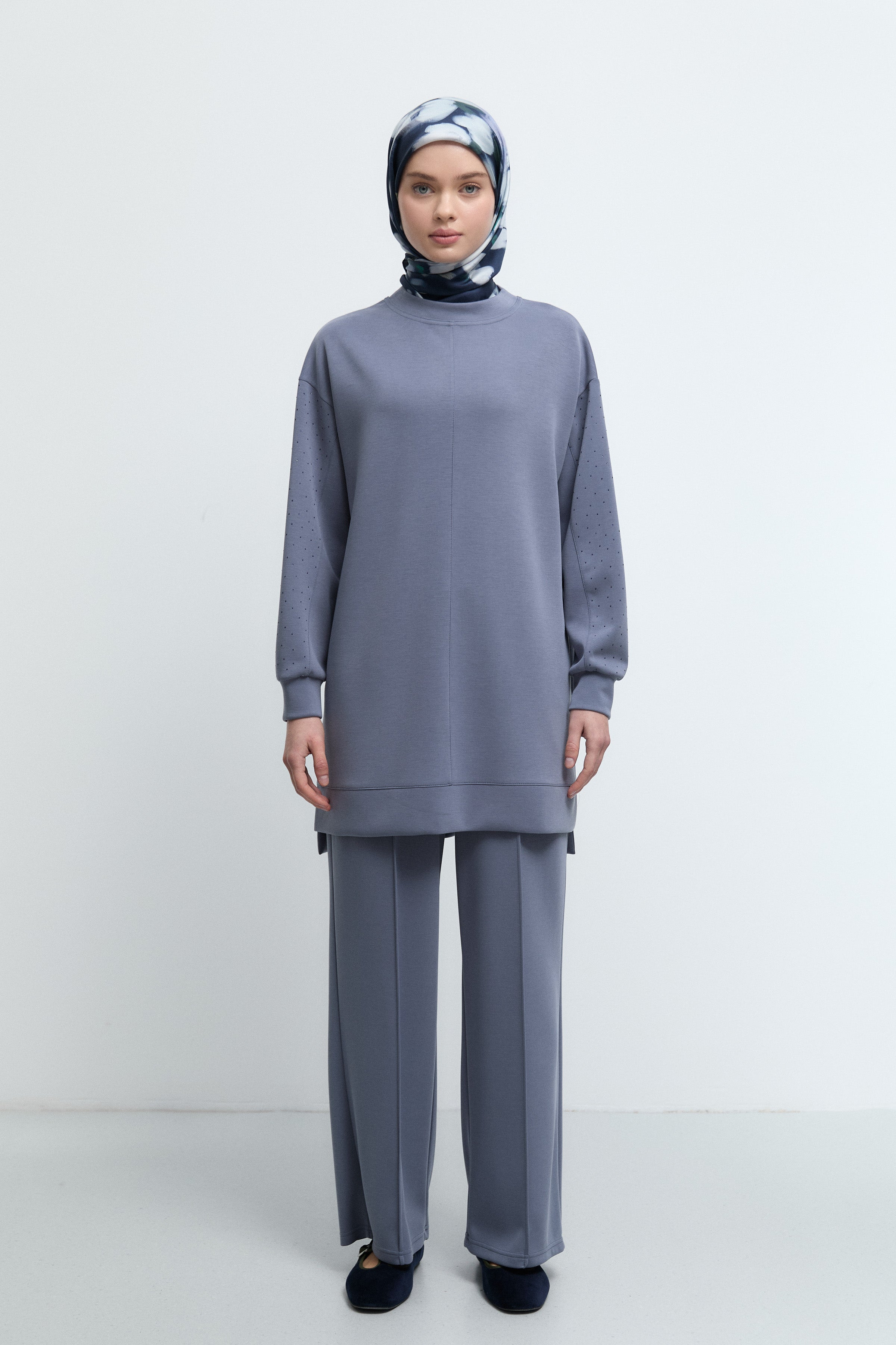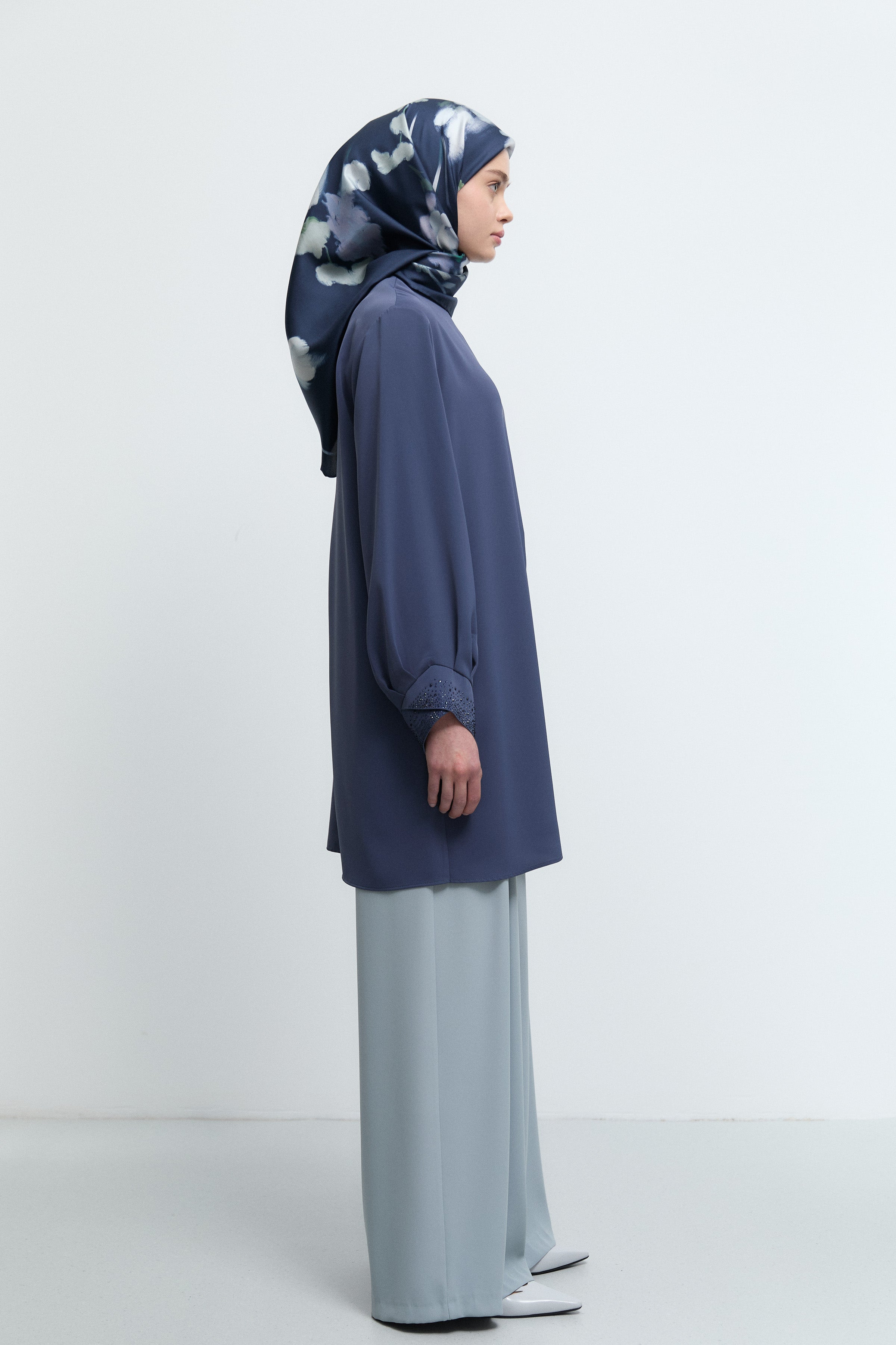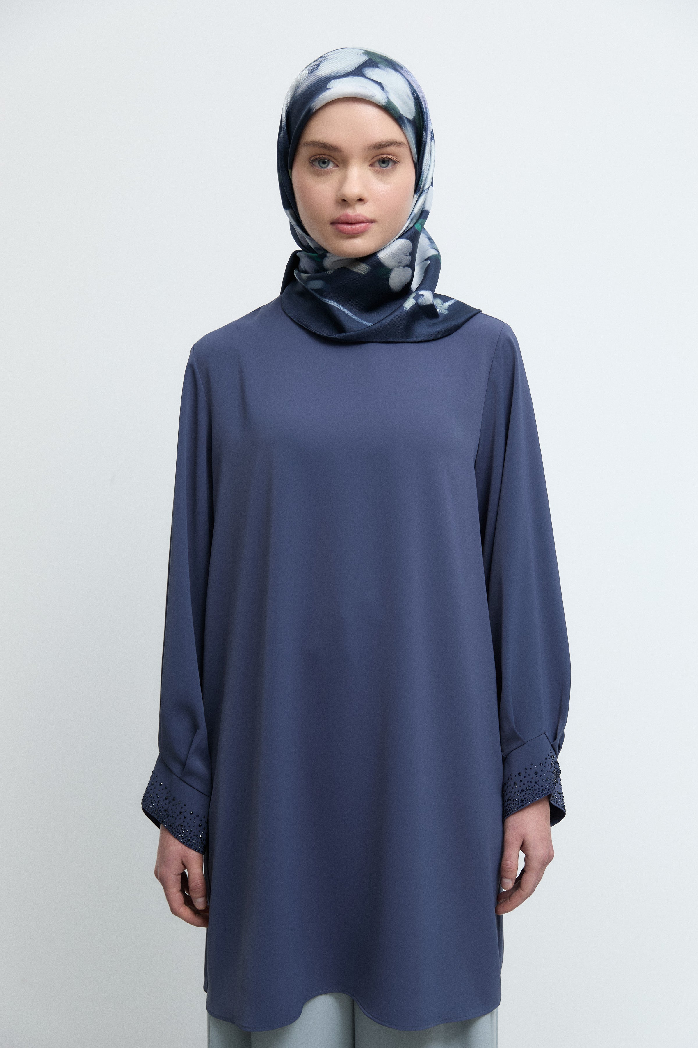Tunique à poignets ornés de strass - Indigo