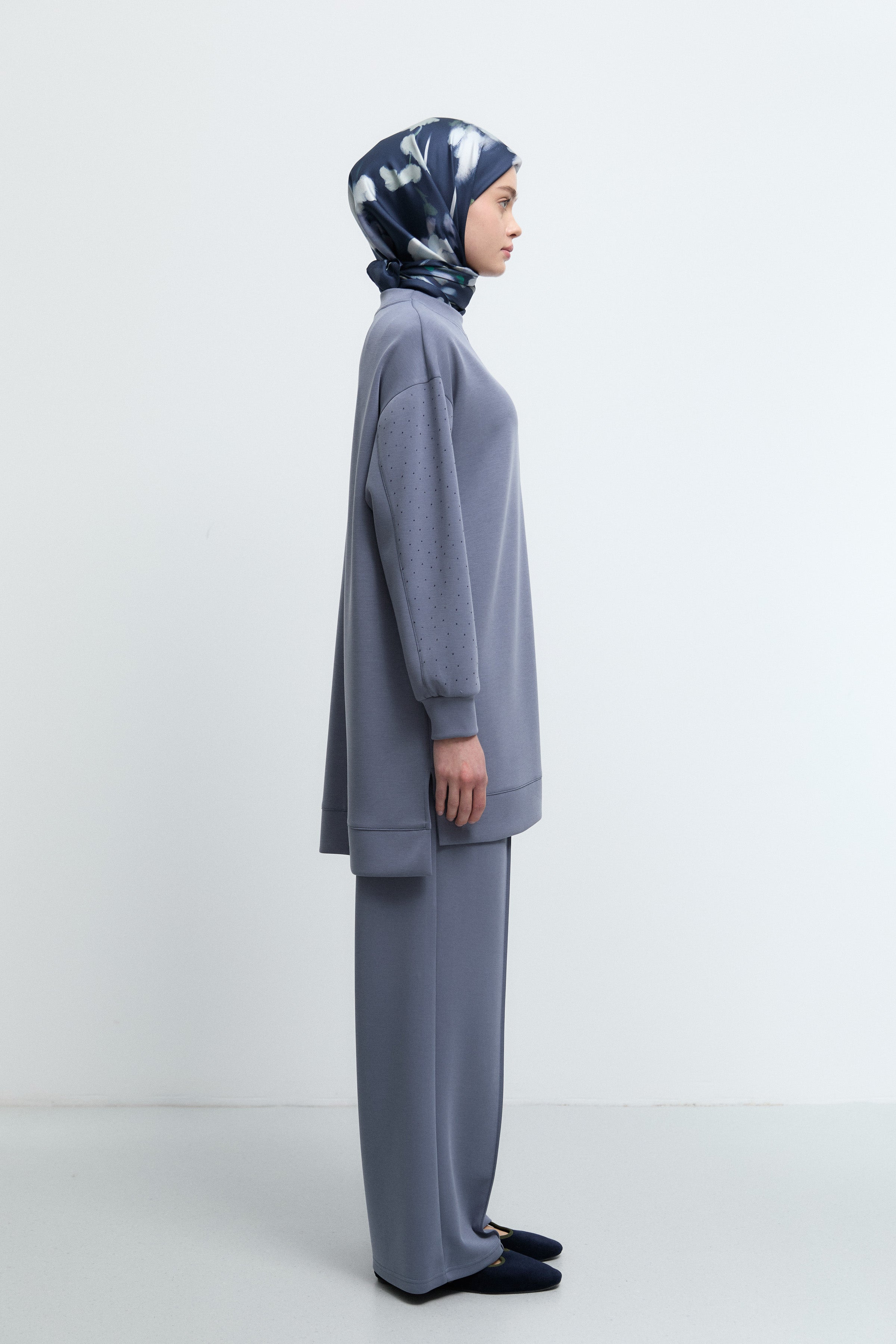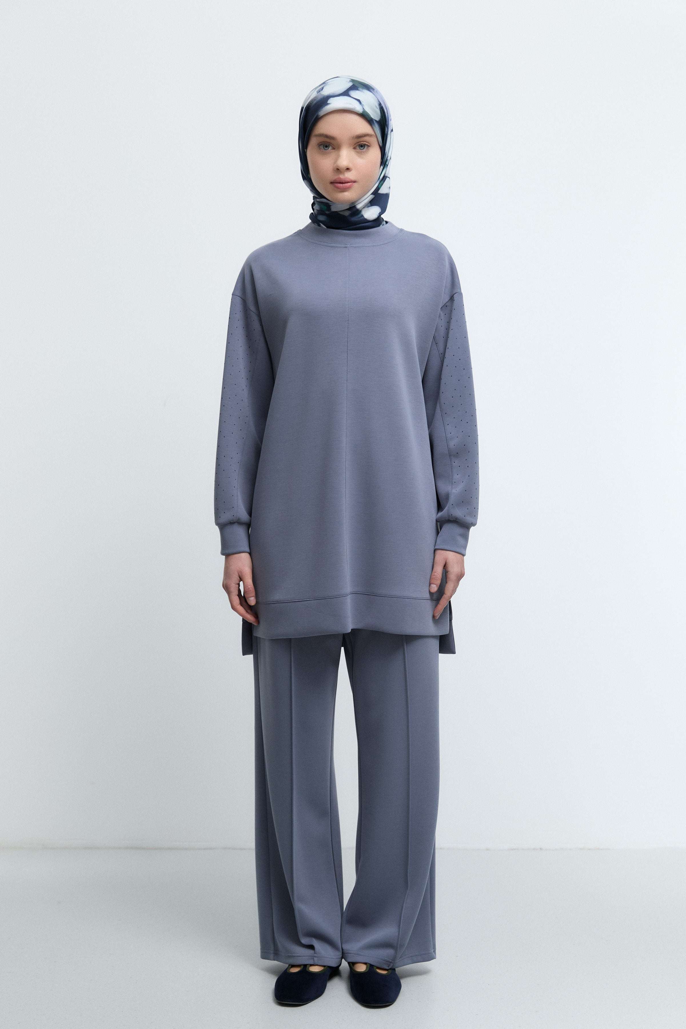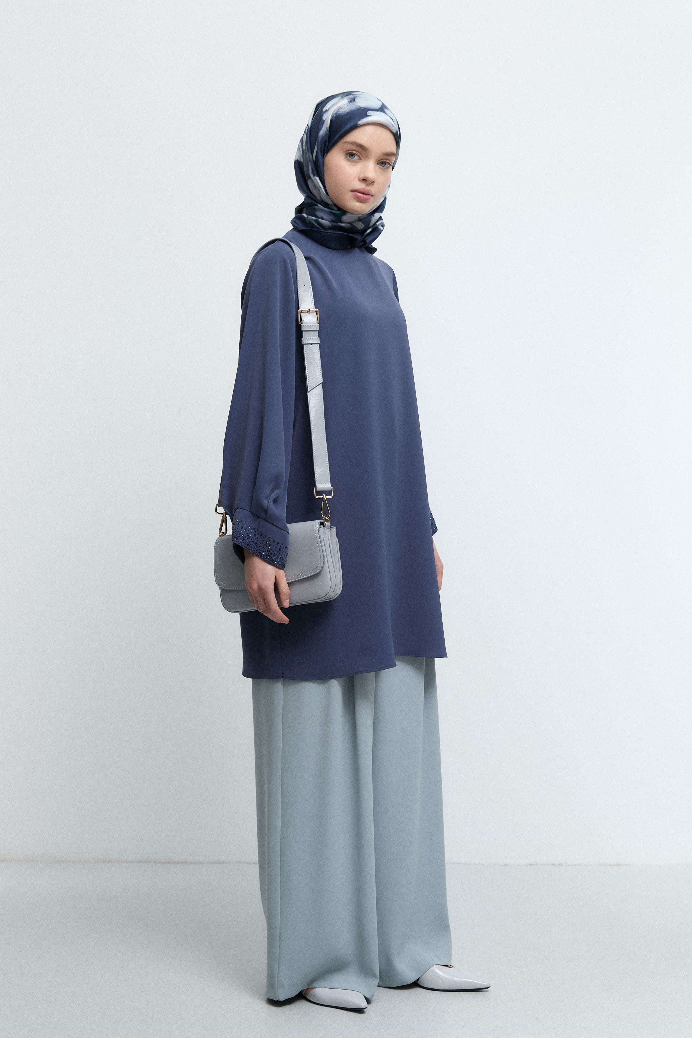 Tunique à poignets ornés de strass - Indigo