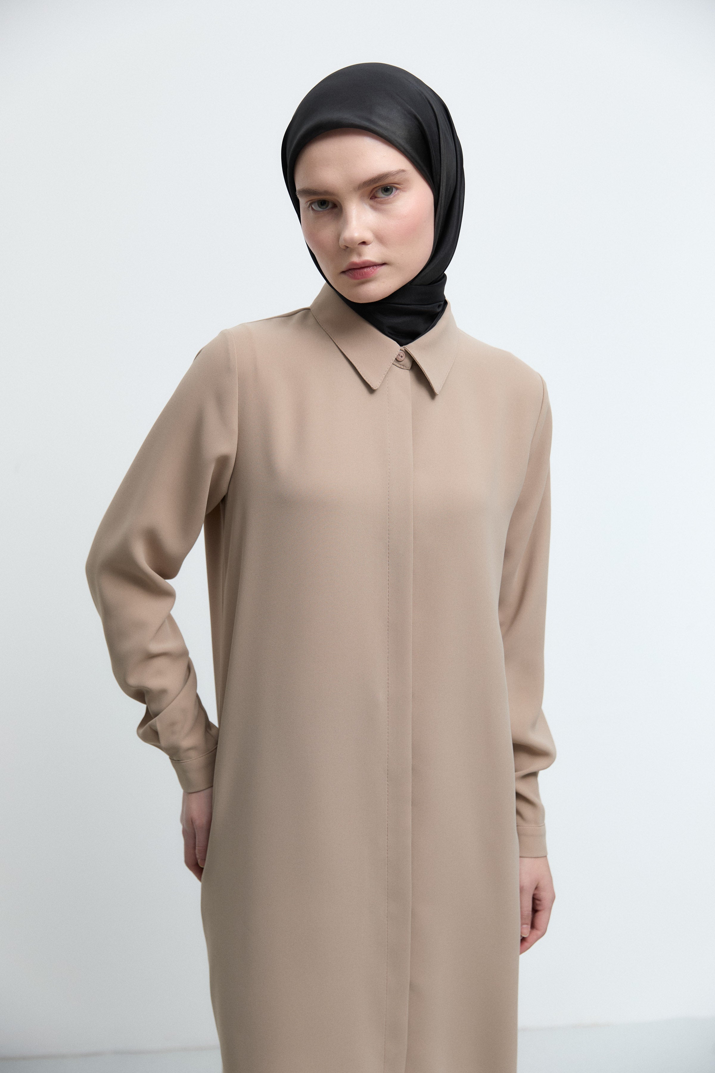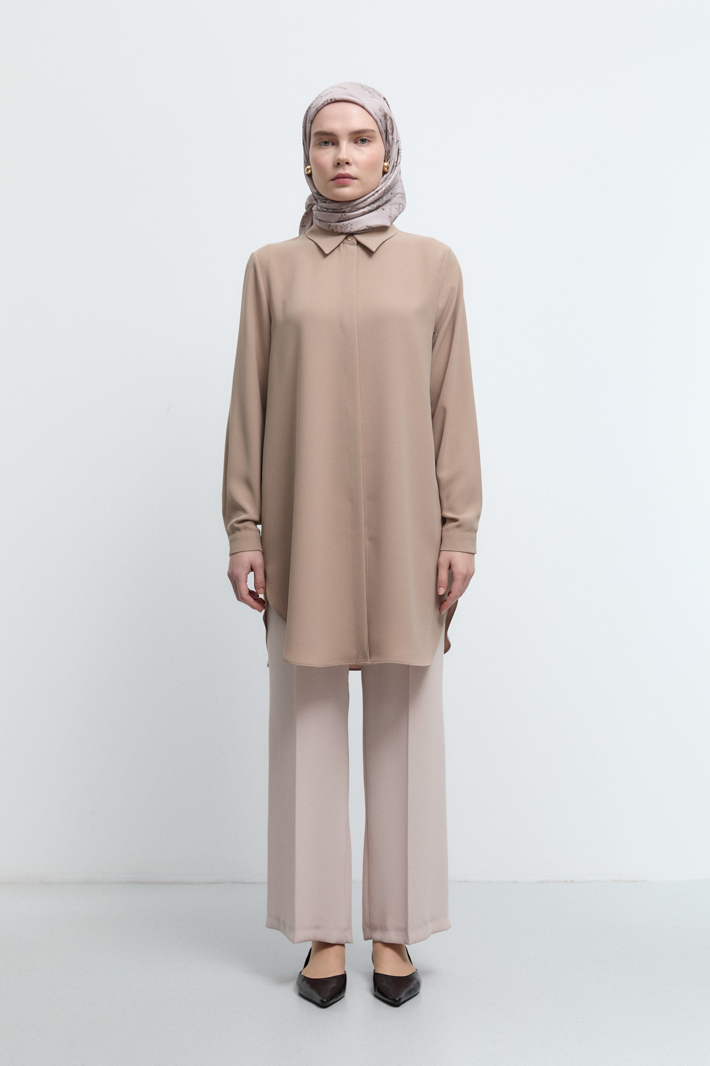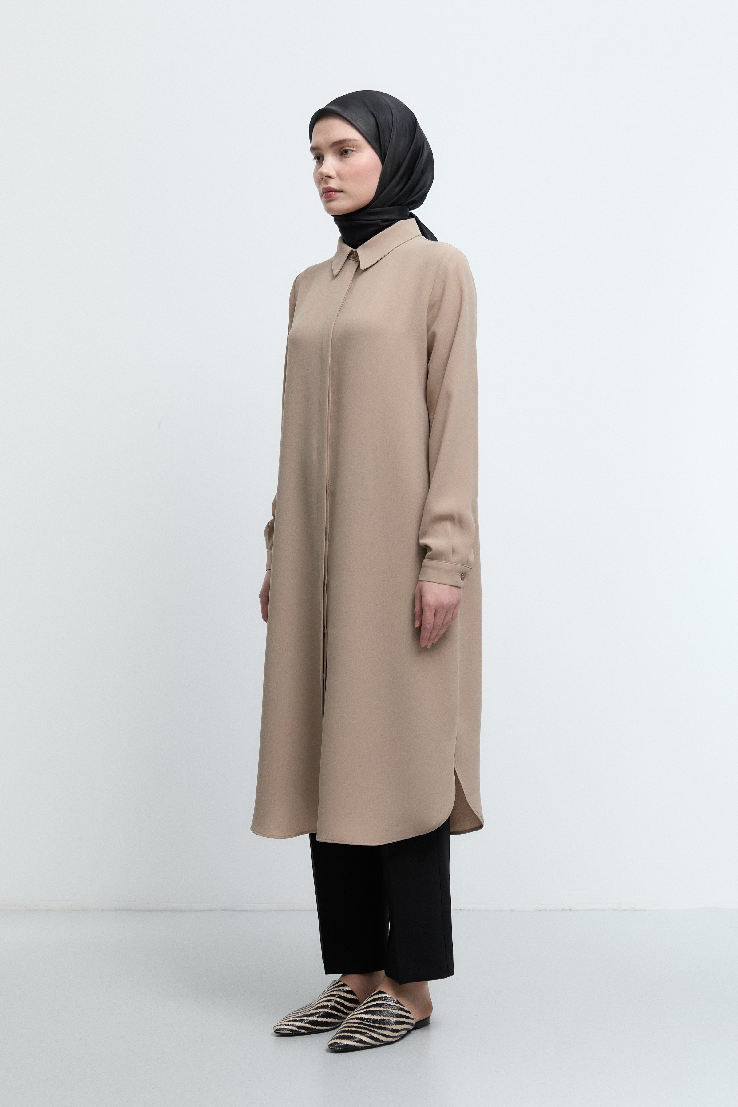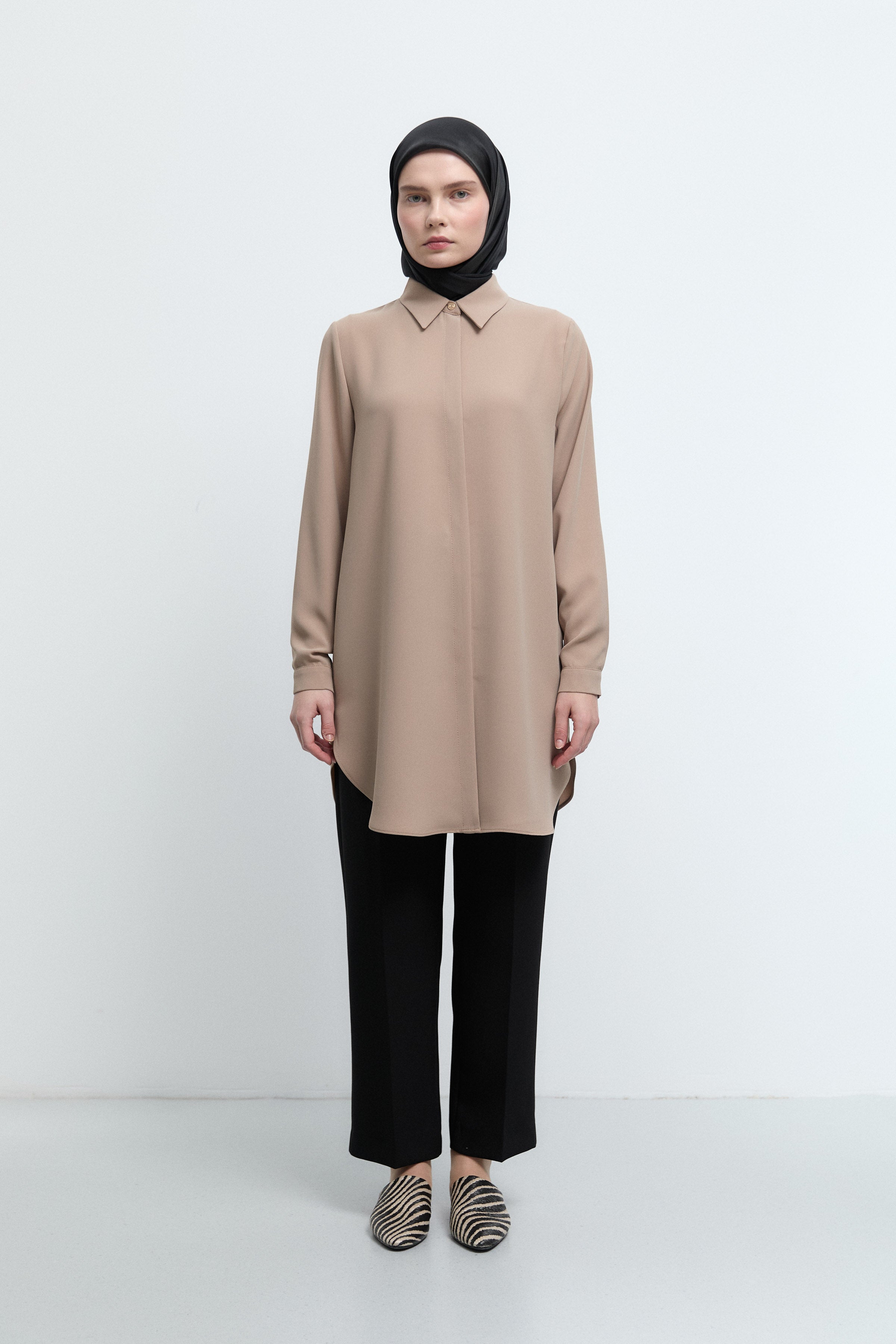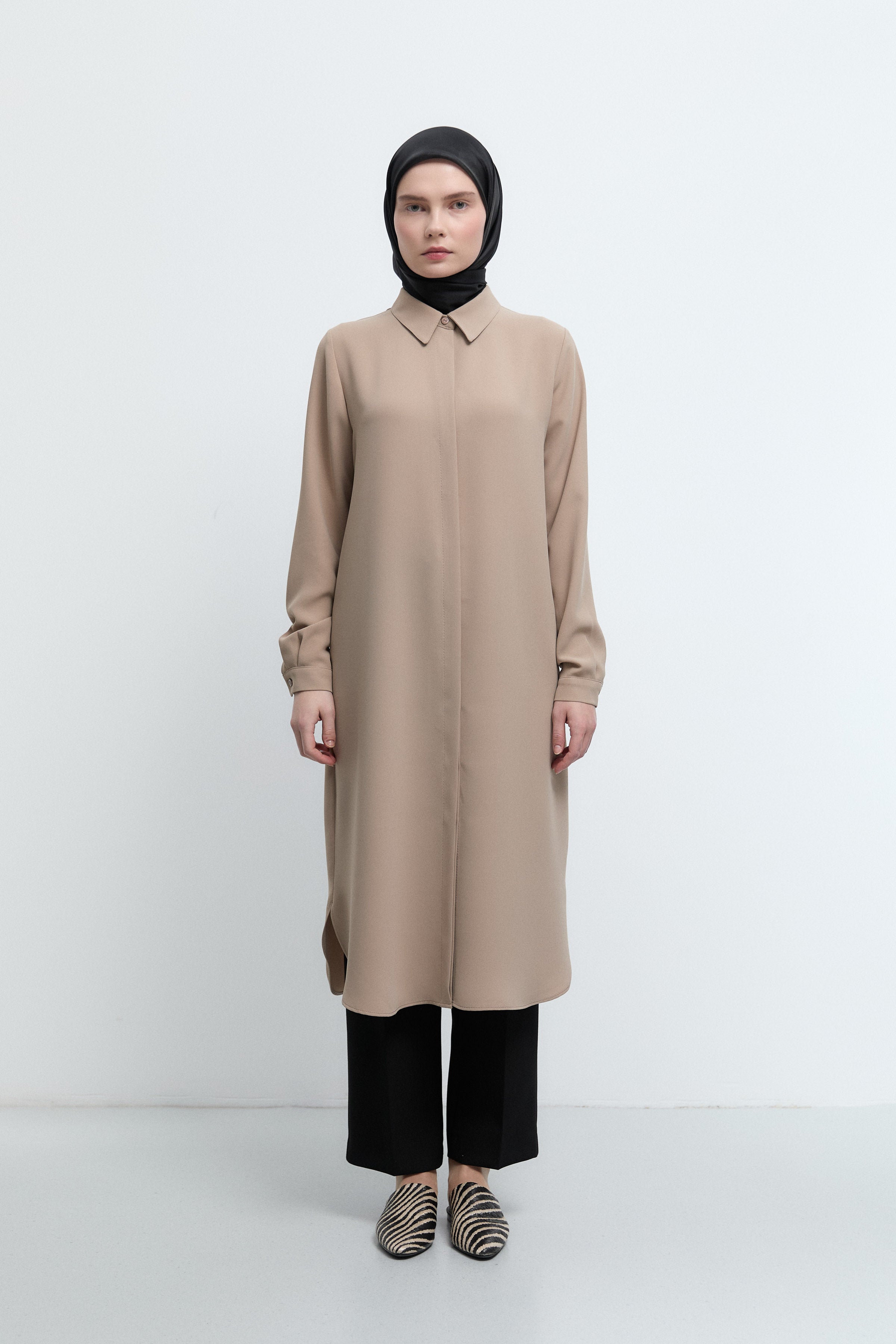 Tunique basic à patte de boutonnage cachée - Taupe
