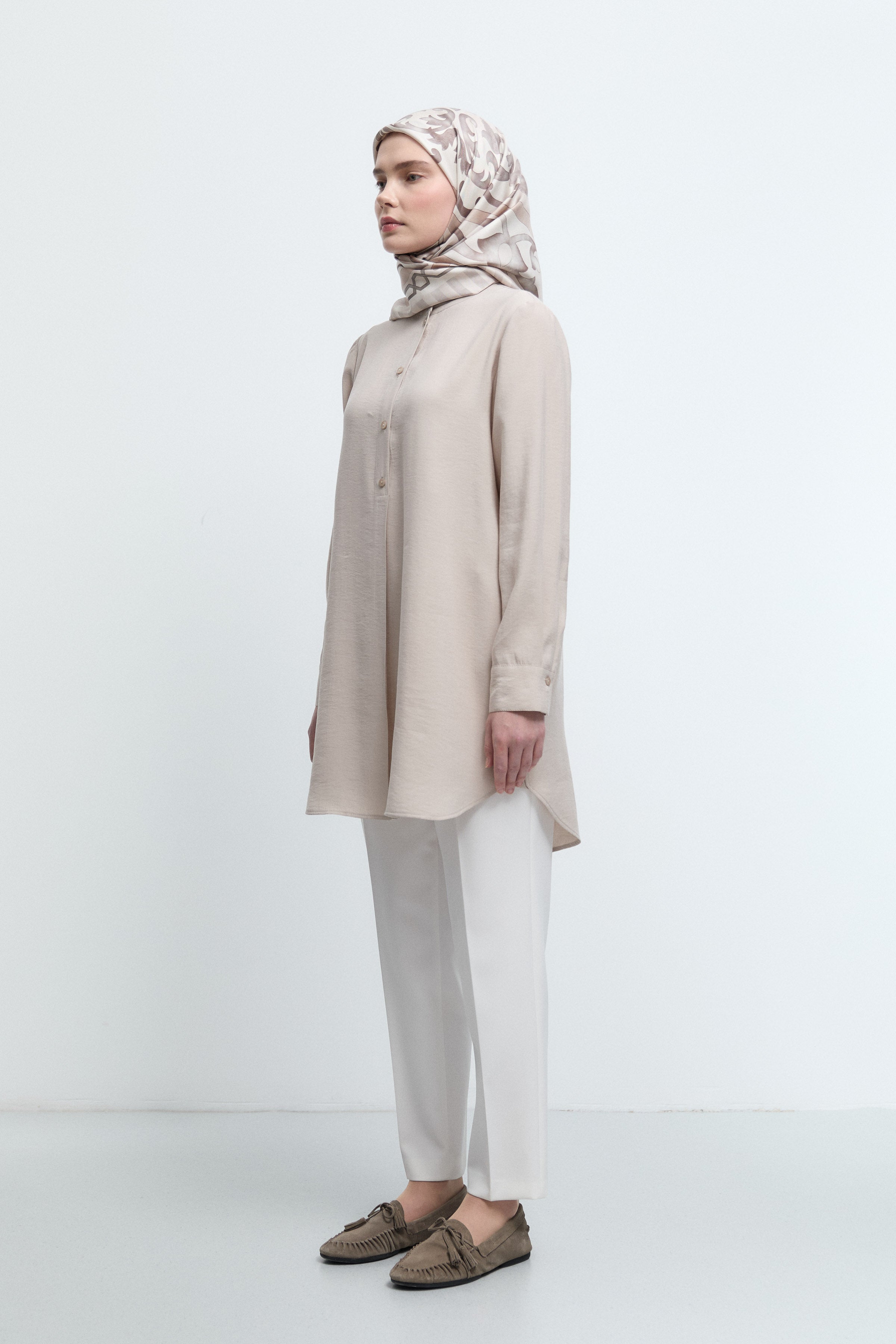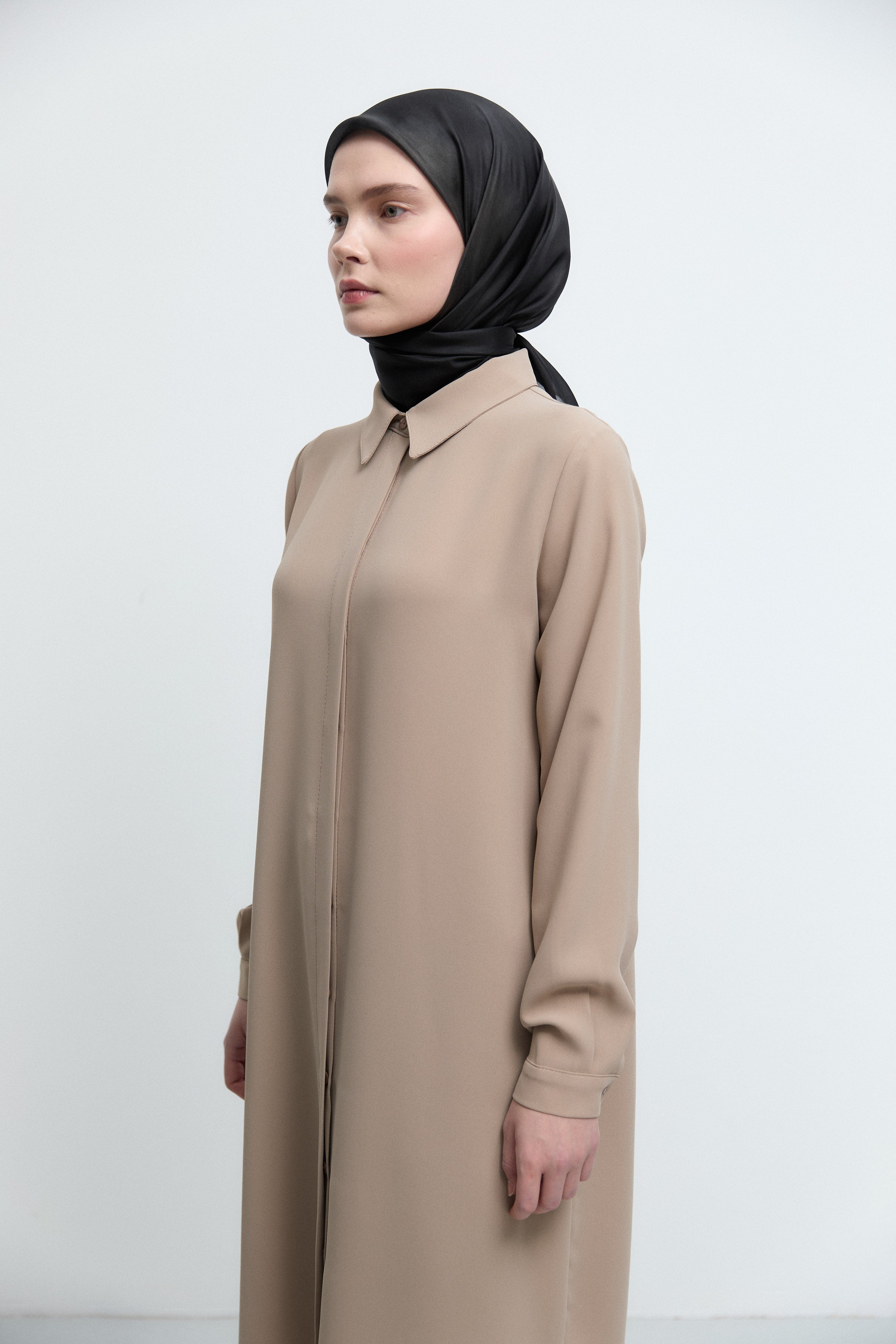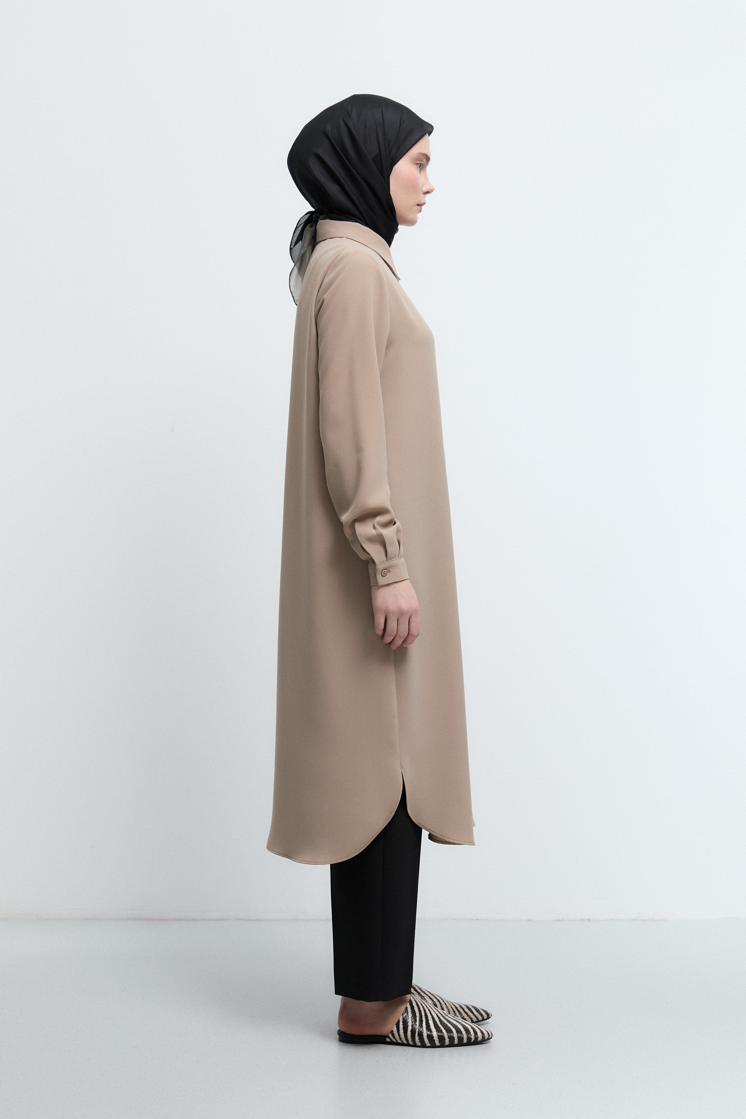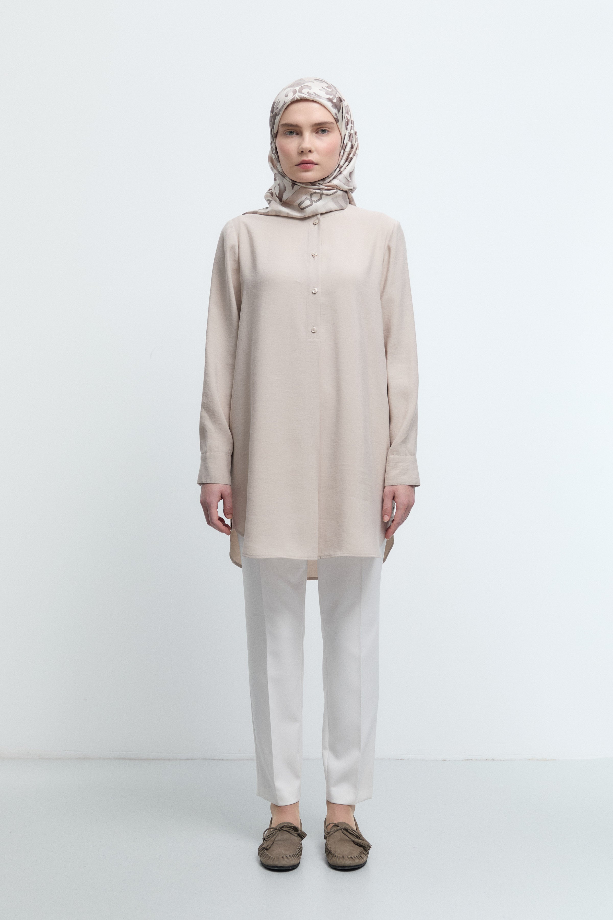 Tunique basic à patte de boutonnage cachée - Taupe