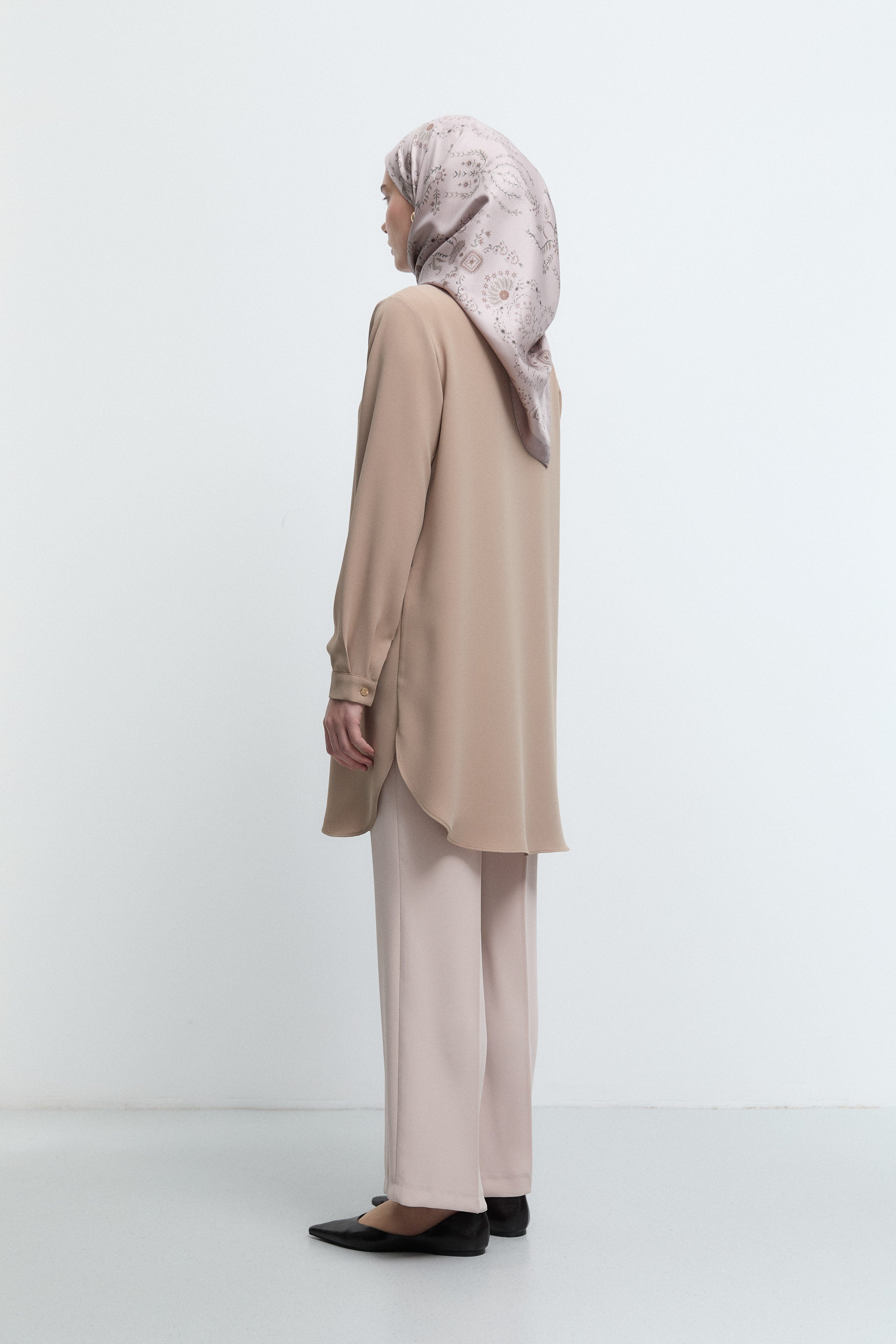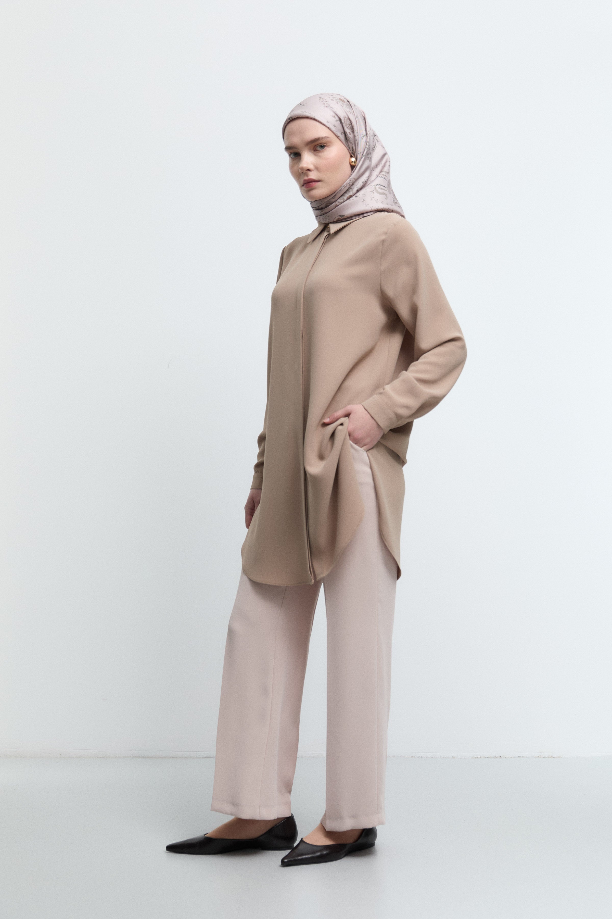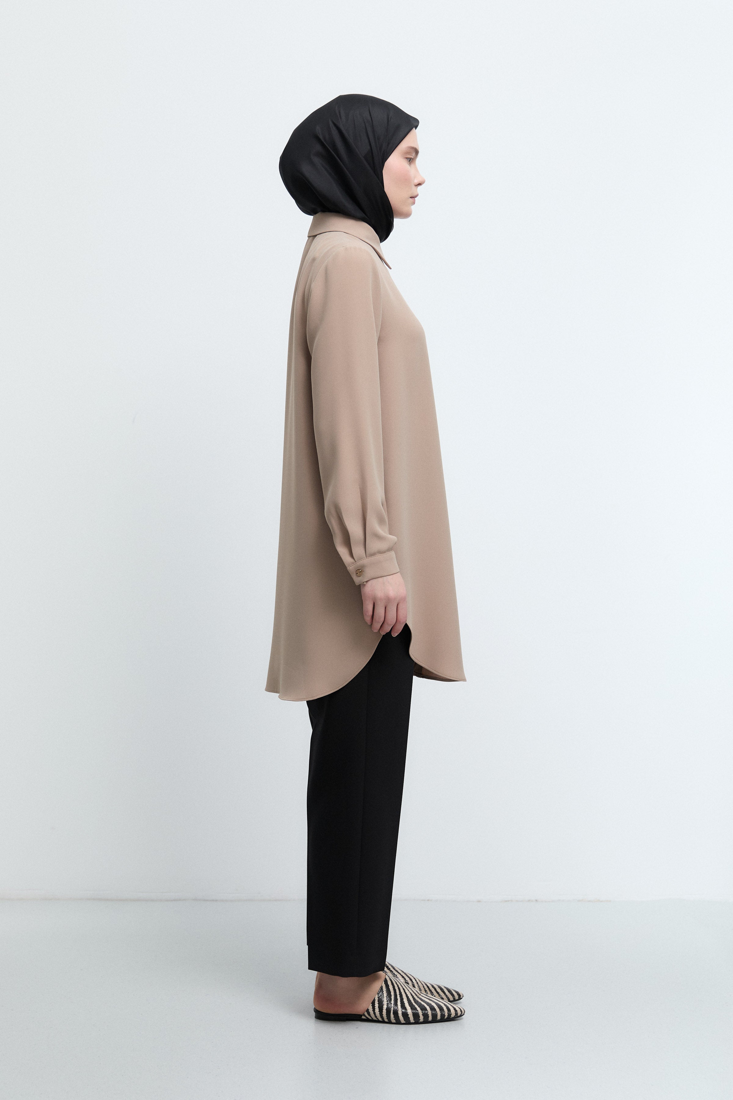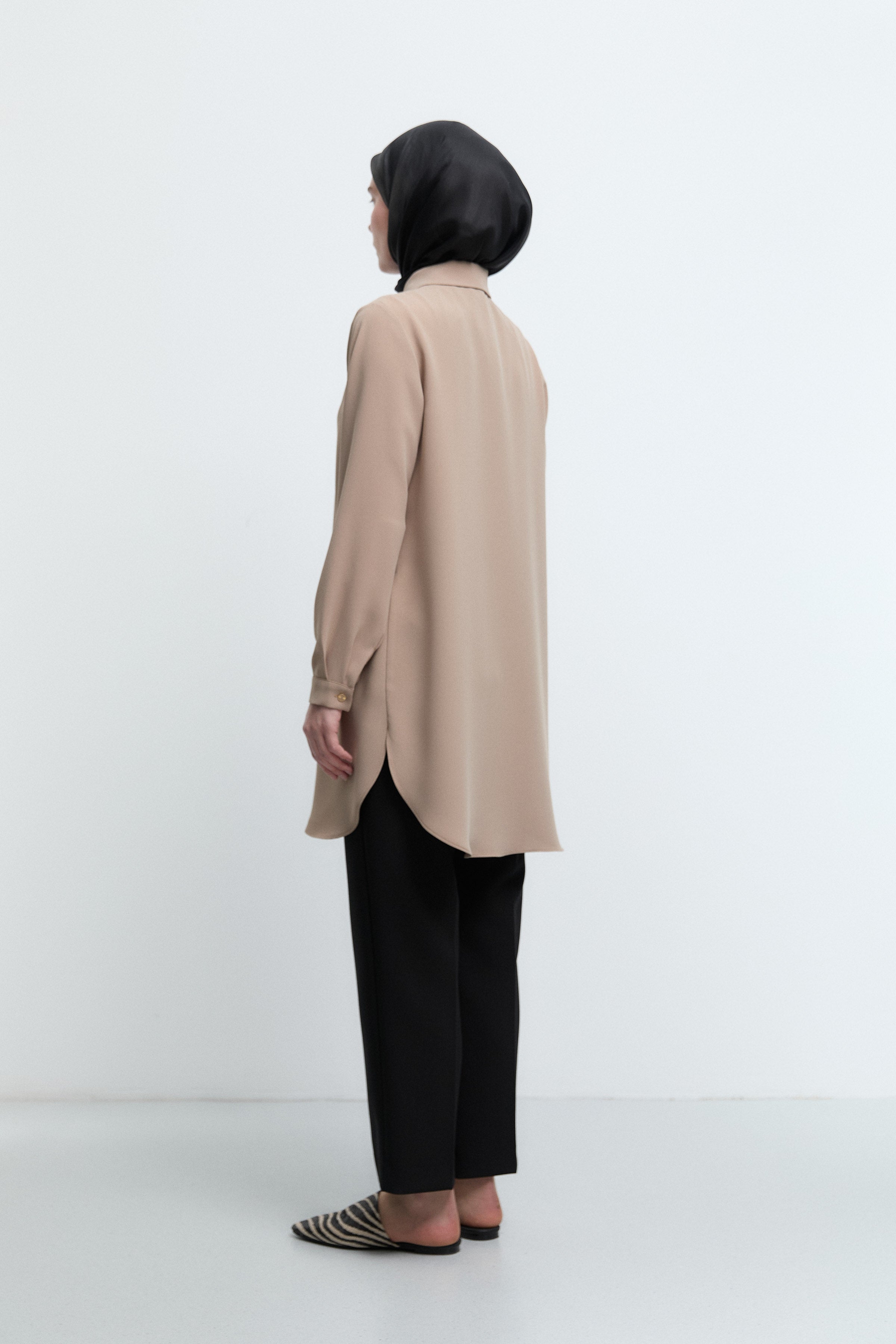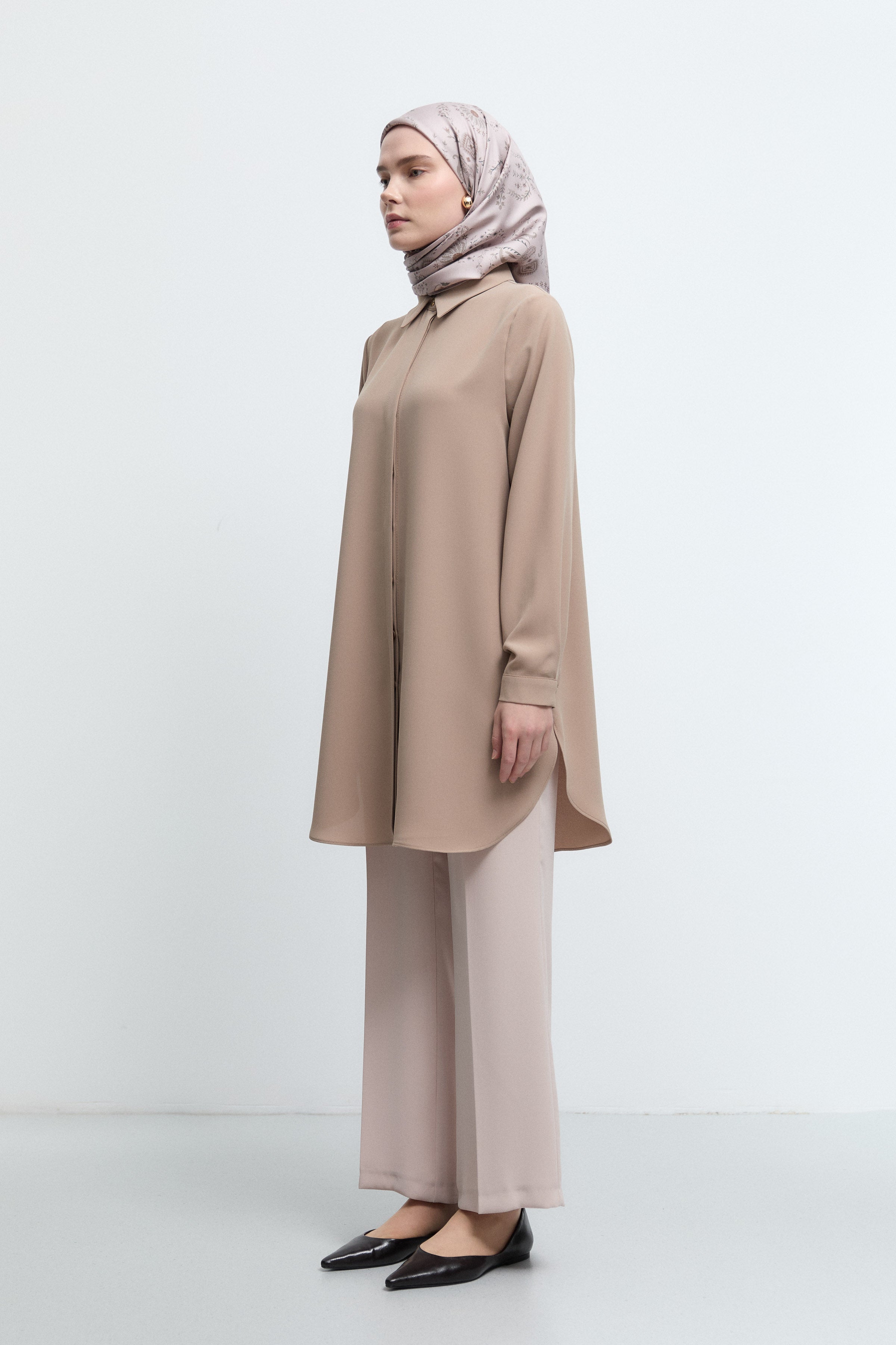 Tunique basic à patte de boutonnage cachée - Taupe