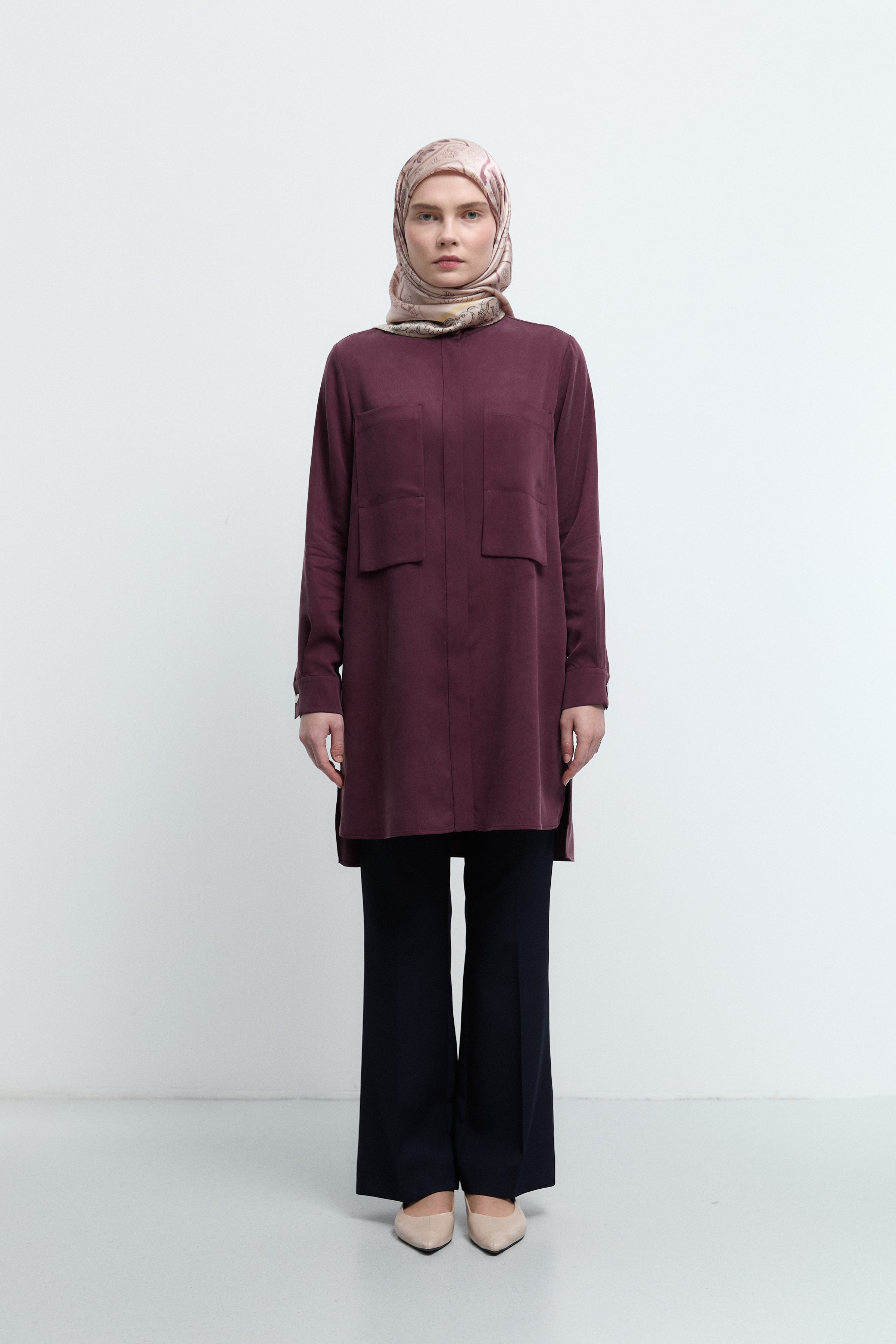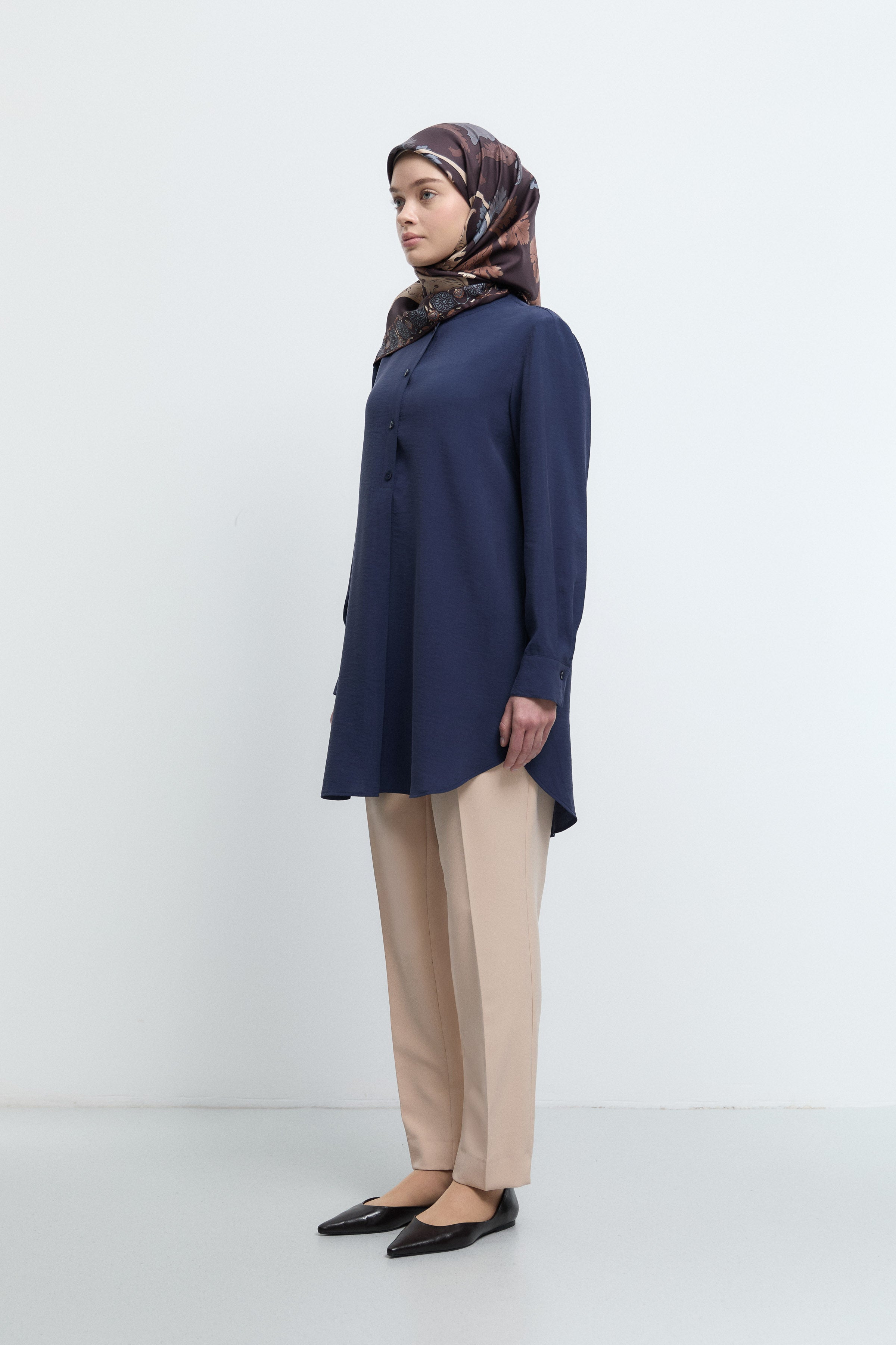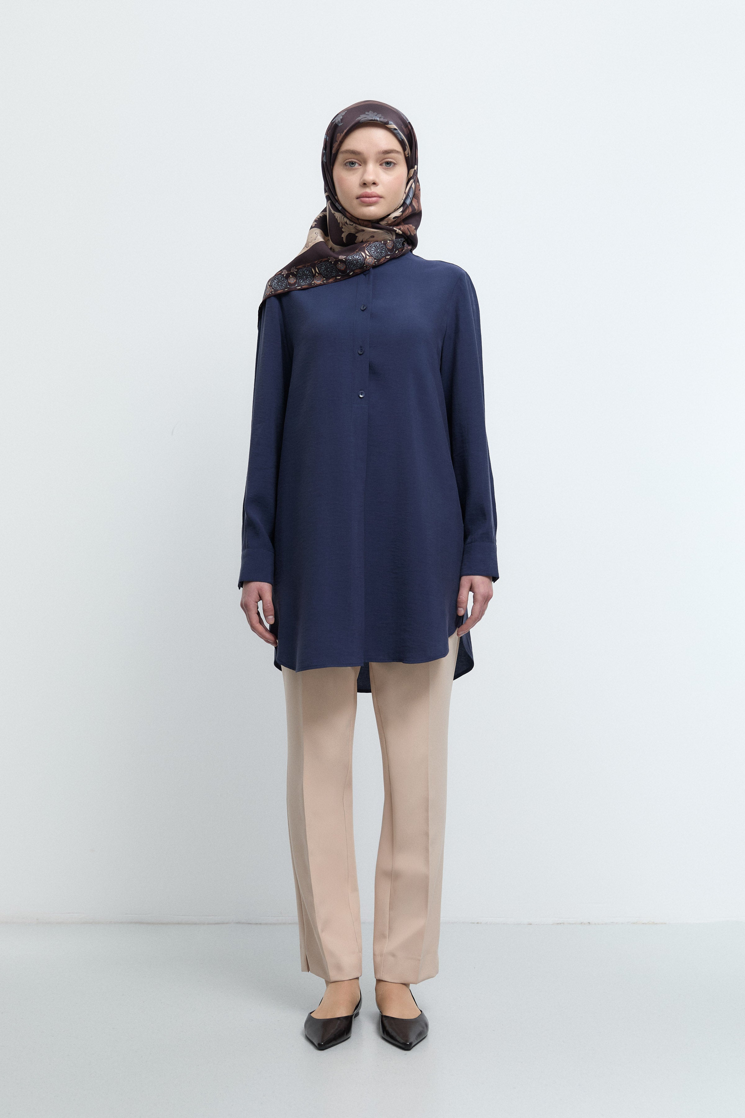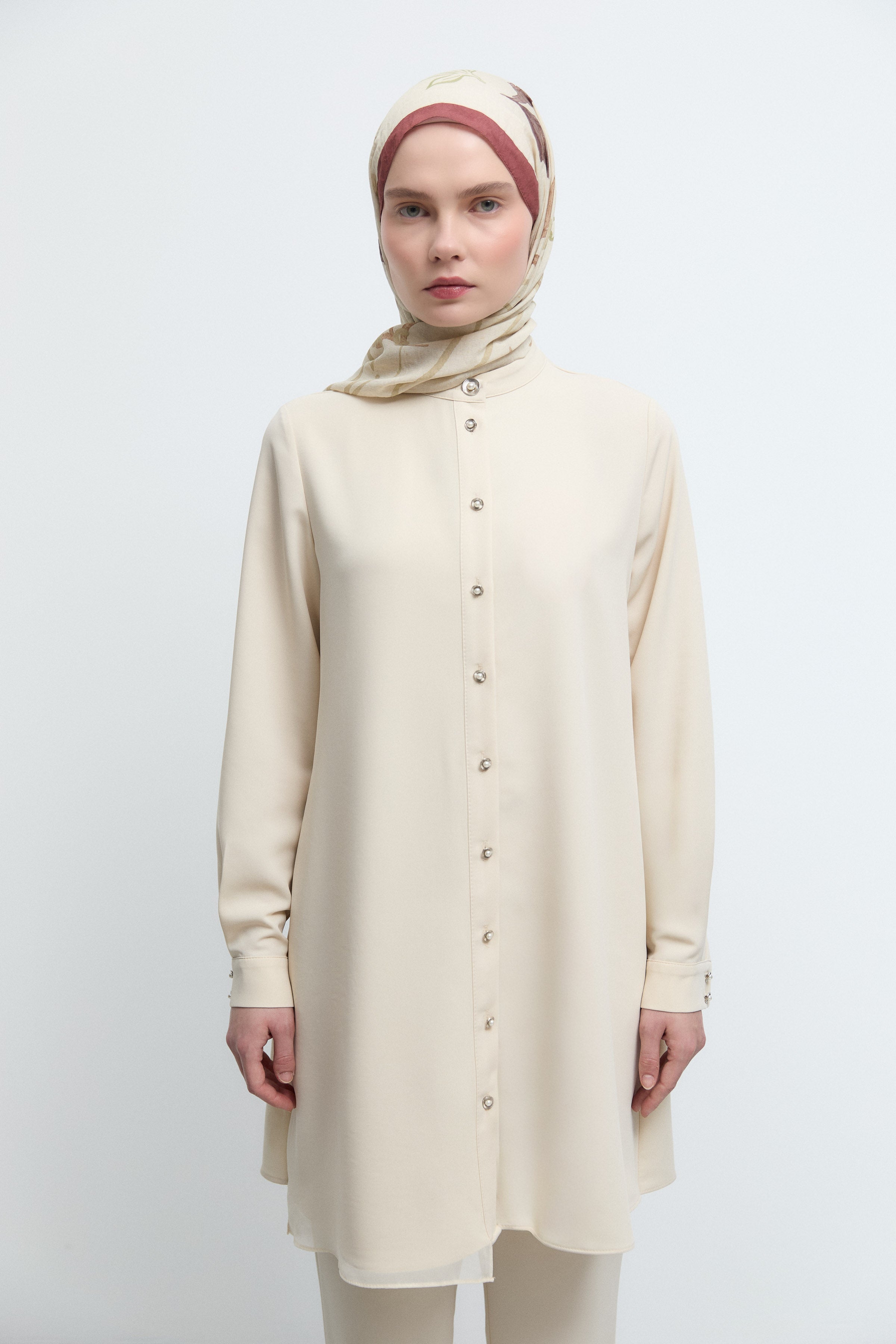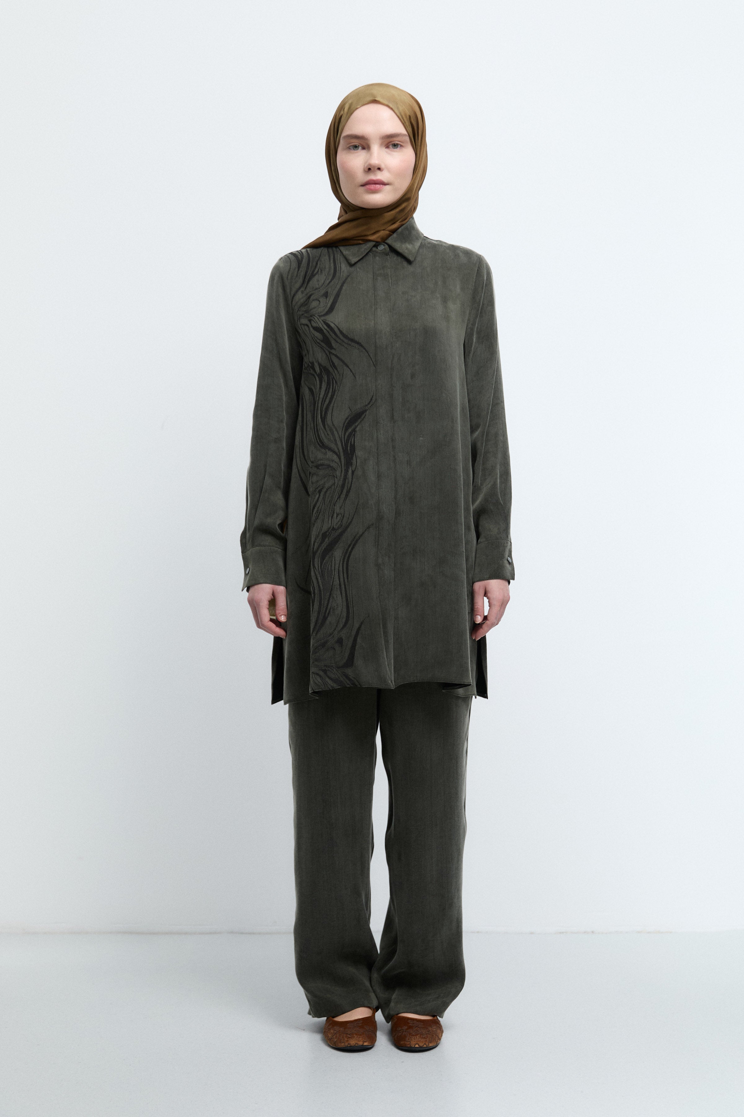 Tunique basic à patte de boutonnage cachée - Taupe