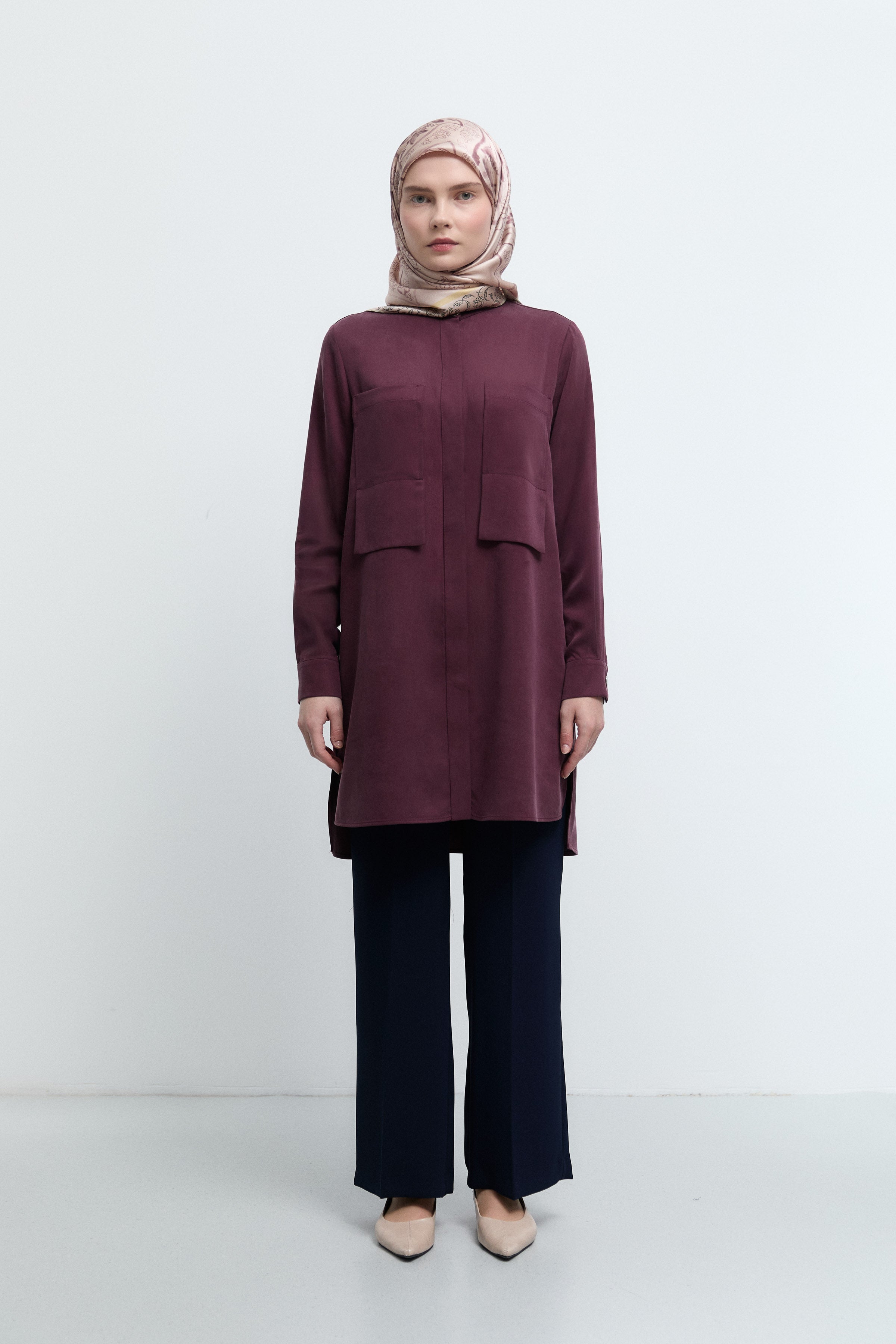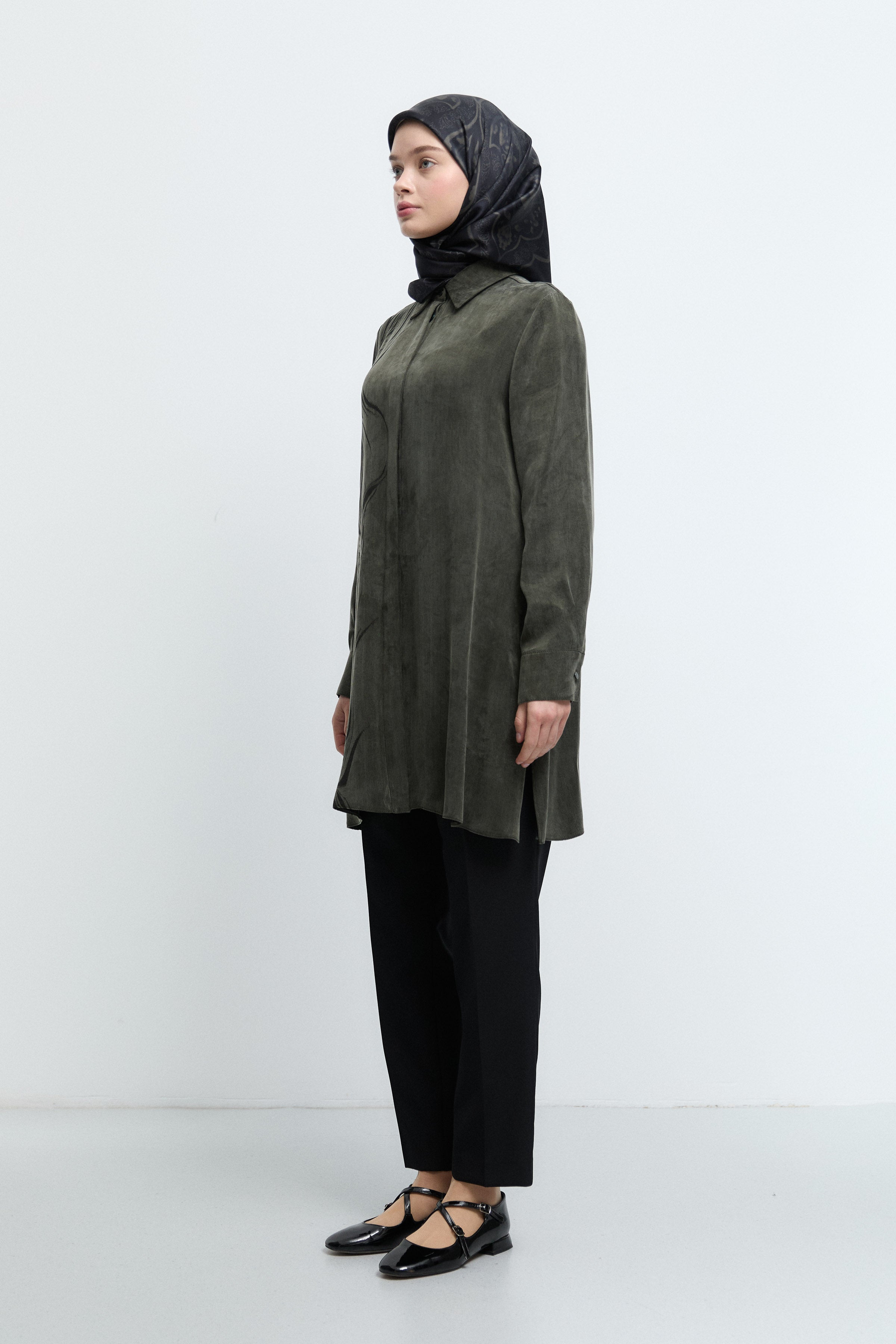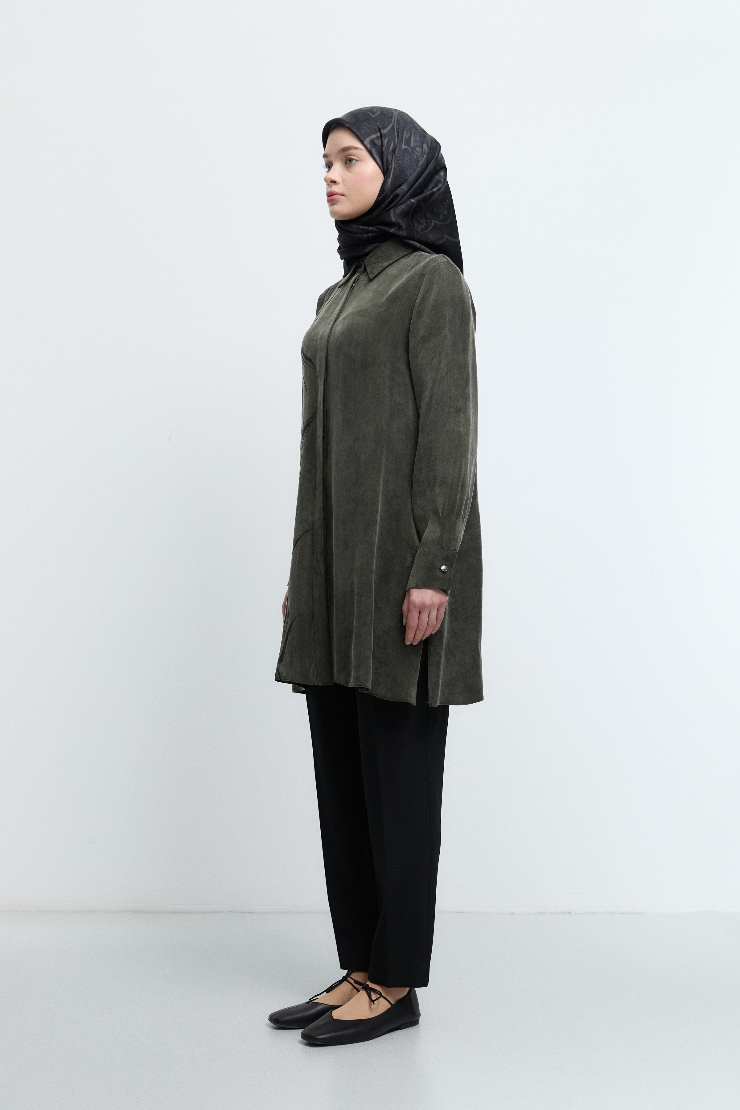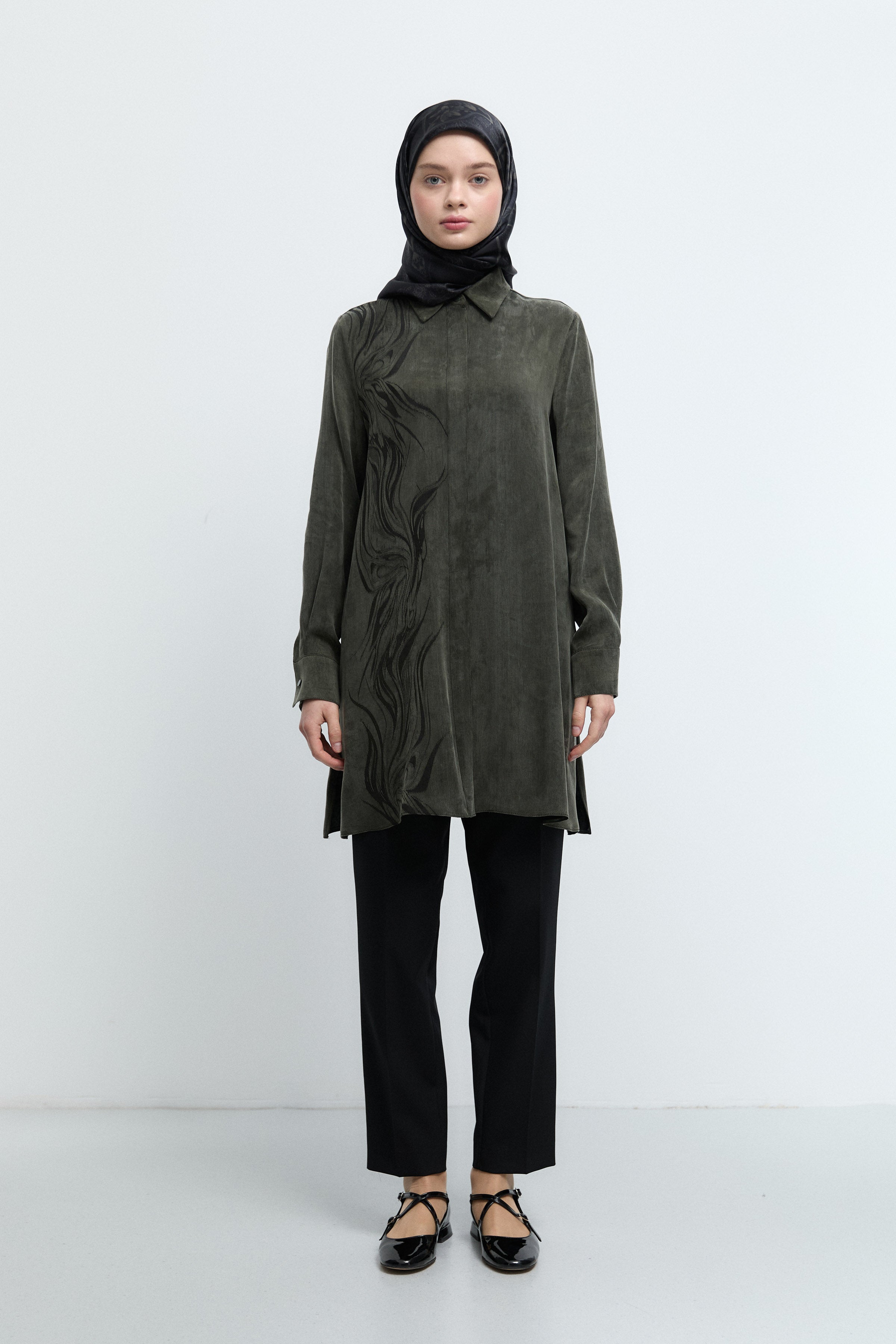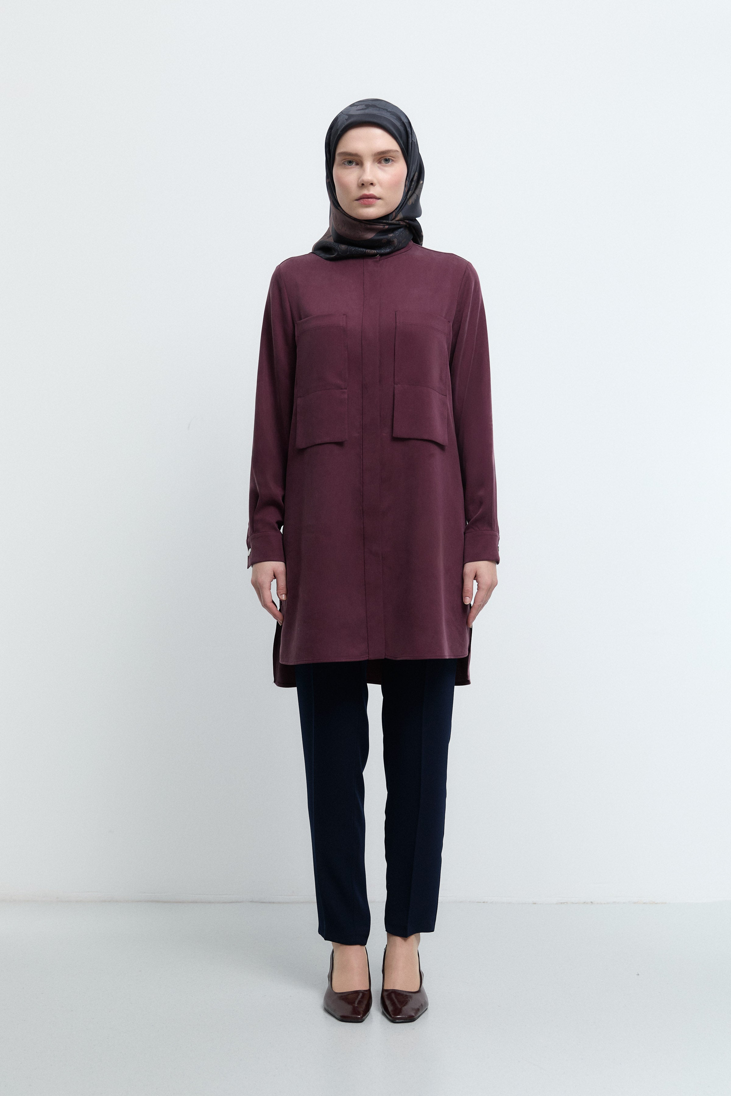 Tunique basic à patte de boutonnage cachée - Taupe