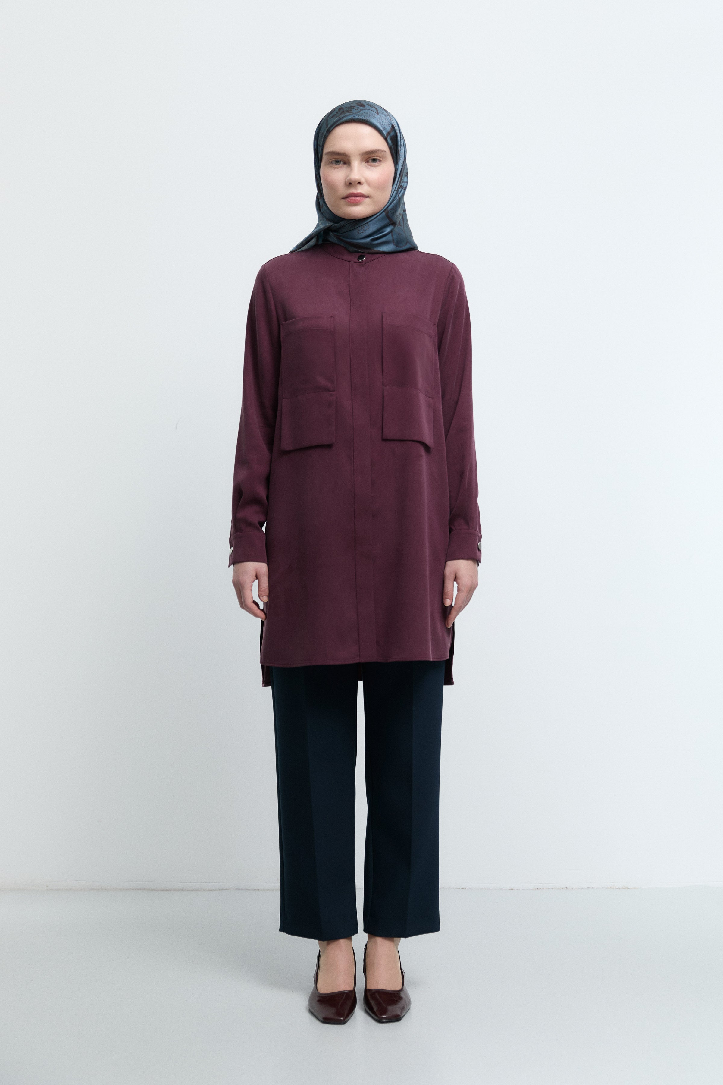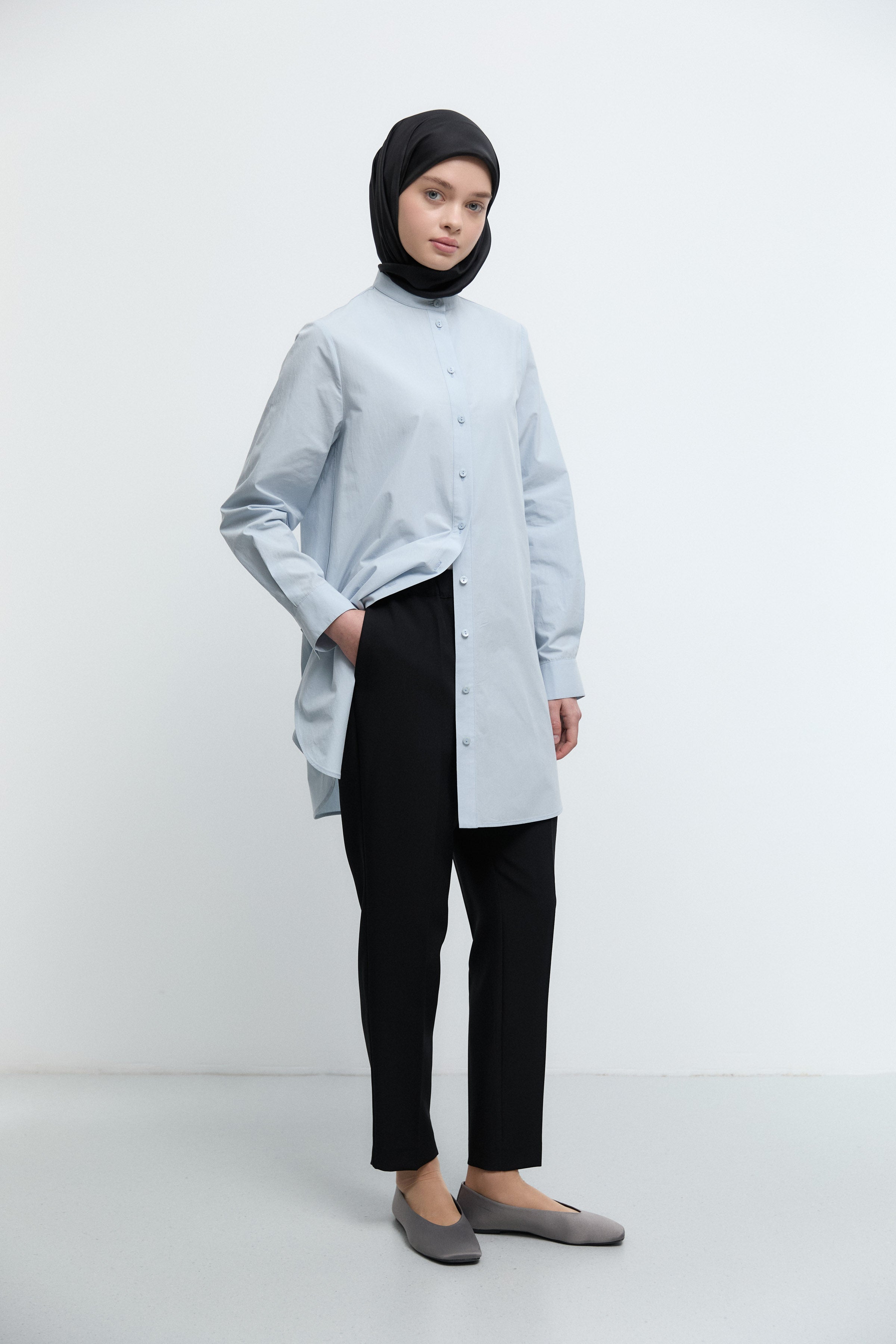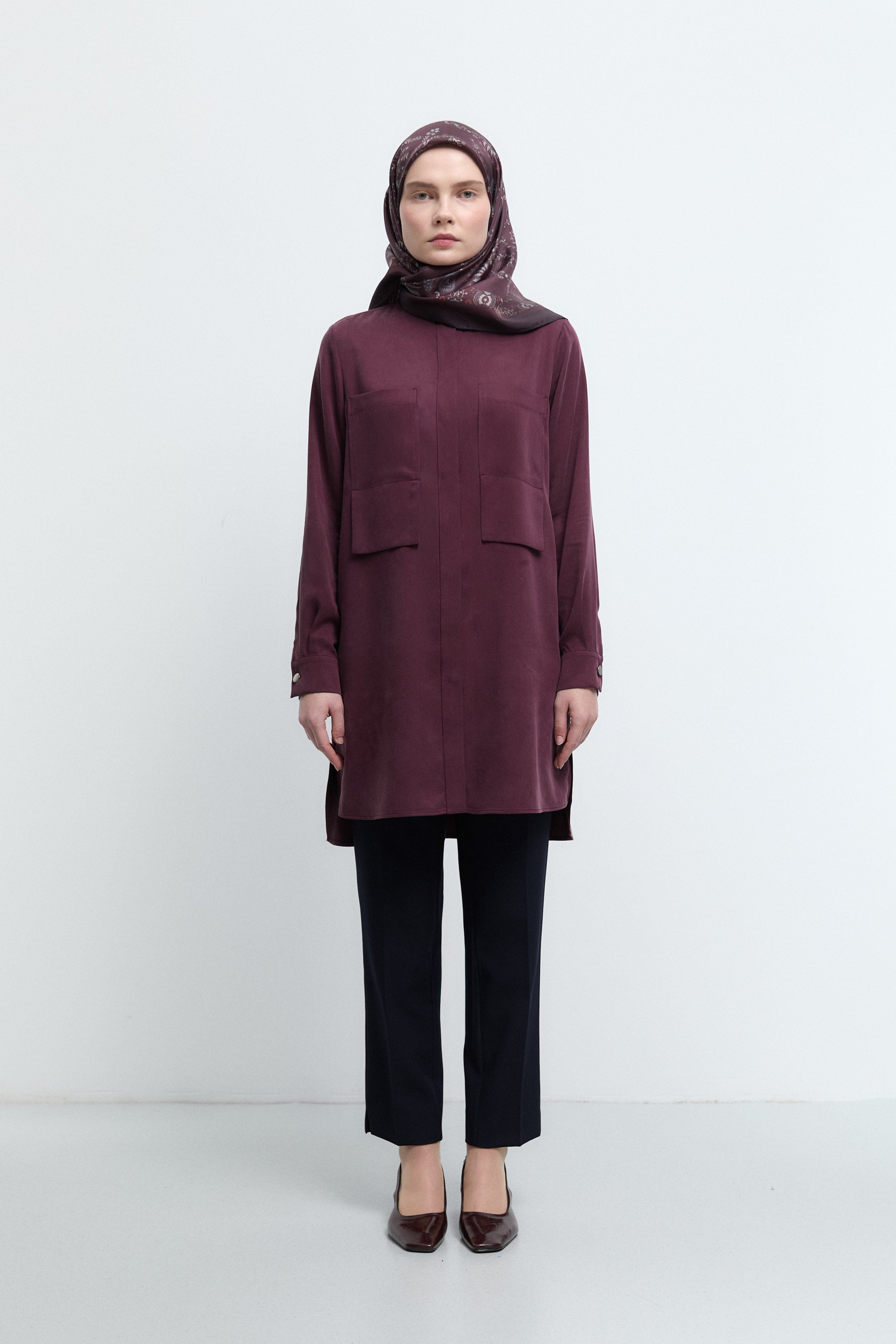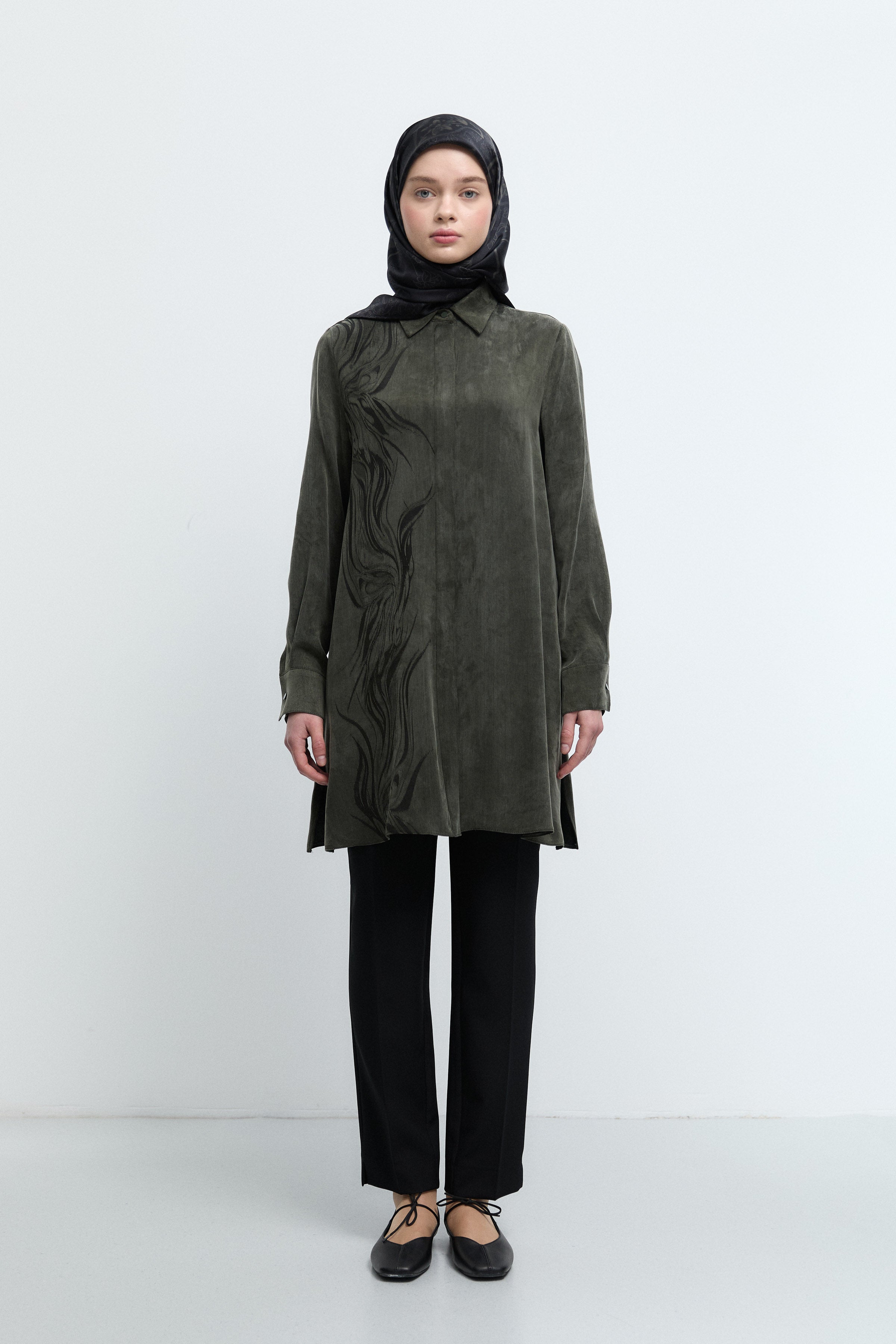 Tunique basic à patte de boutonnage cachée - Taupe