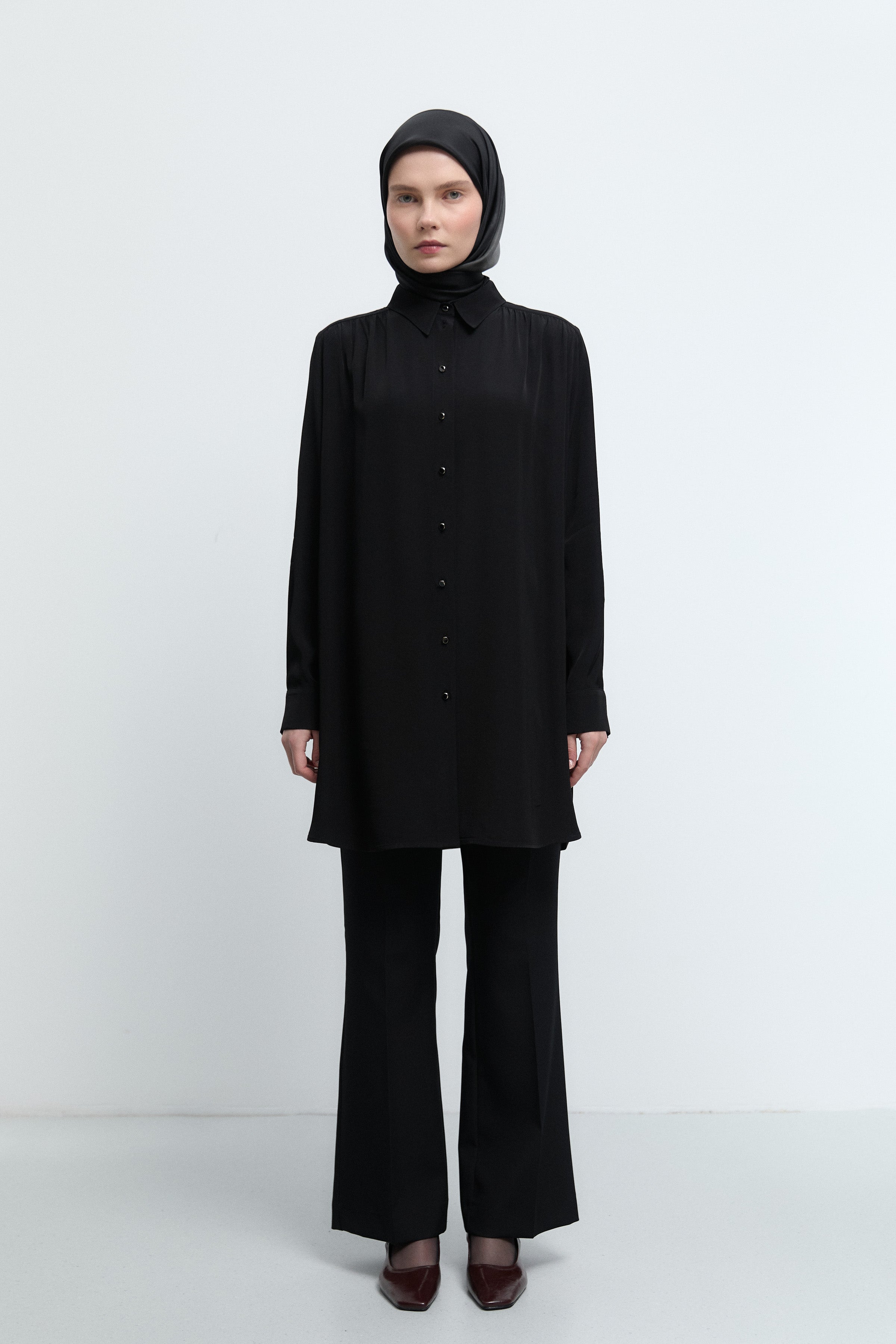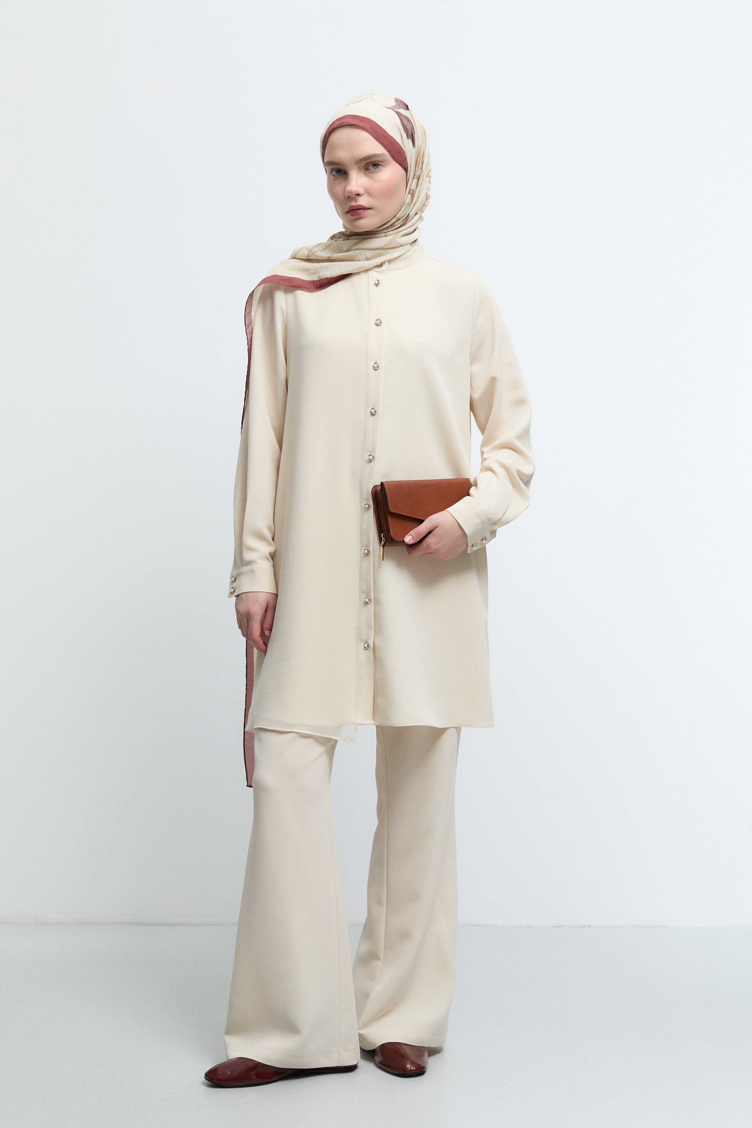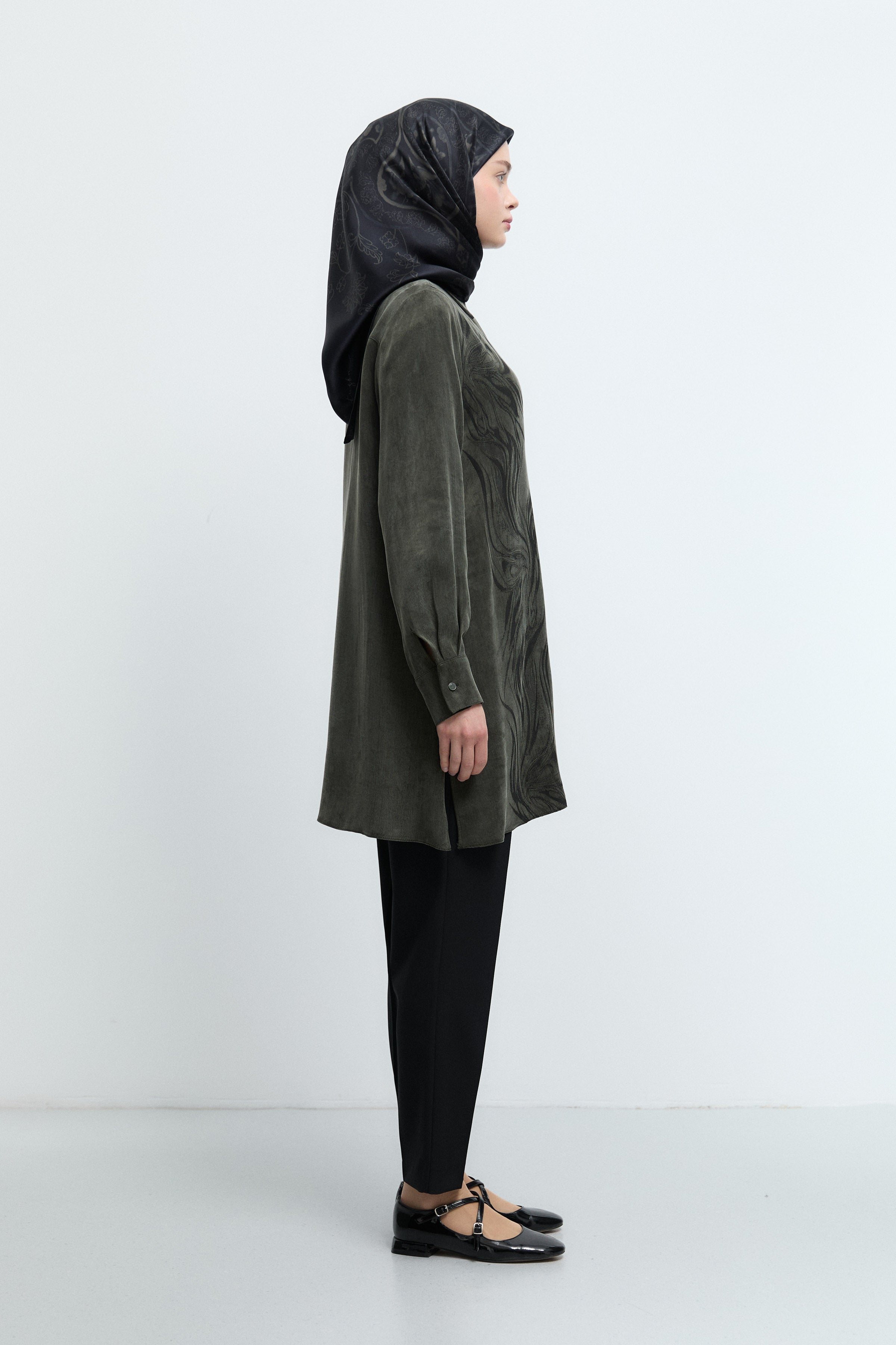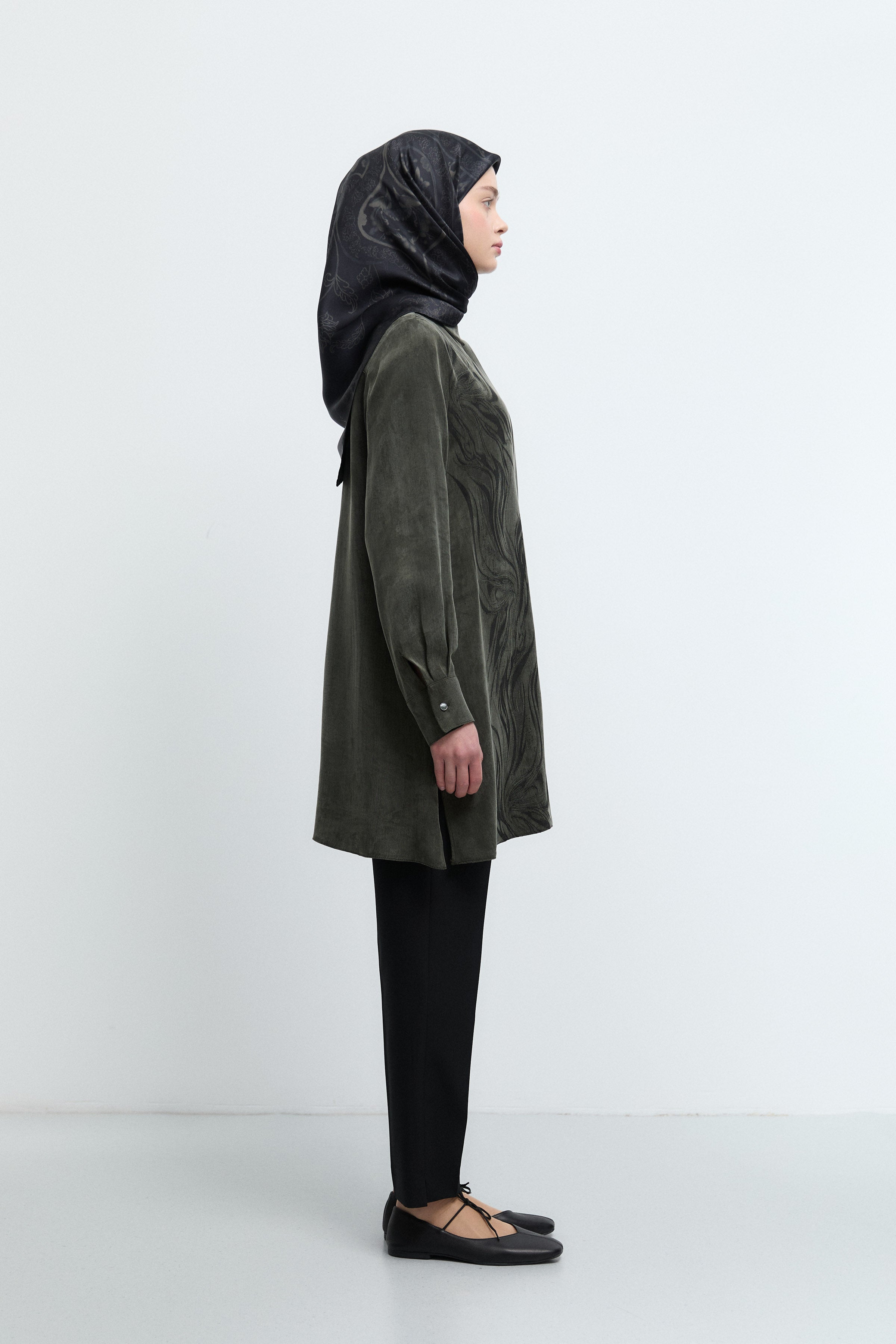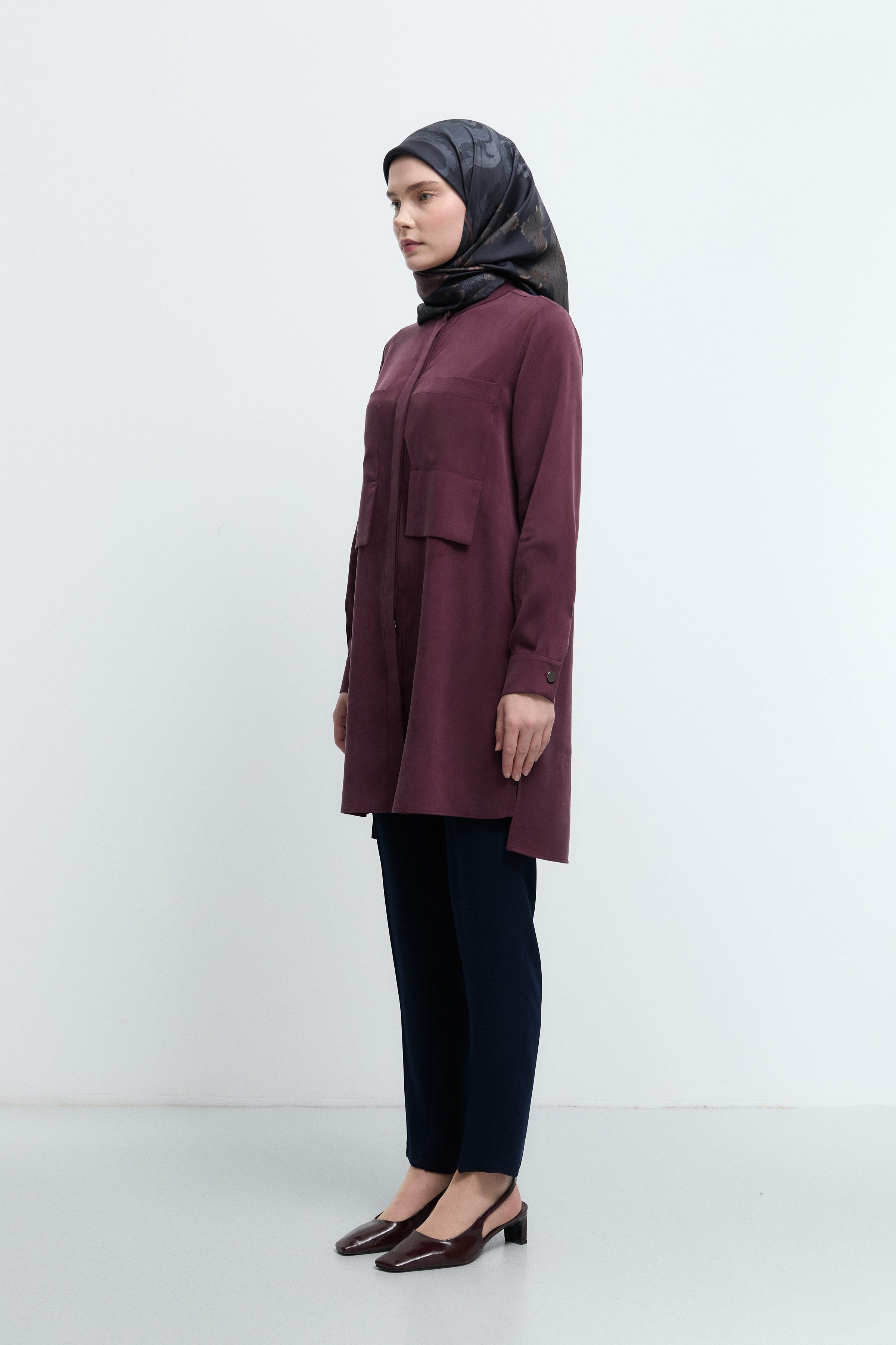 Tunique basic à patte de boutonnage cachée - Taupe