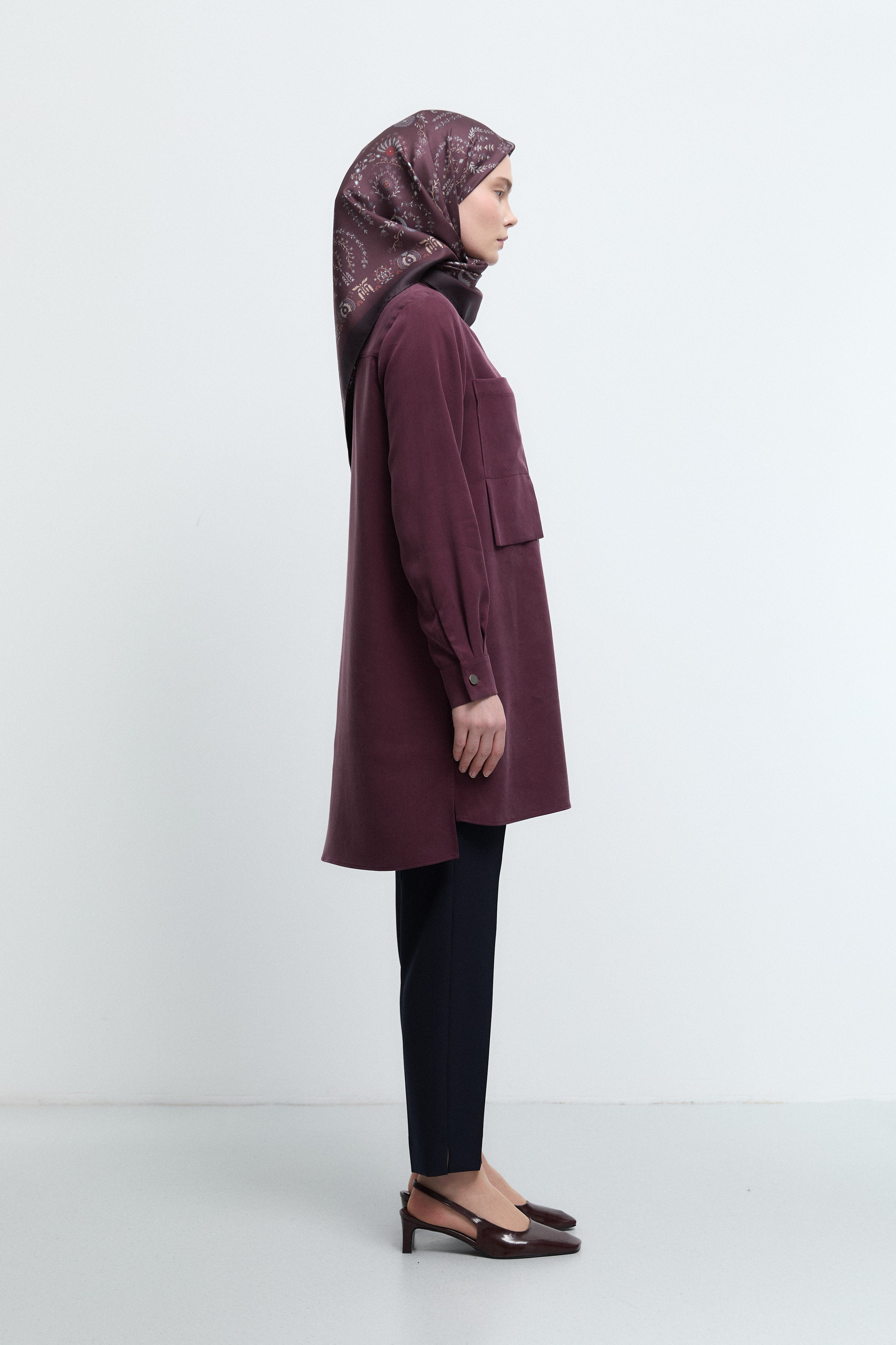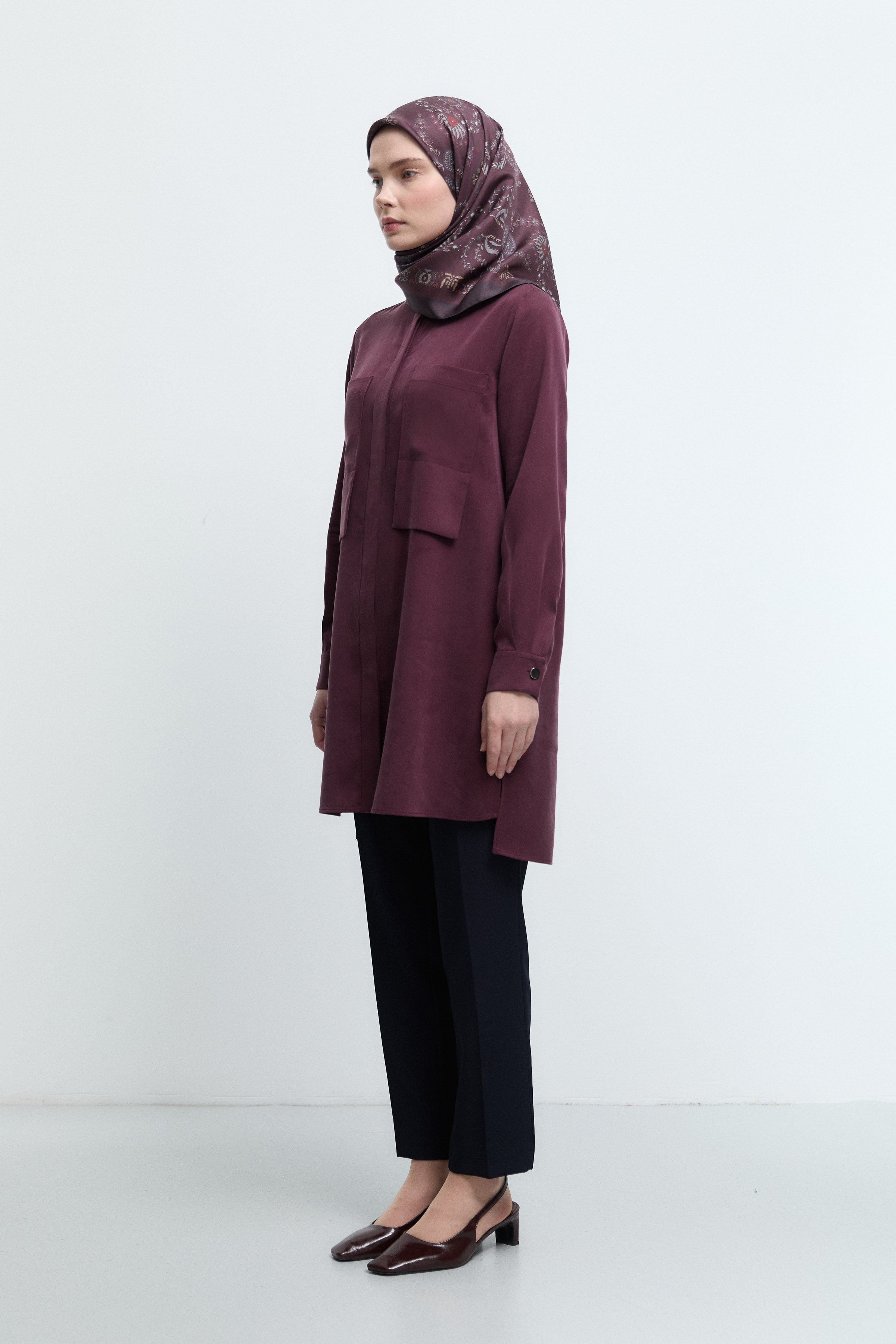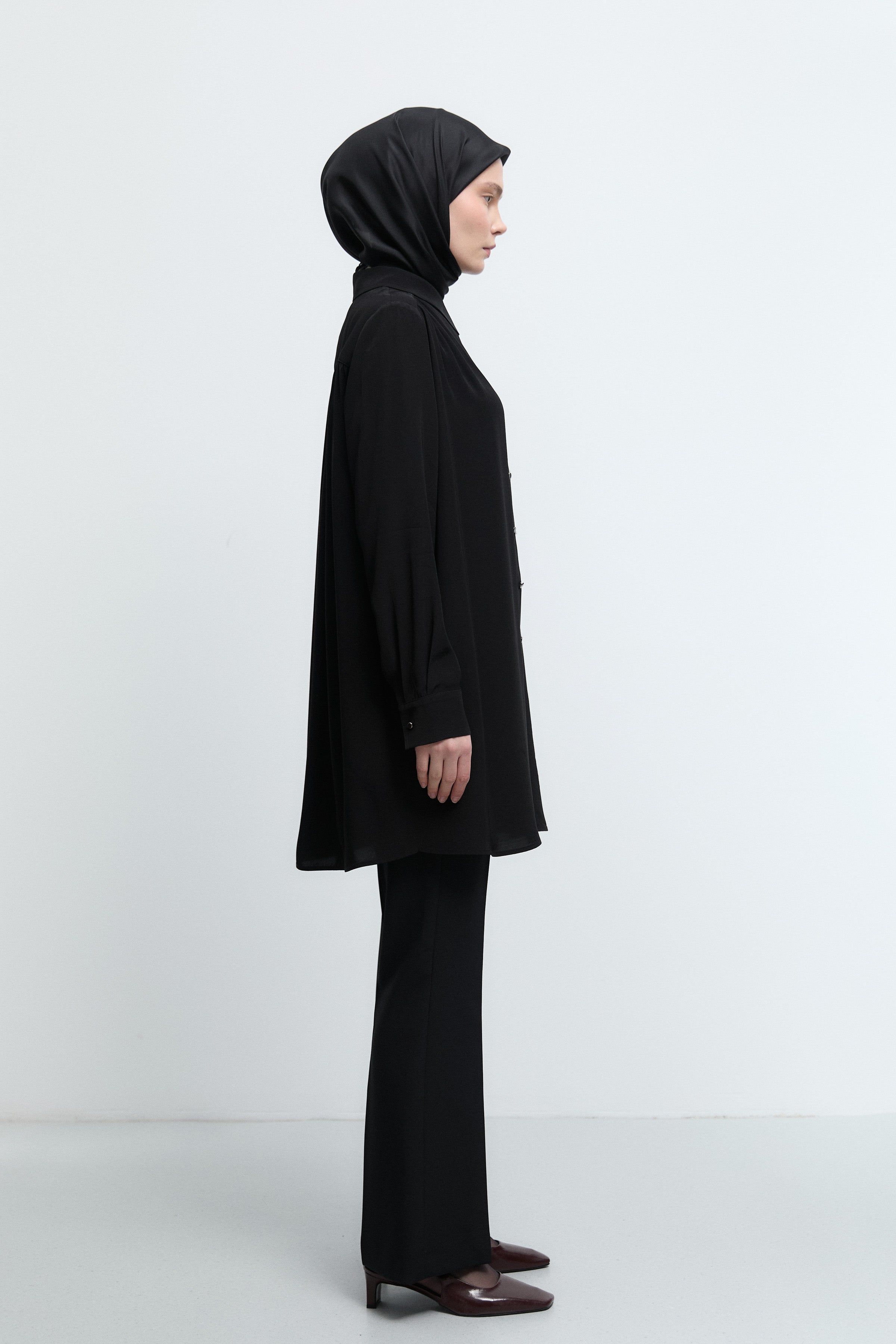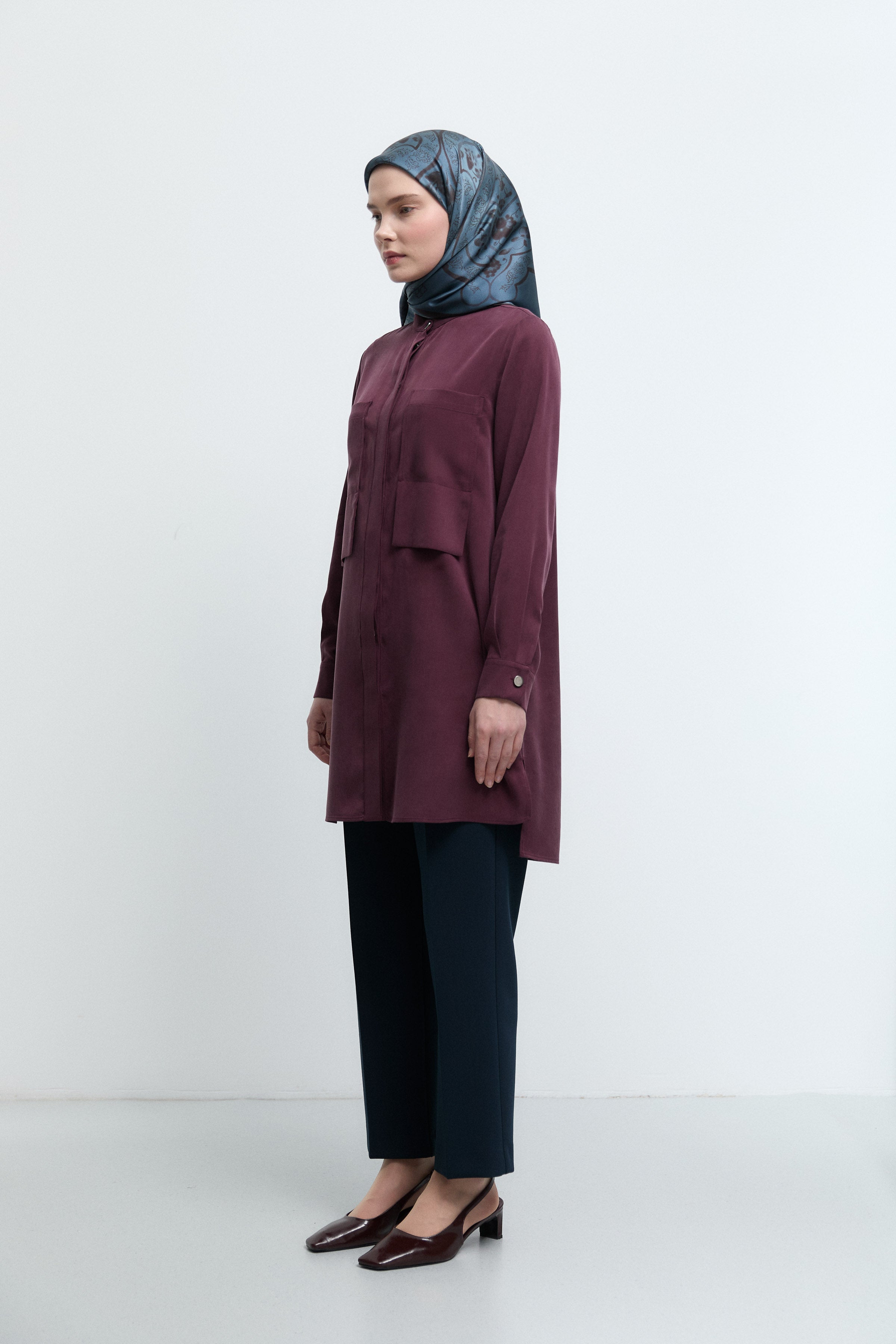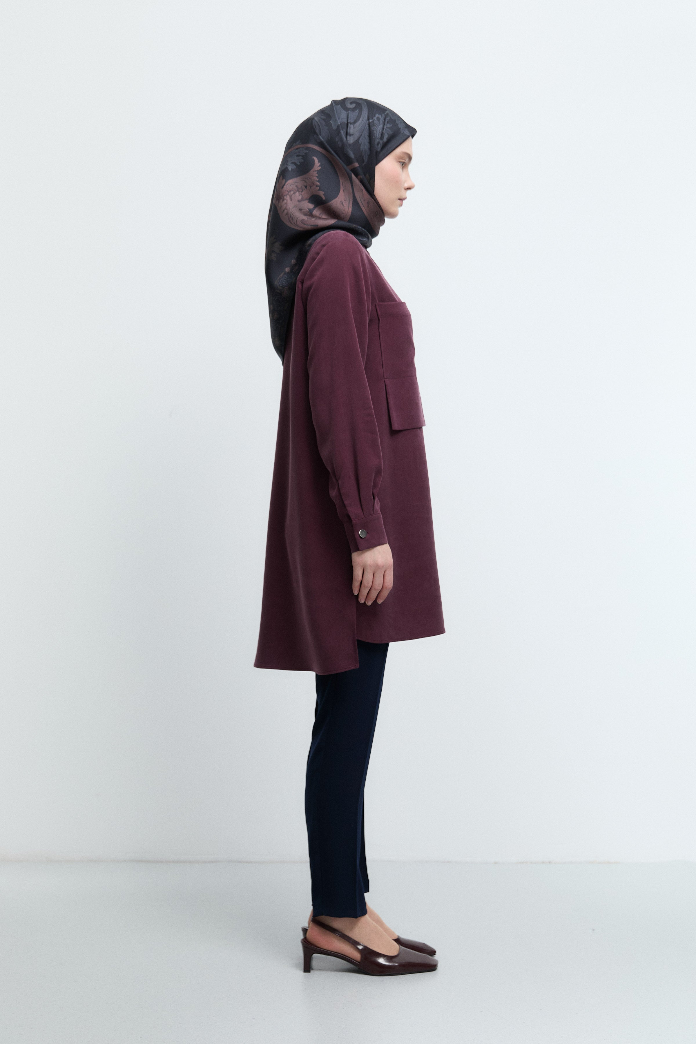 Tunique basic à patte de boutonnage cachée - Taupe