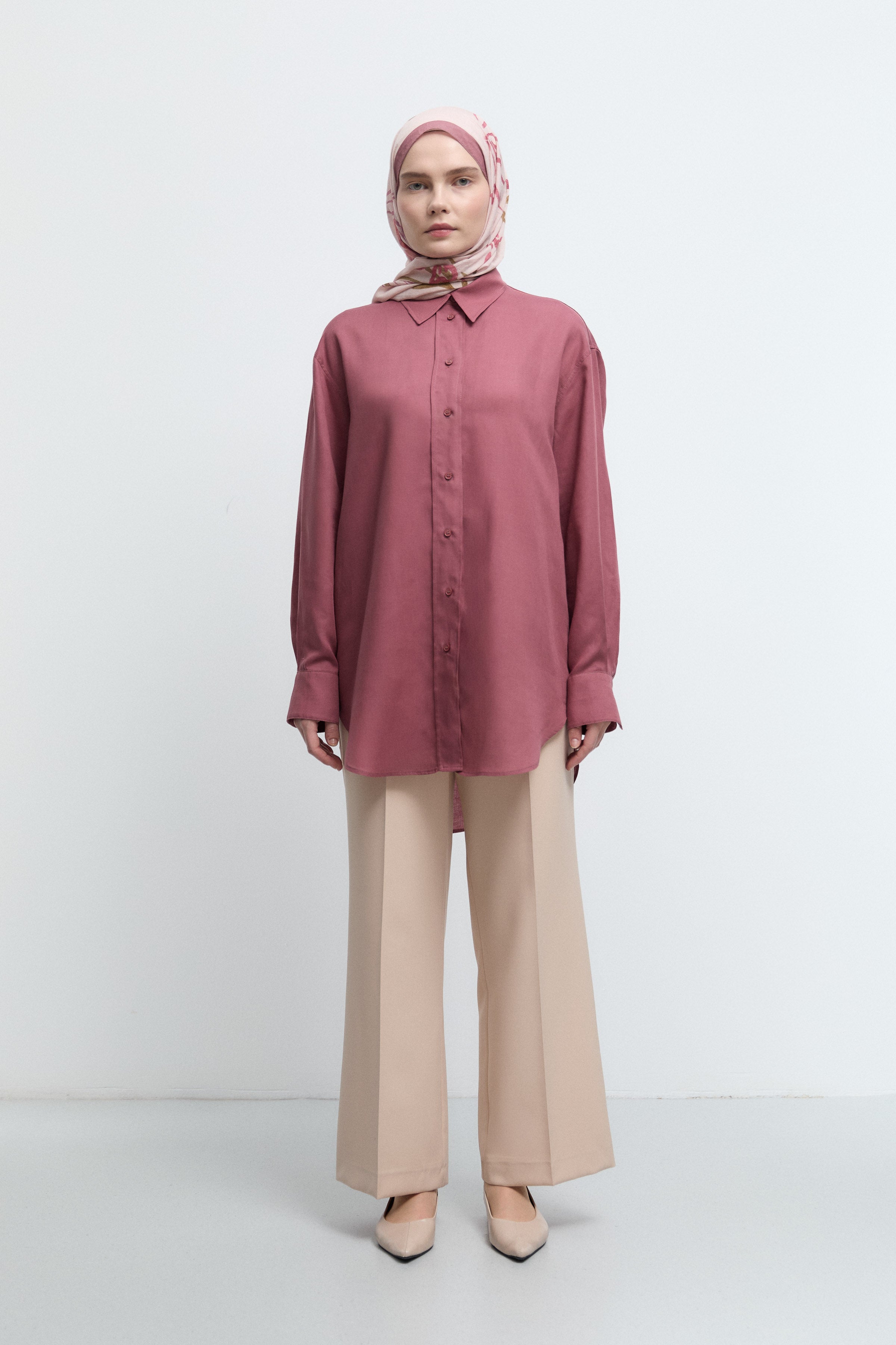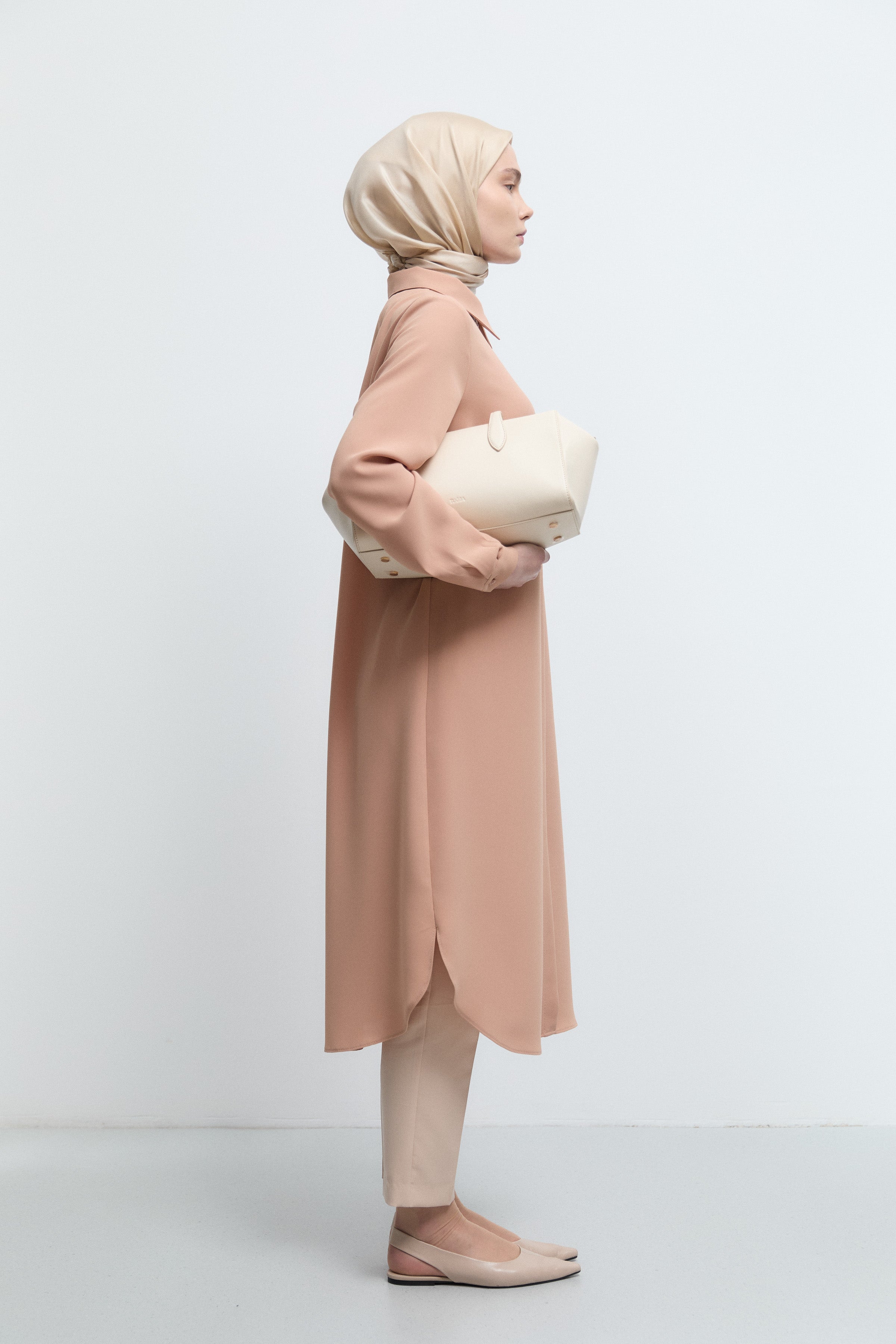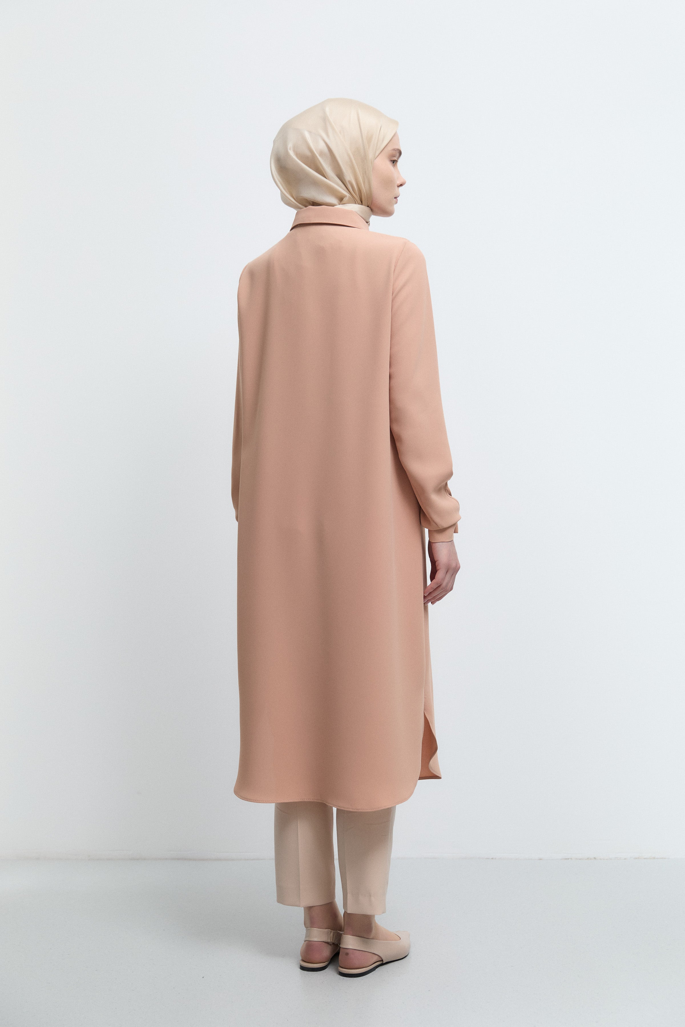 Tunique basic à patte de boutonnage cachée - Saumon