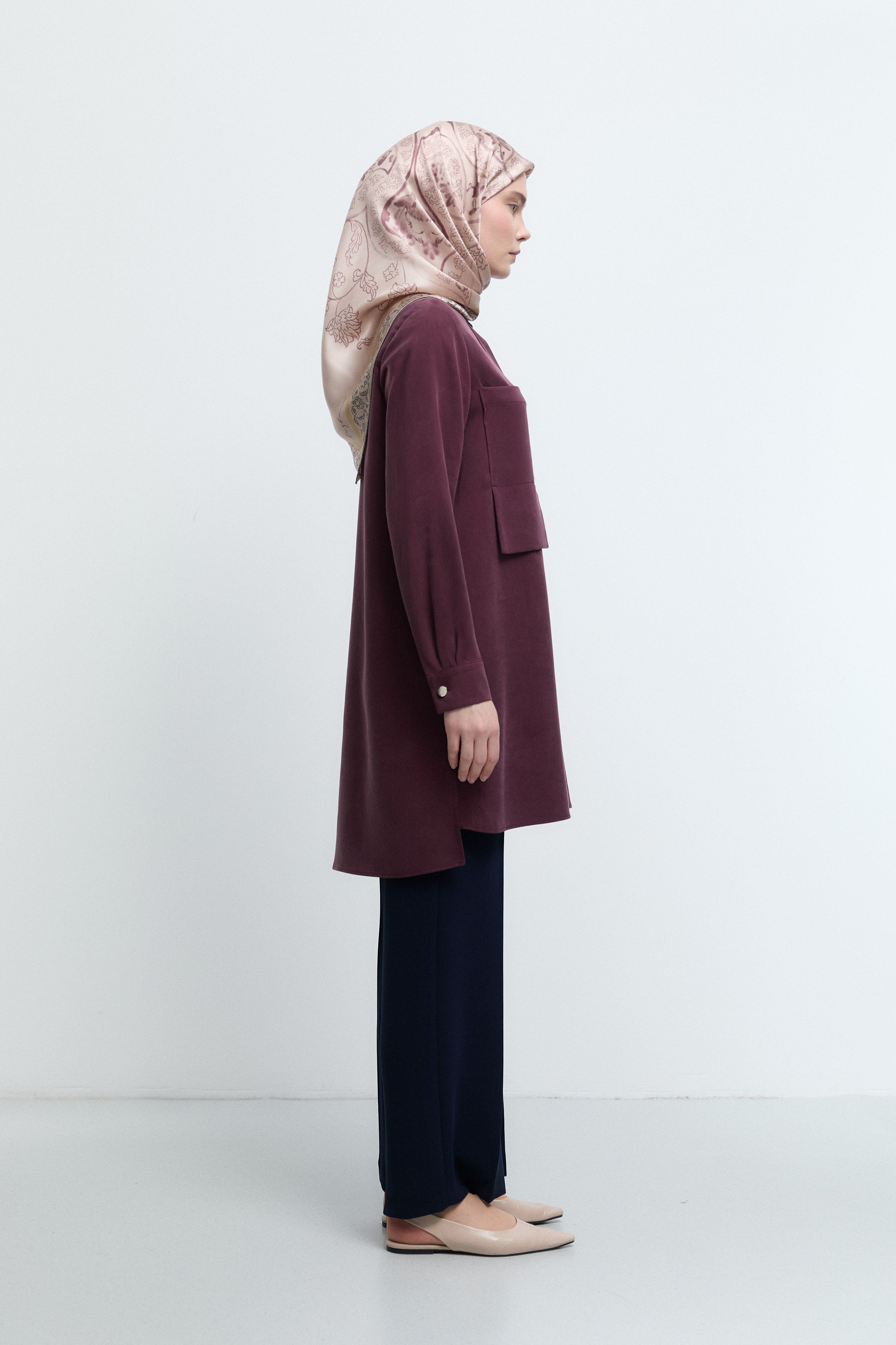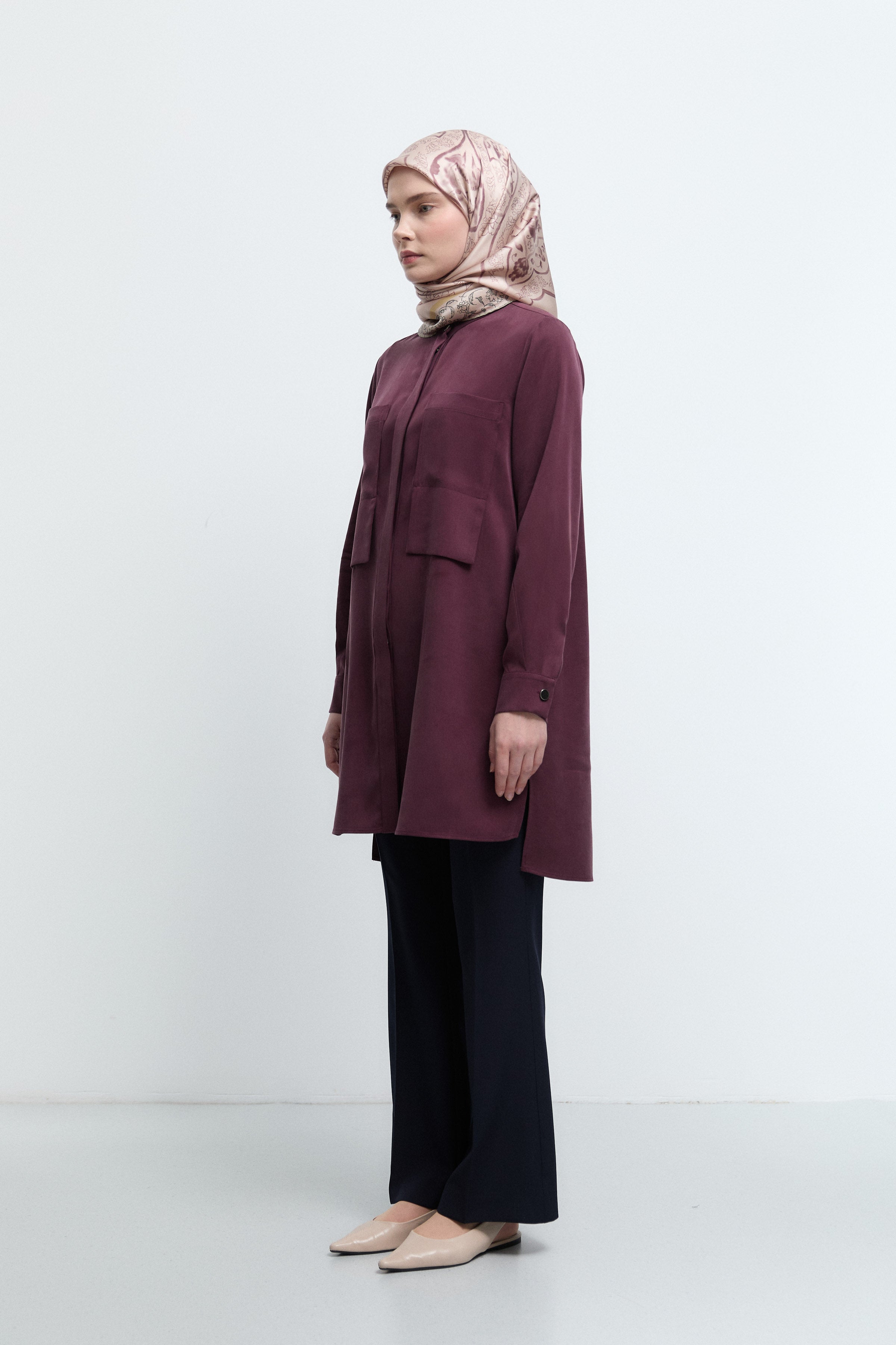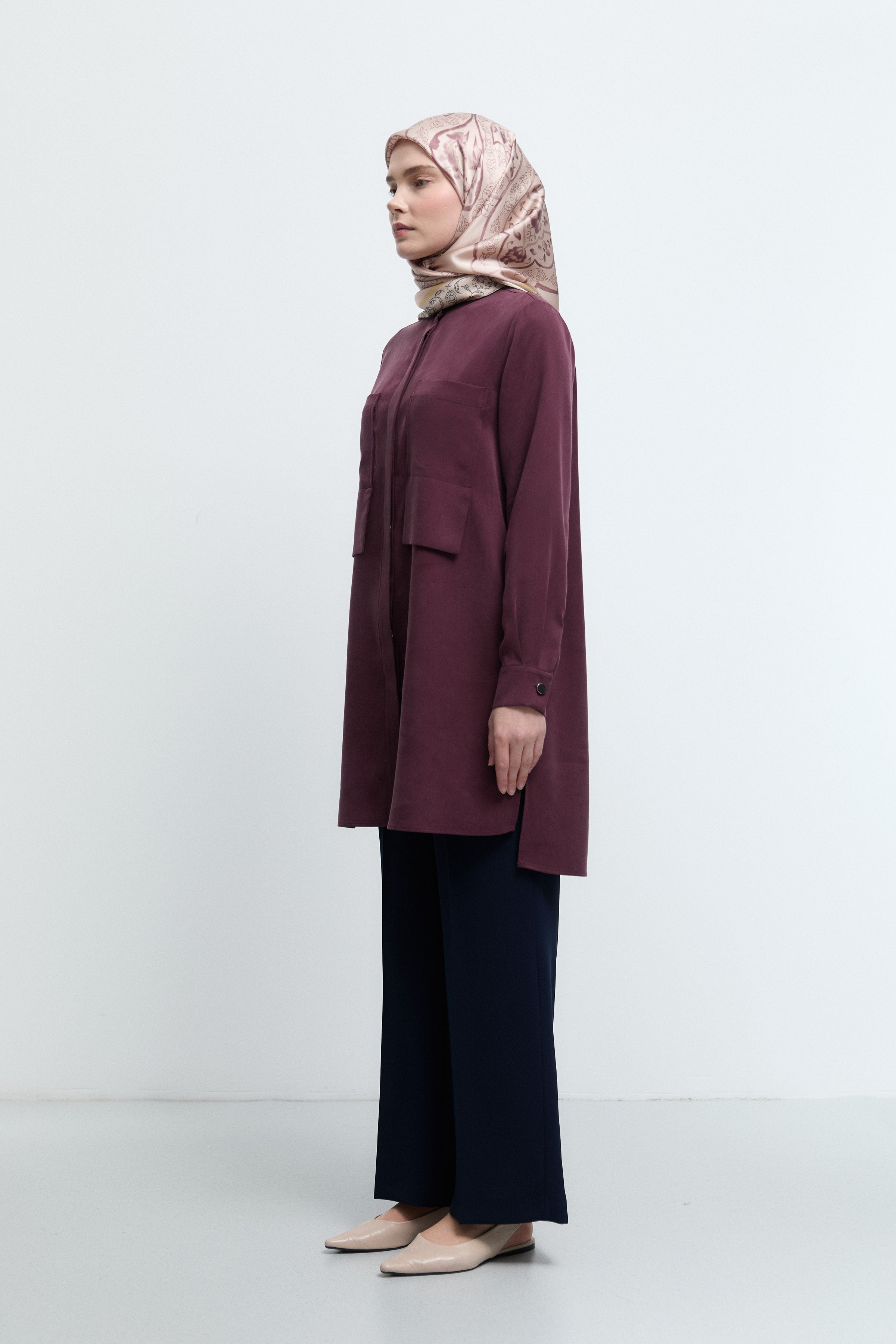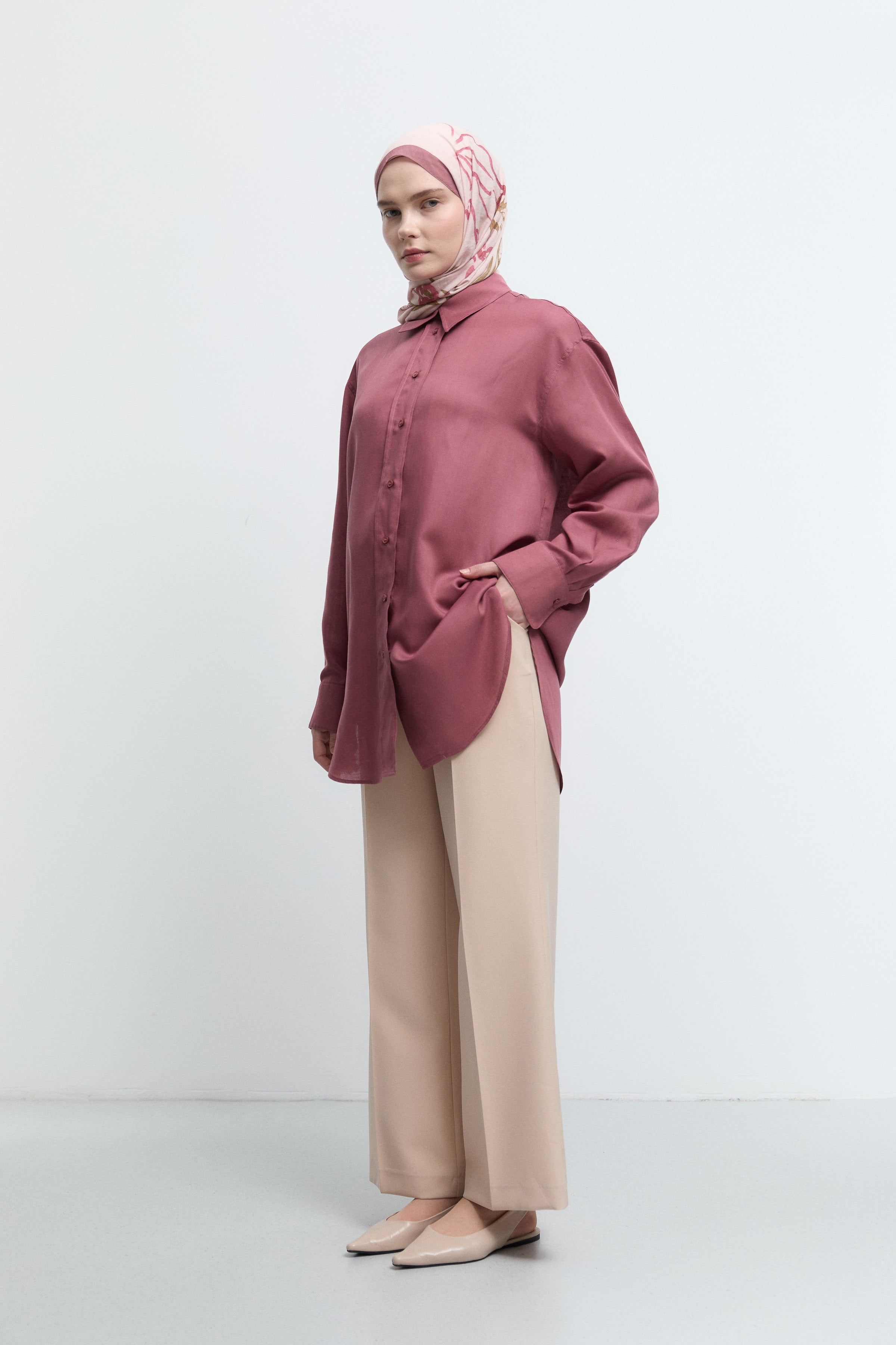 Tunique basic à patte de boutonnage cachée - Saumon