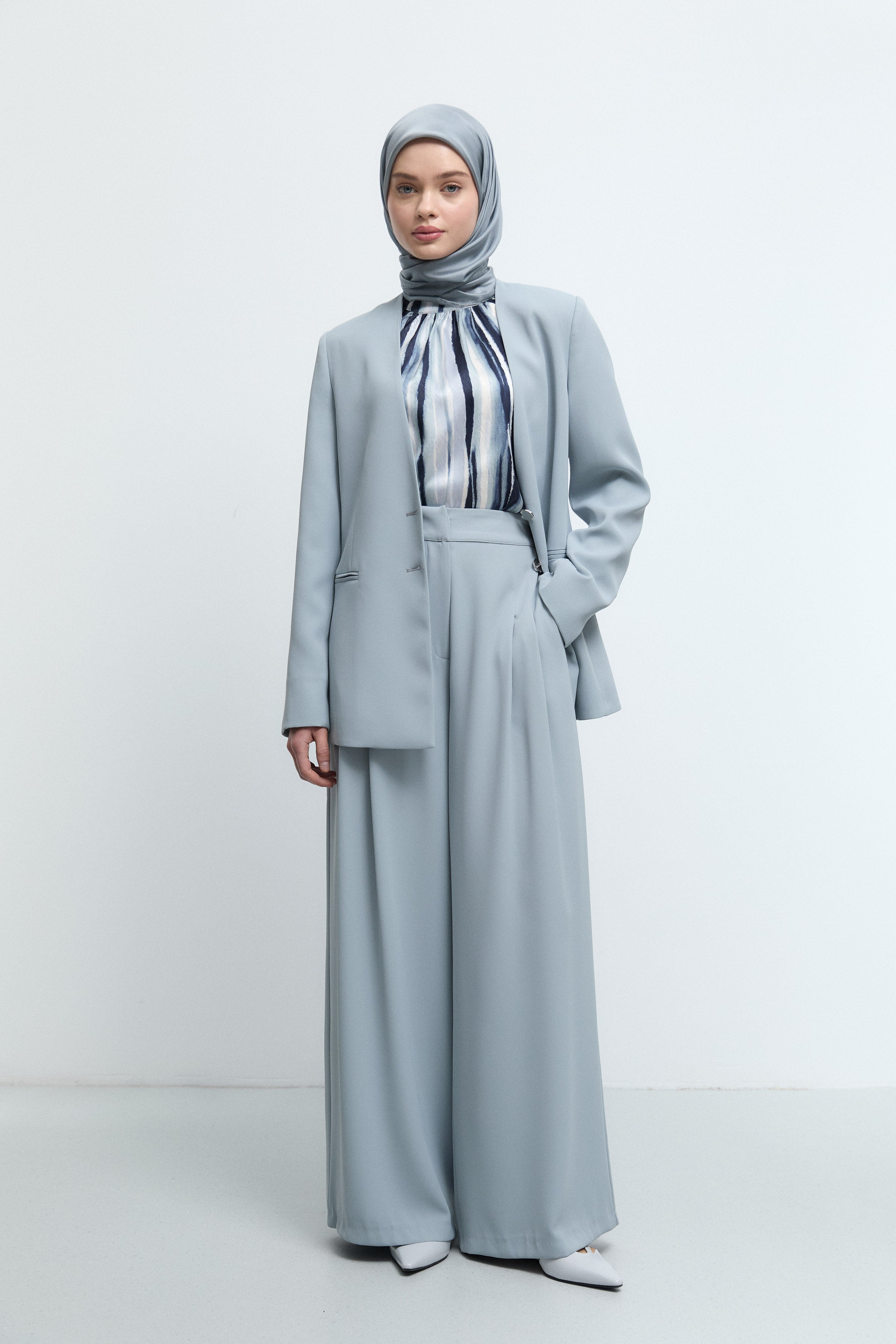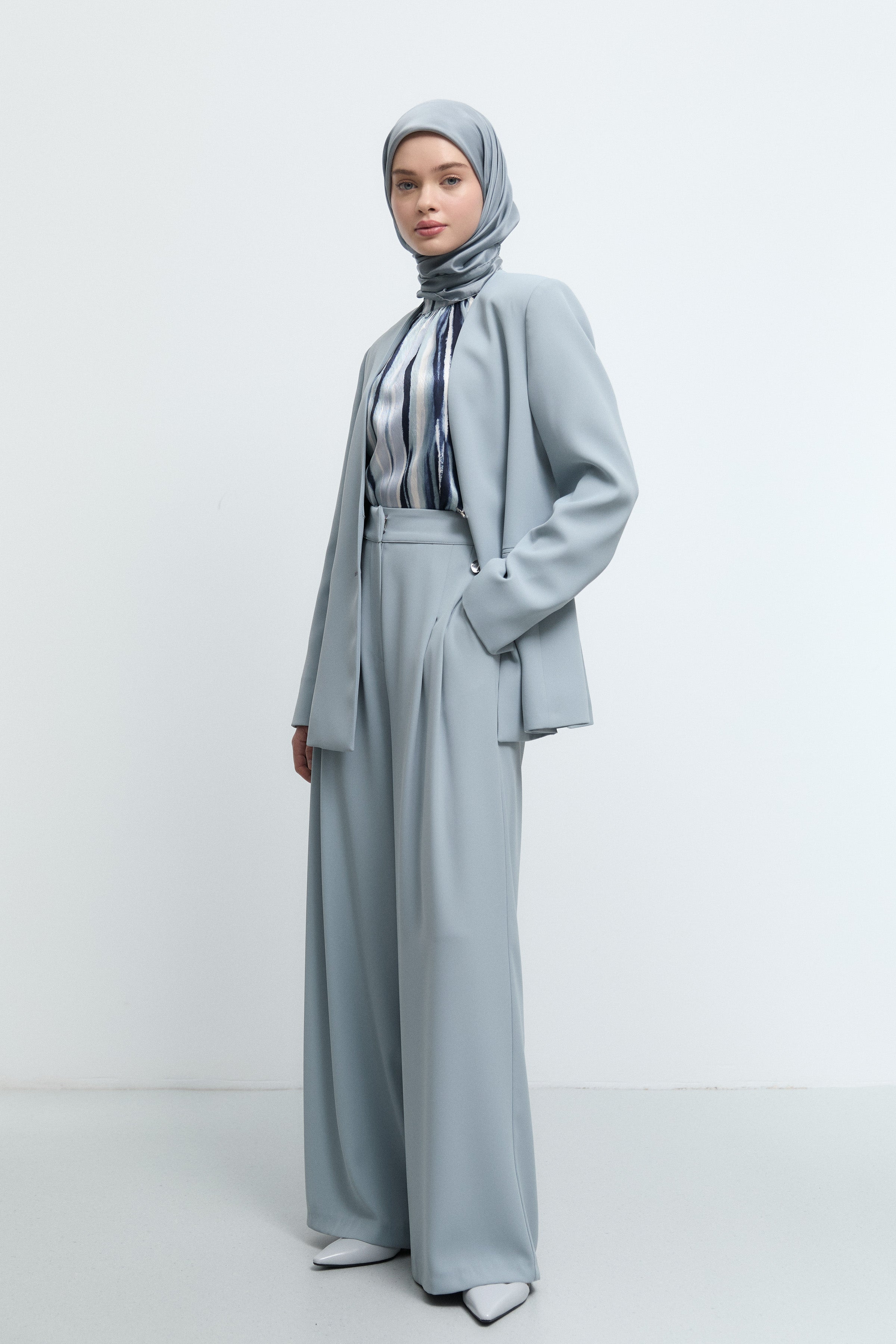 Pantalon plissé à taille élastiquée - Bleu clair