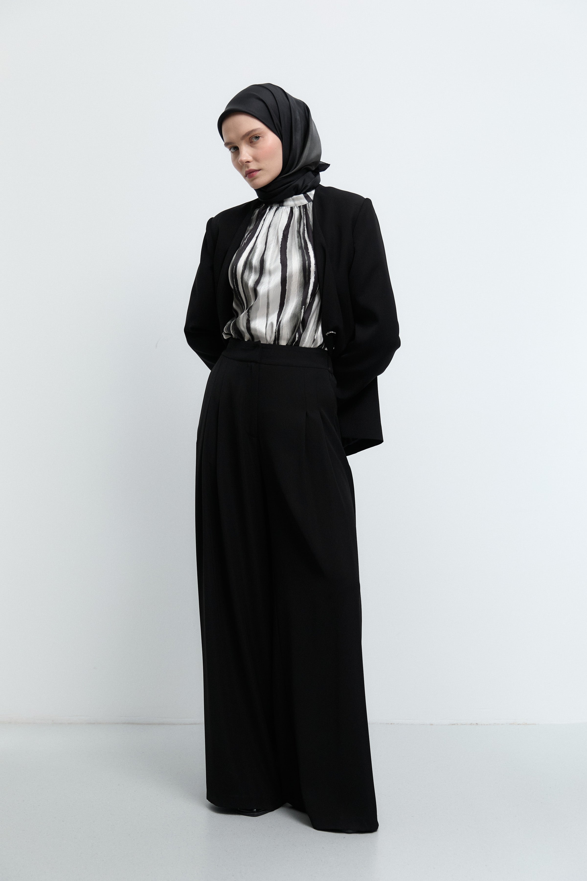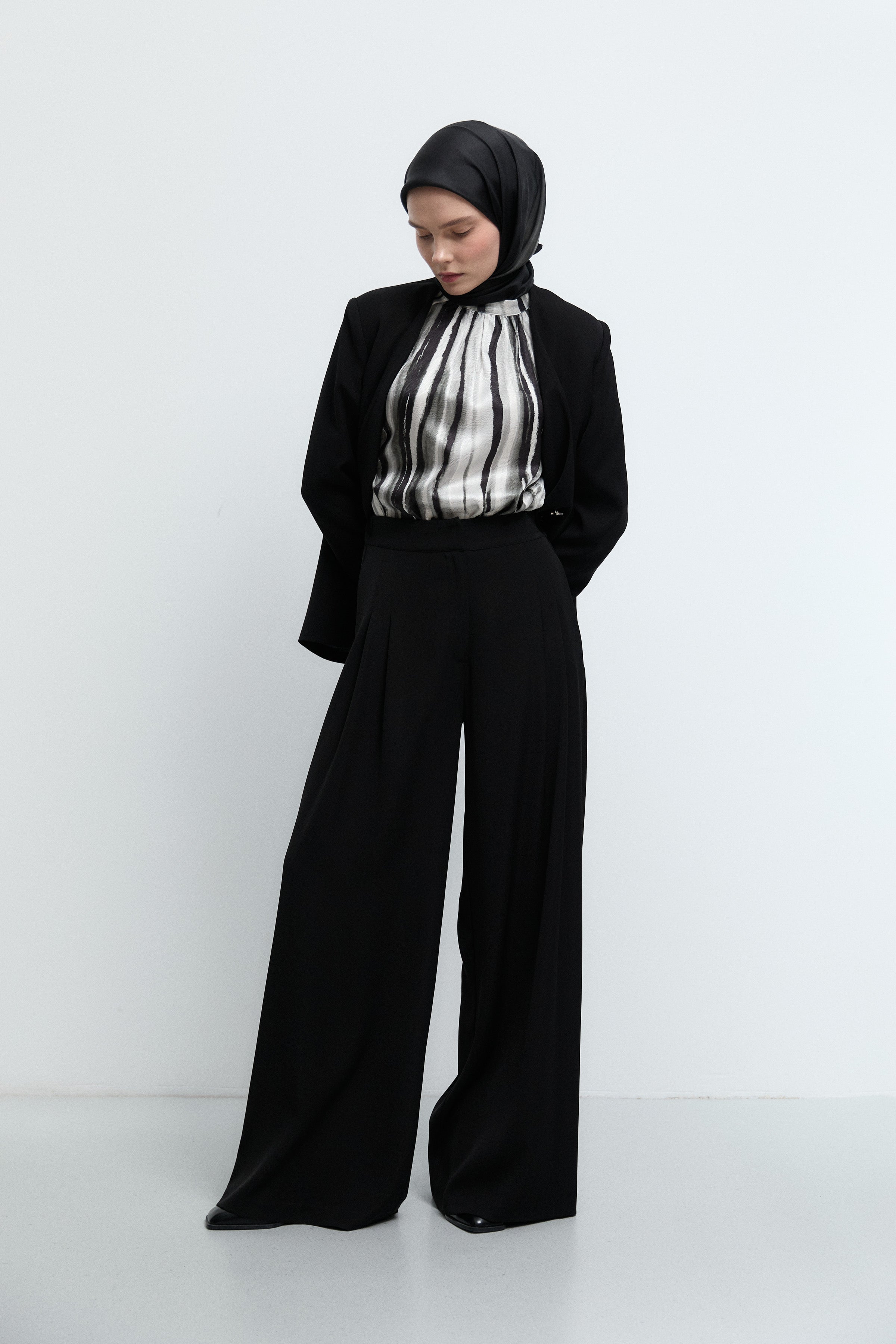 Pantalon plissé à taille élastiquée - Noir