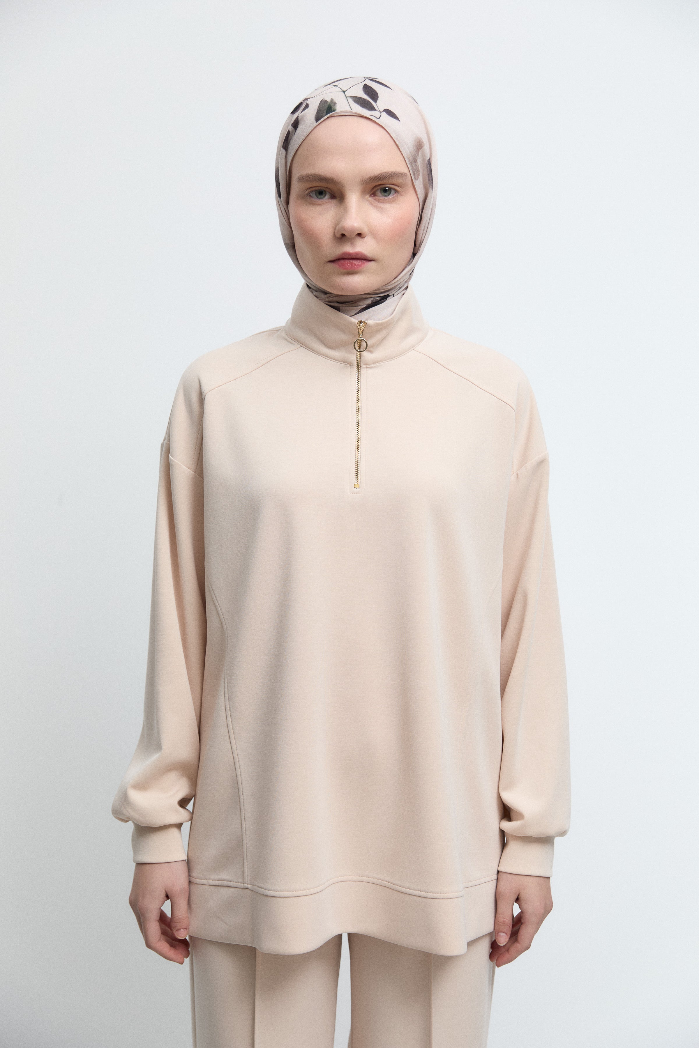 Sweat zippé sur le devant - Écru