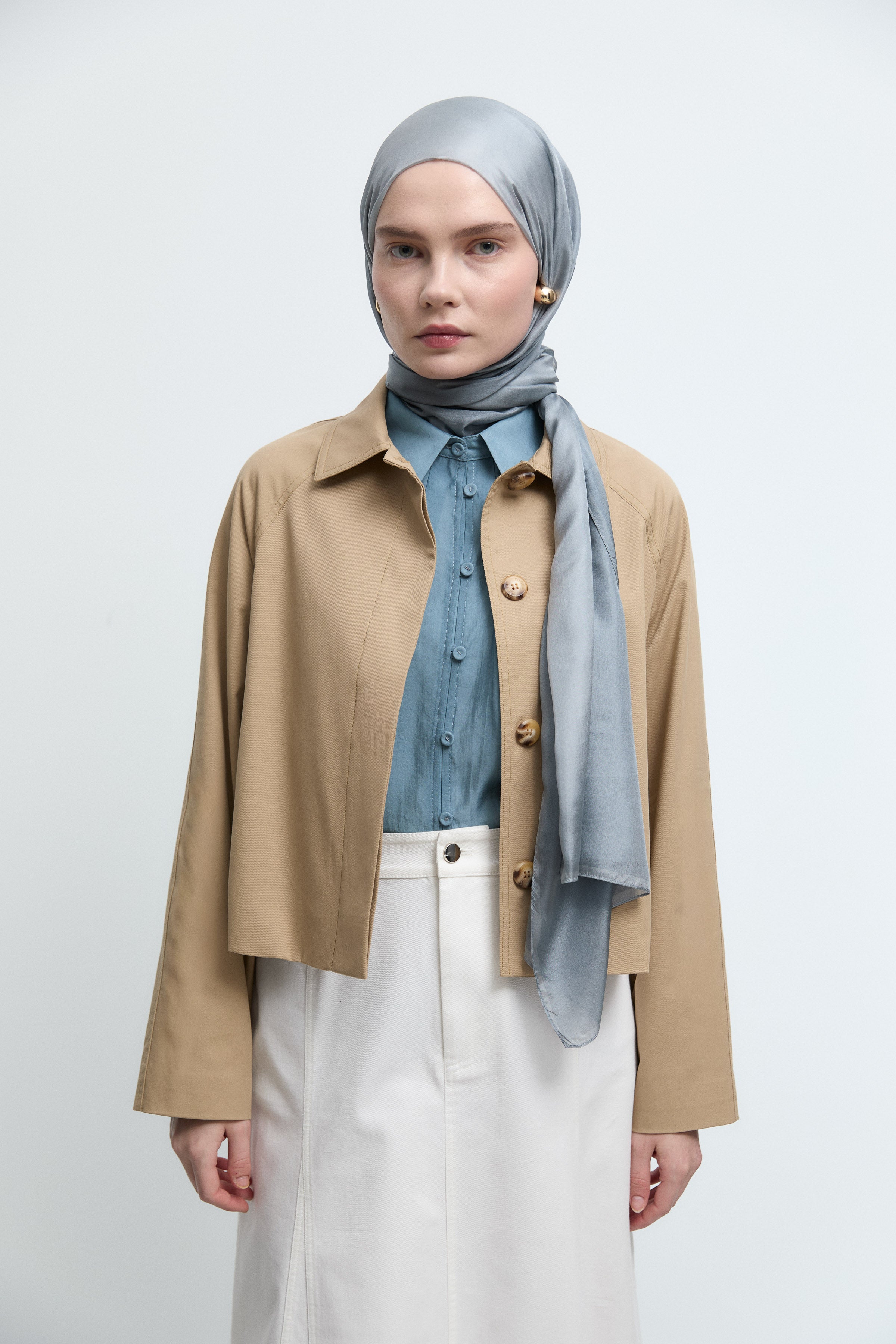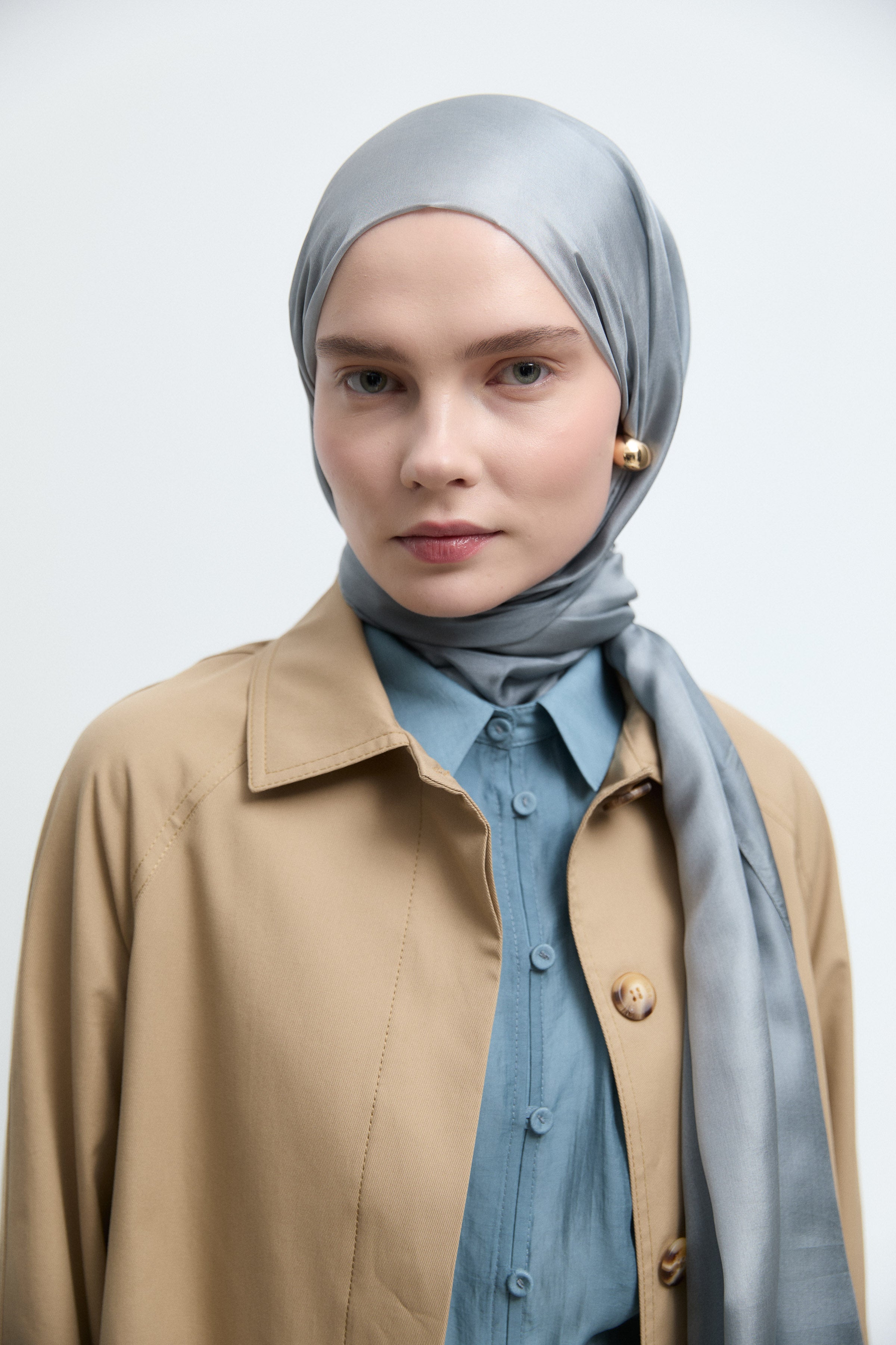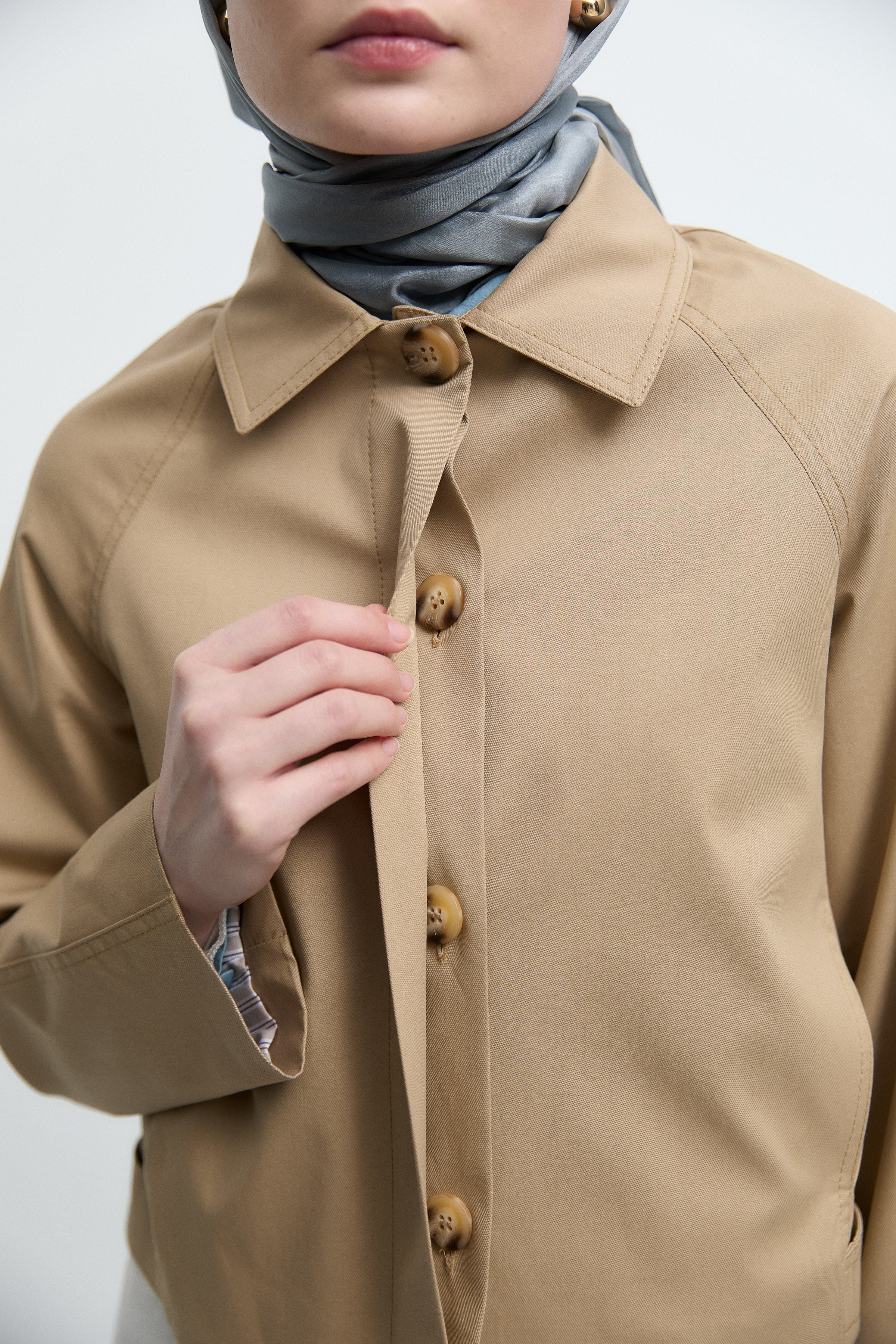 Trench-coat à manches ceinturées - Grége clair