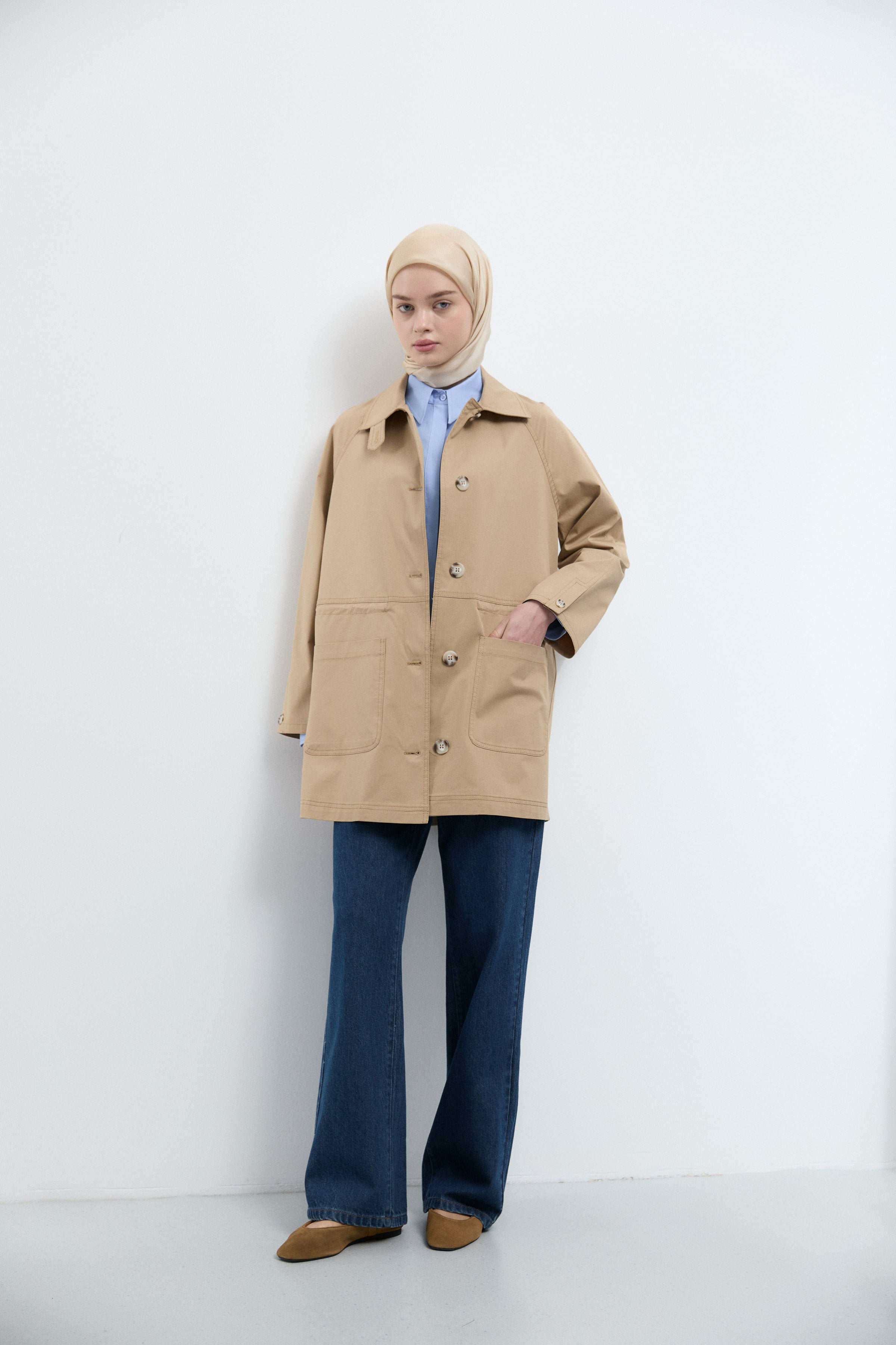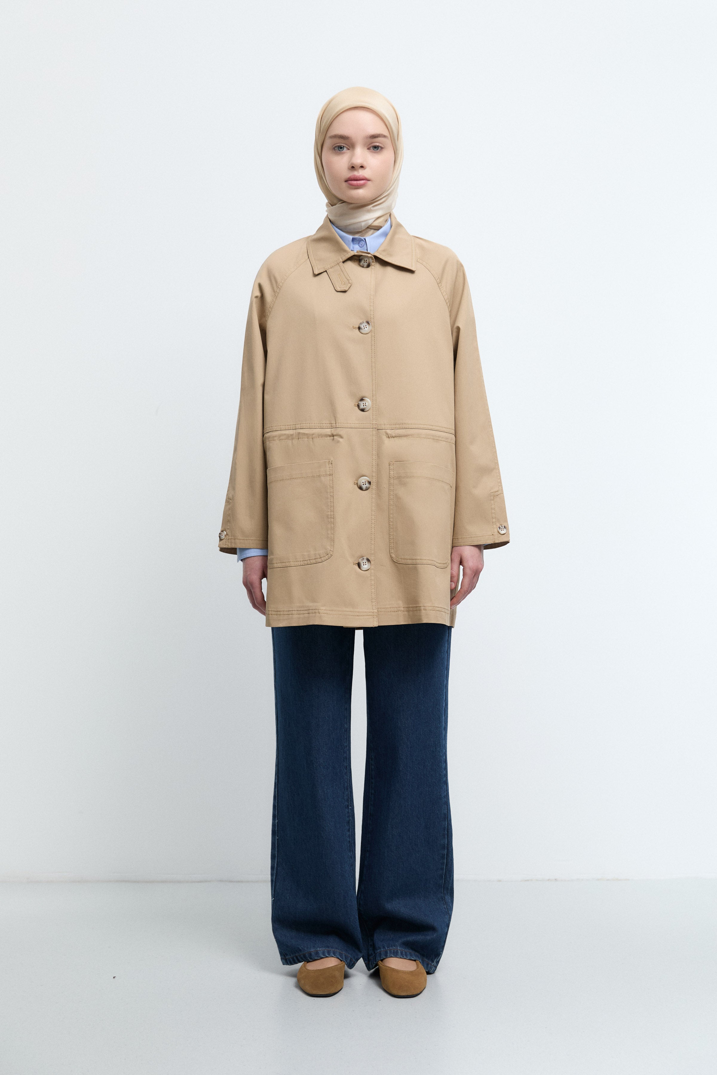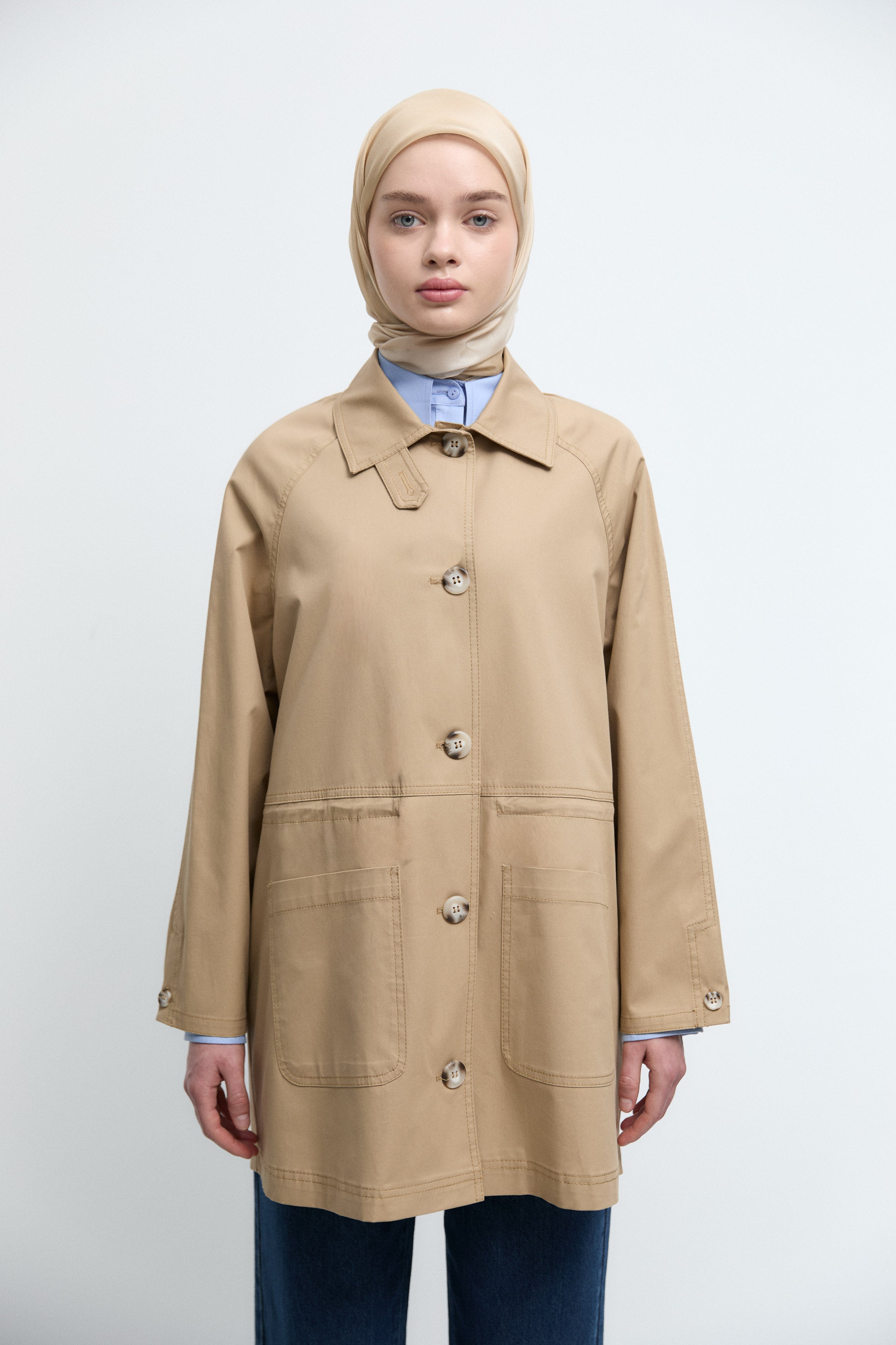 Trench-coat à grandes poches sur le devant - Beige