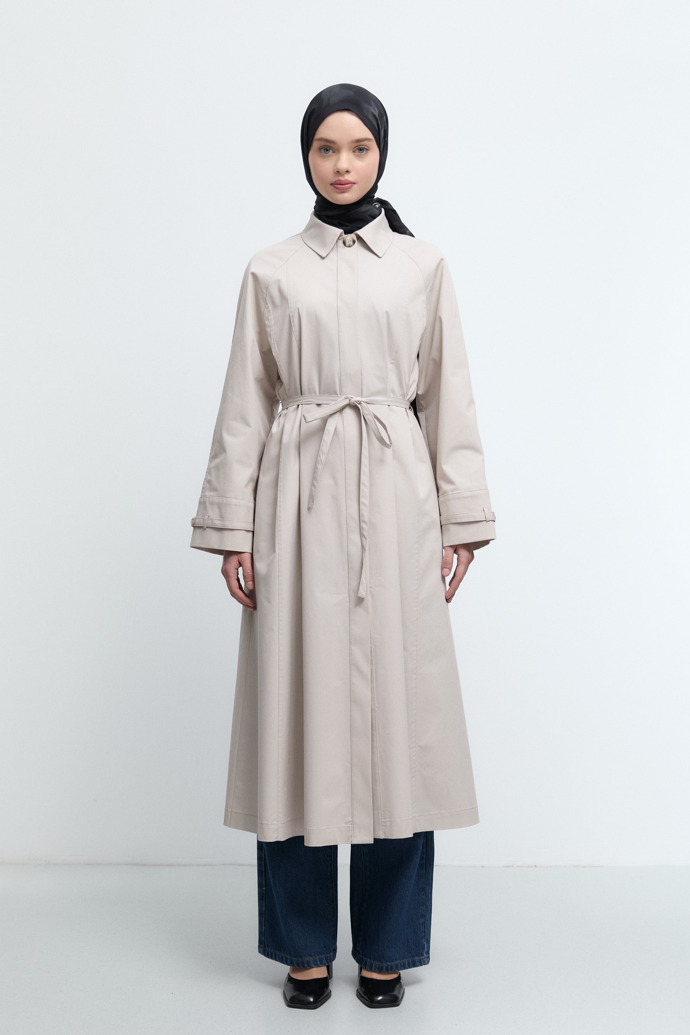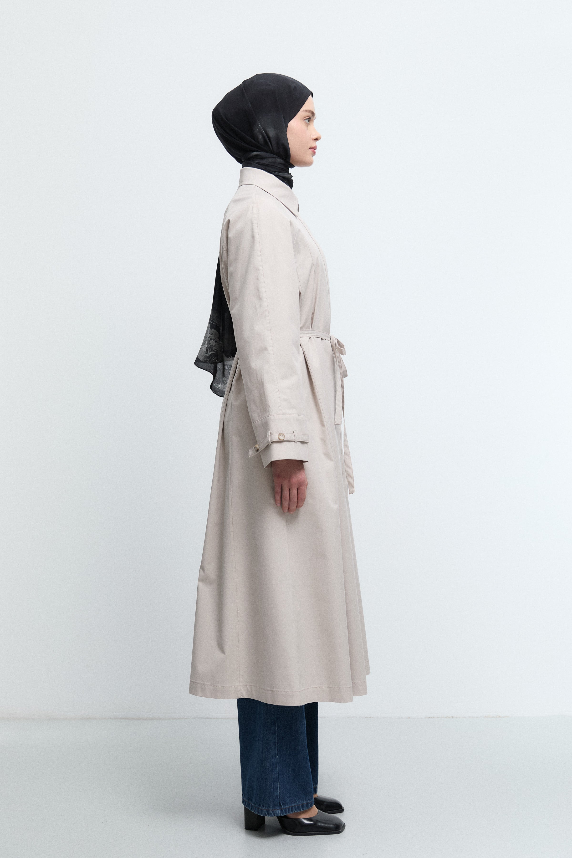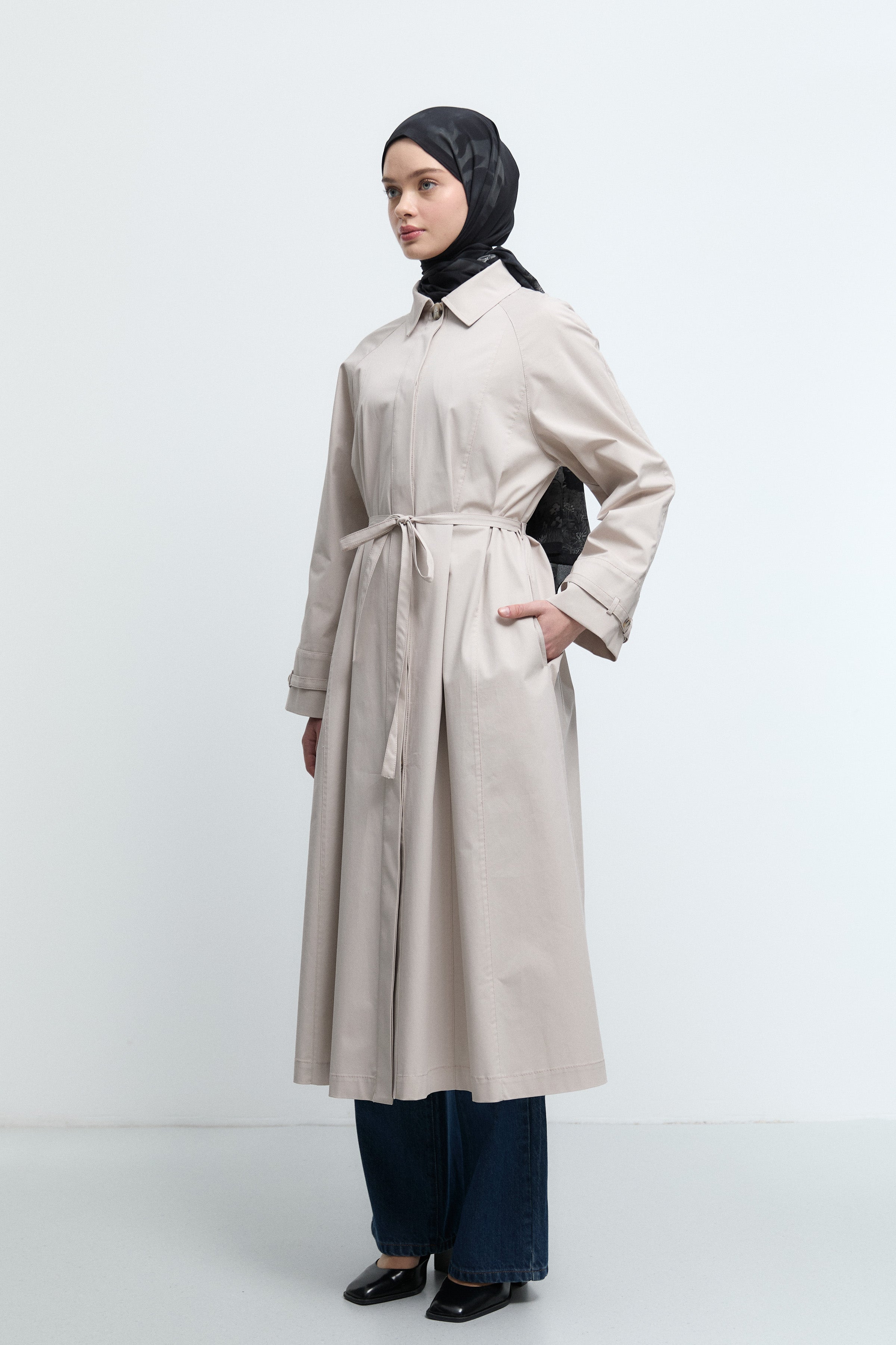 Trench-coat avec détail de coutures latérales - Beige
