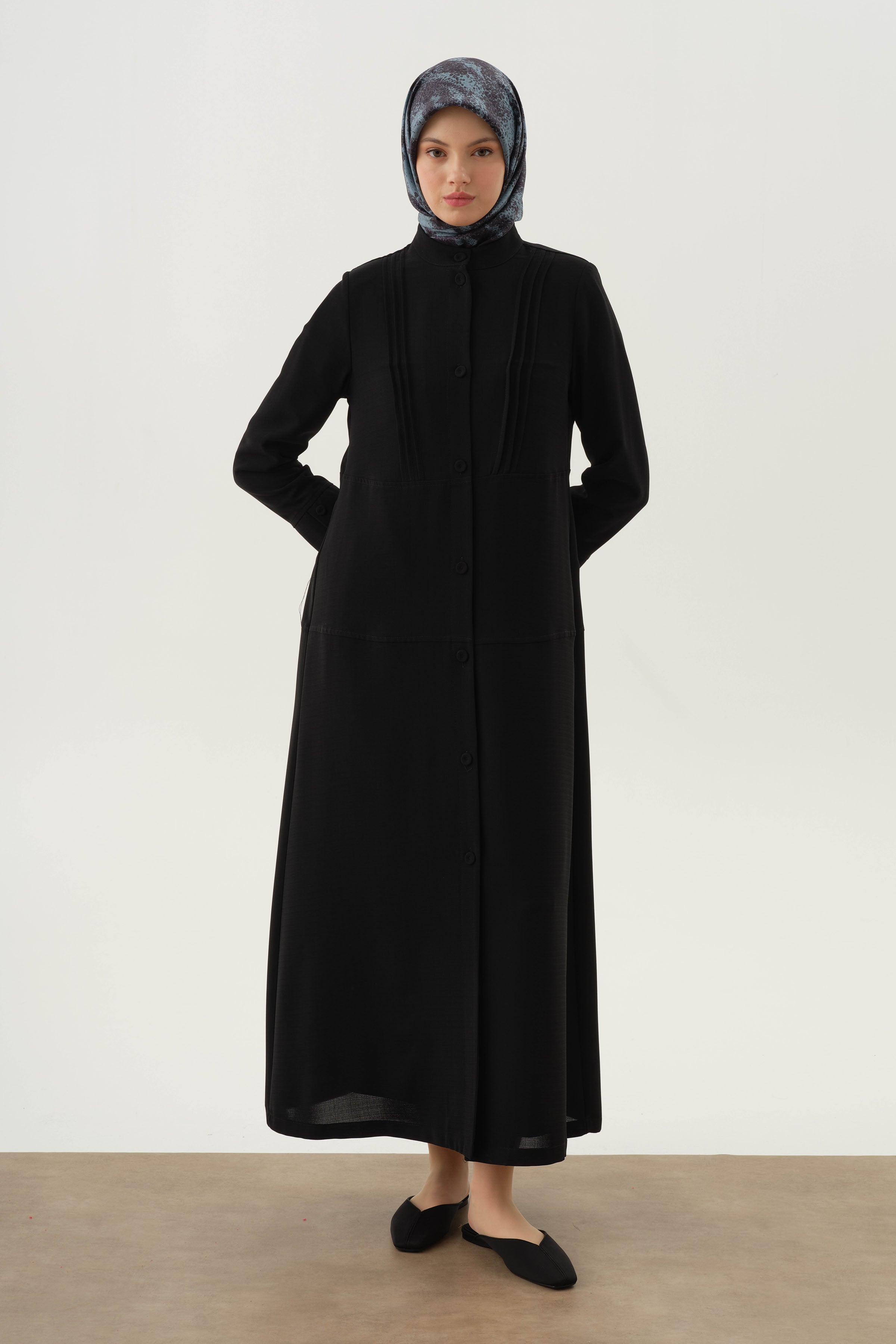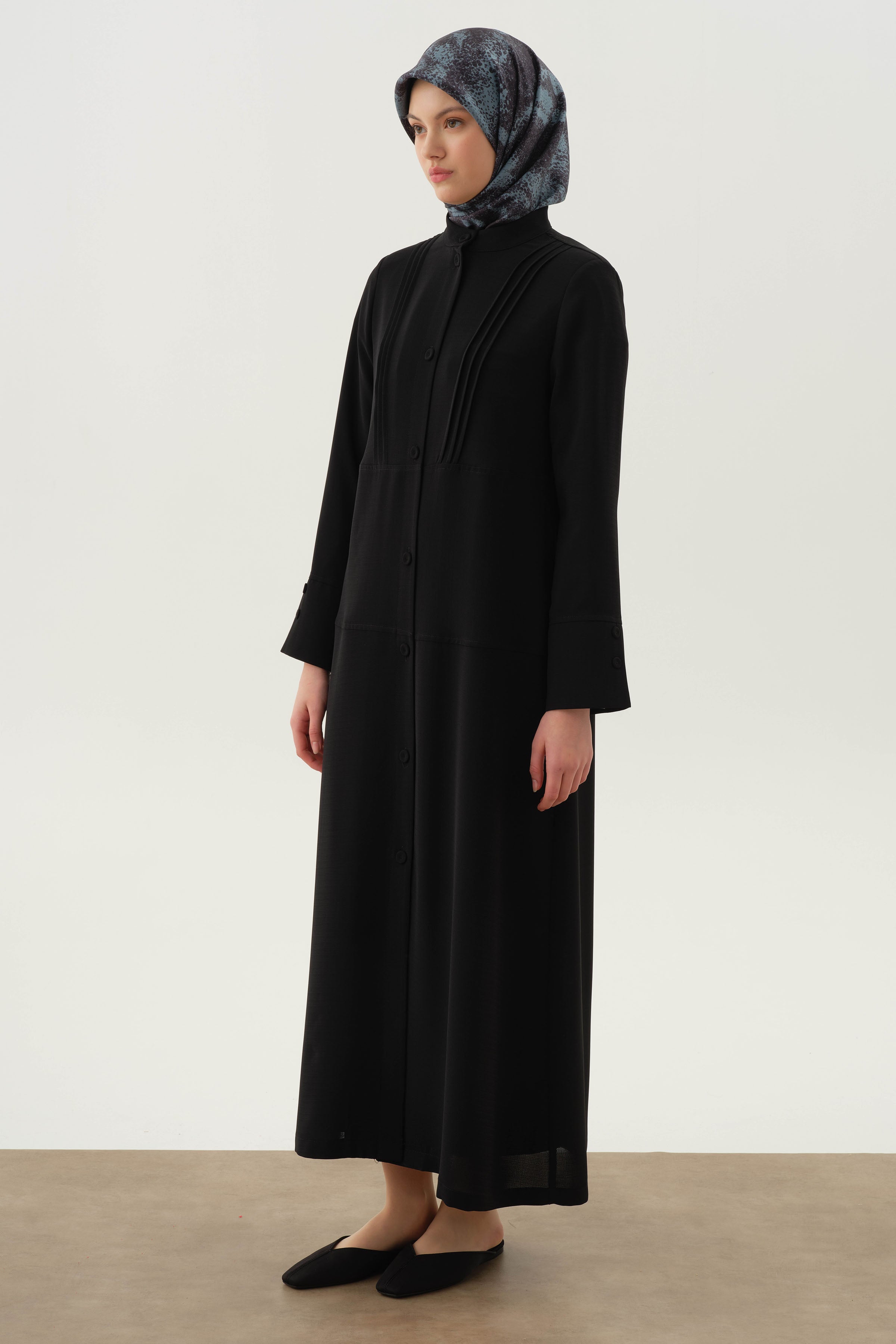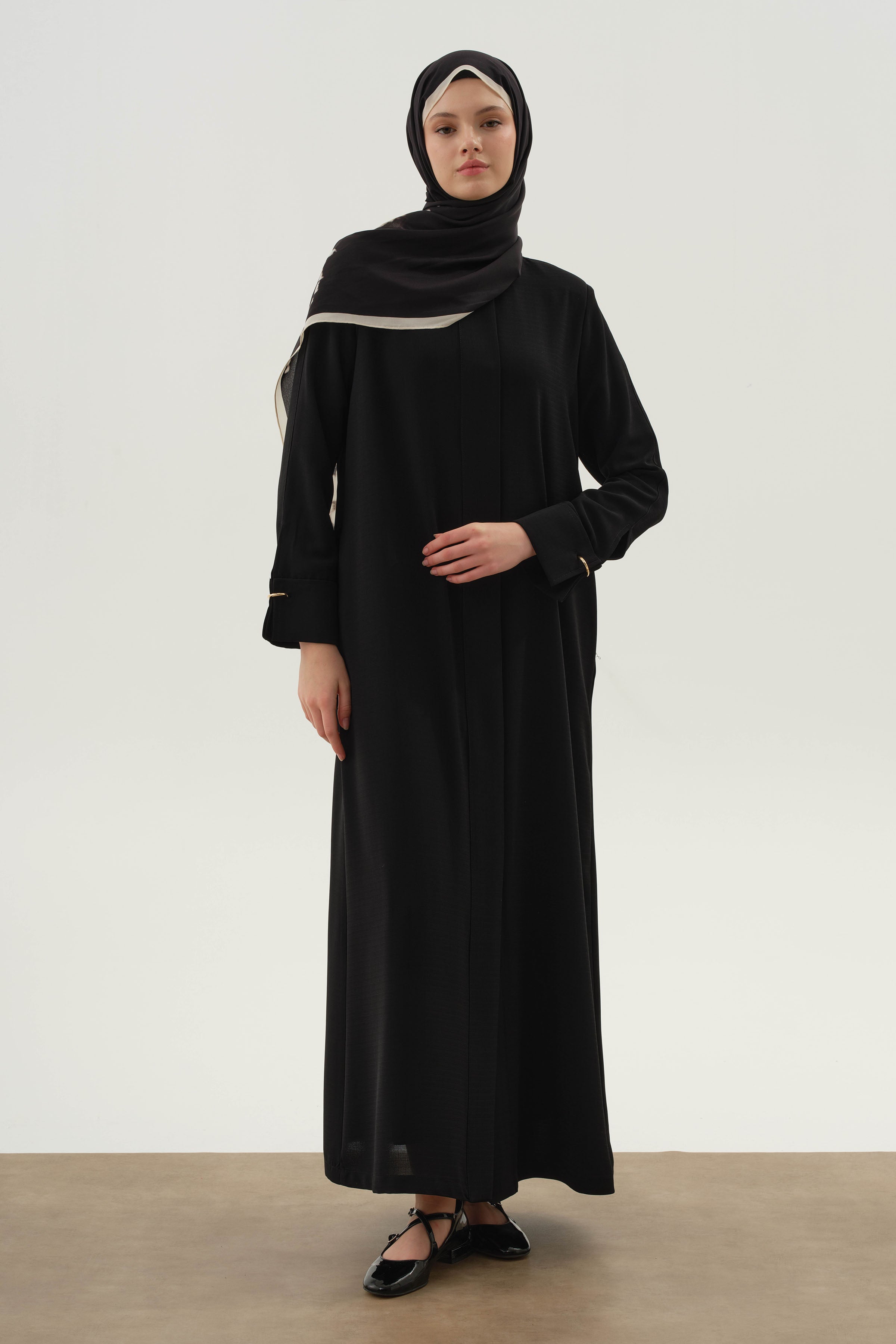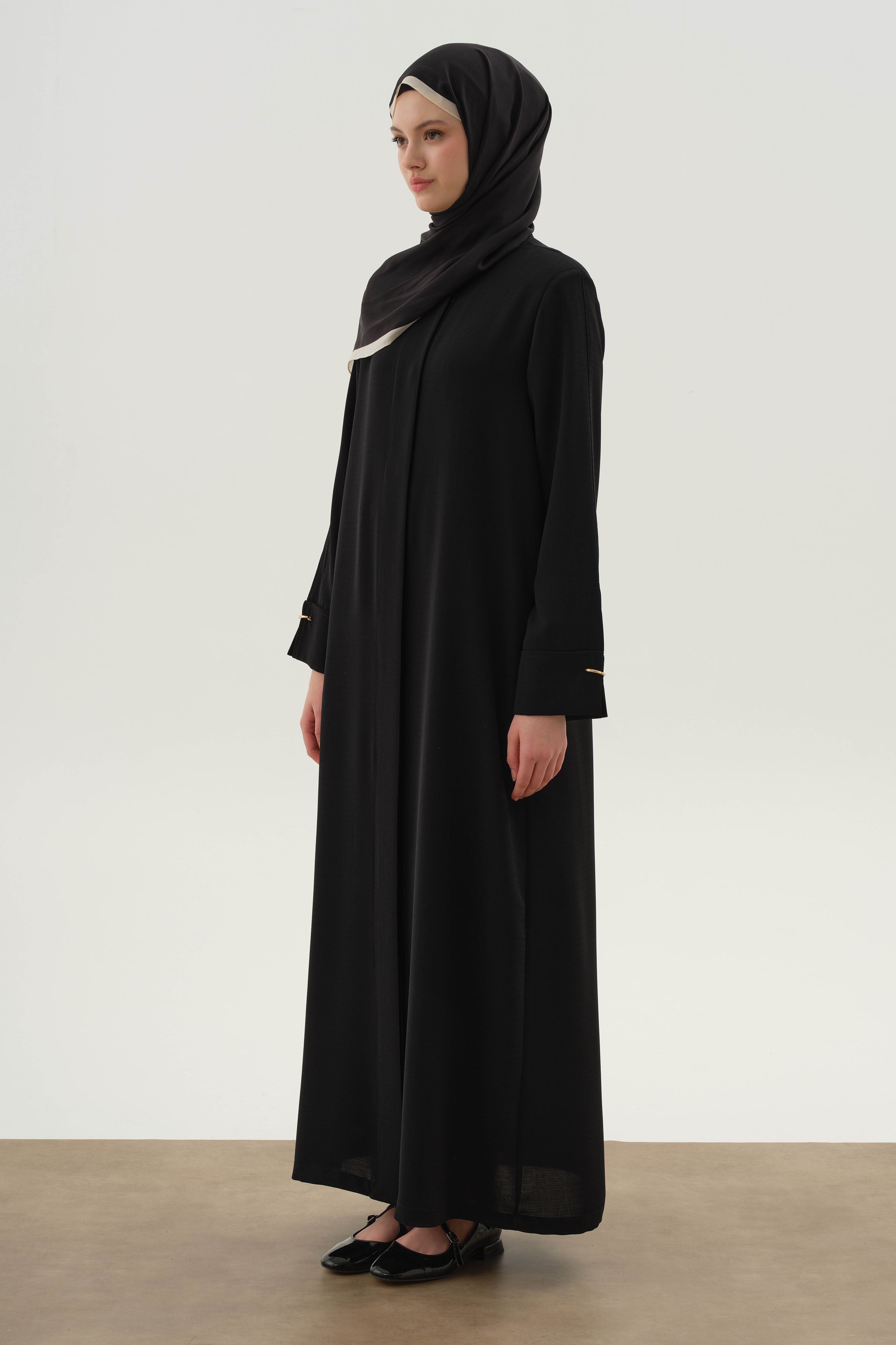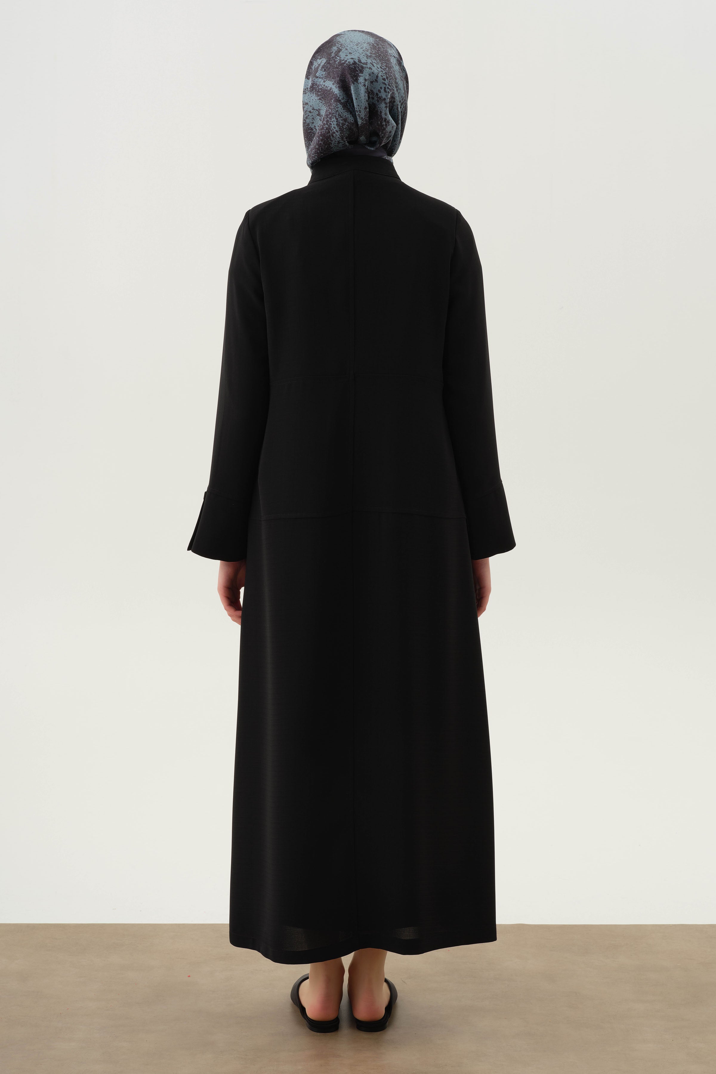 Abaya à col rond avec patte de boutonnage cachée - Noir