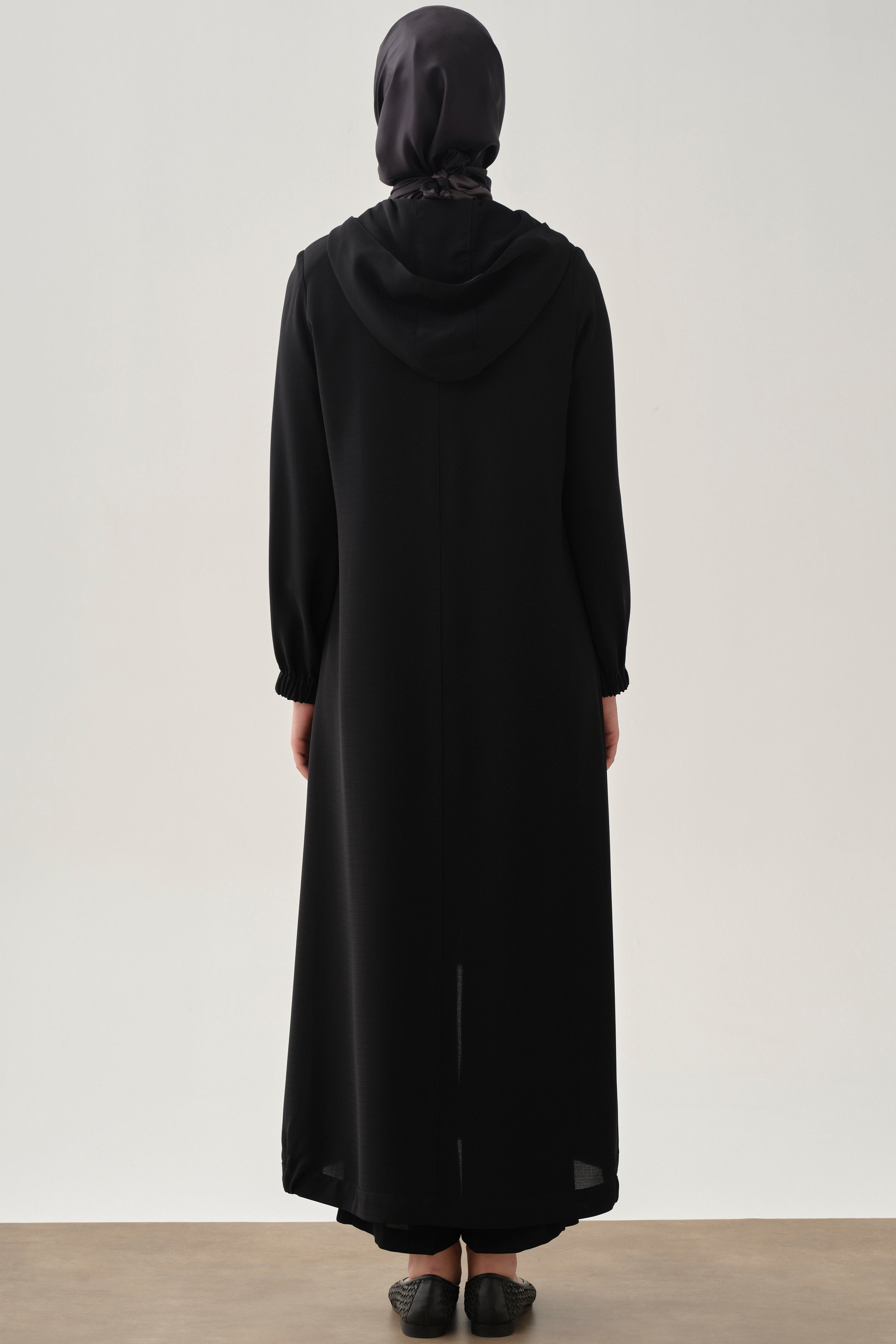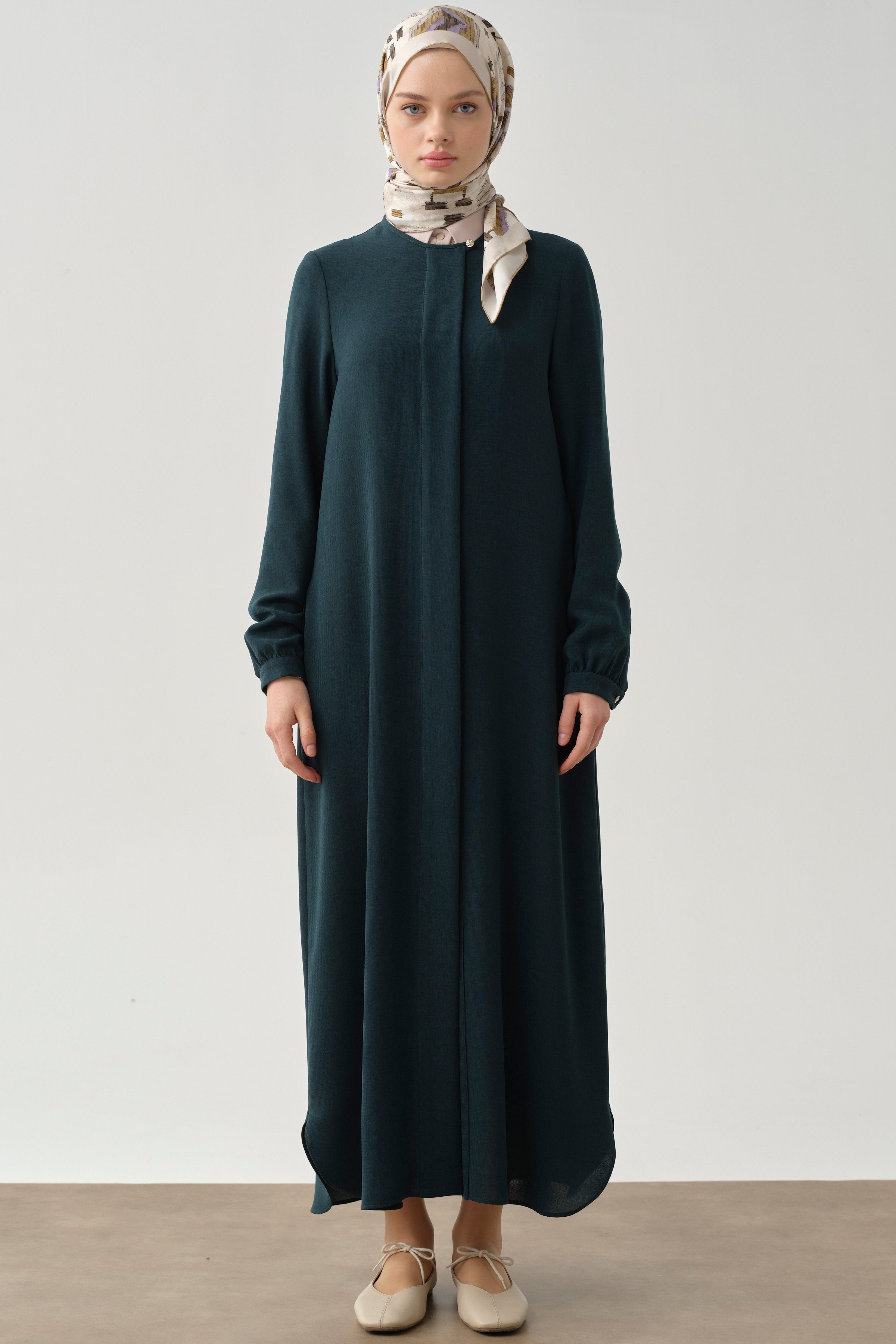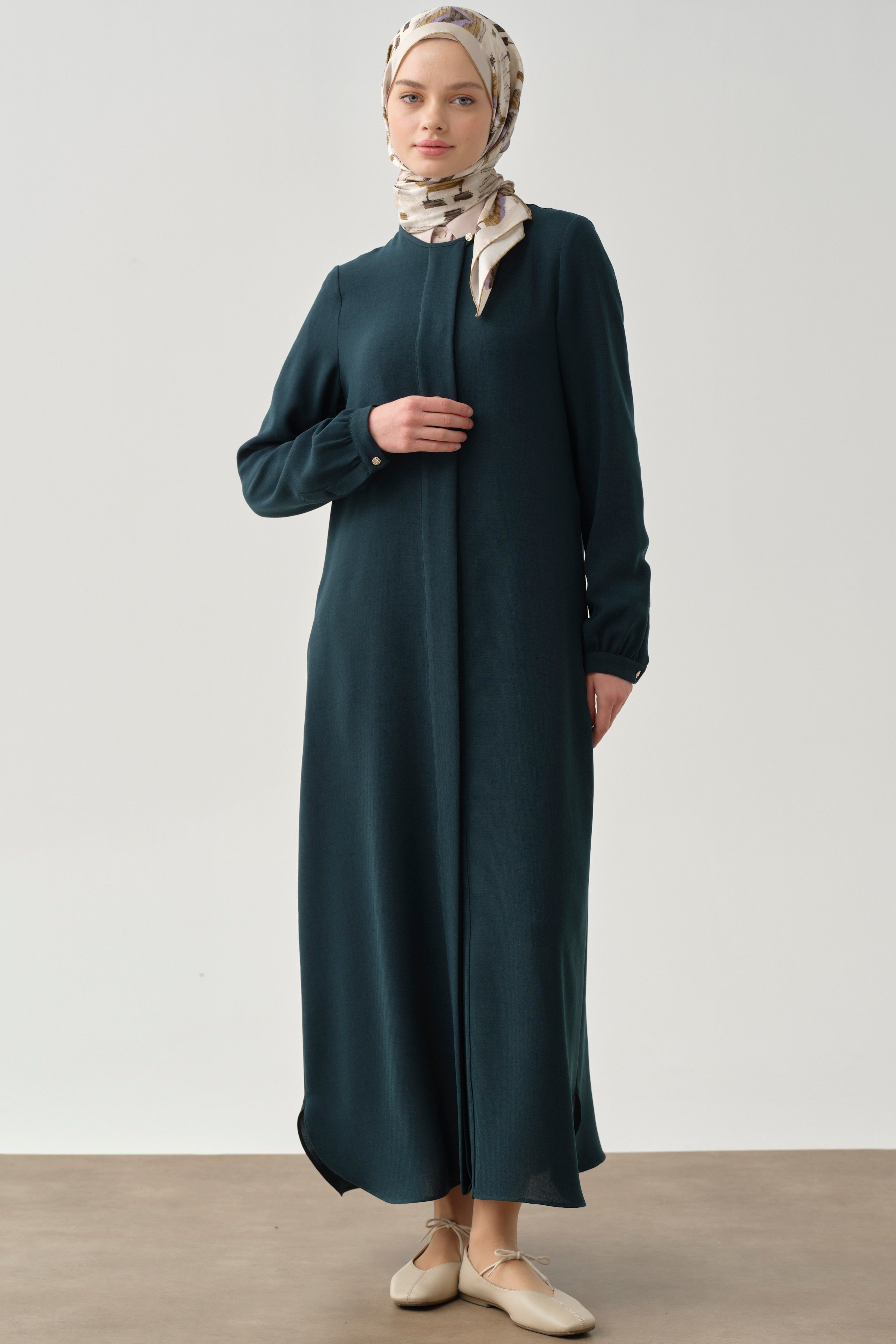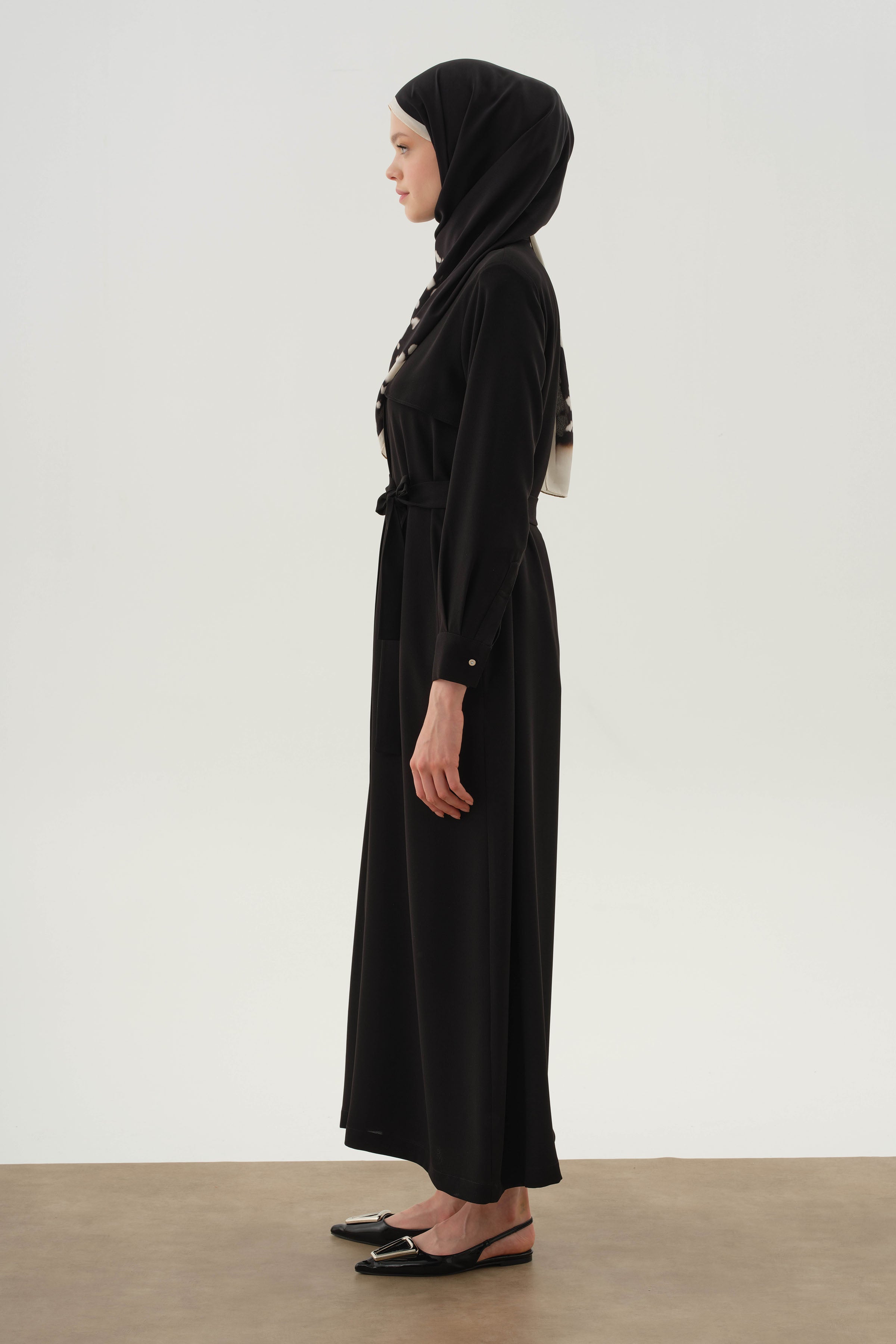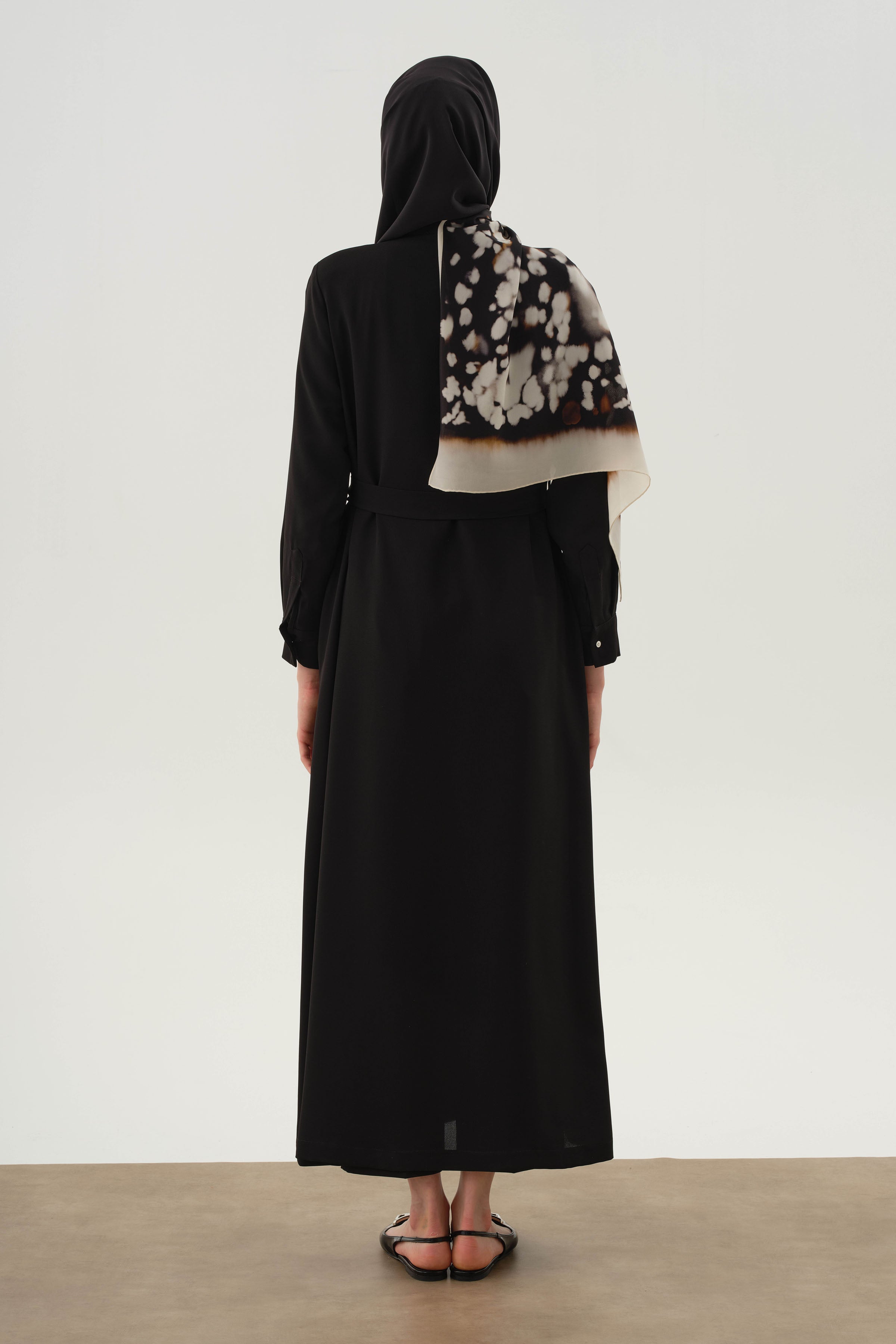 Abaya à col rond avec patte de boutonnage cachée - Noir