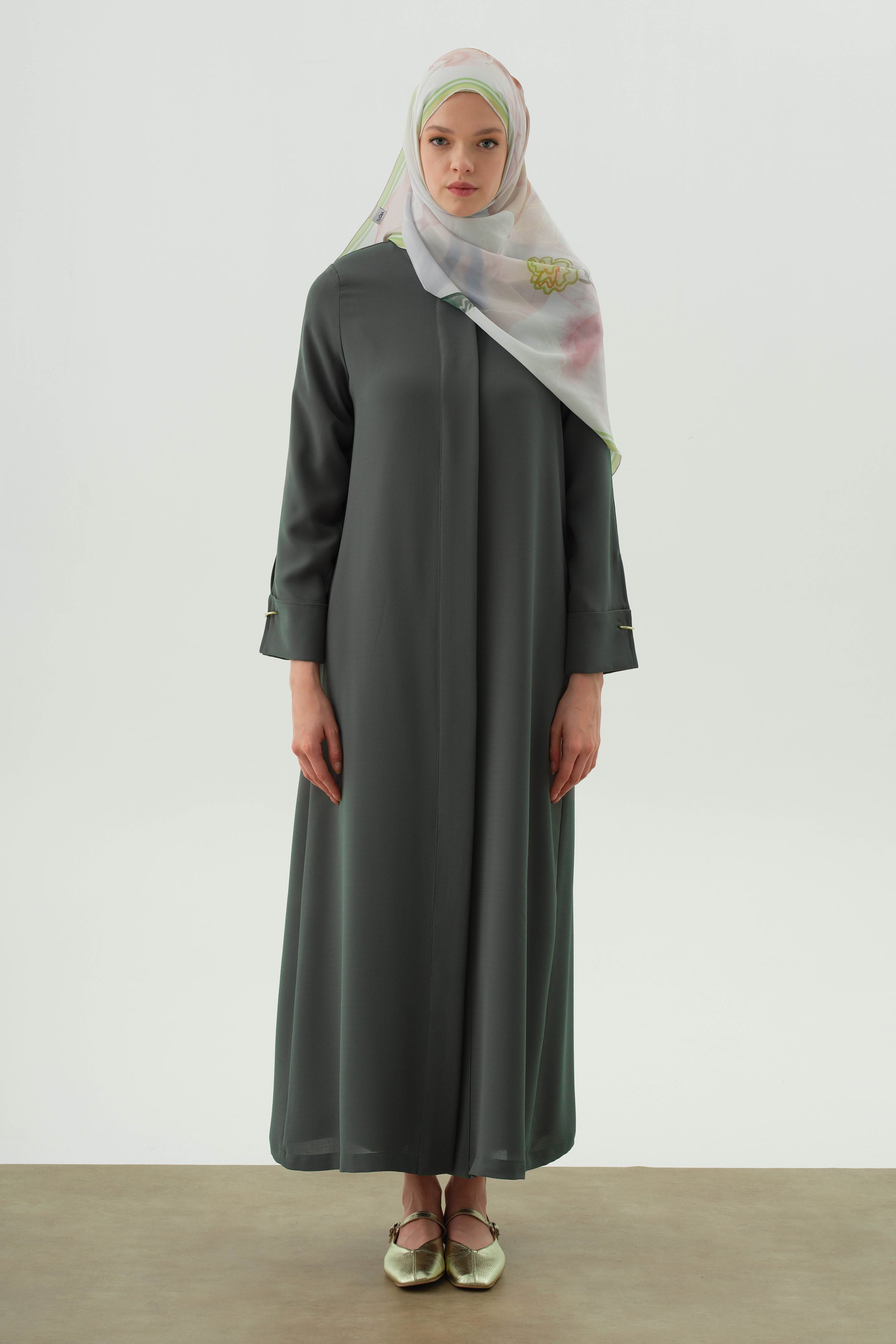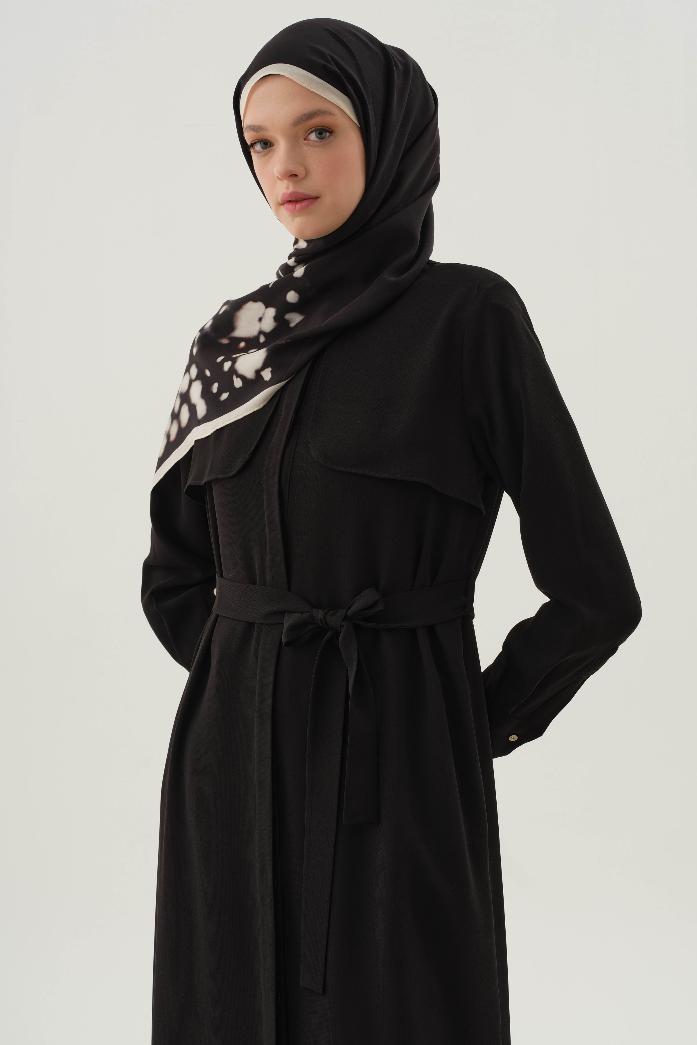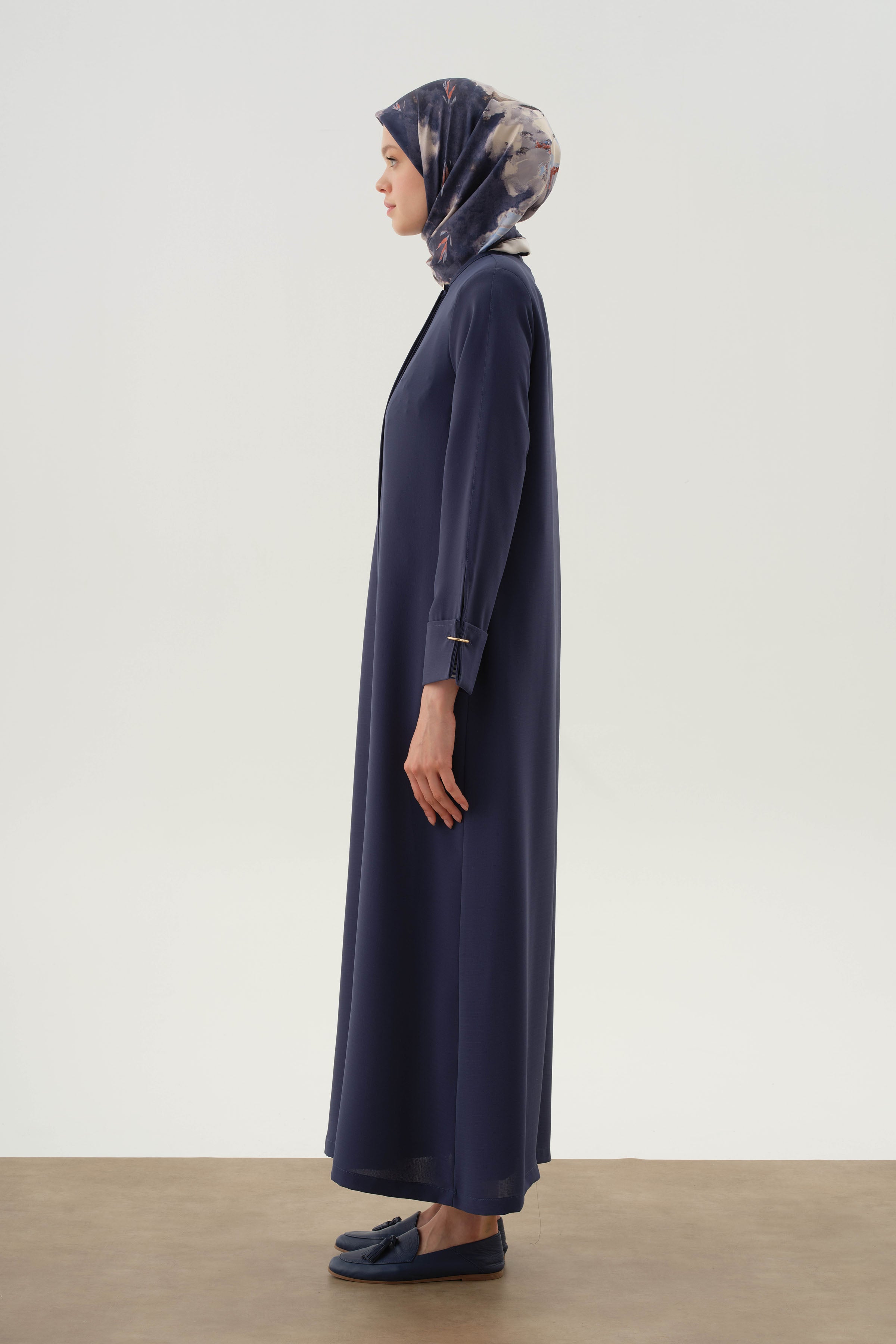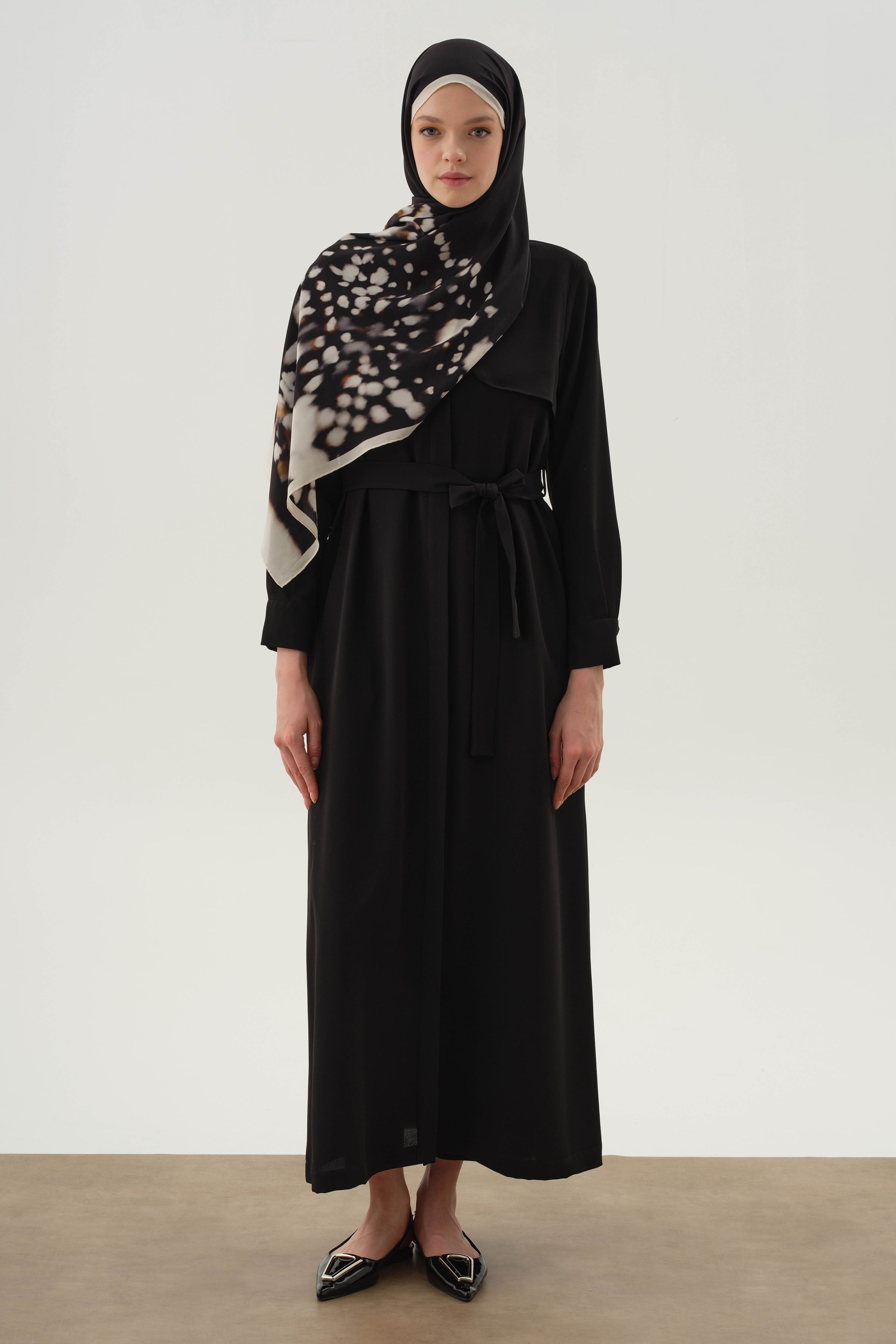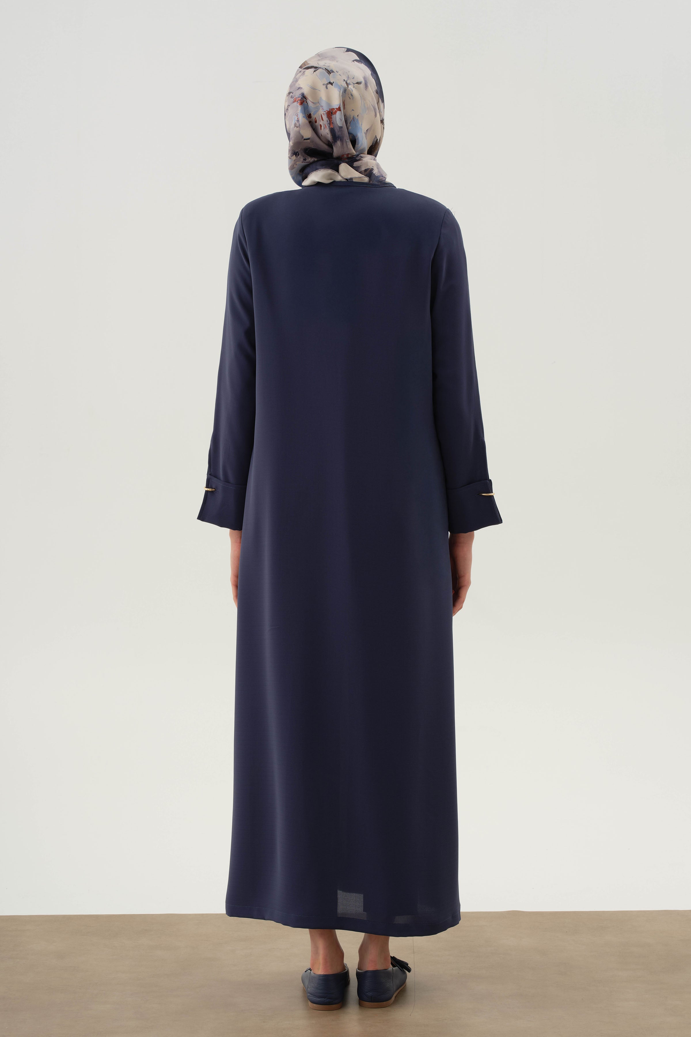 Abaya à col rond avec patte de boutonnage cachée - Noir