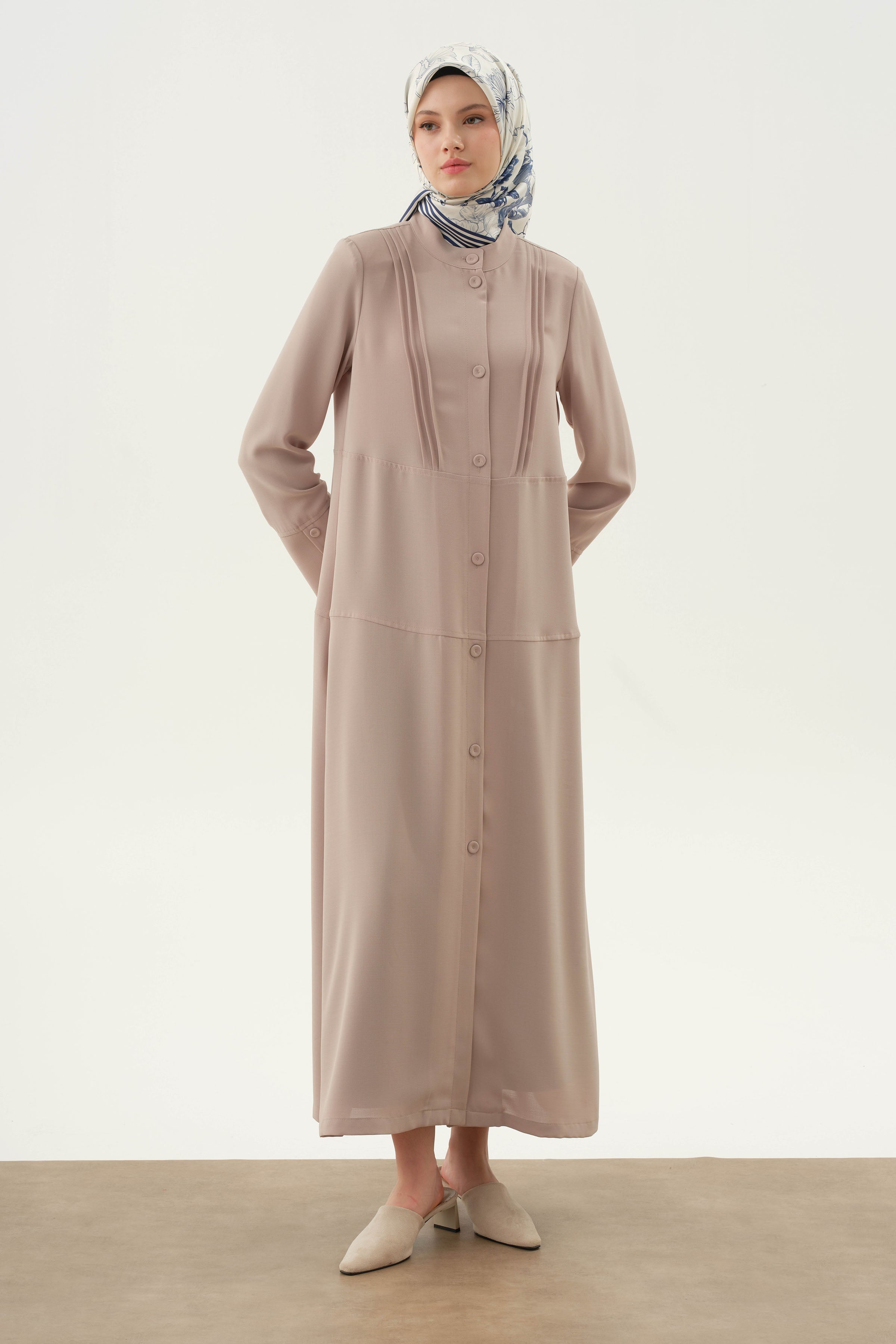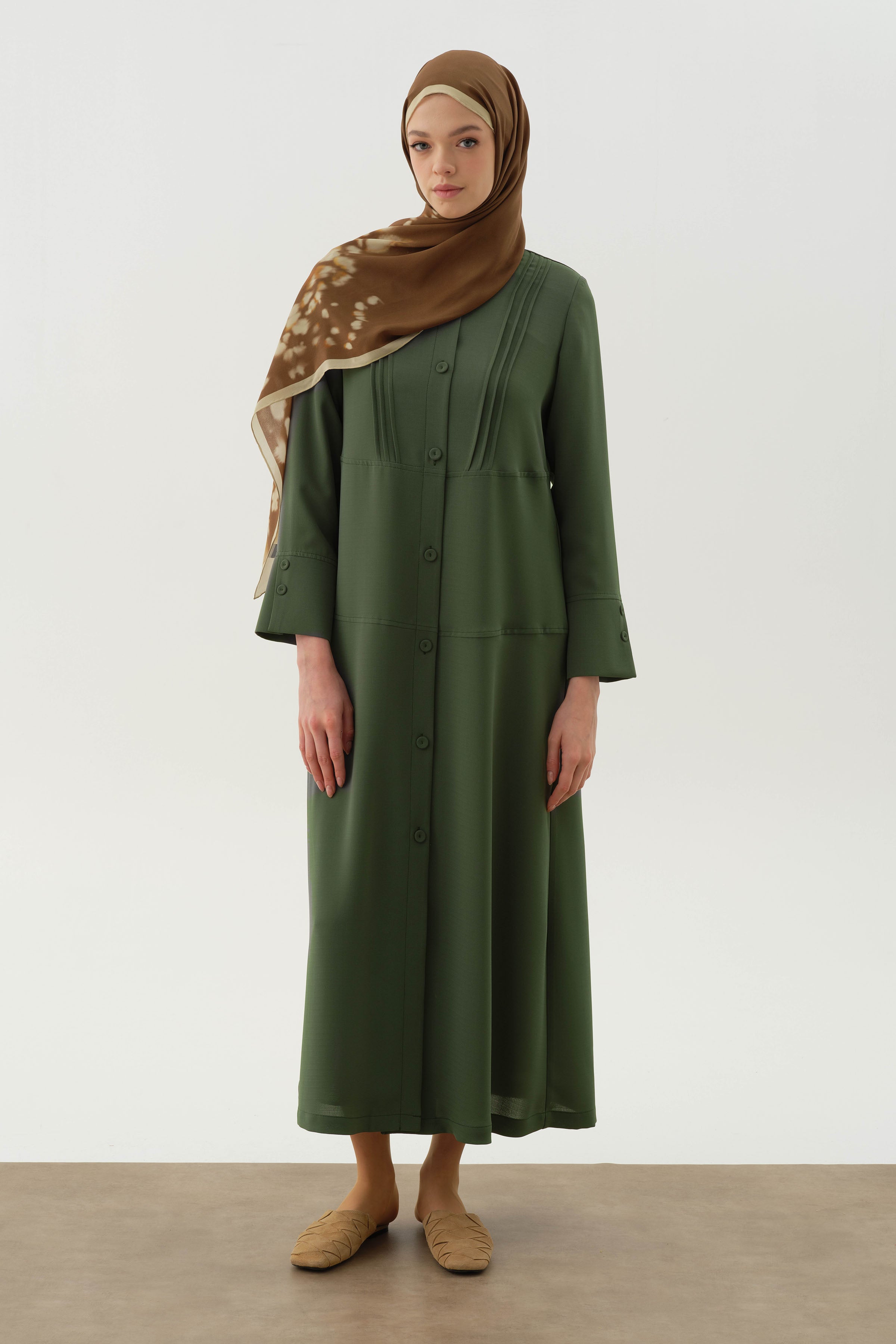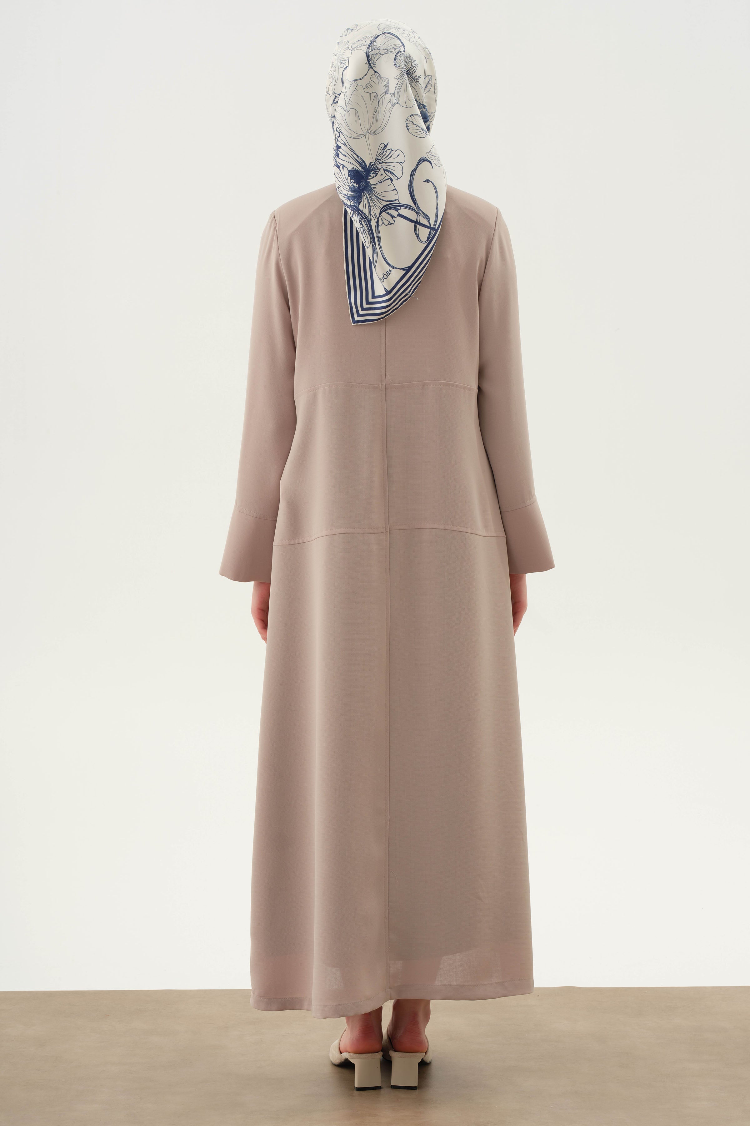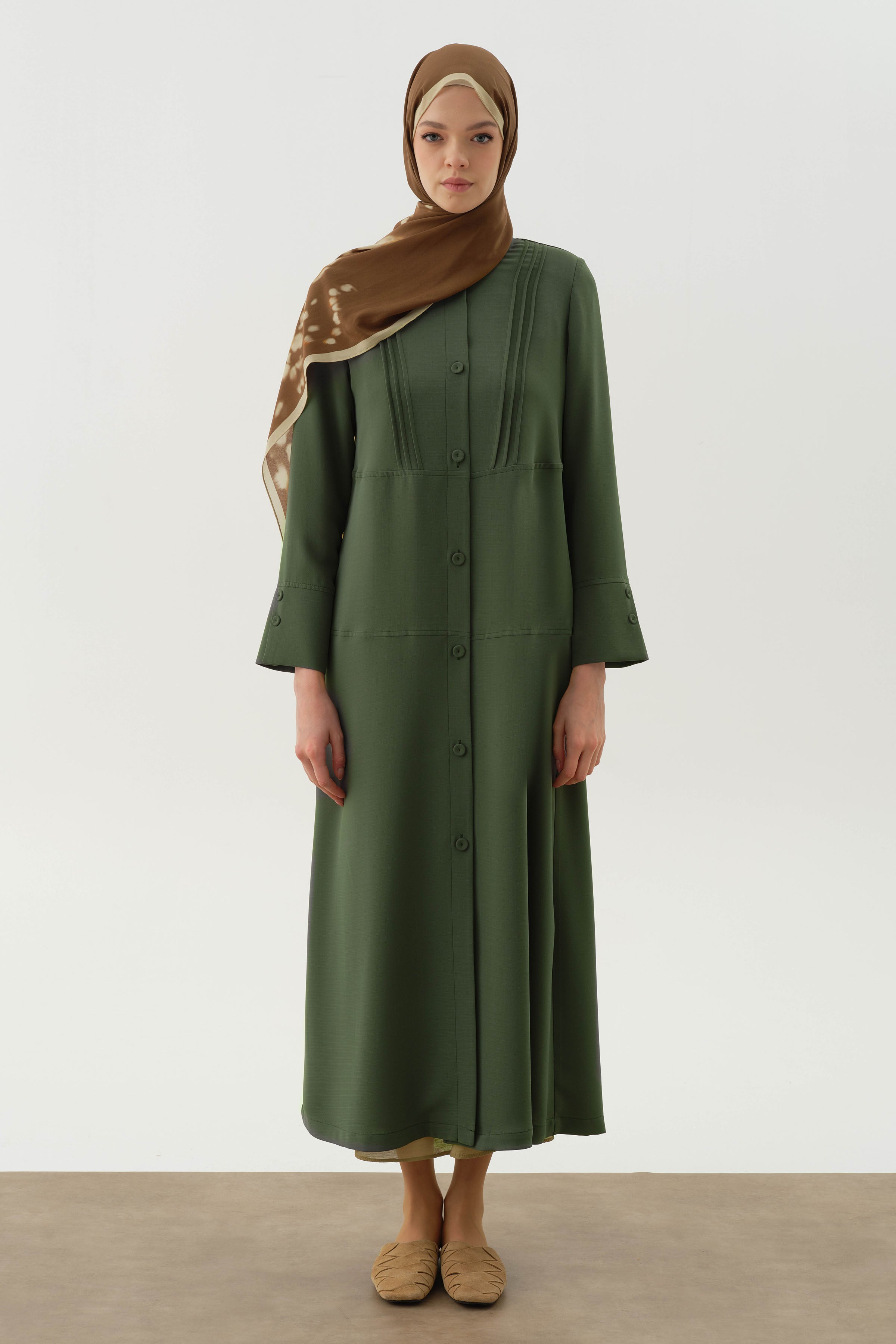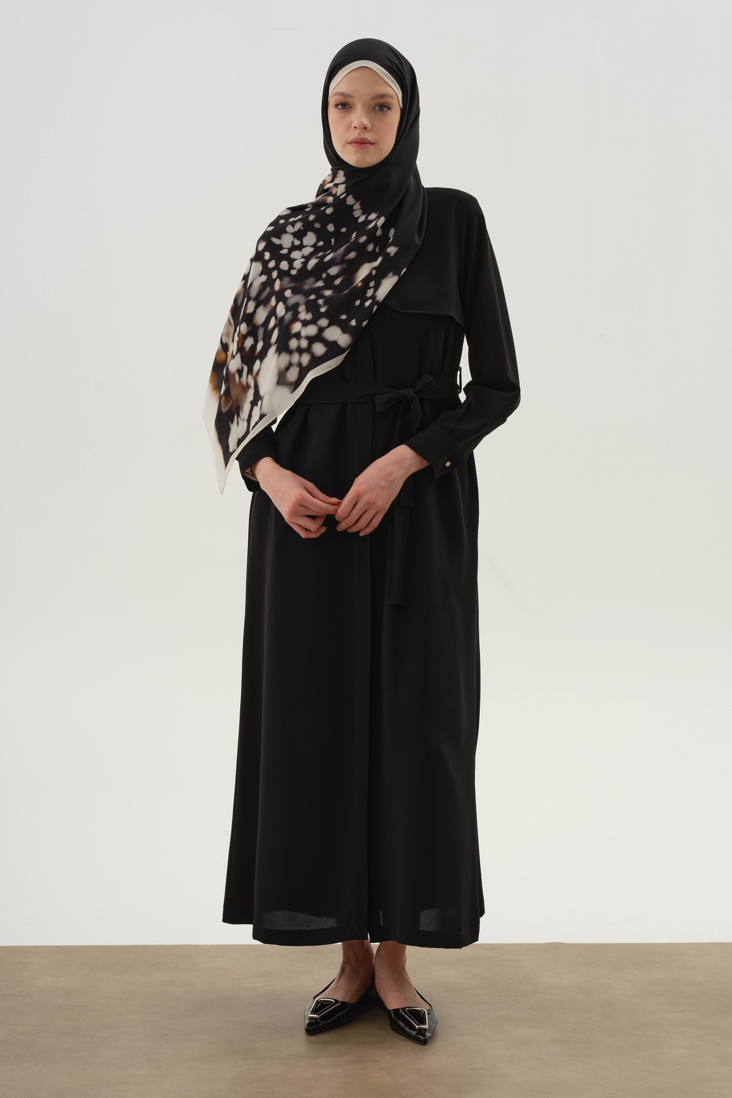 Abaya à col rond avec patte de boutonnage cachée - Noir