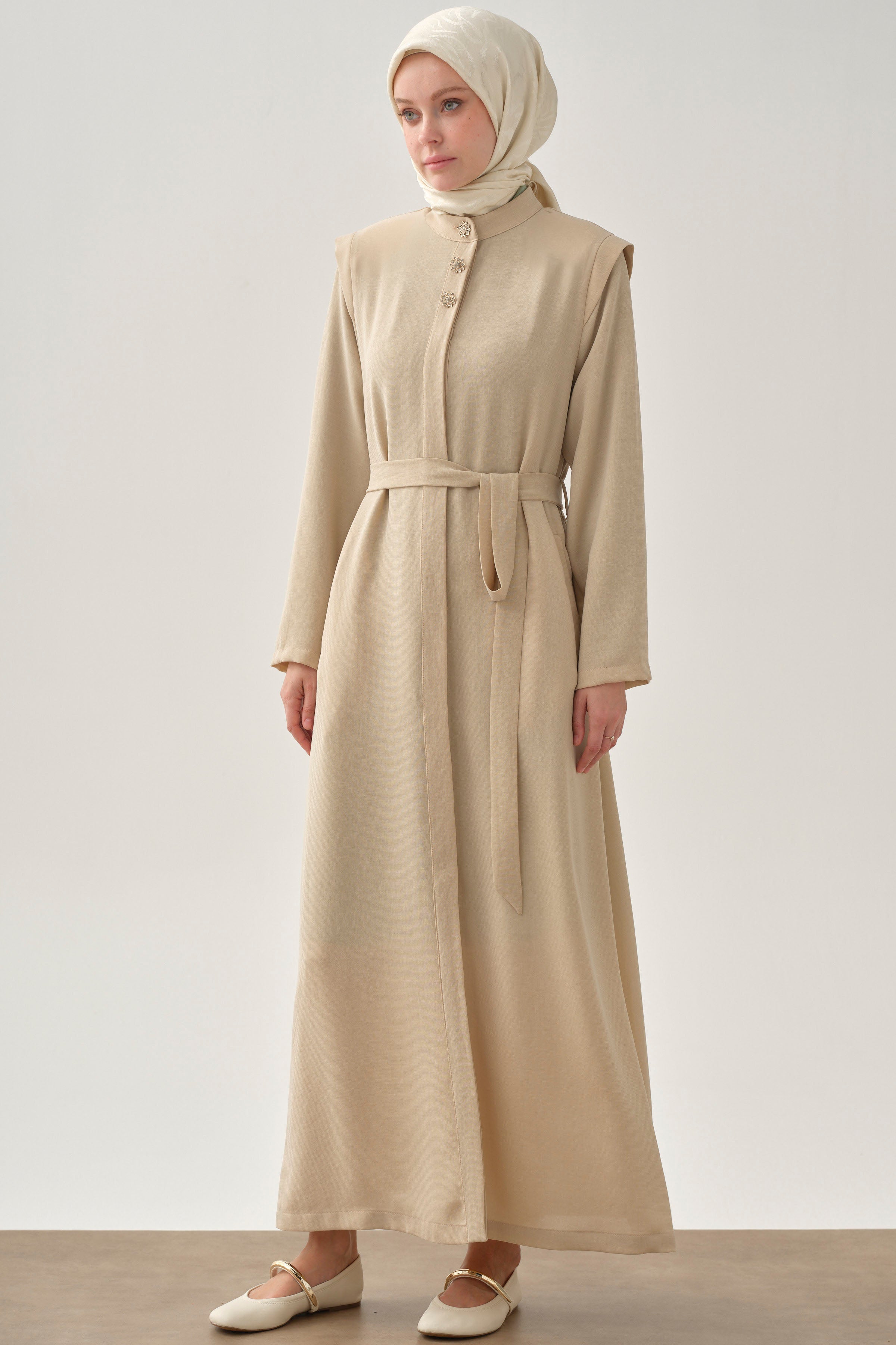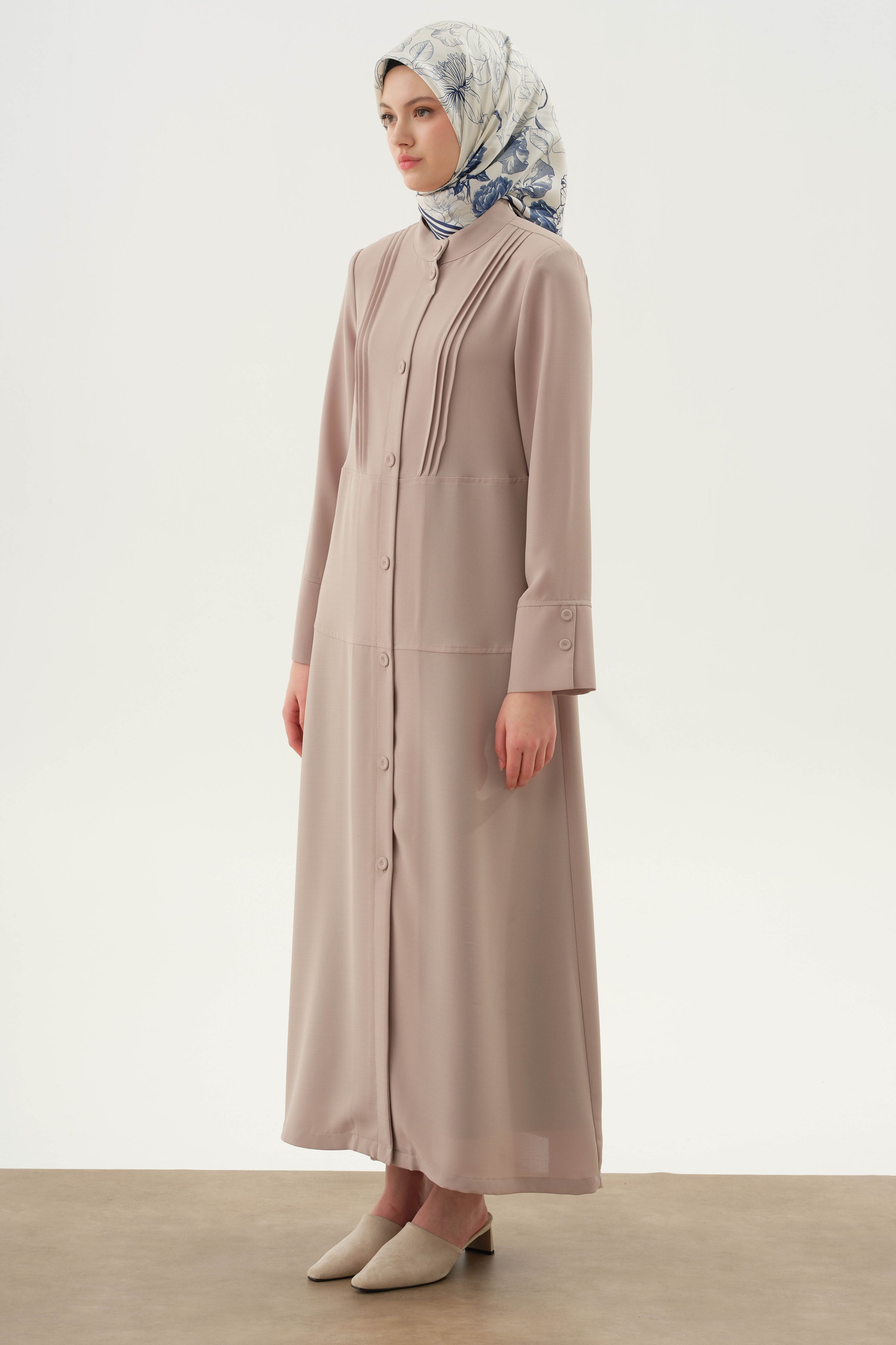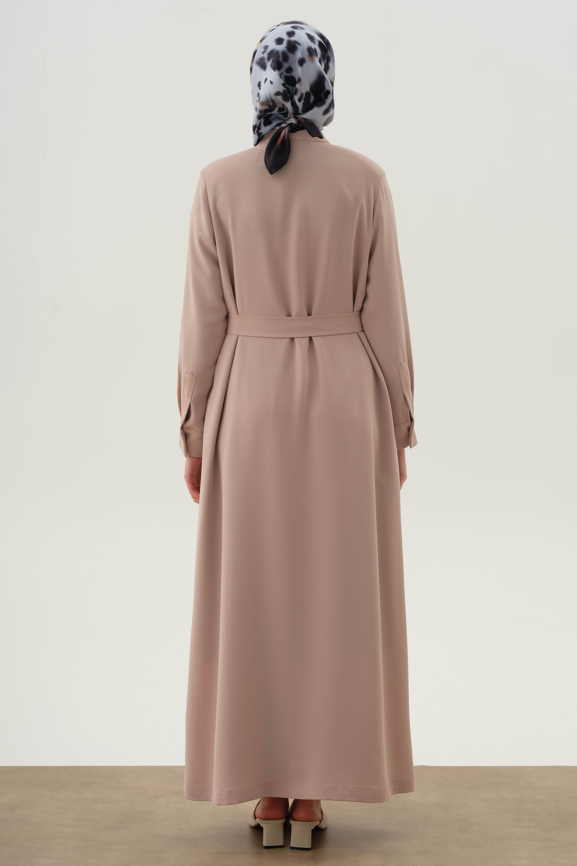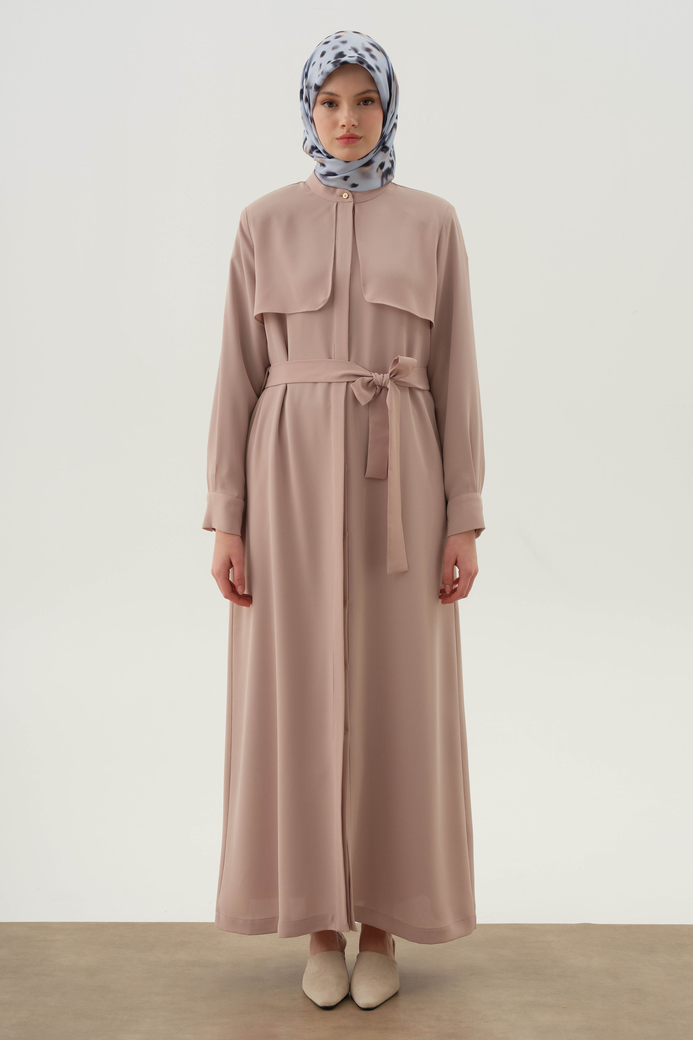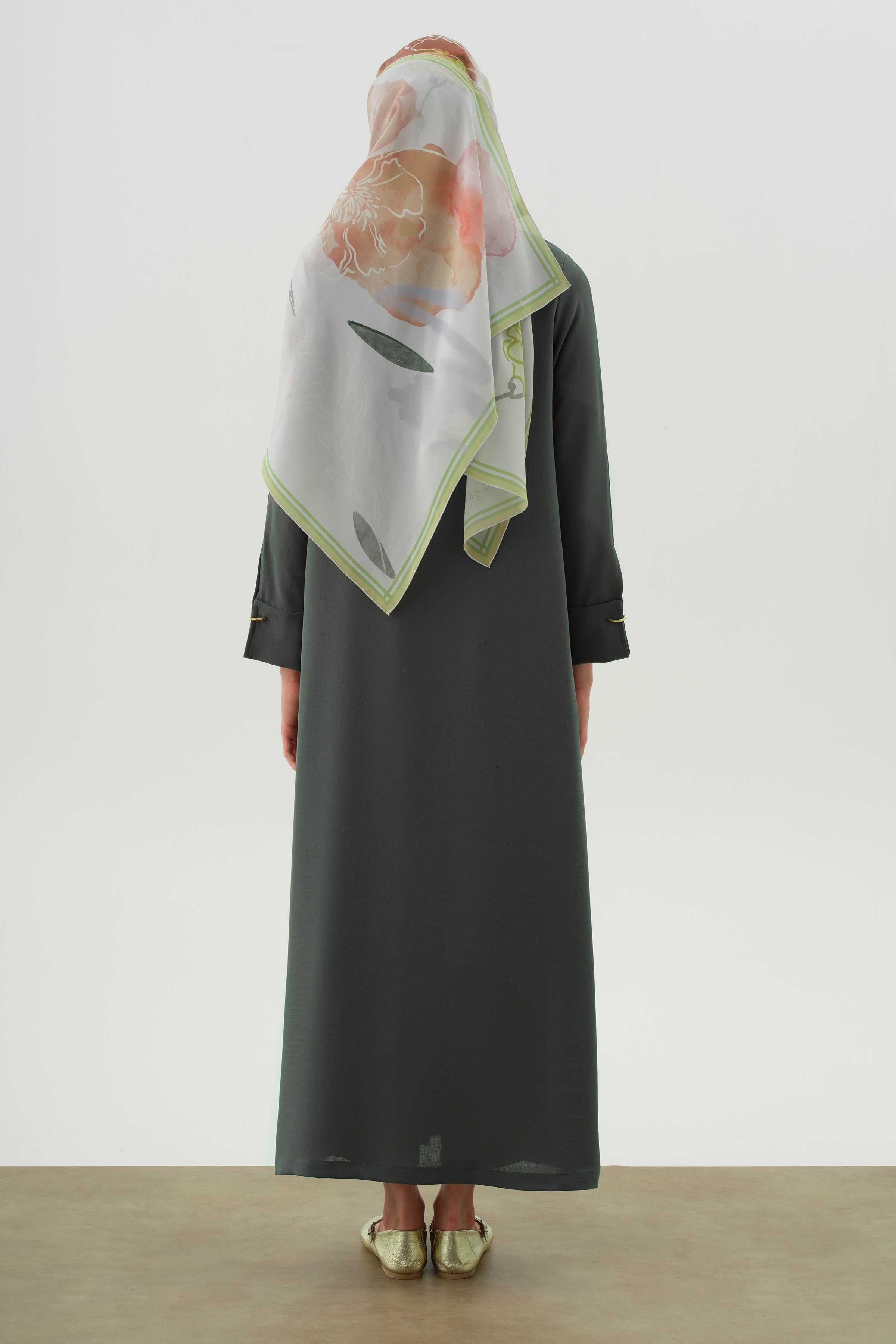 Abaya à col rond avec patte de boutonnage cachée - Noir