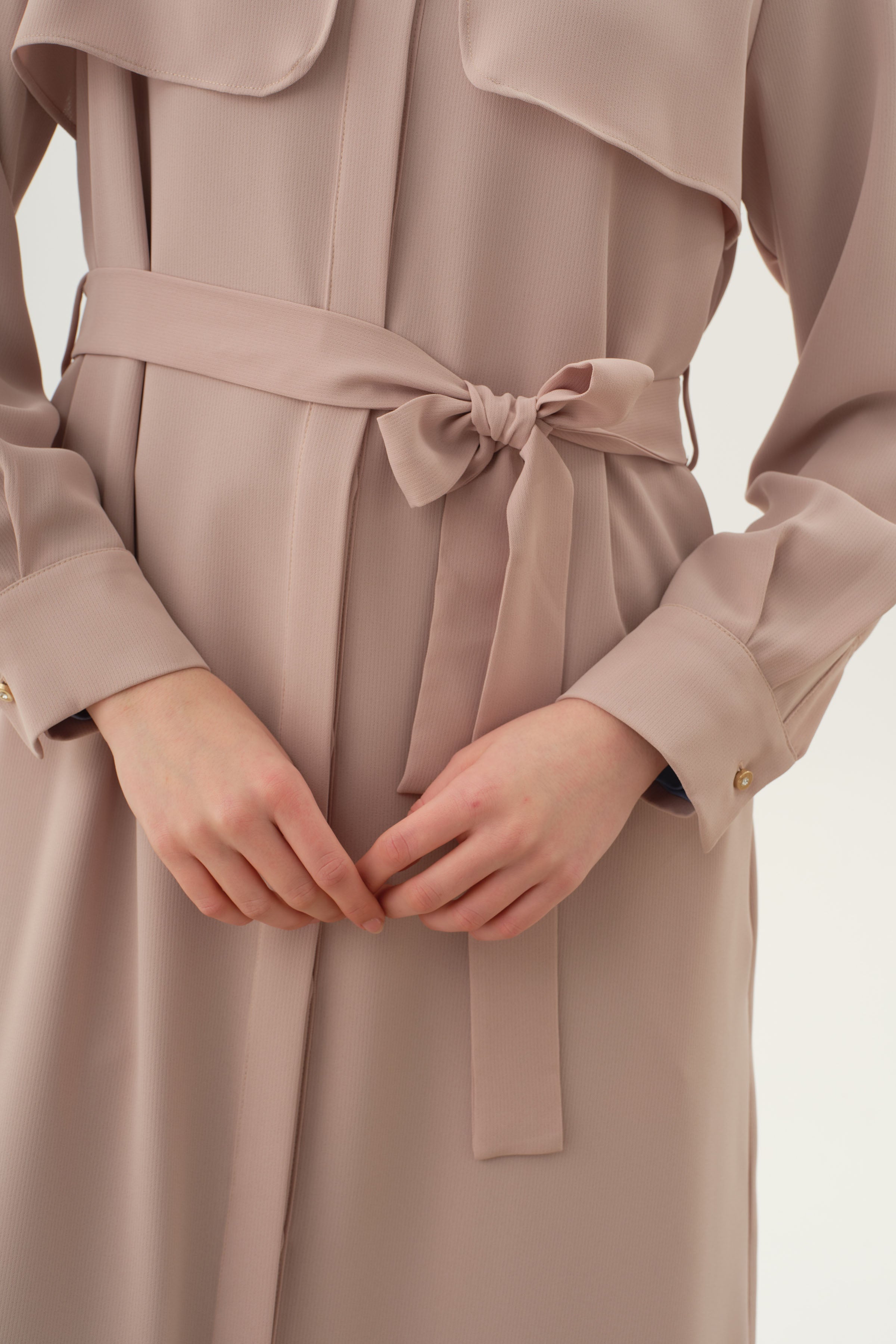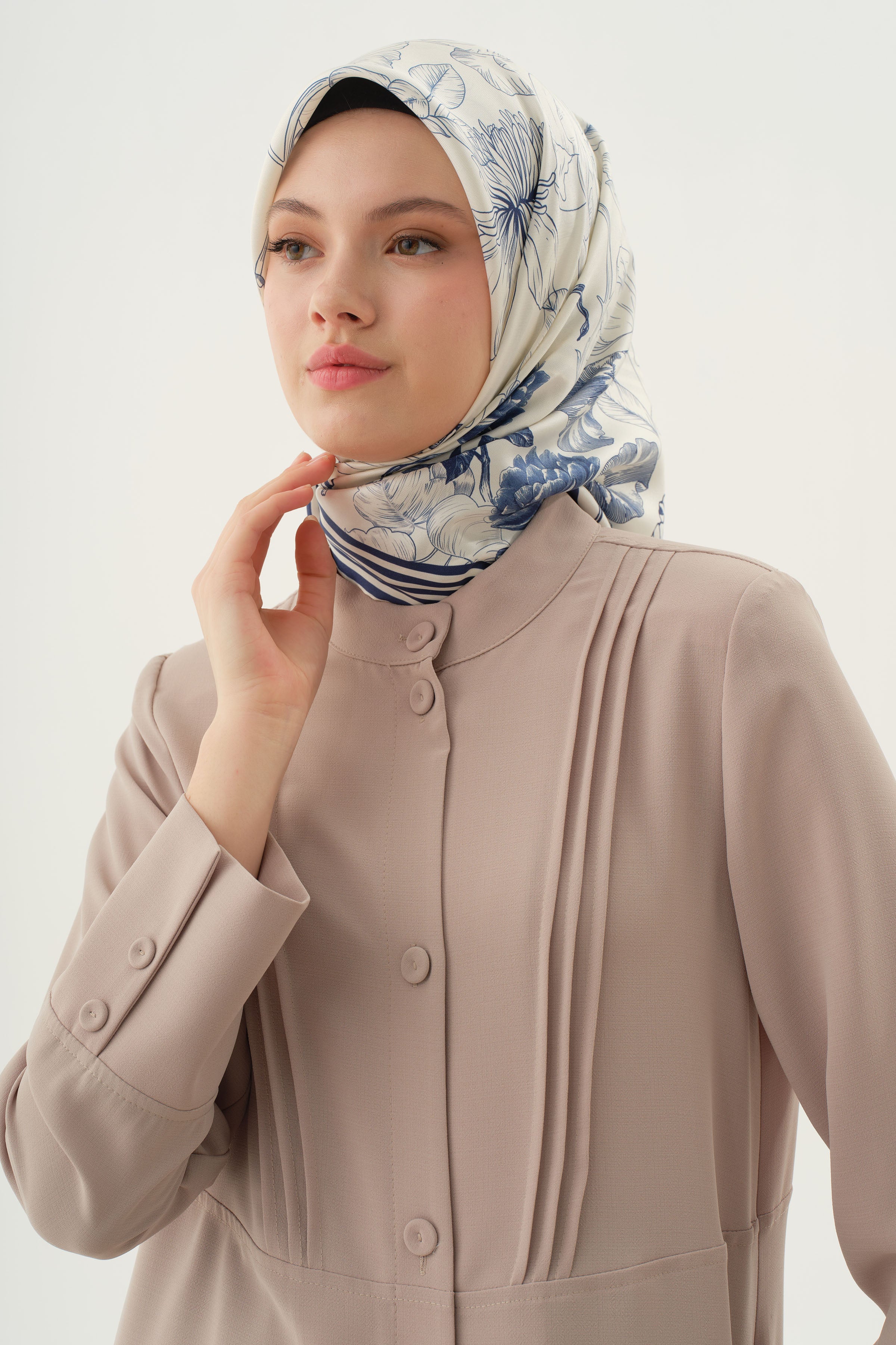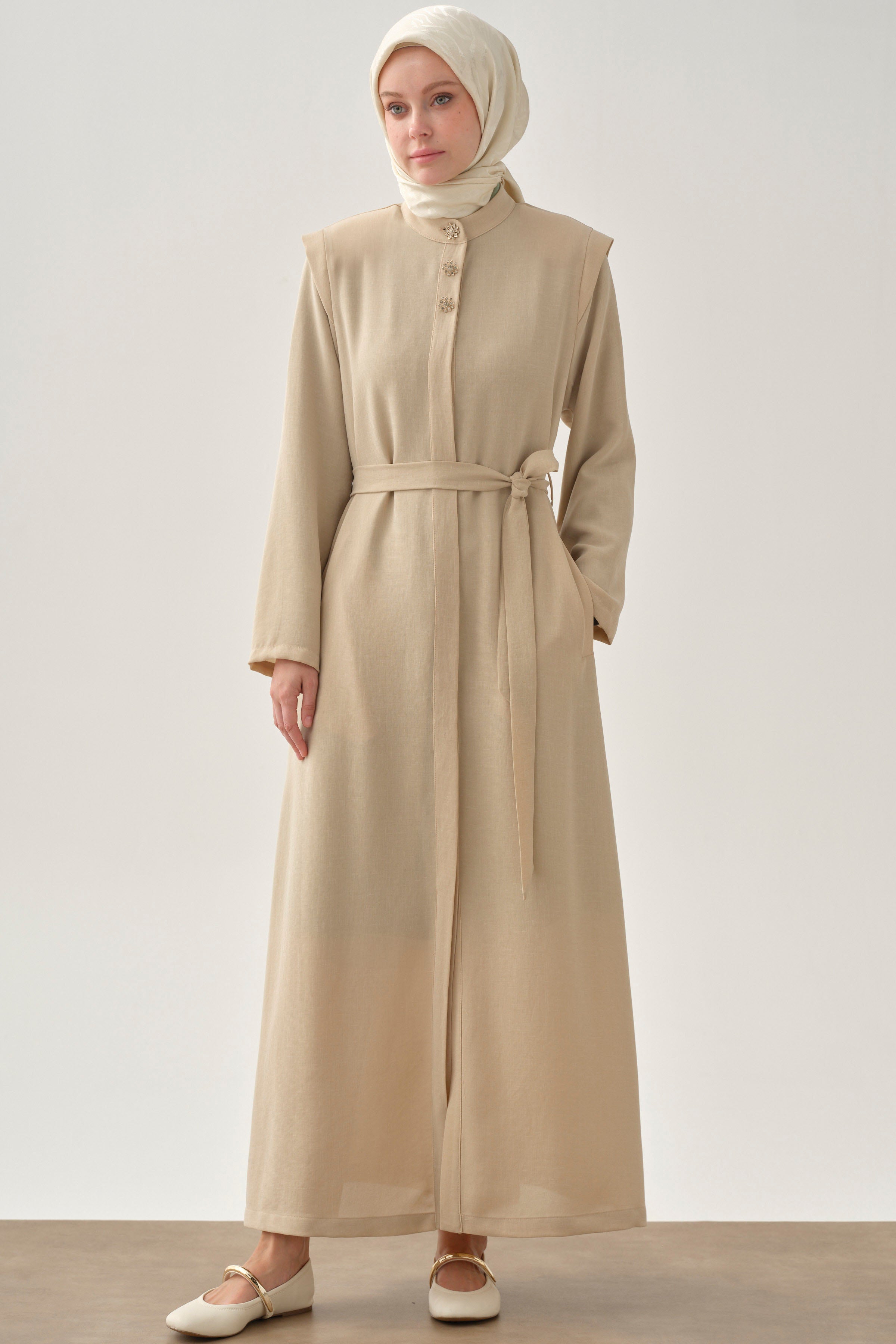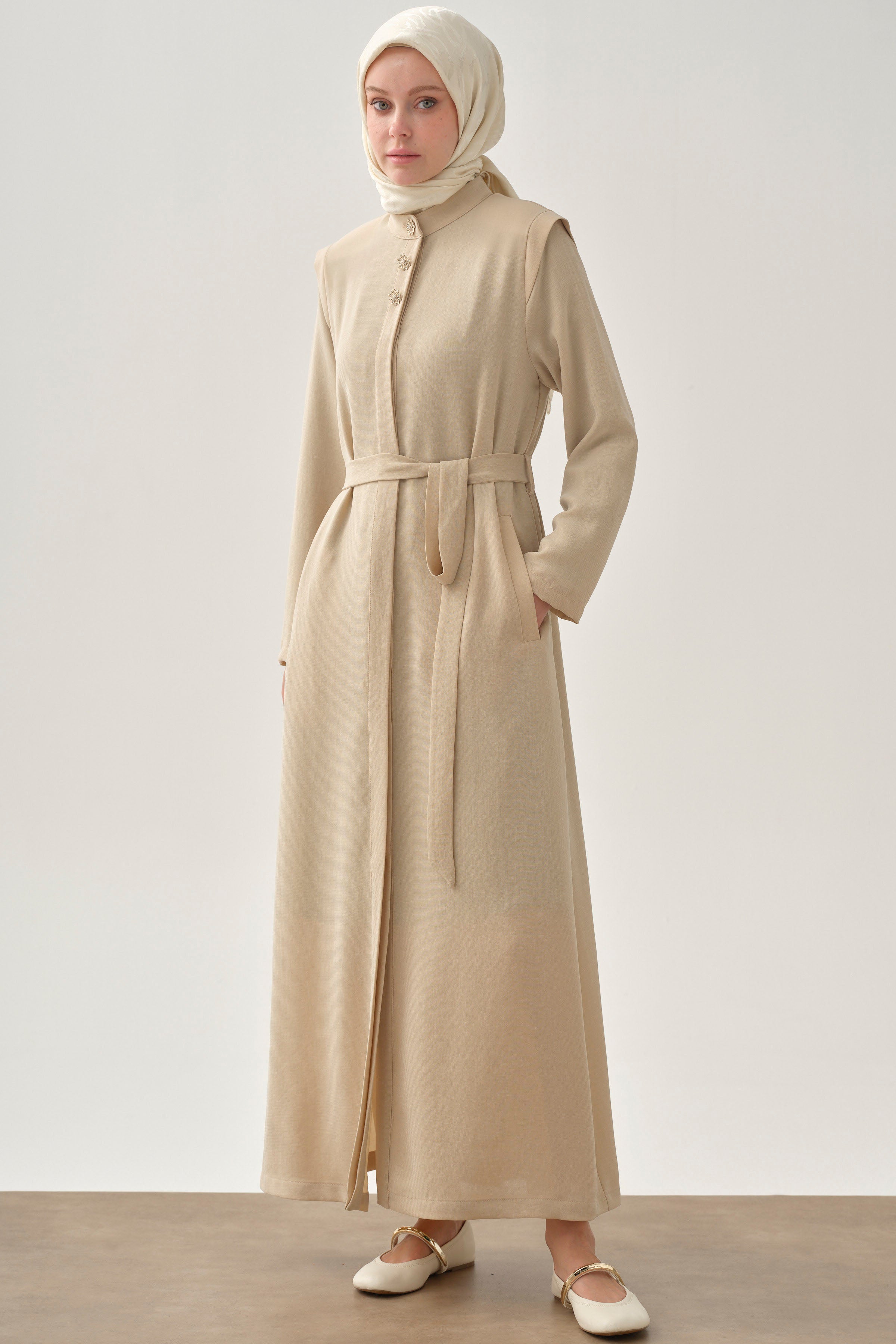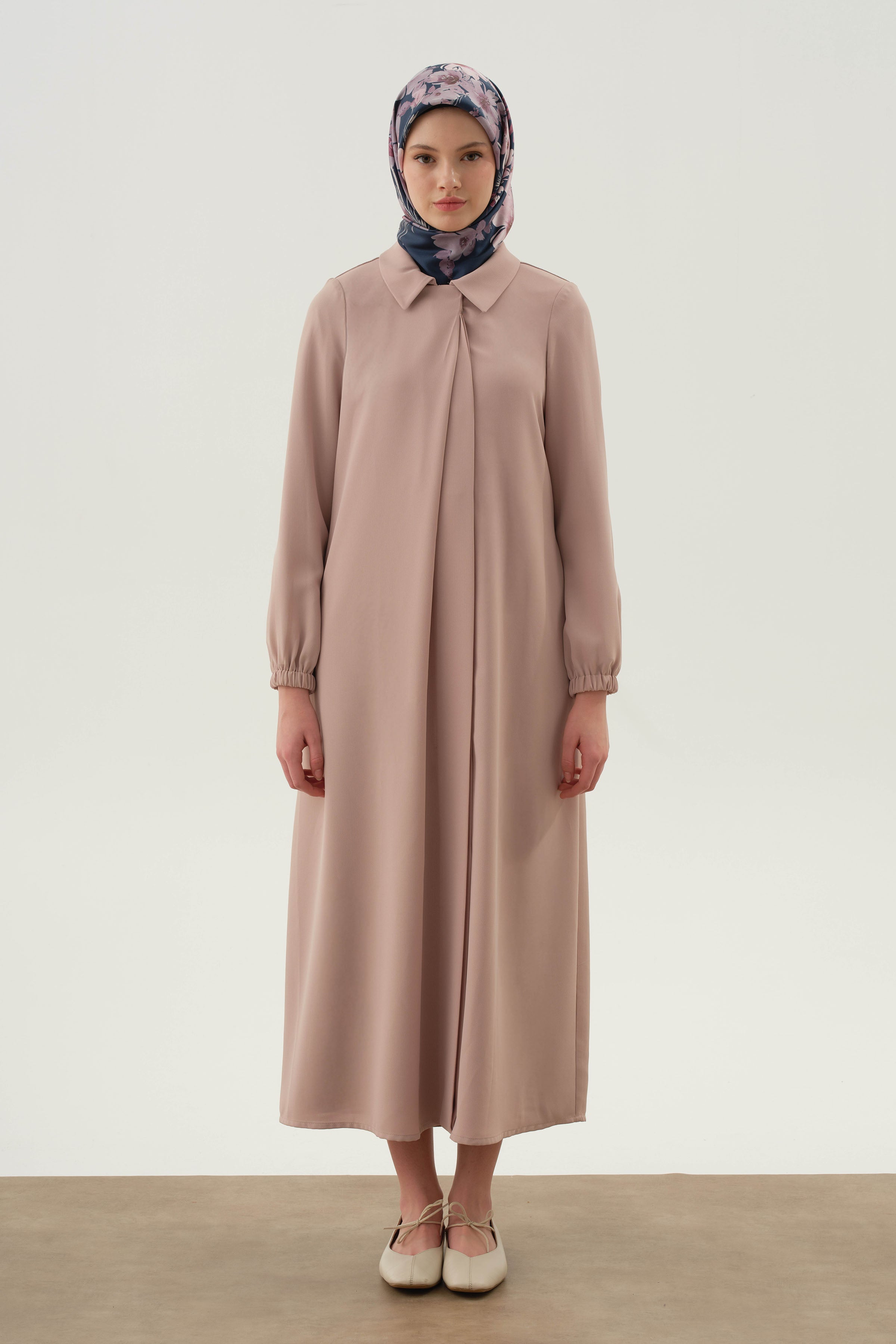 Abaya à col rond avec patte de boutonnage cachée - Noir