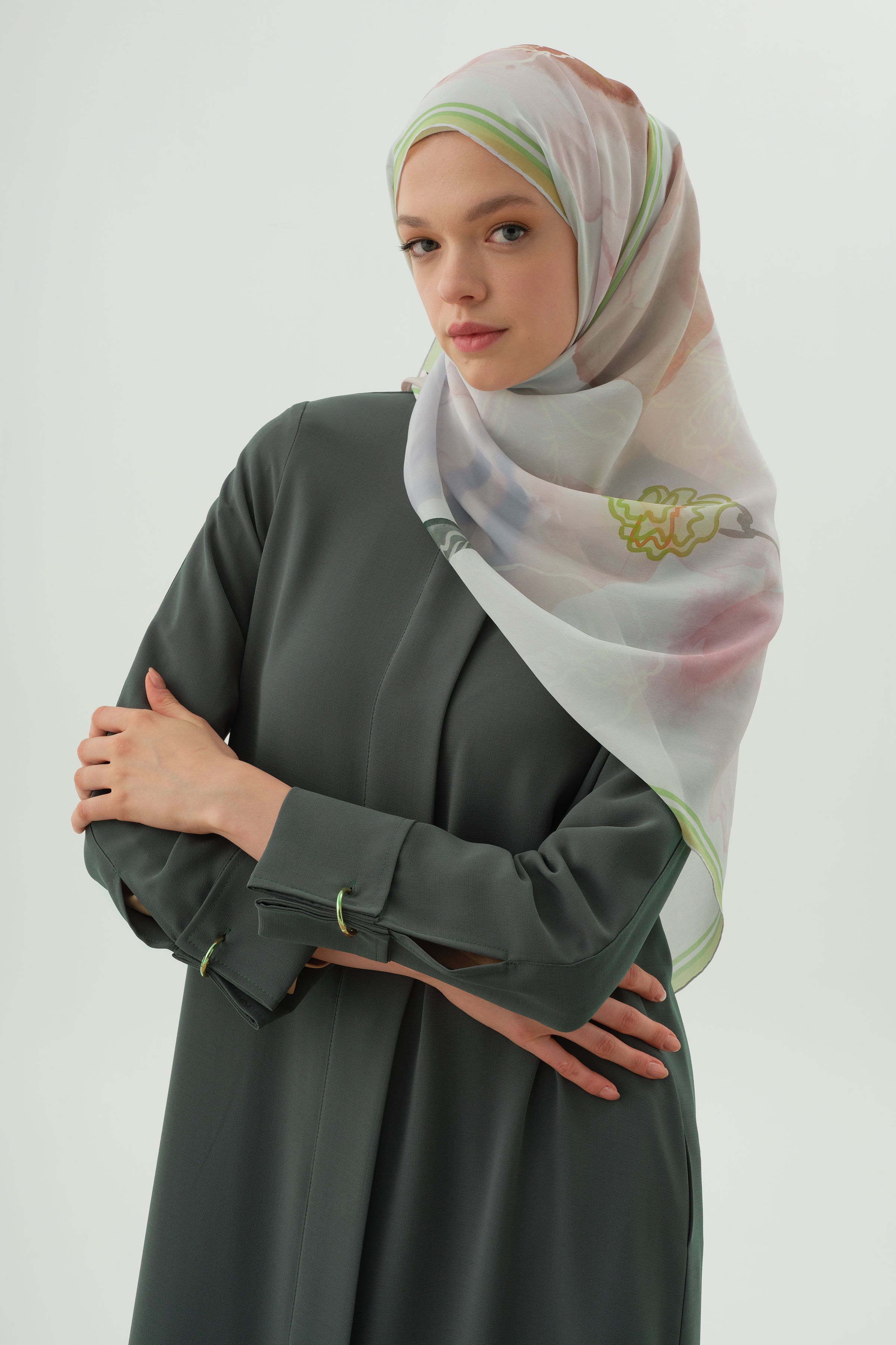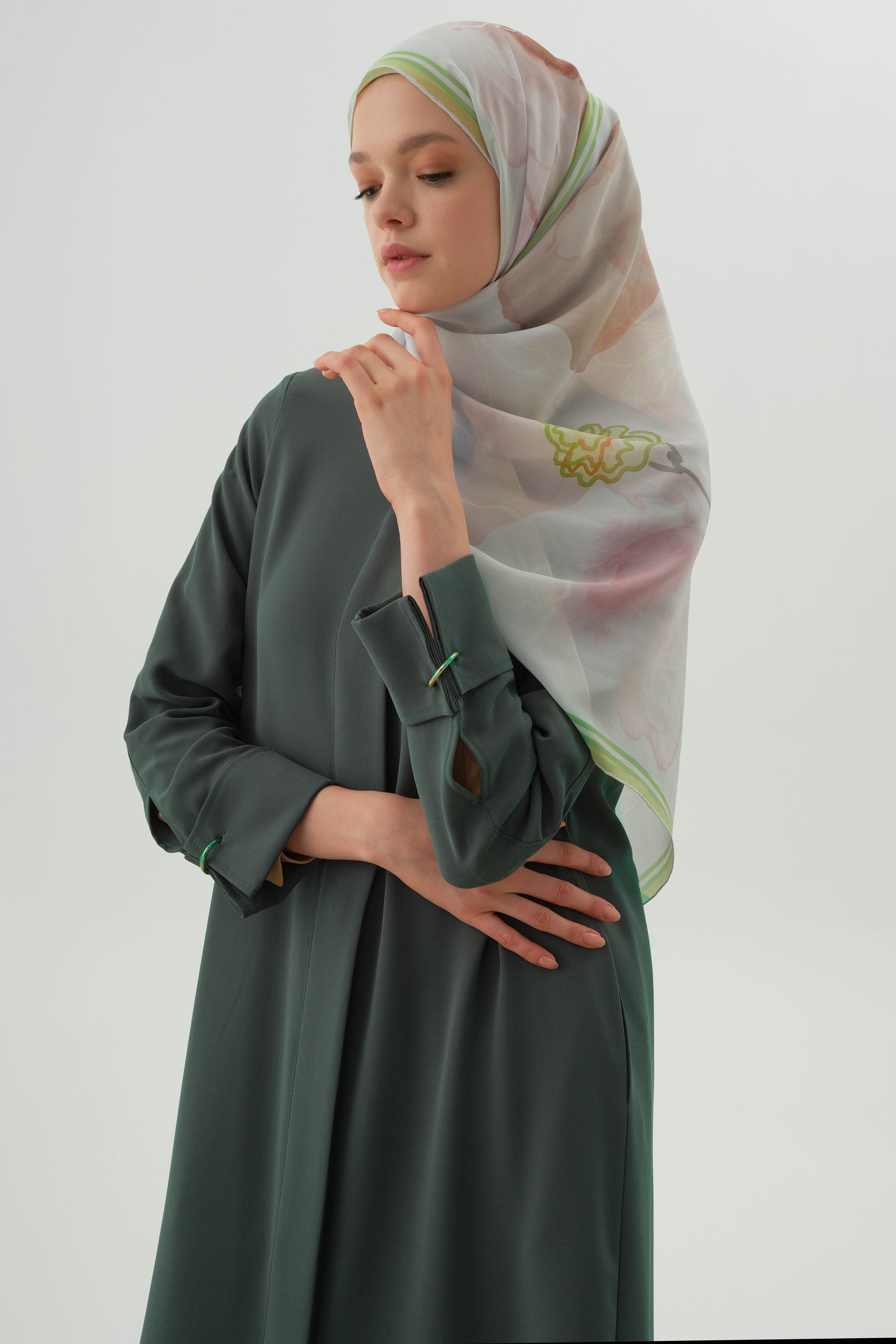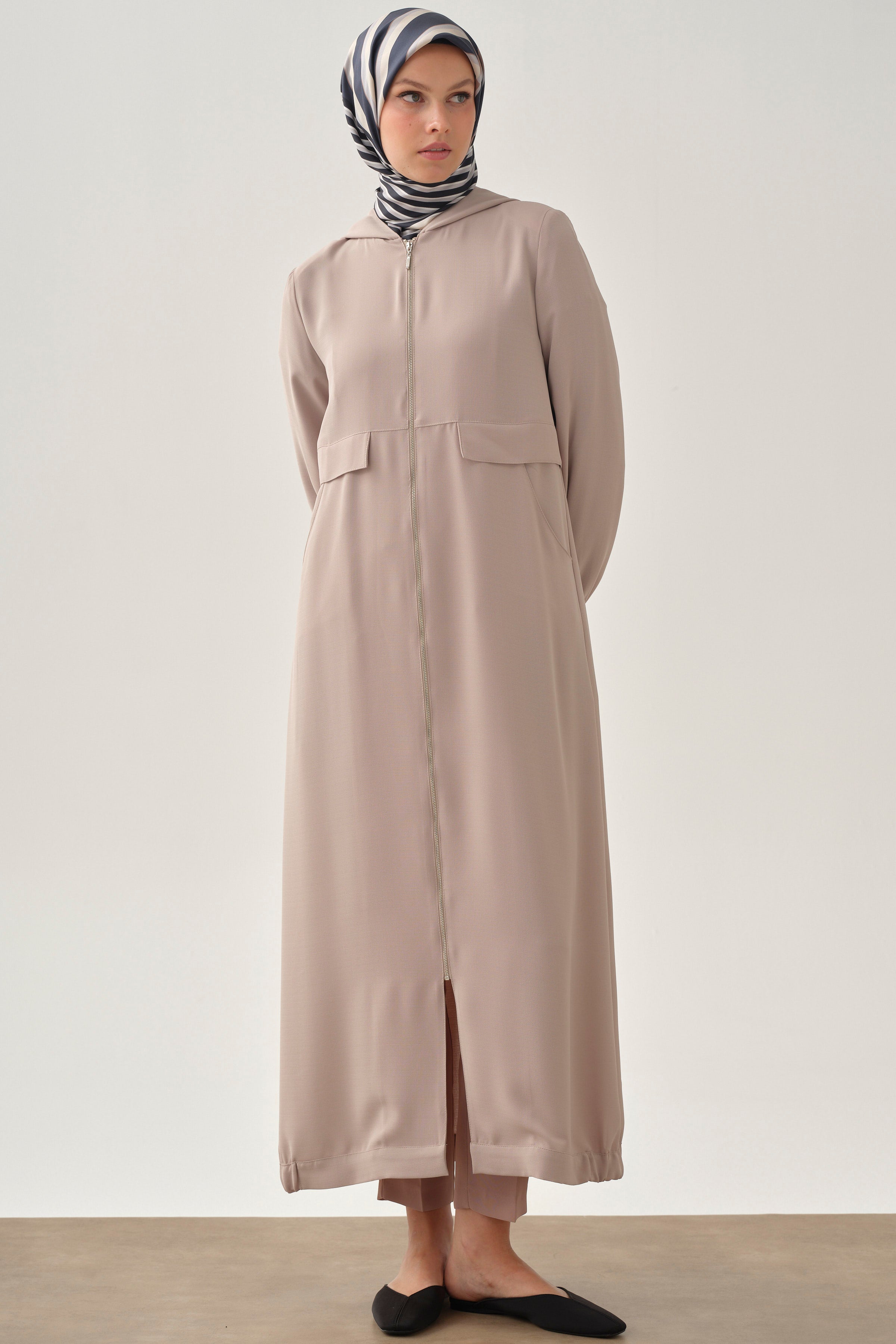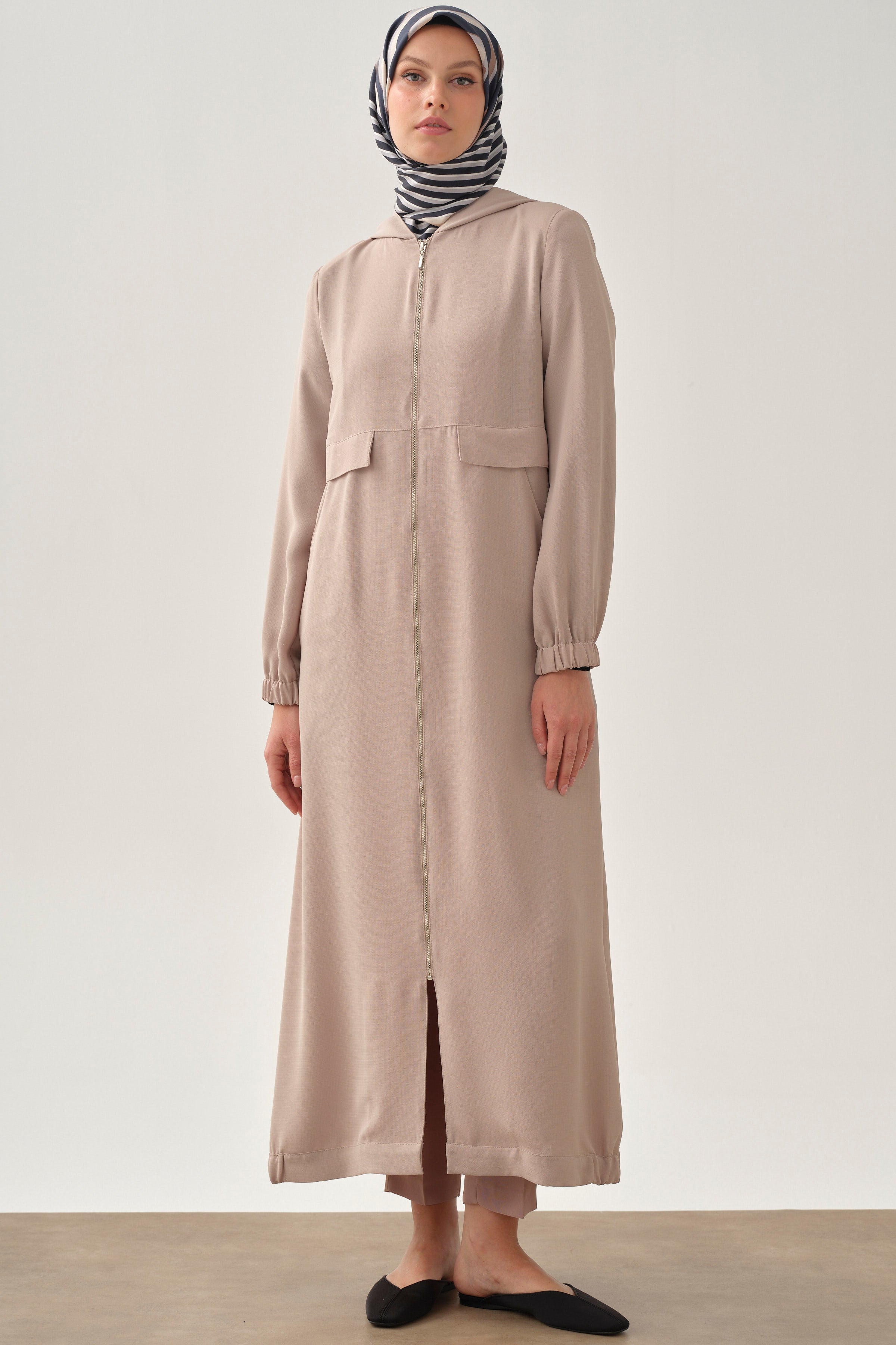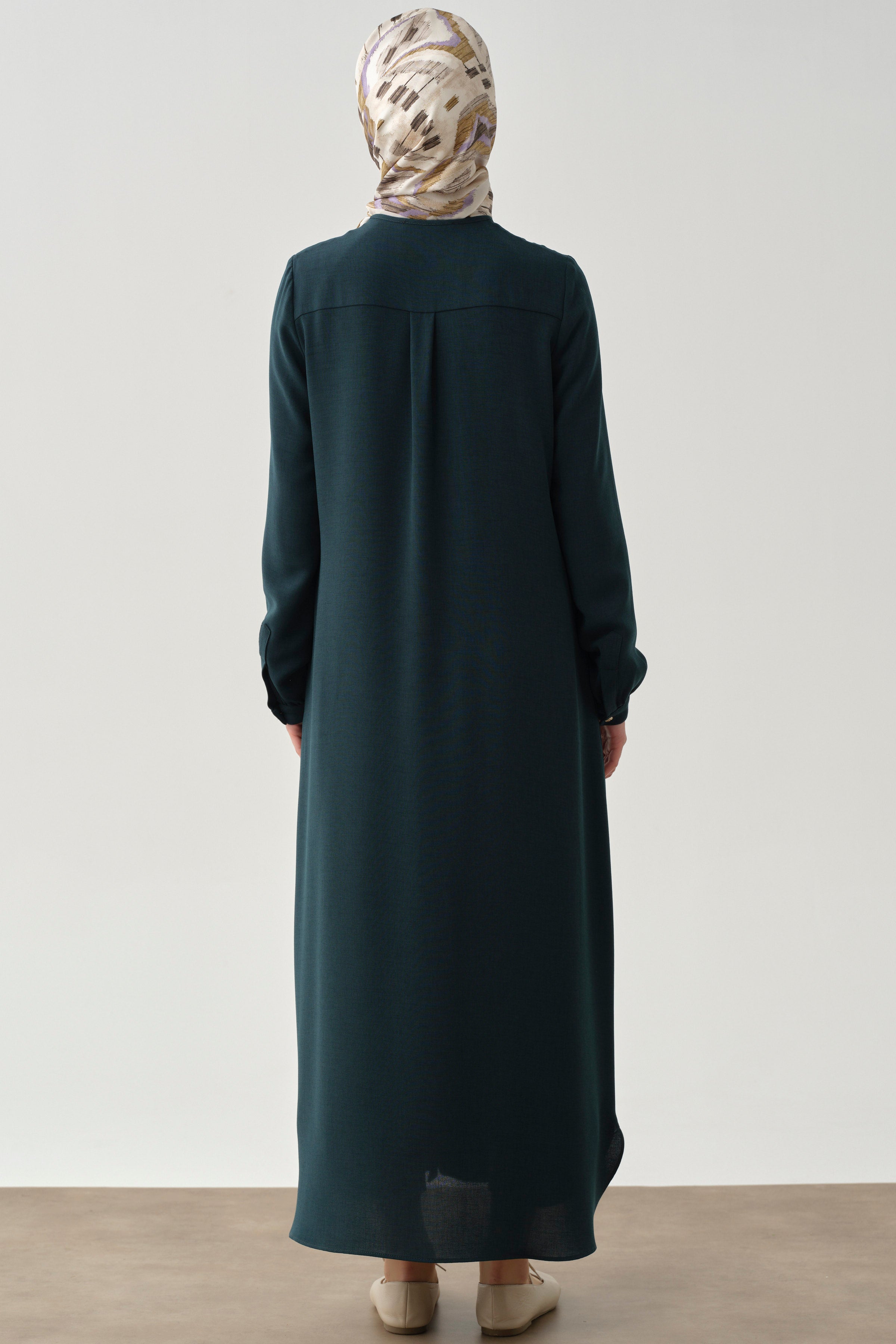 Abaya en tricot à capuche et fermeture éclair - Vert émeraude
