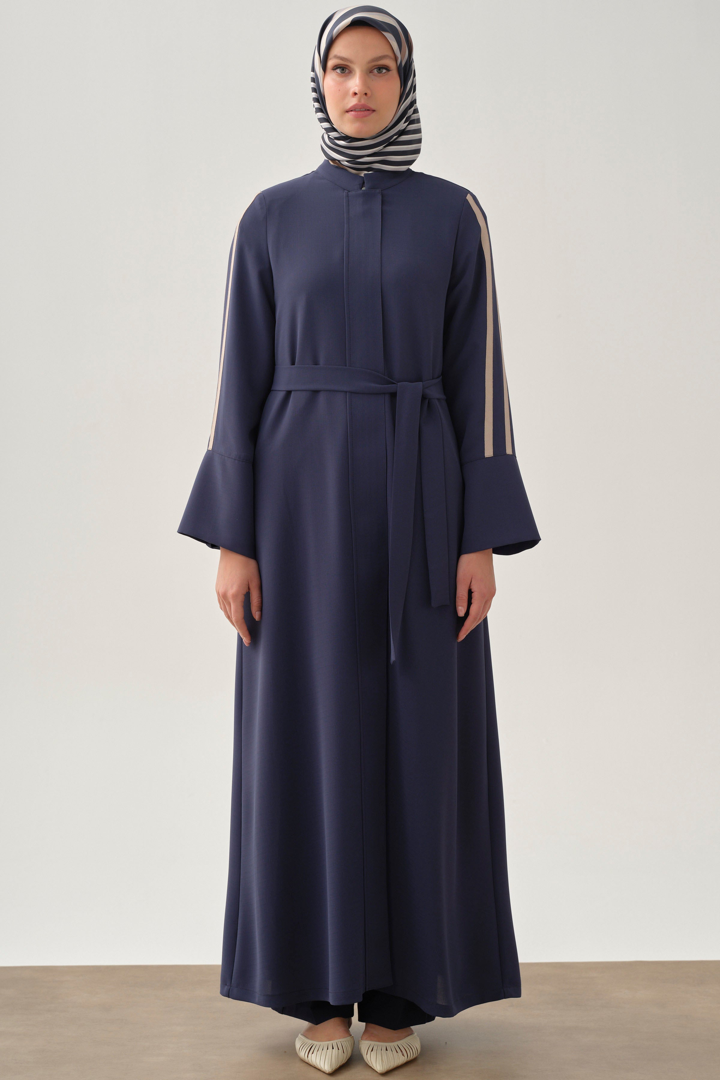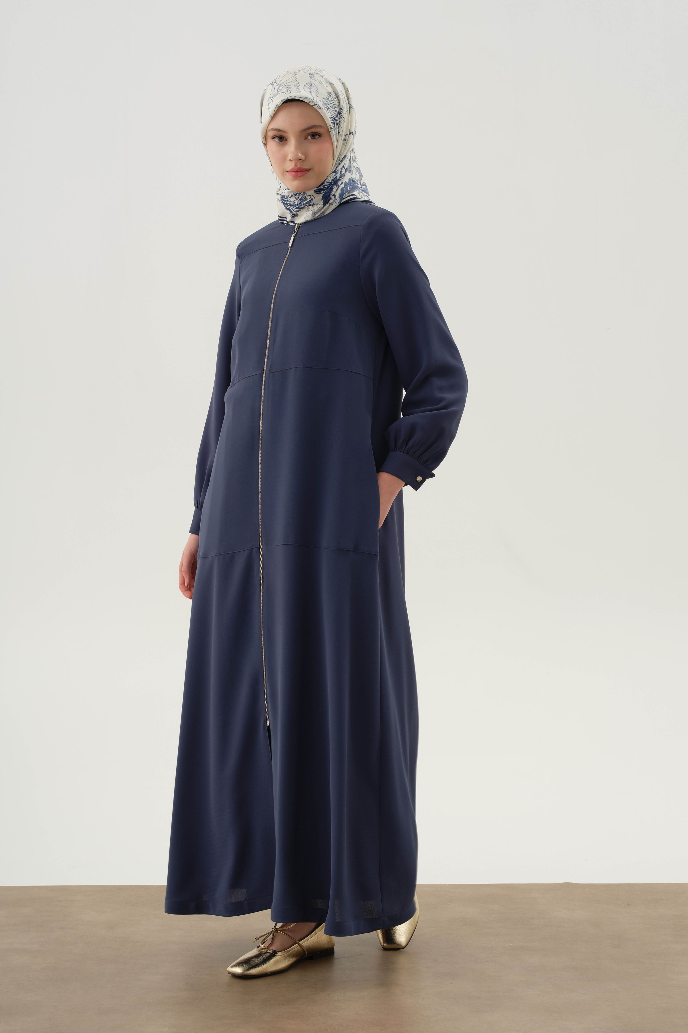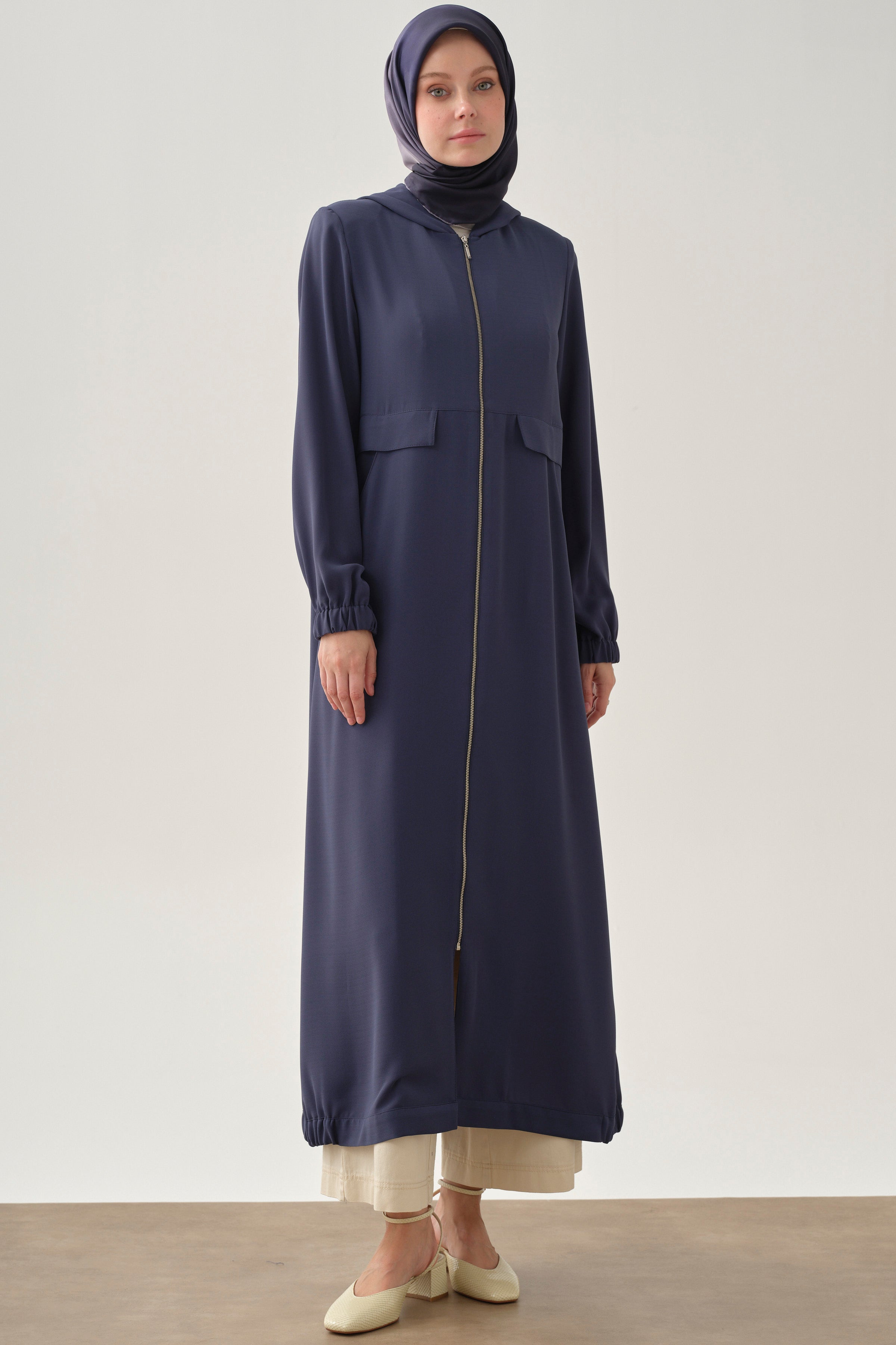 Abaya en tricot à capuche et fermeture éclair - Blue marine