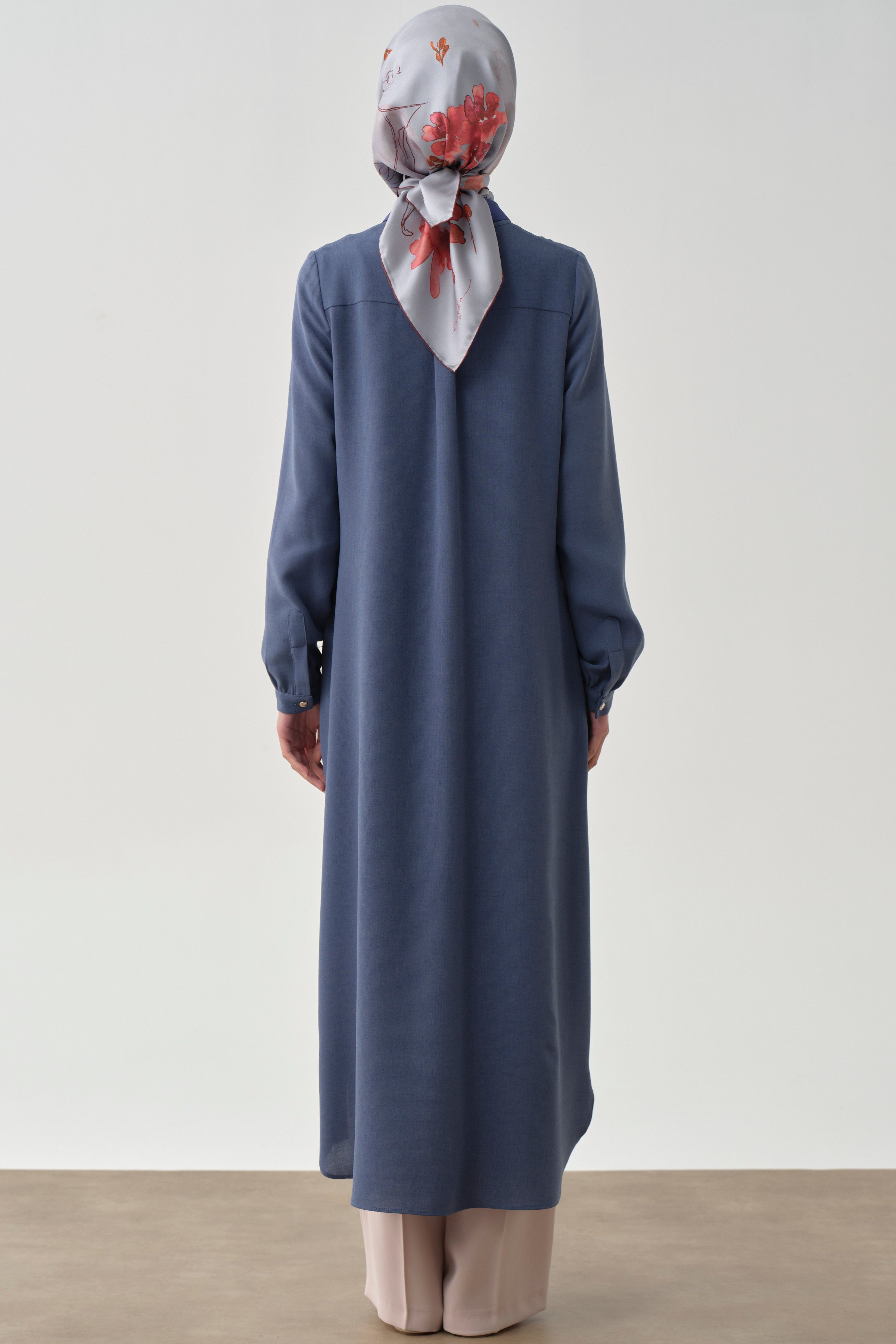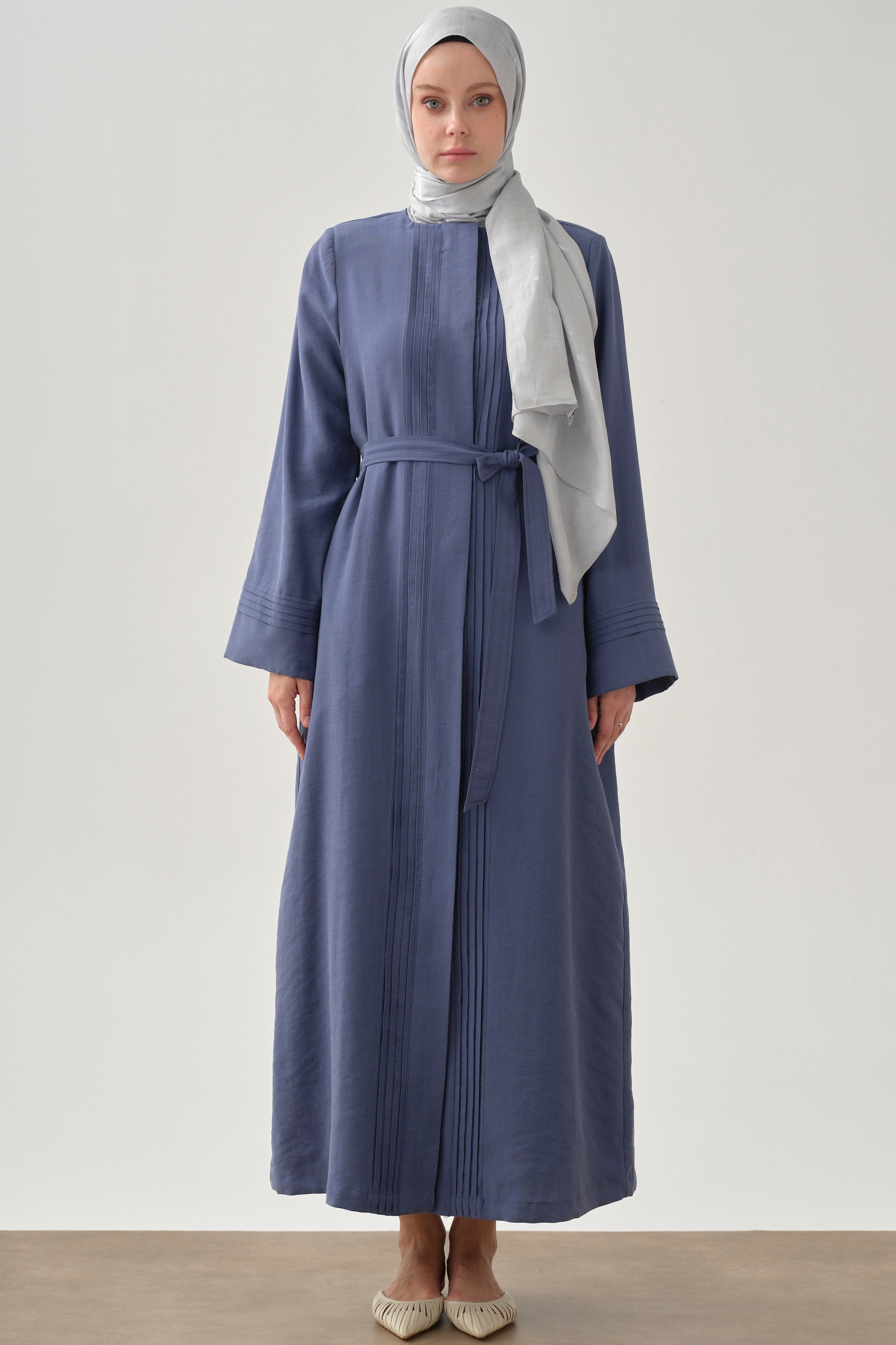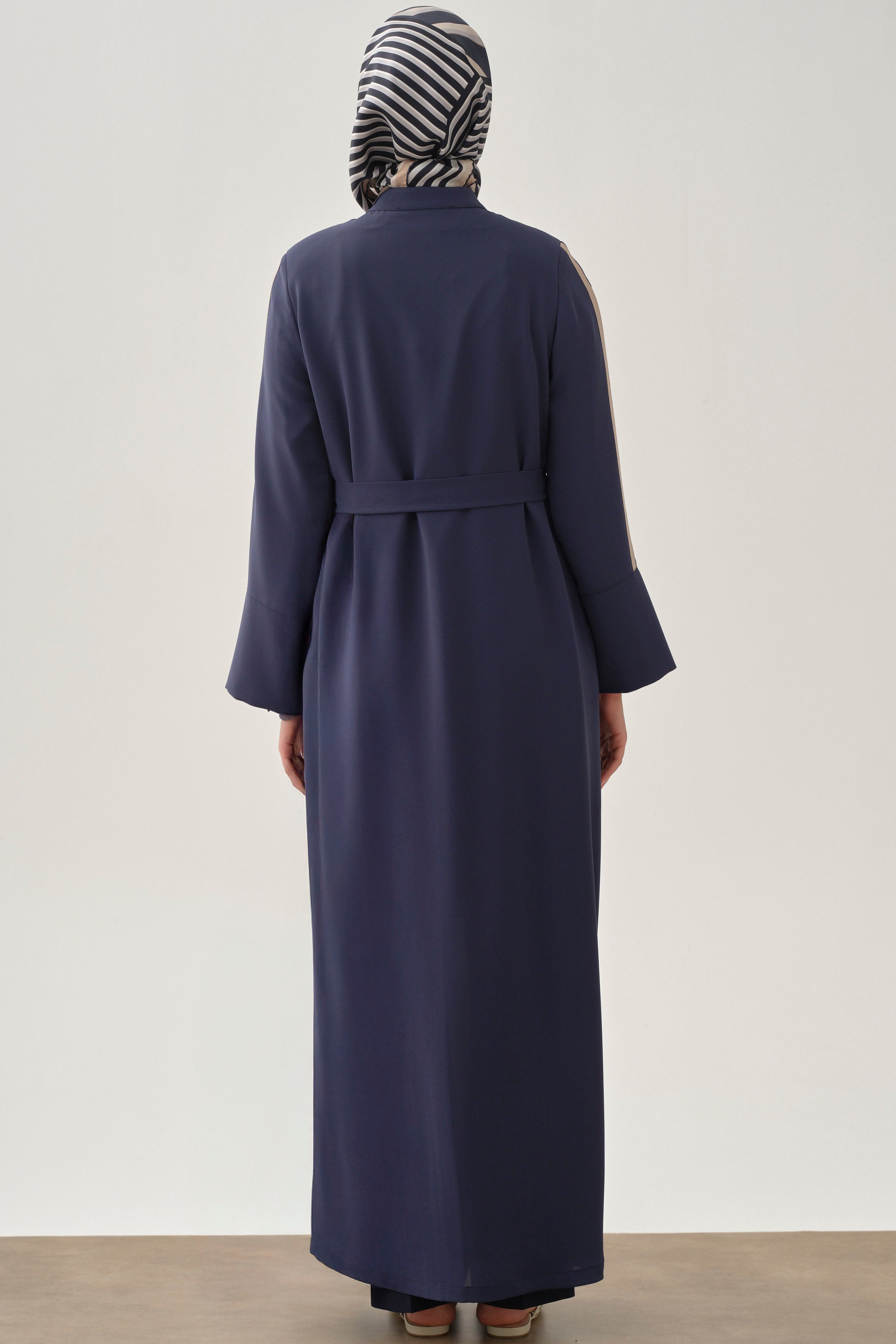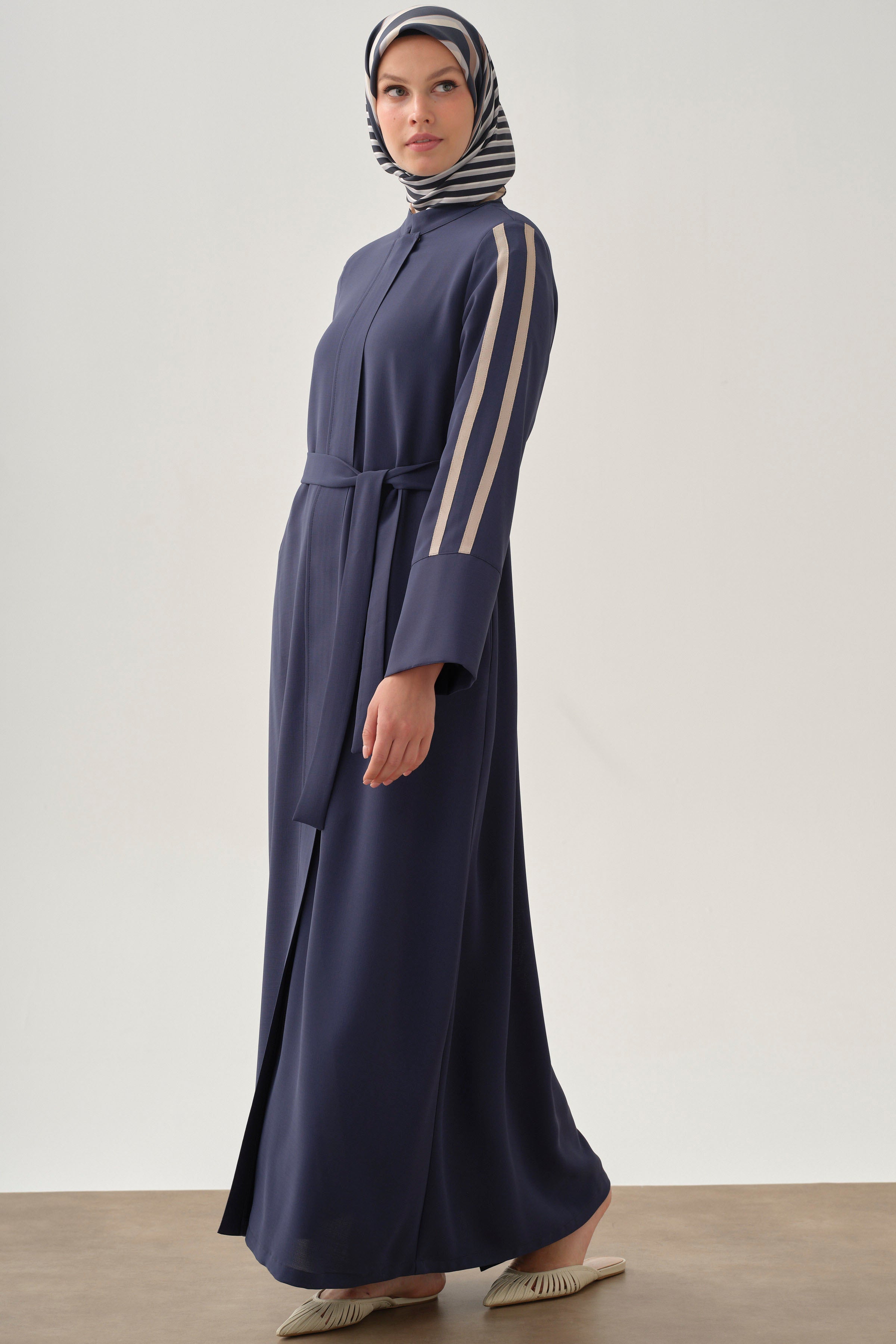 Abaya en tricot à capuche et fermeture éclair - Blue marine