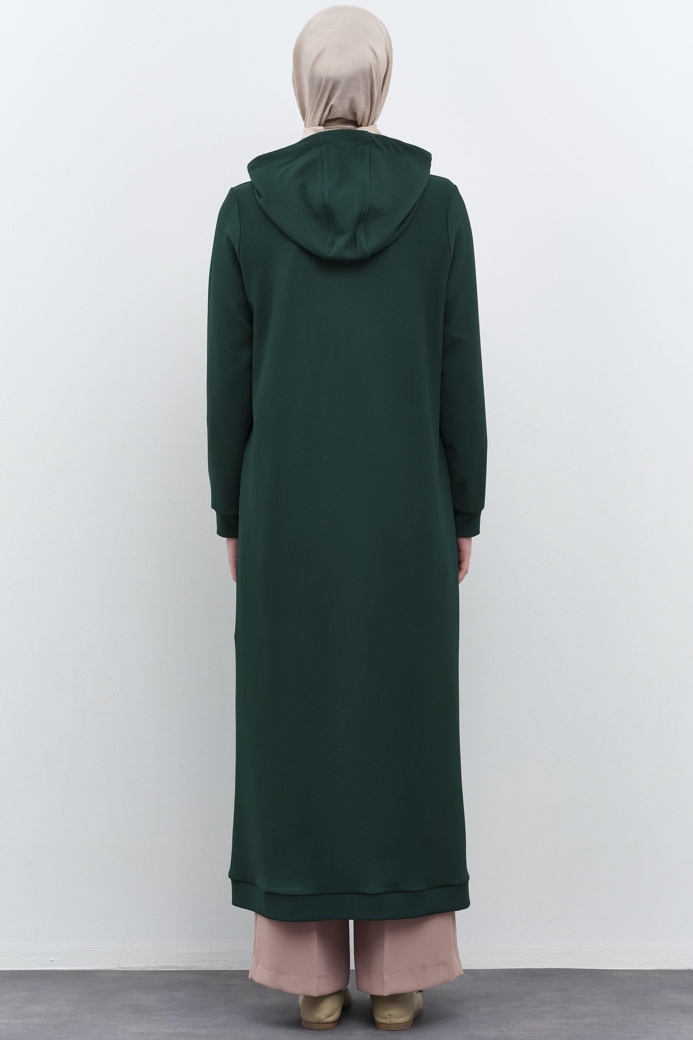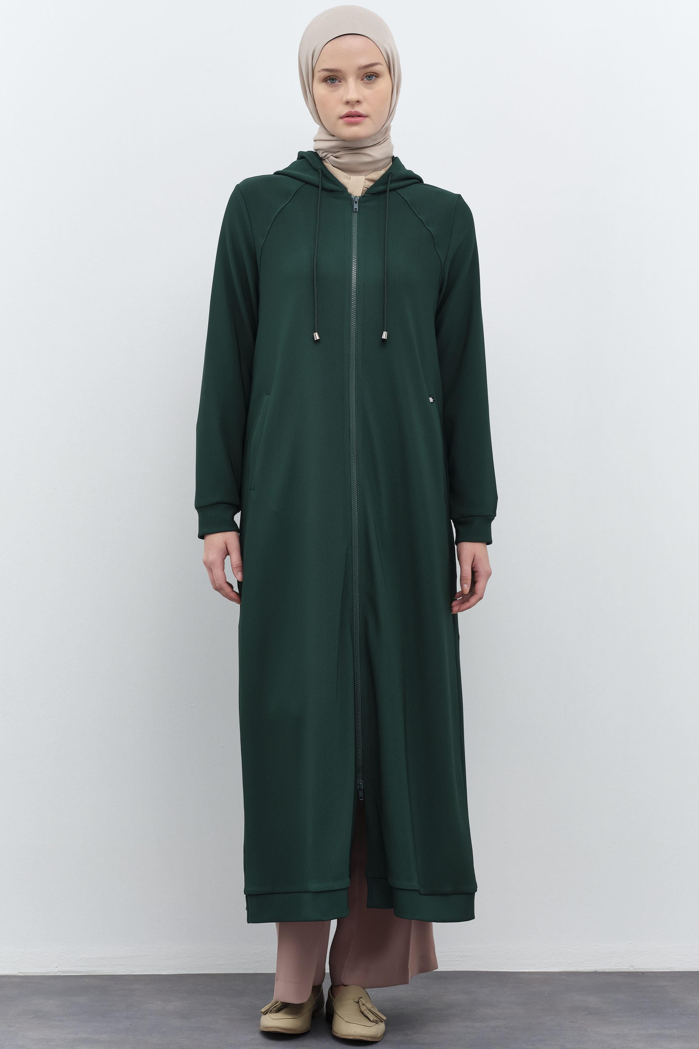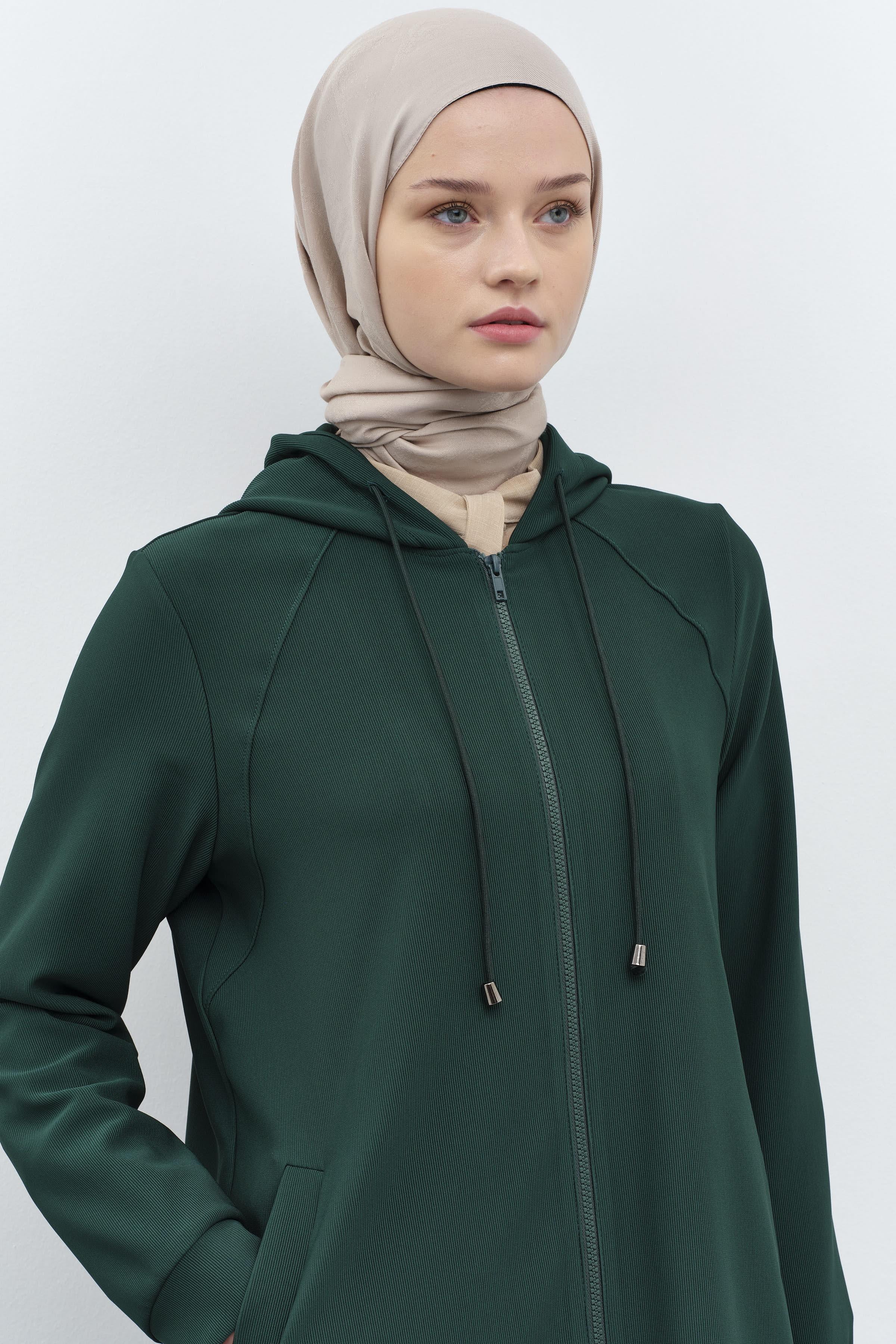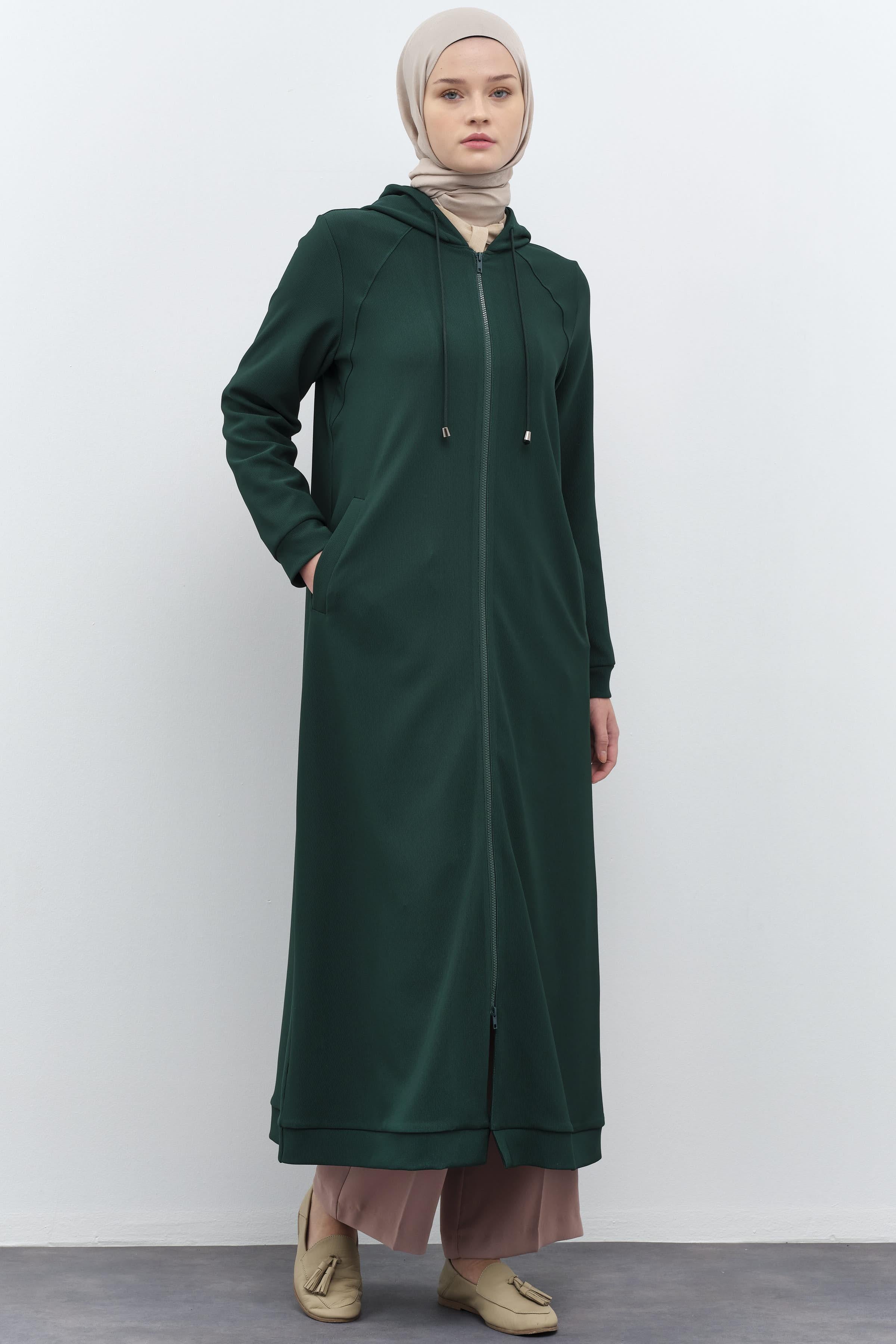 Abaya en tricot à capuche et fermeture éclair - Vert émeraude