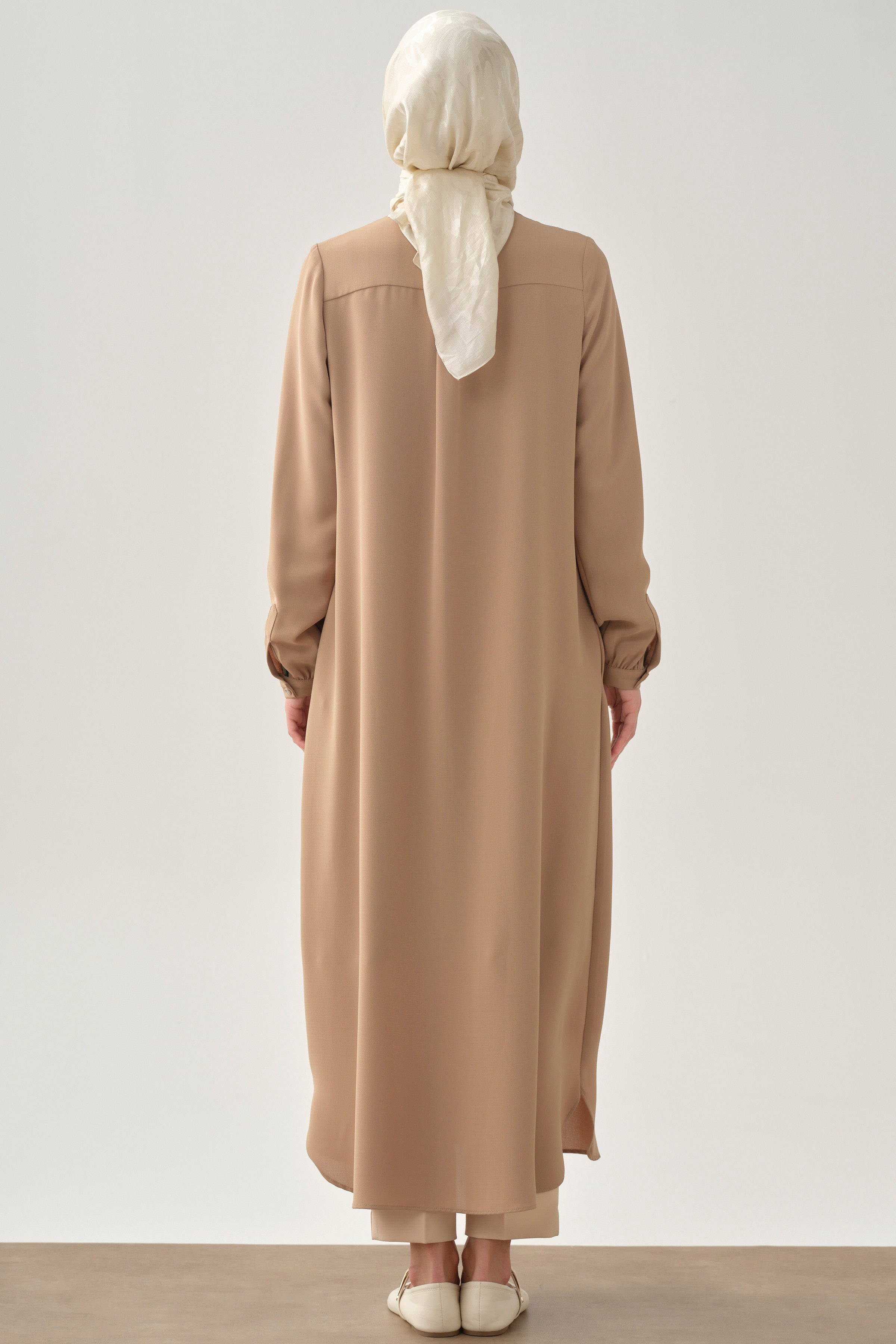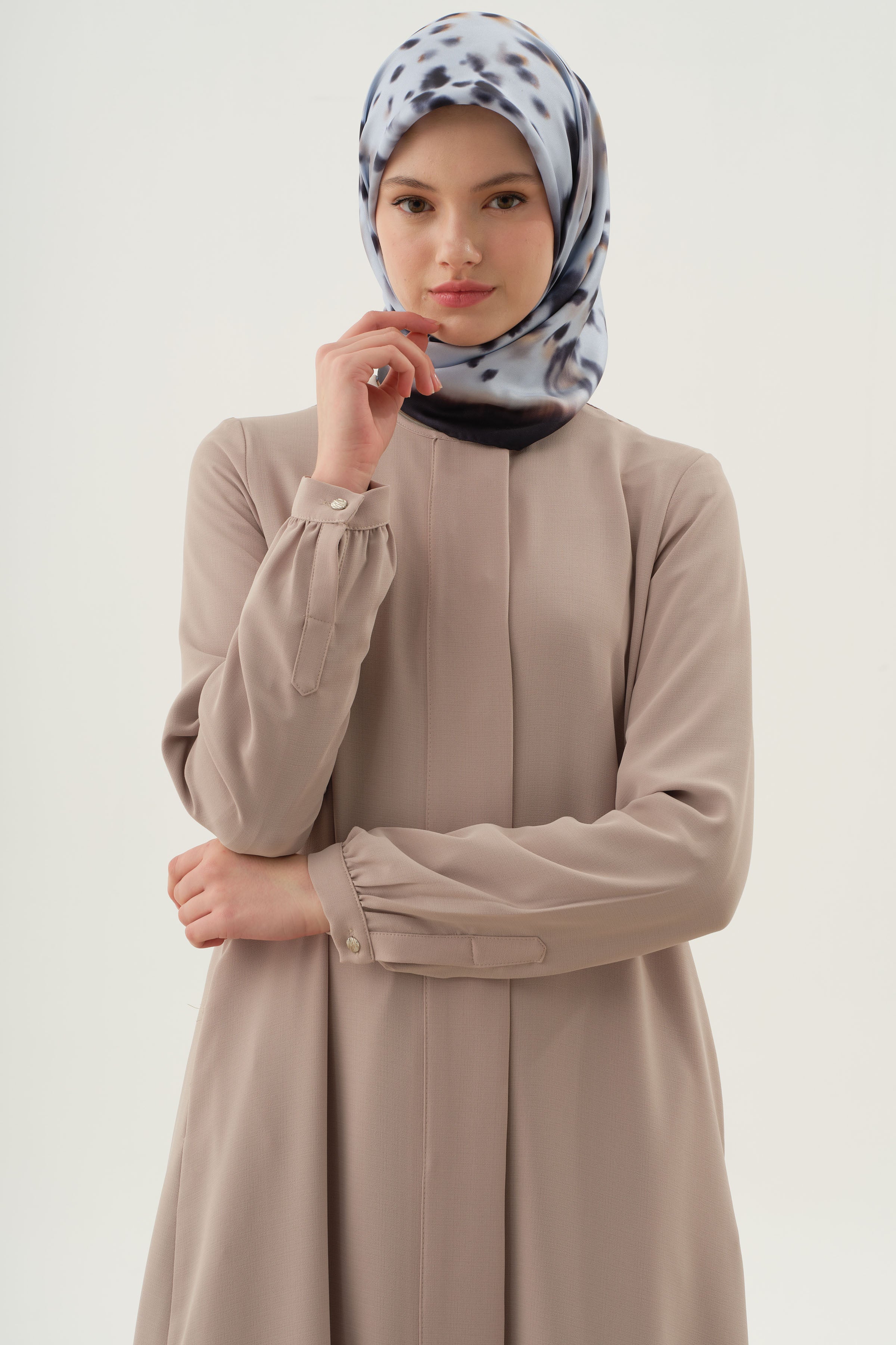 Abaya à col rond avec patte de boutonnage cachée - Beige