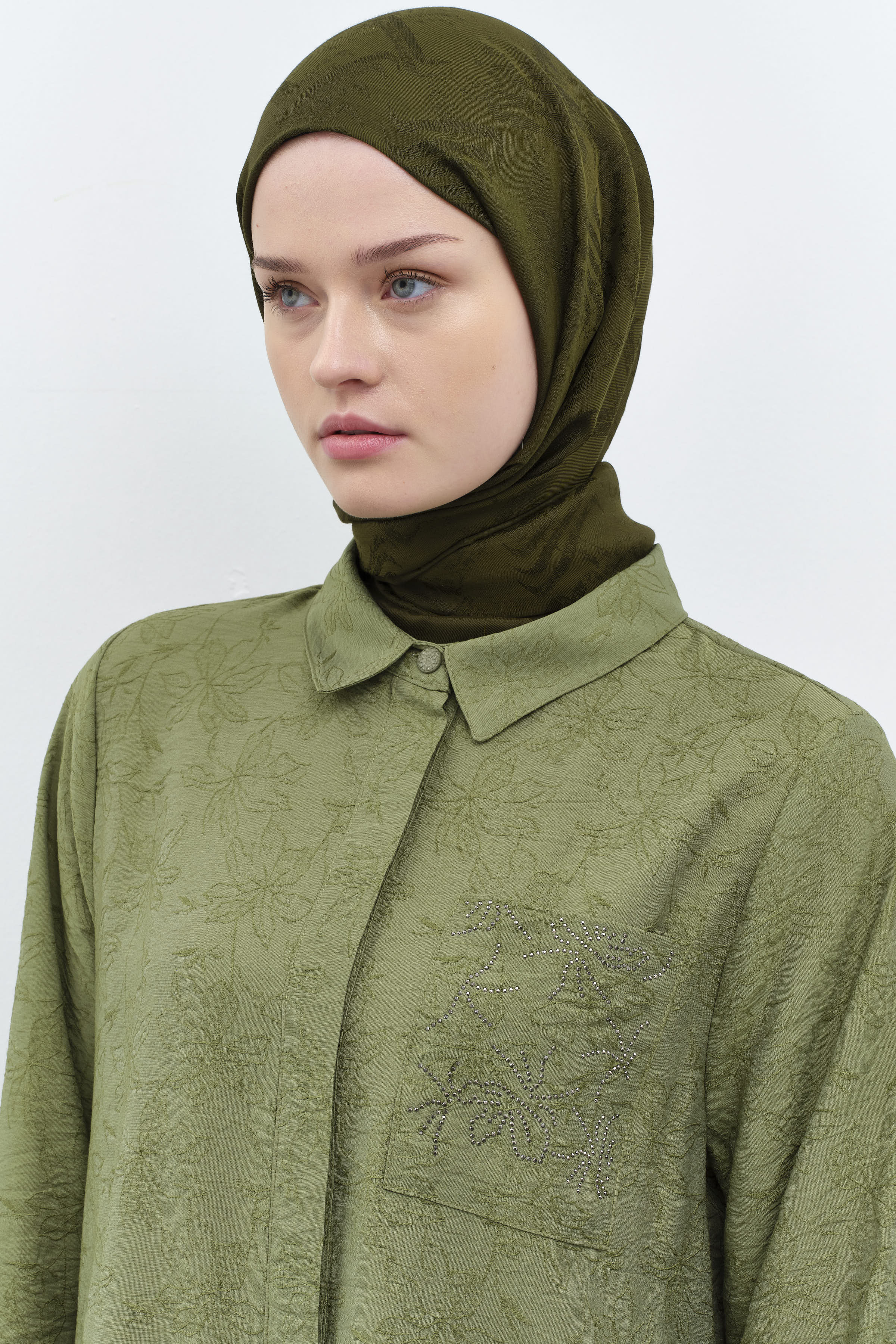 Châle Belle avec motif en forme de baklava - Kaki