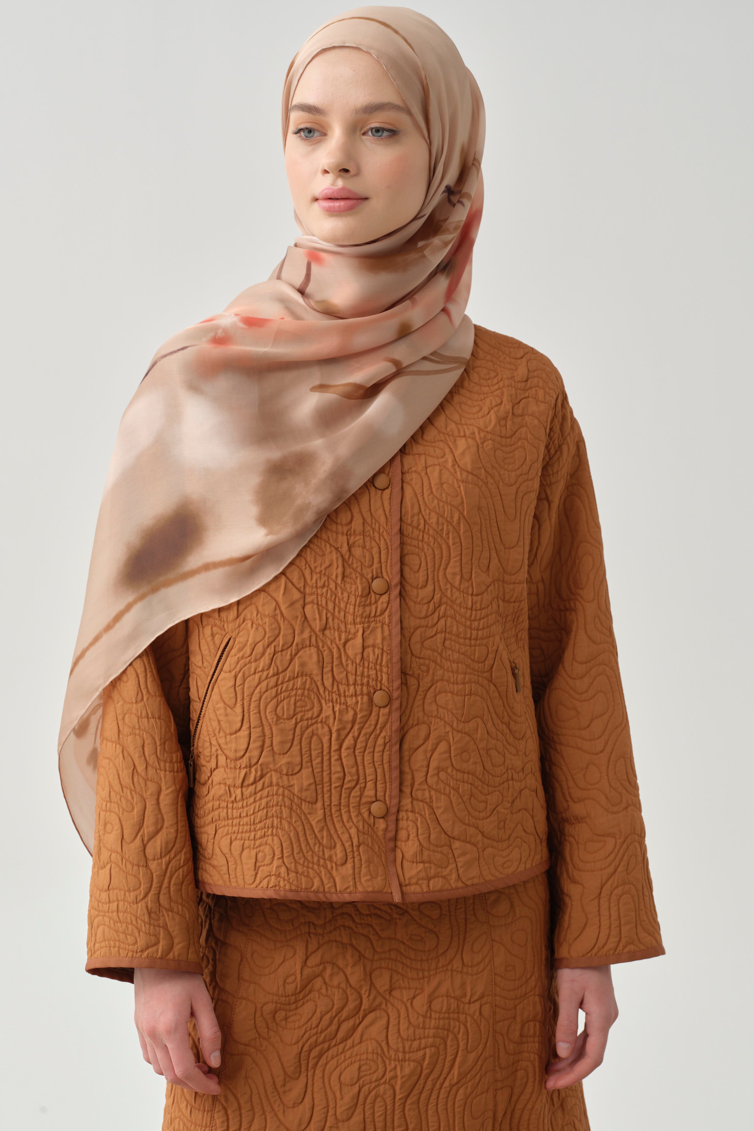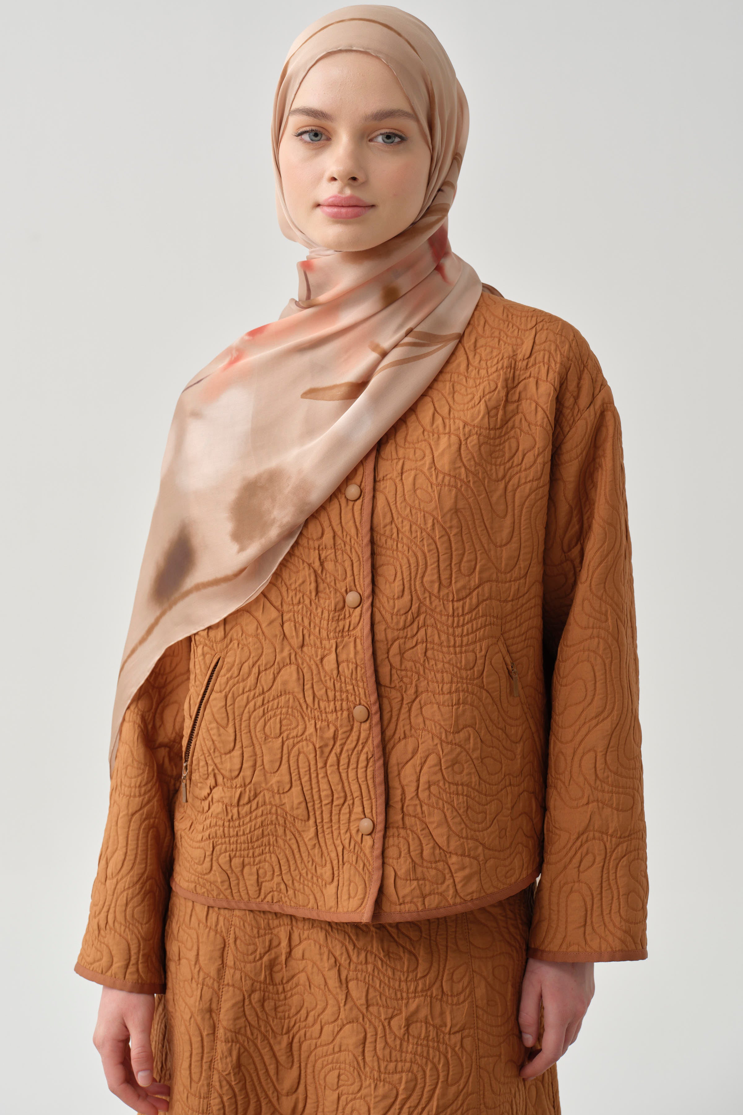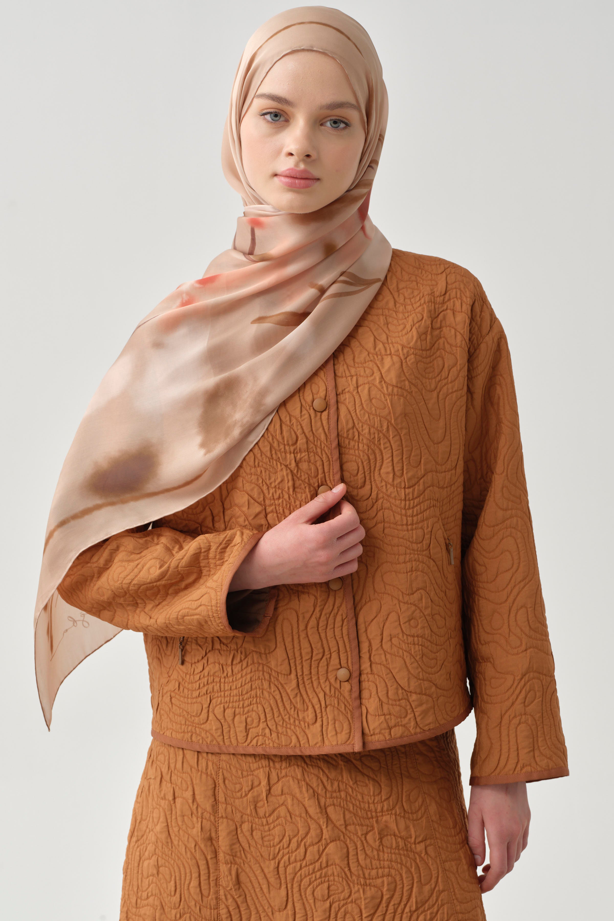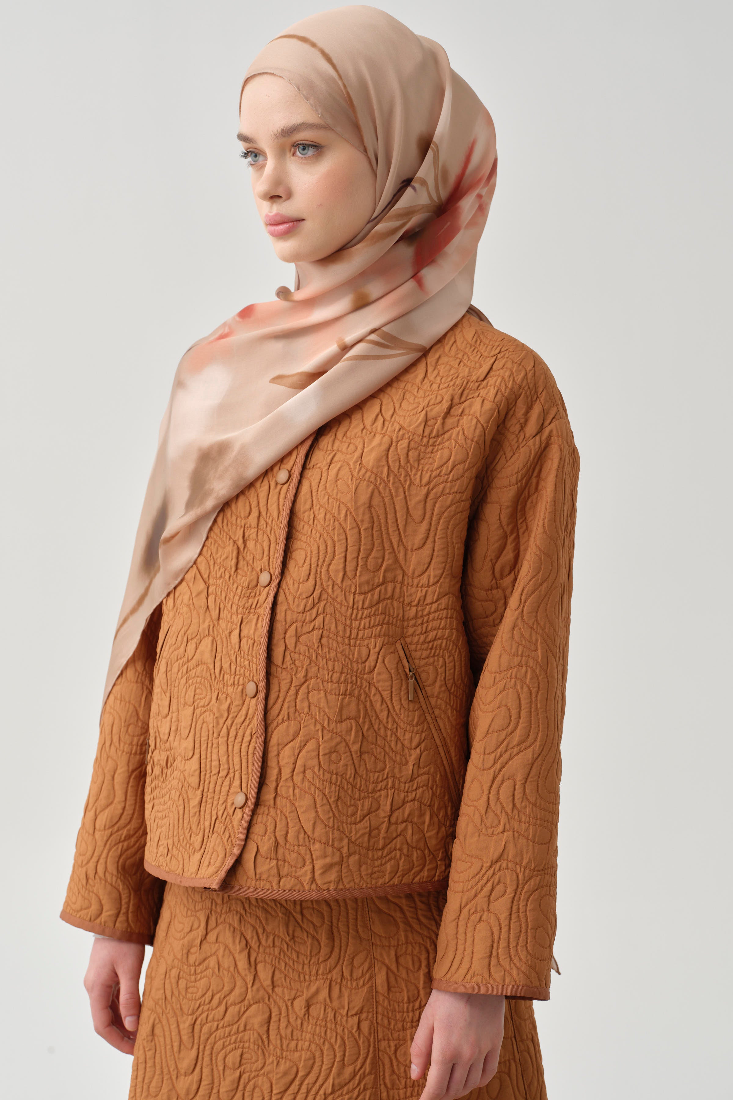 Veste crop matelassée avec passepoil en gros-grain - Cannelle