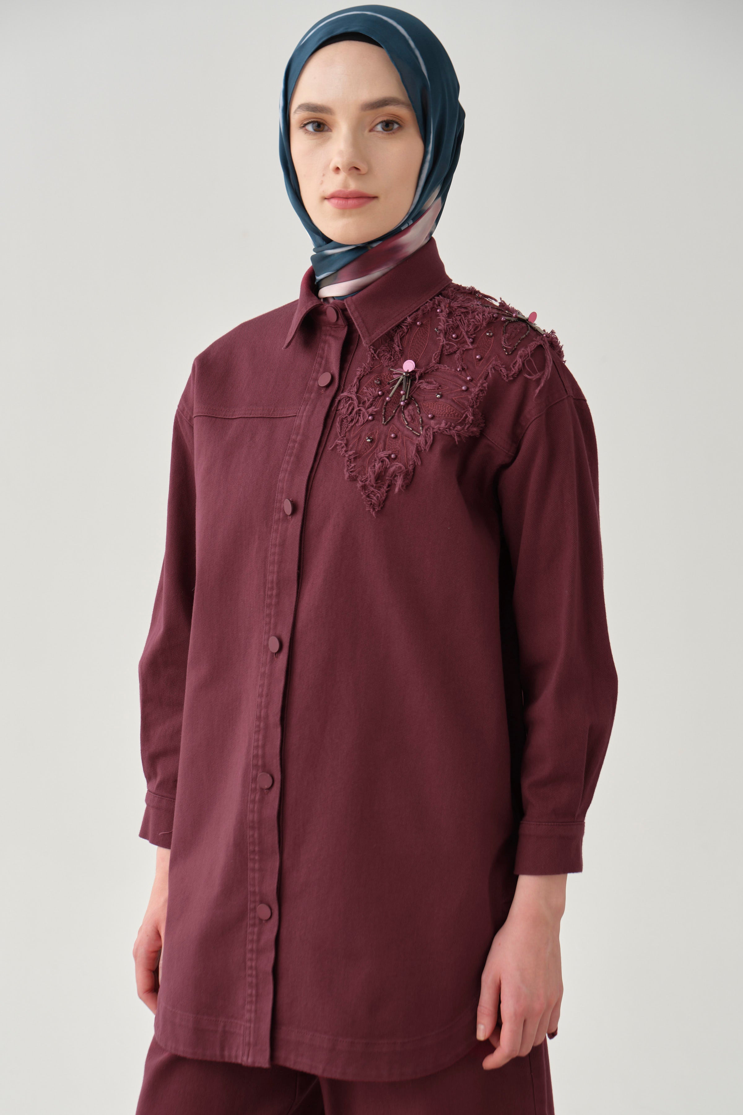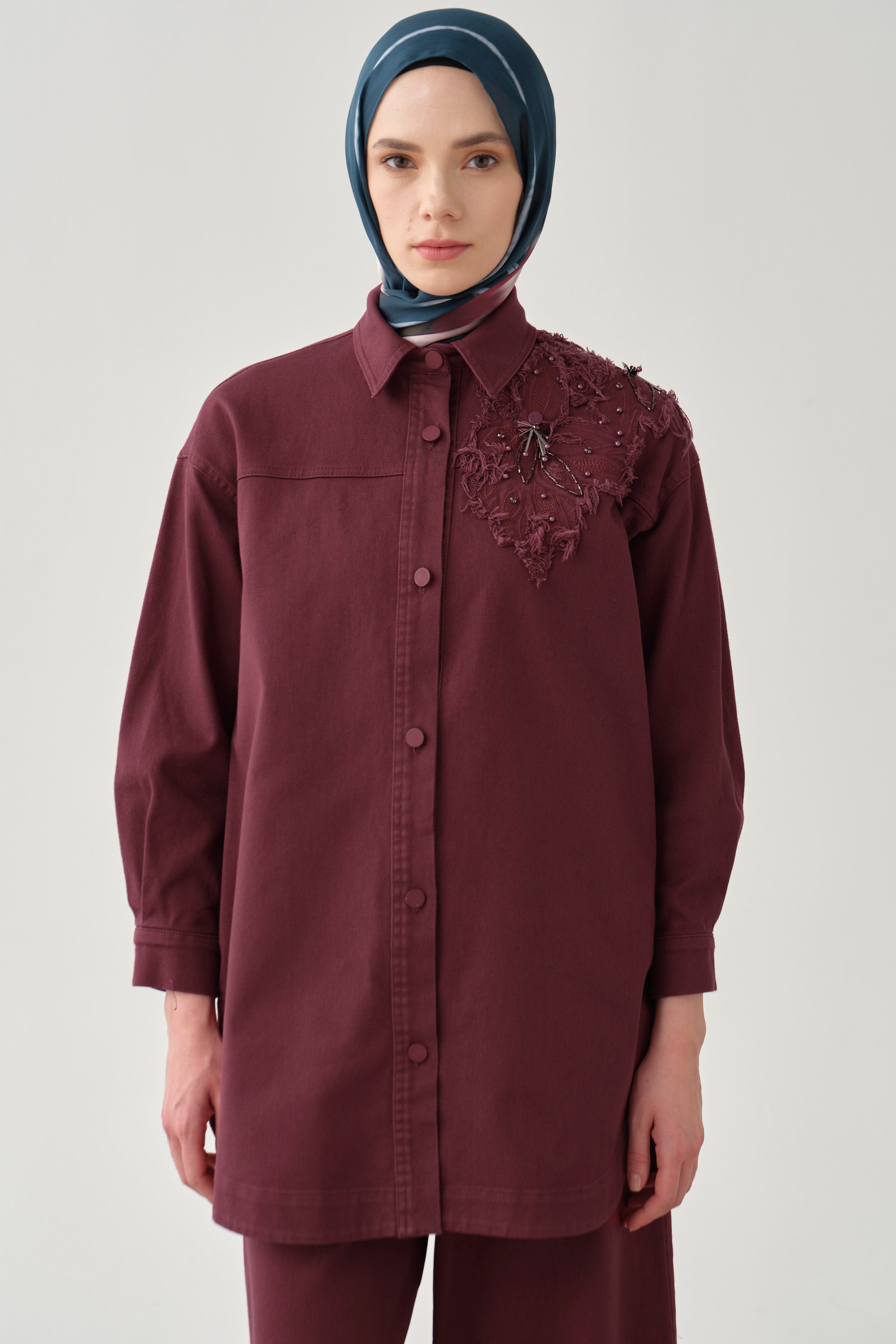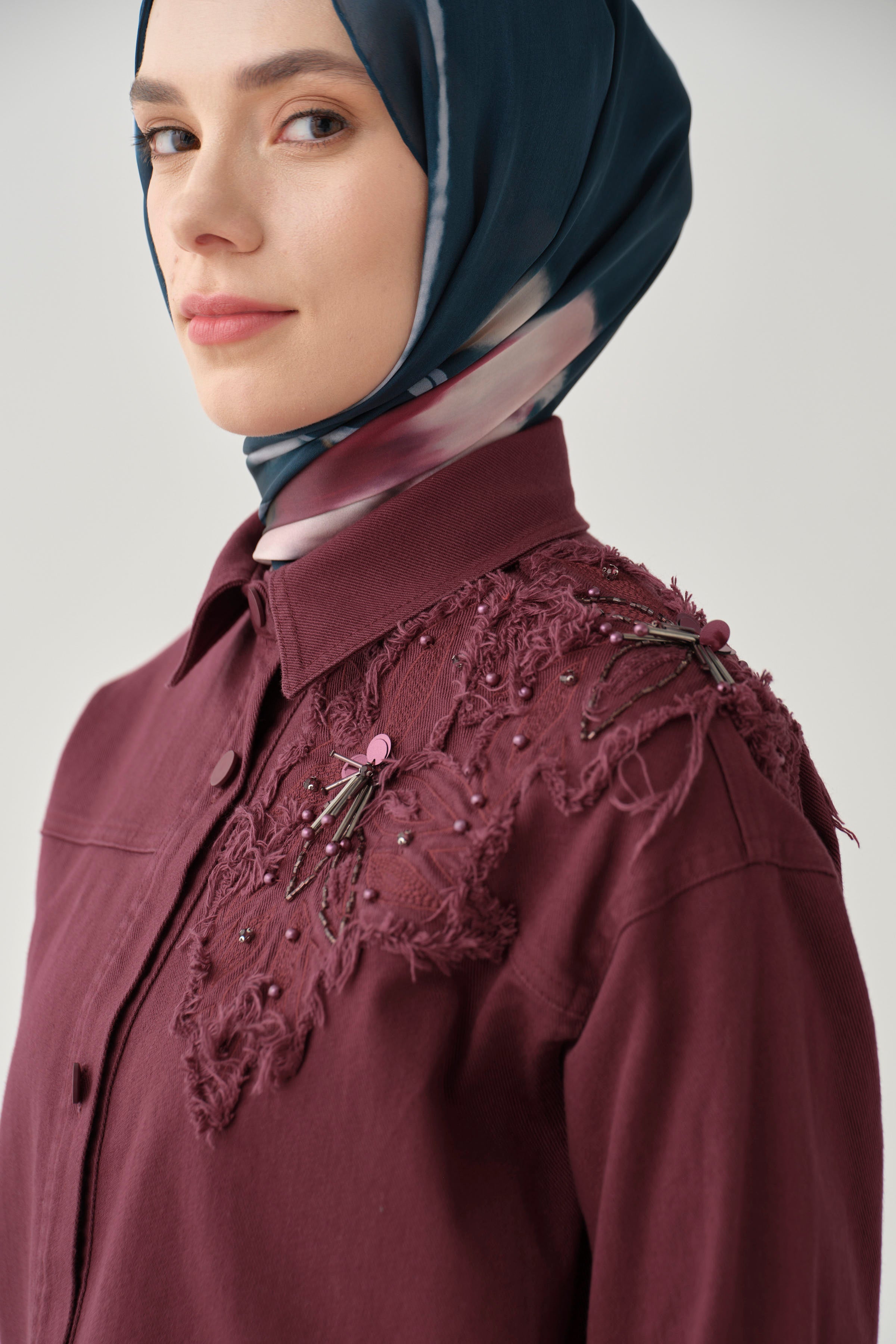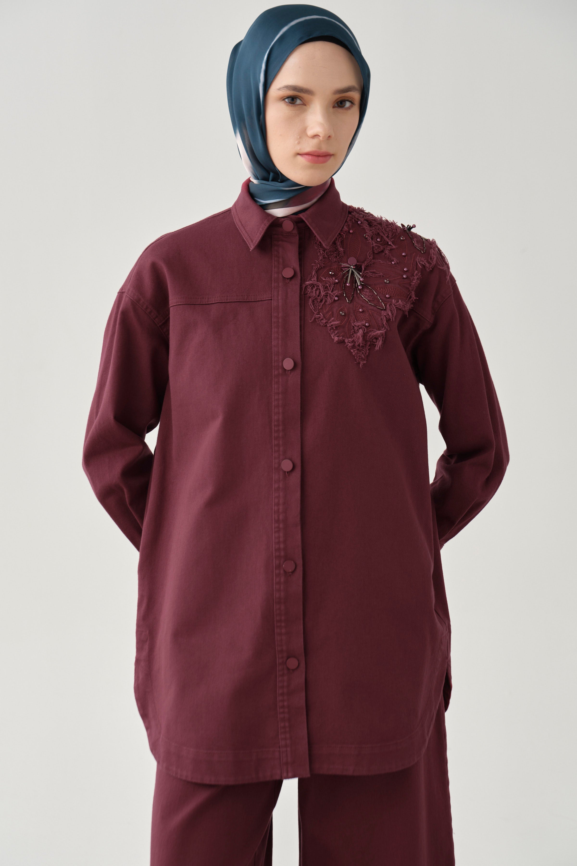 Veste crop matelassée avec passepoil en gros-grain - Cannelle