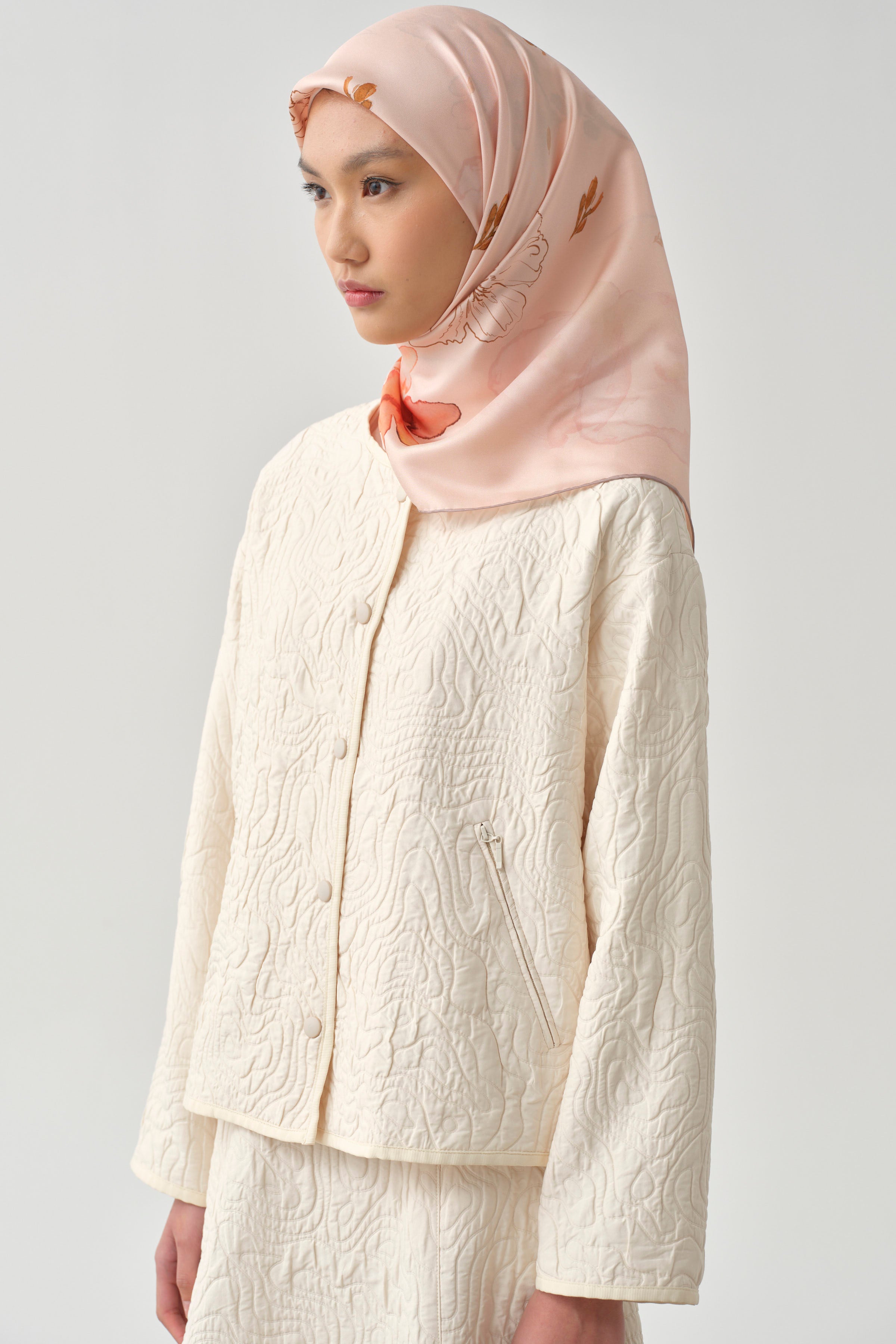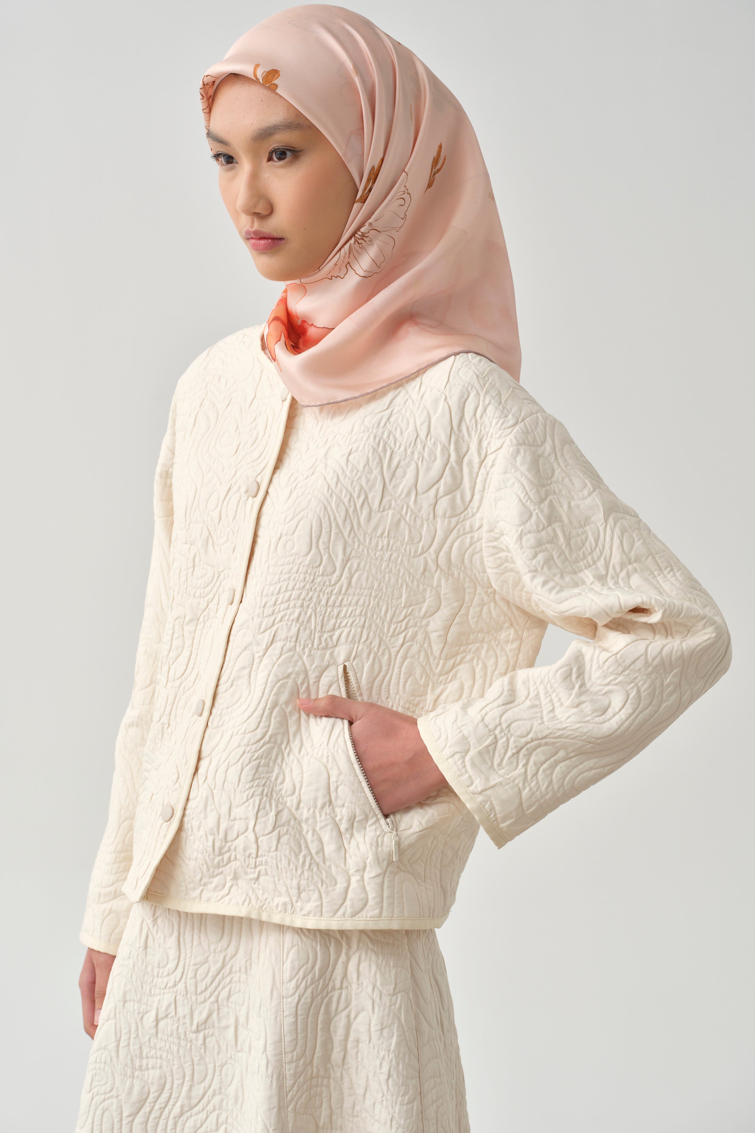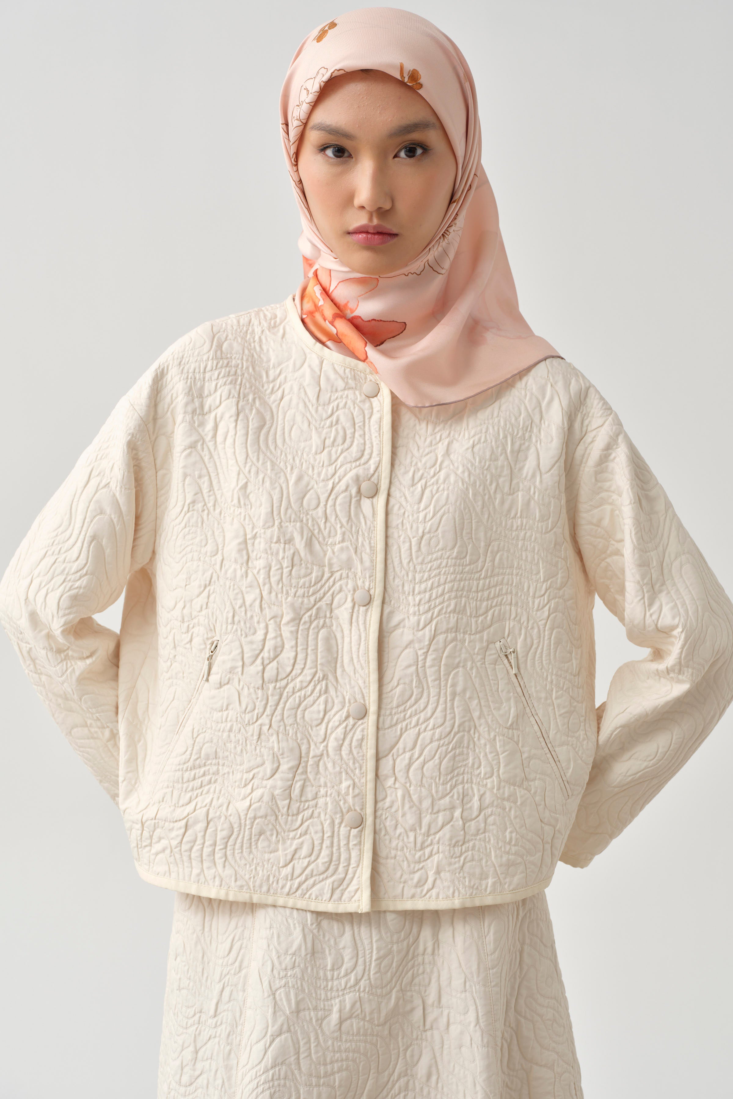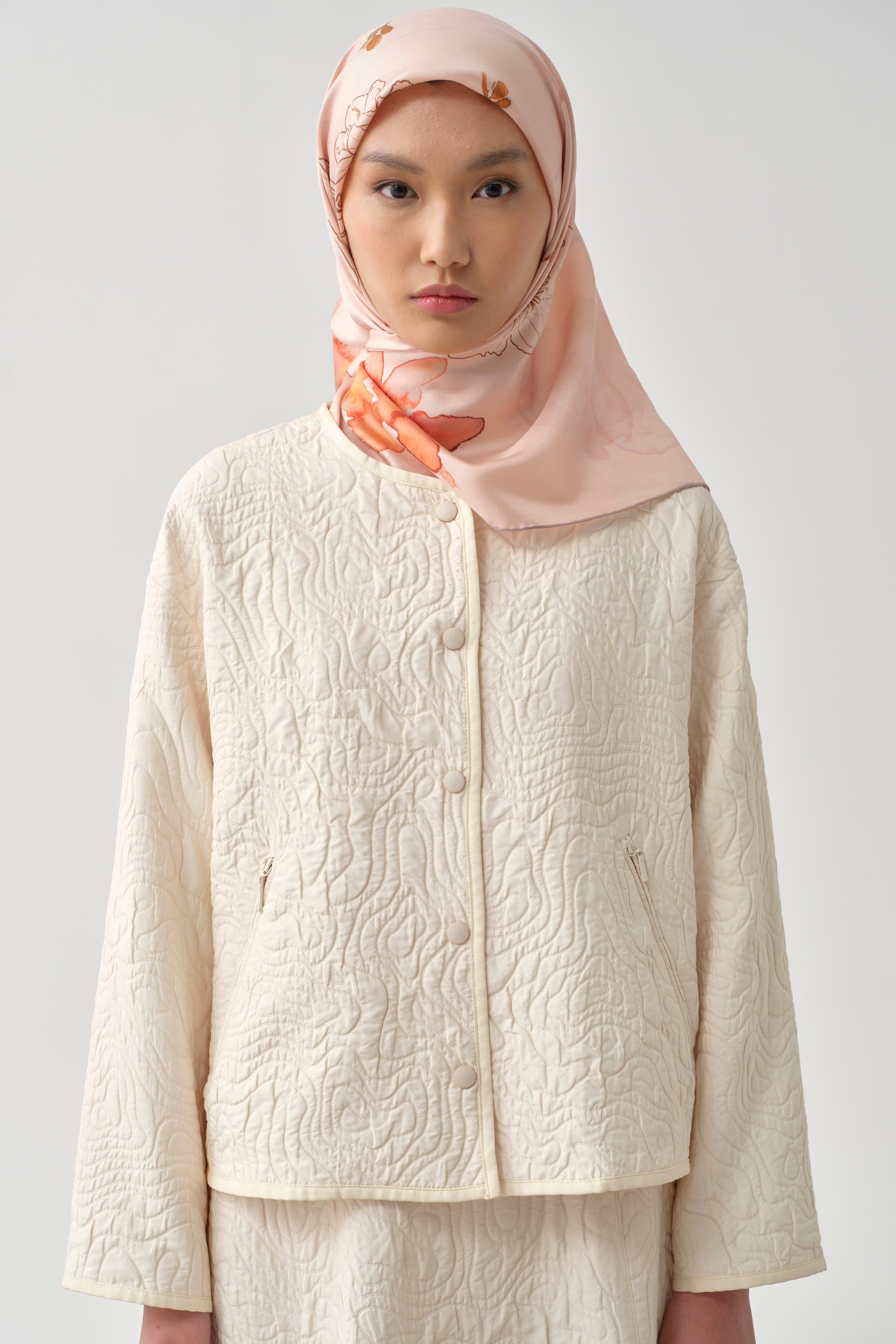 Veste crop matelassée avec passepoil en gros-grain - Écru