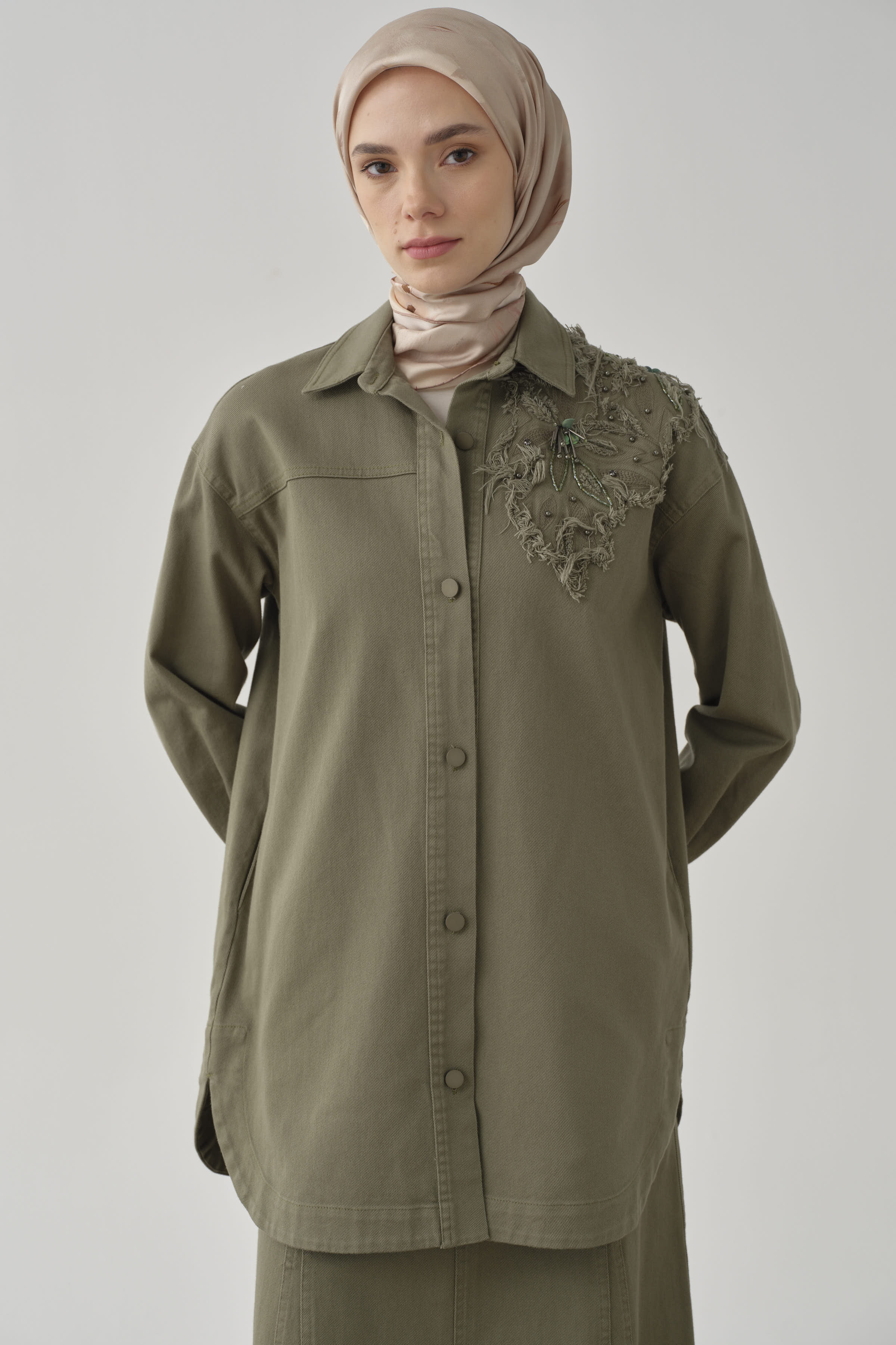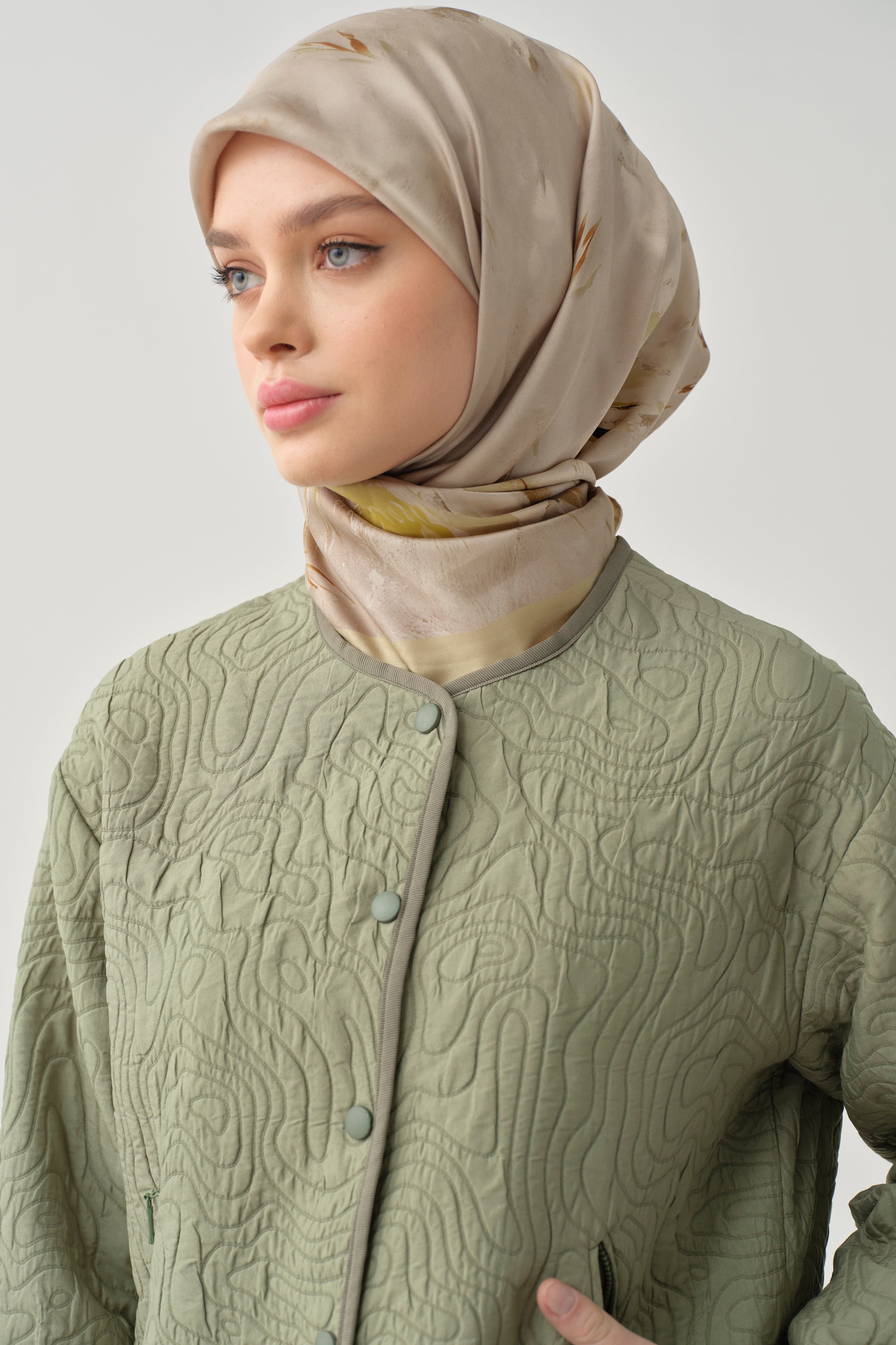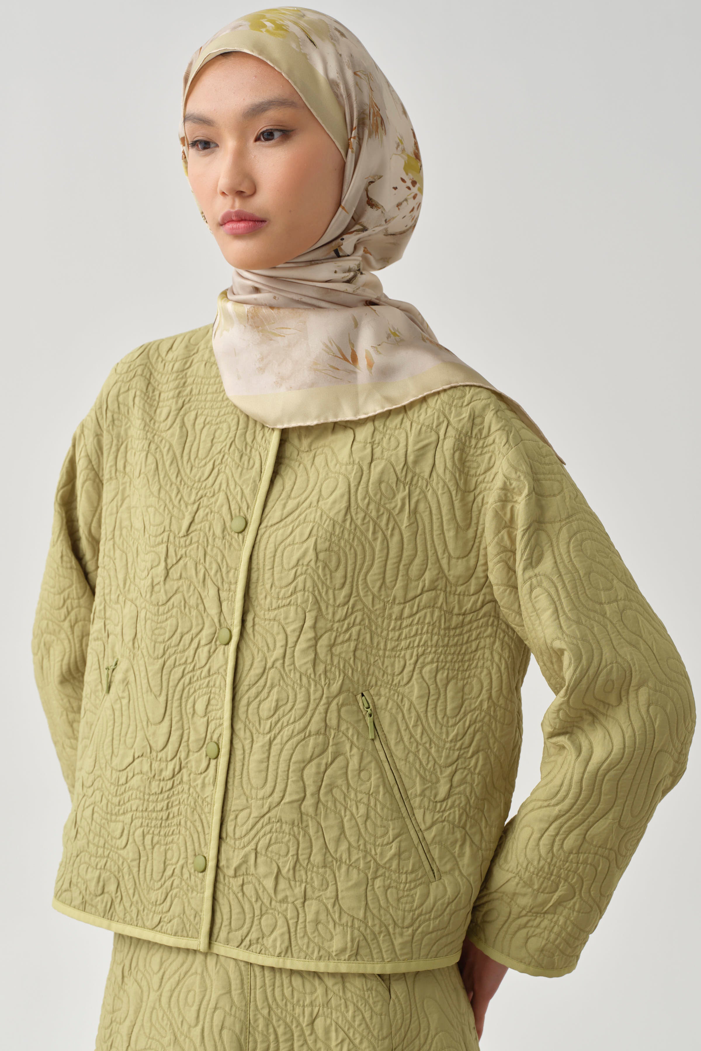 Veste crop matelassée avec passepoil en gros-grain - Olive