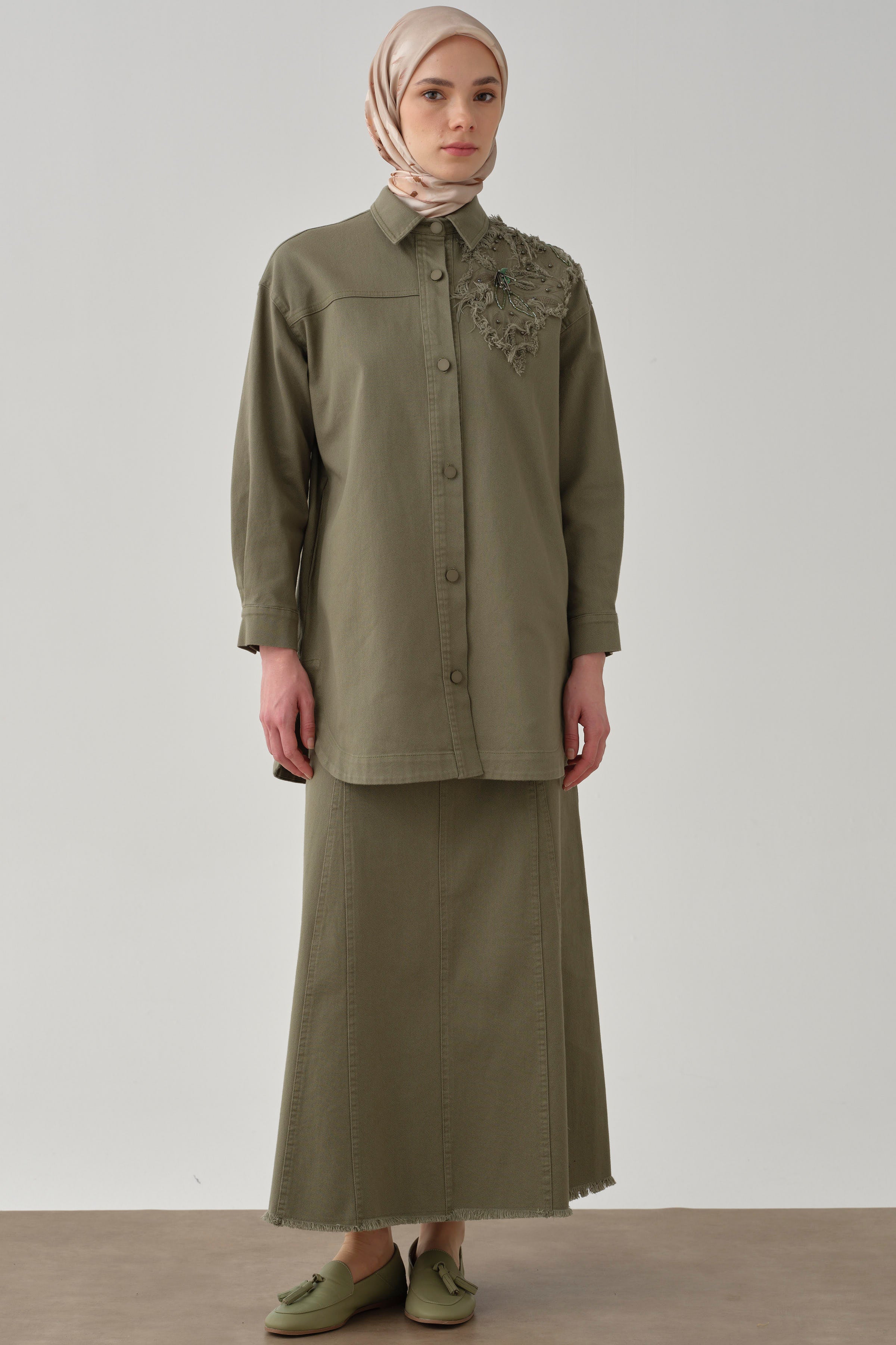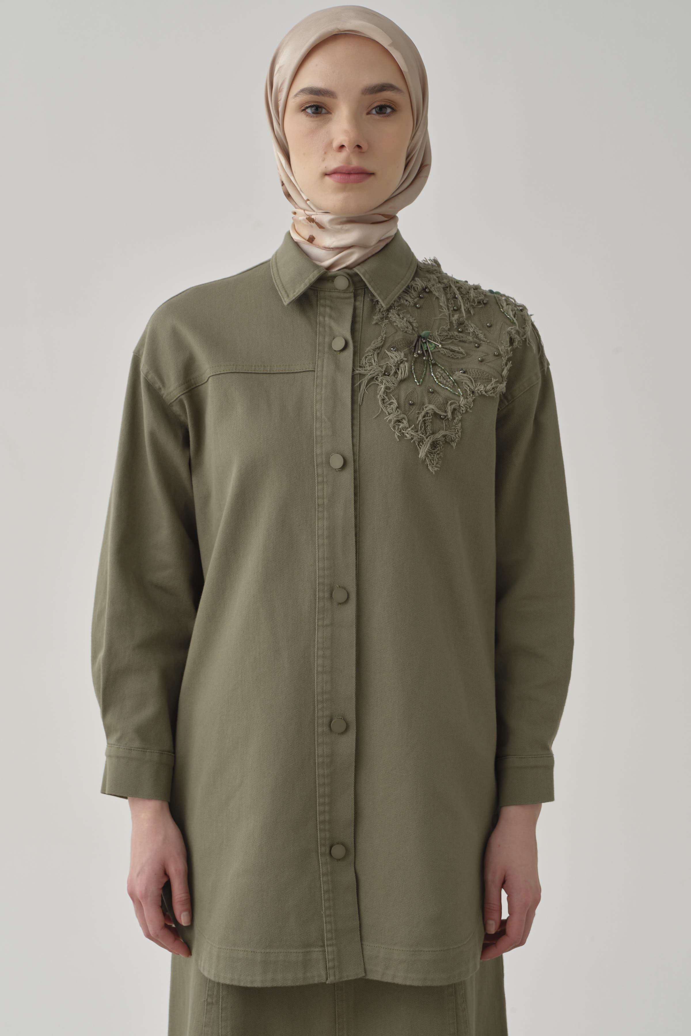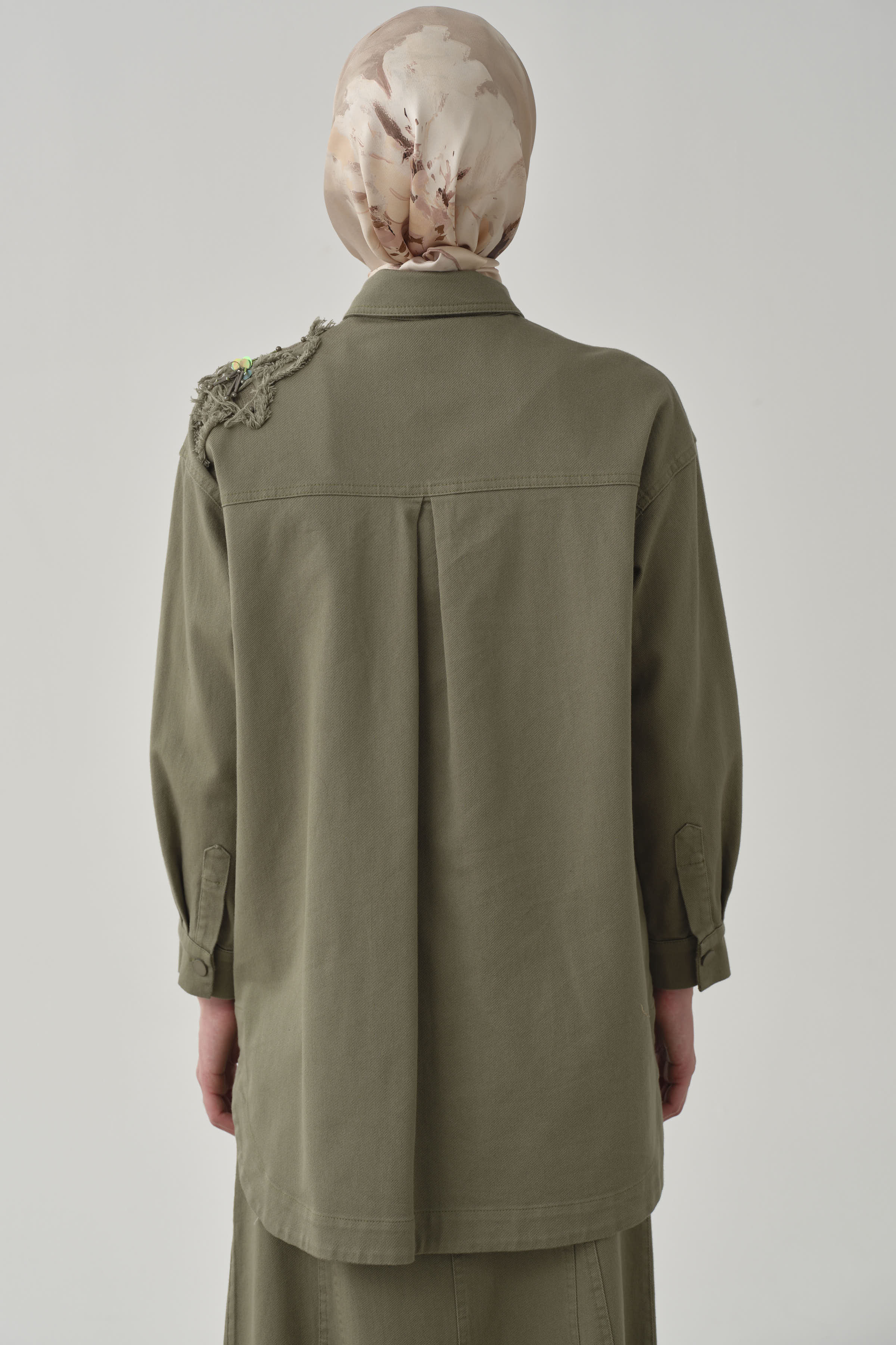 Veste crop matelassée avec passepoil en gros-grain - Olive