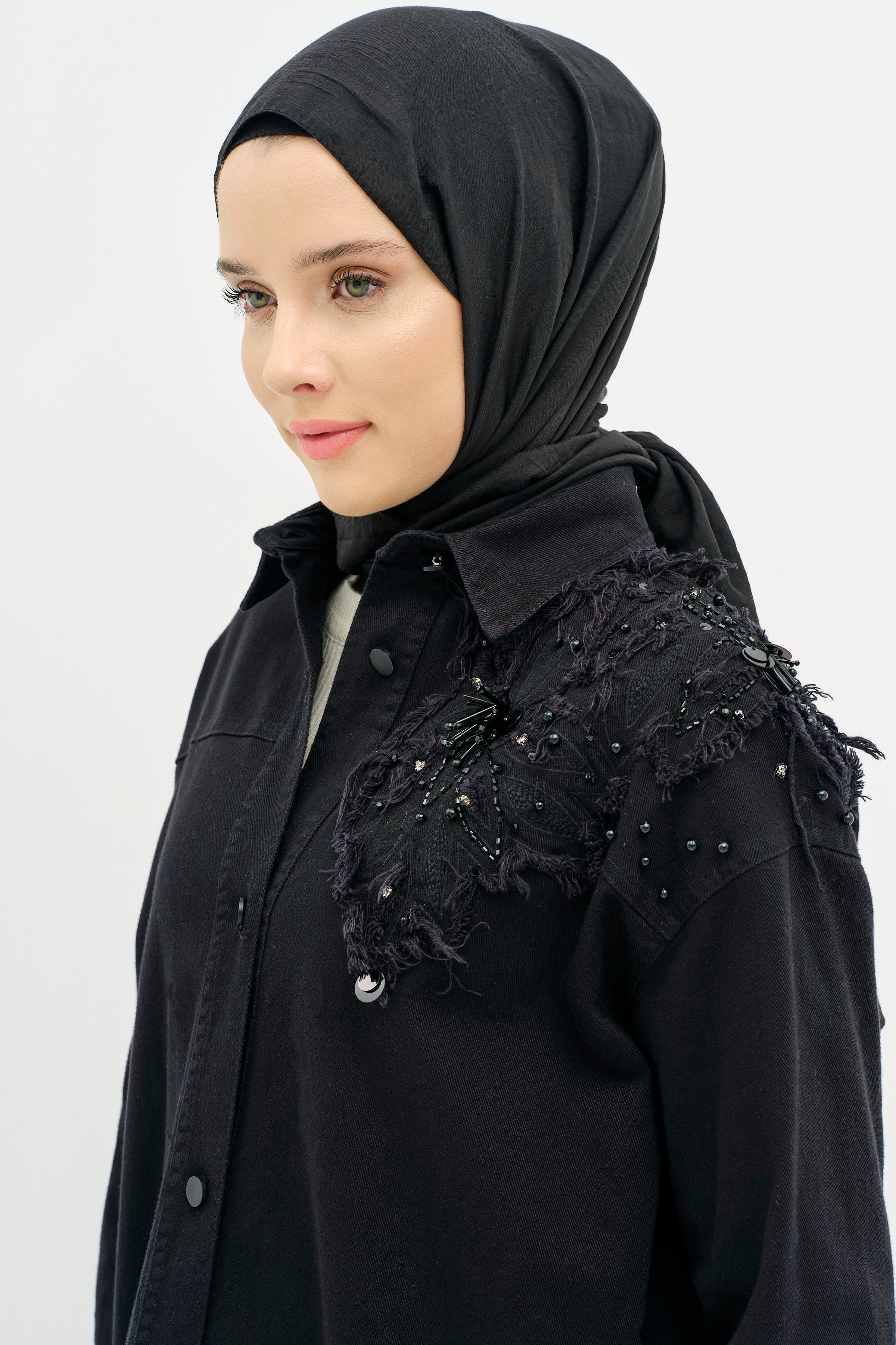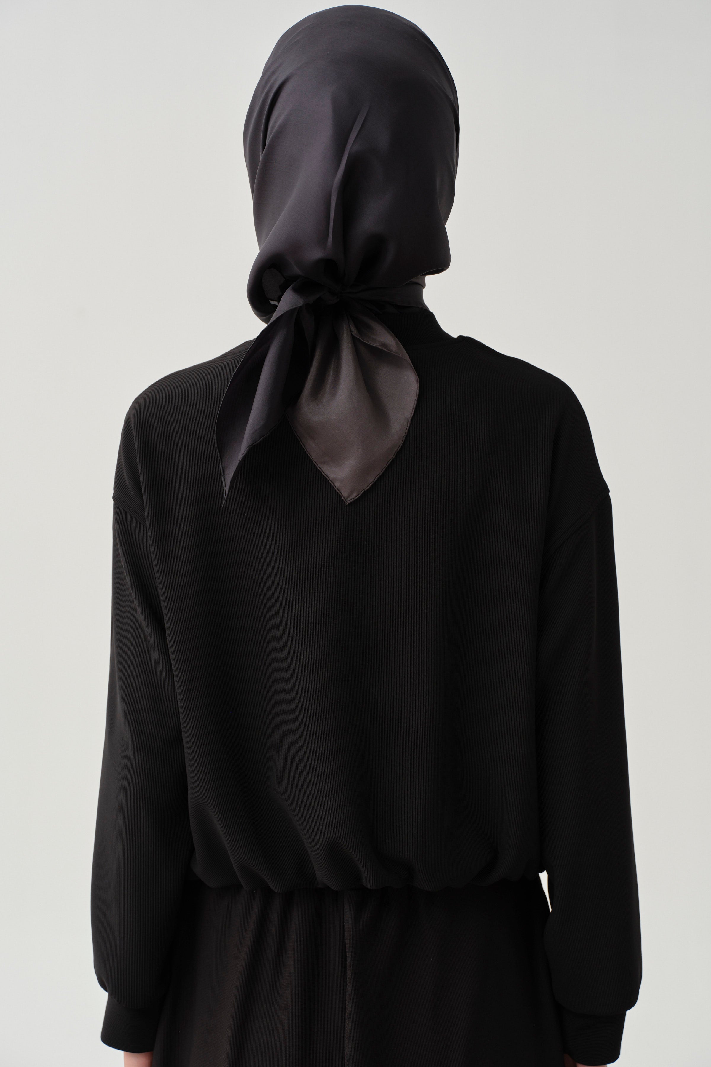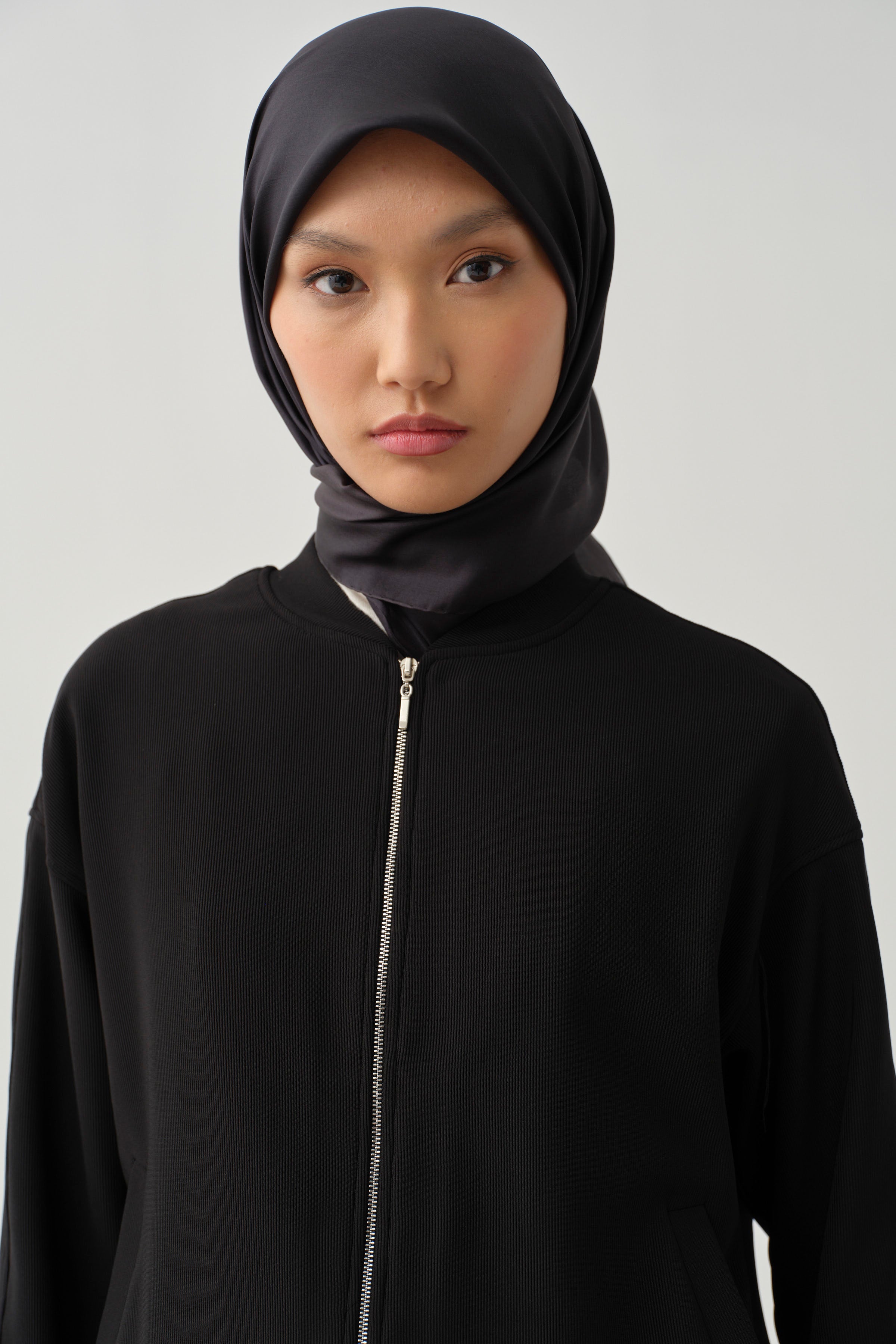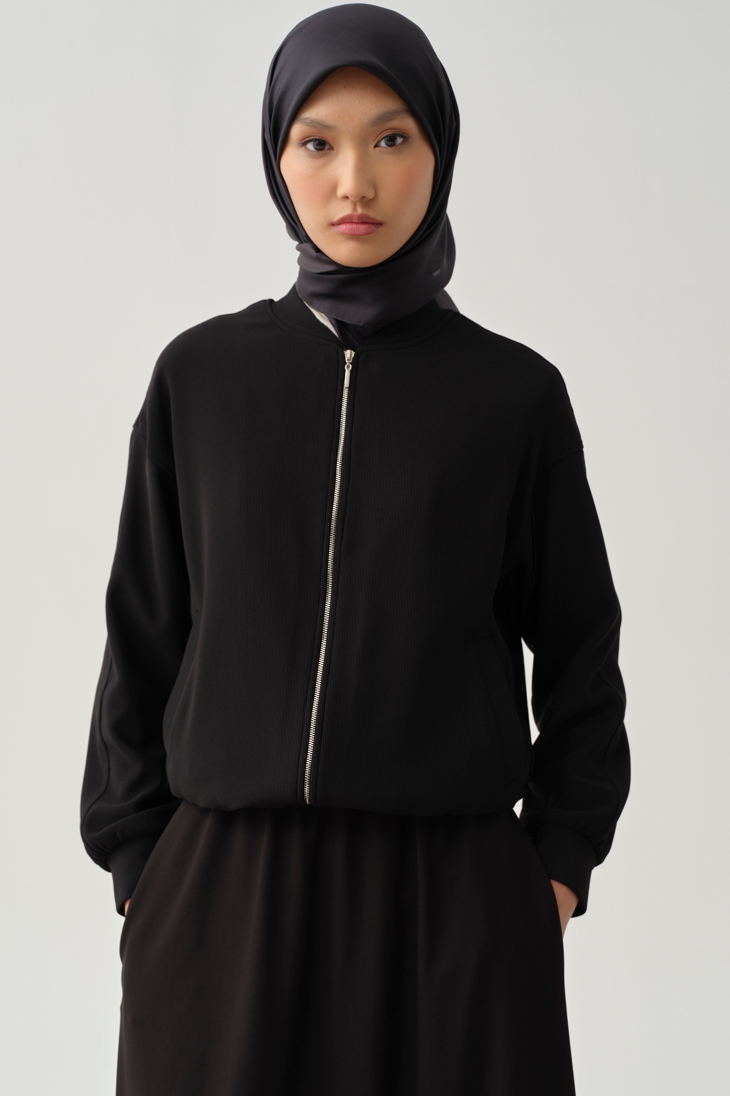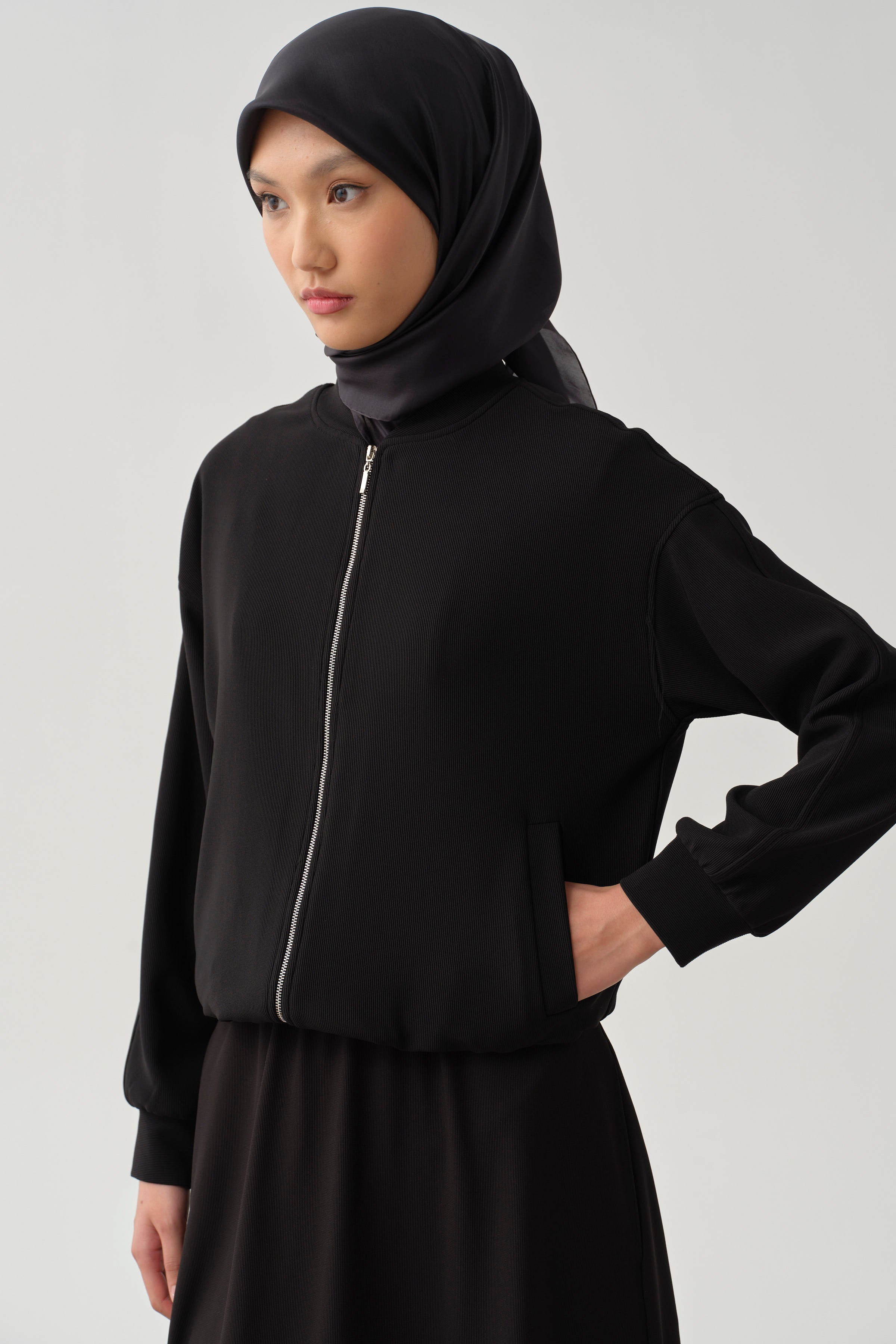 Veste en maille à col aviateur avec finitions élastiques - Noir