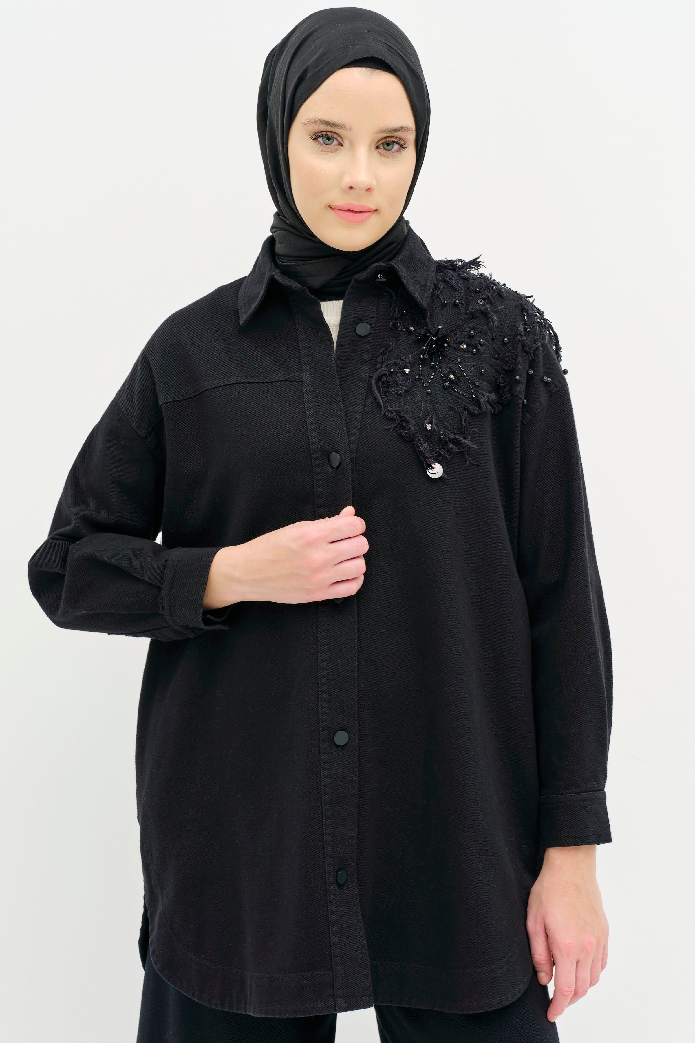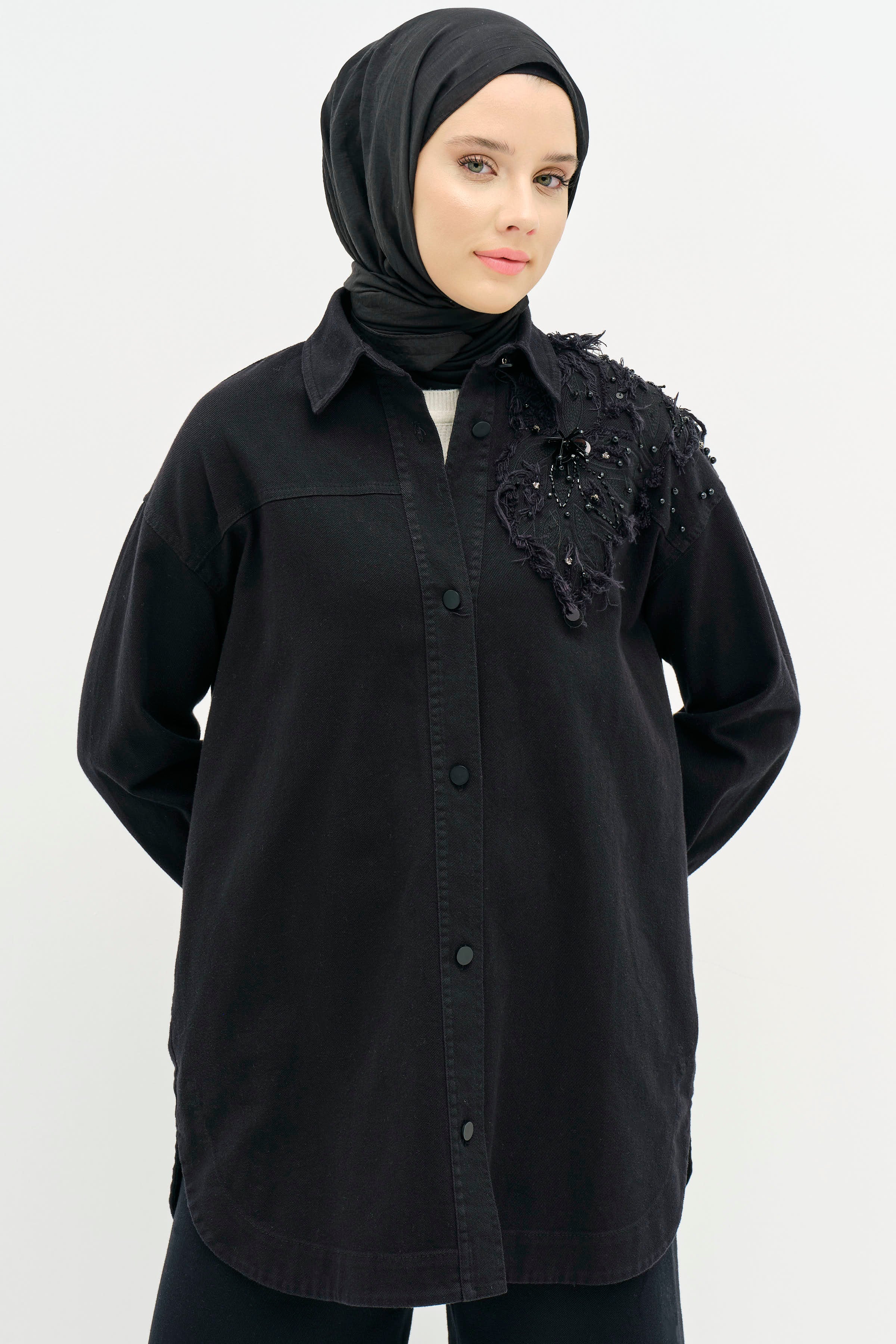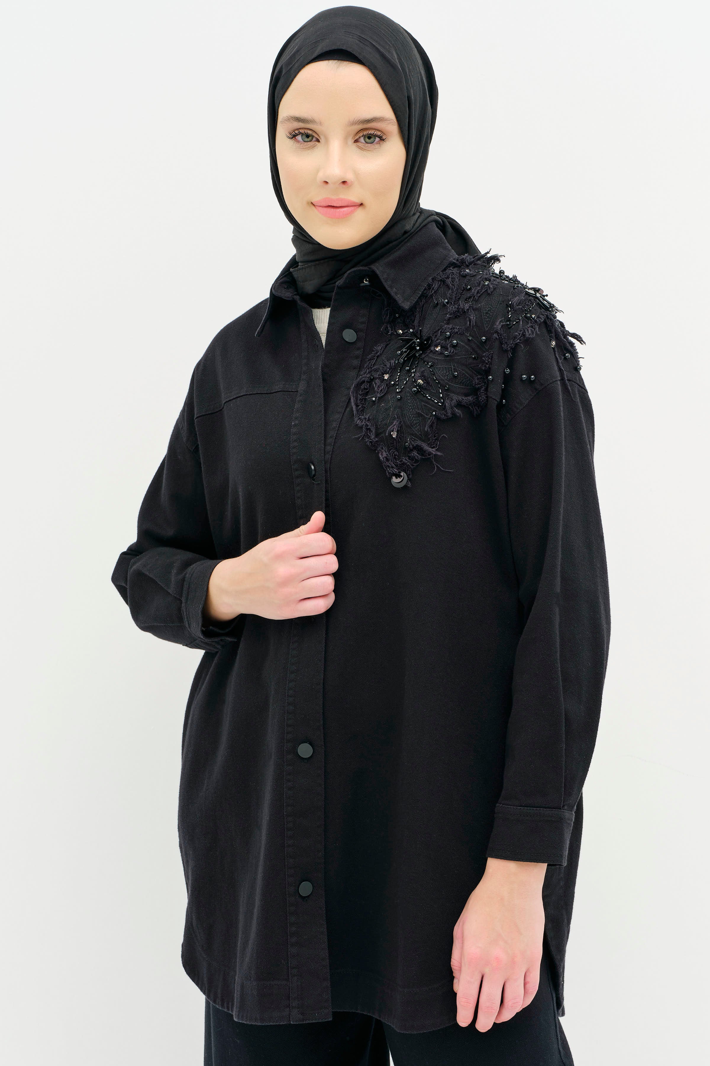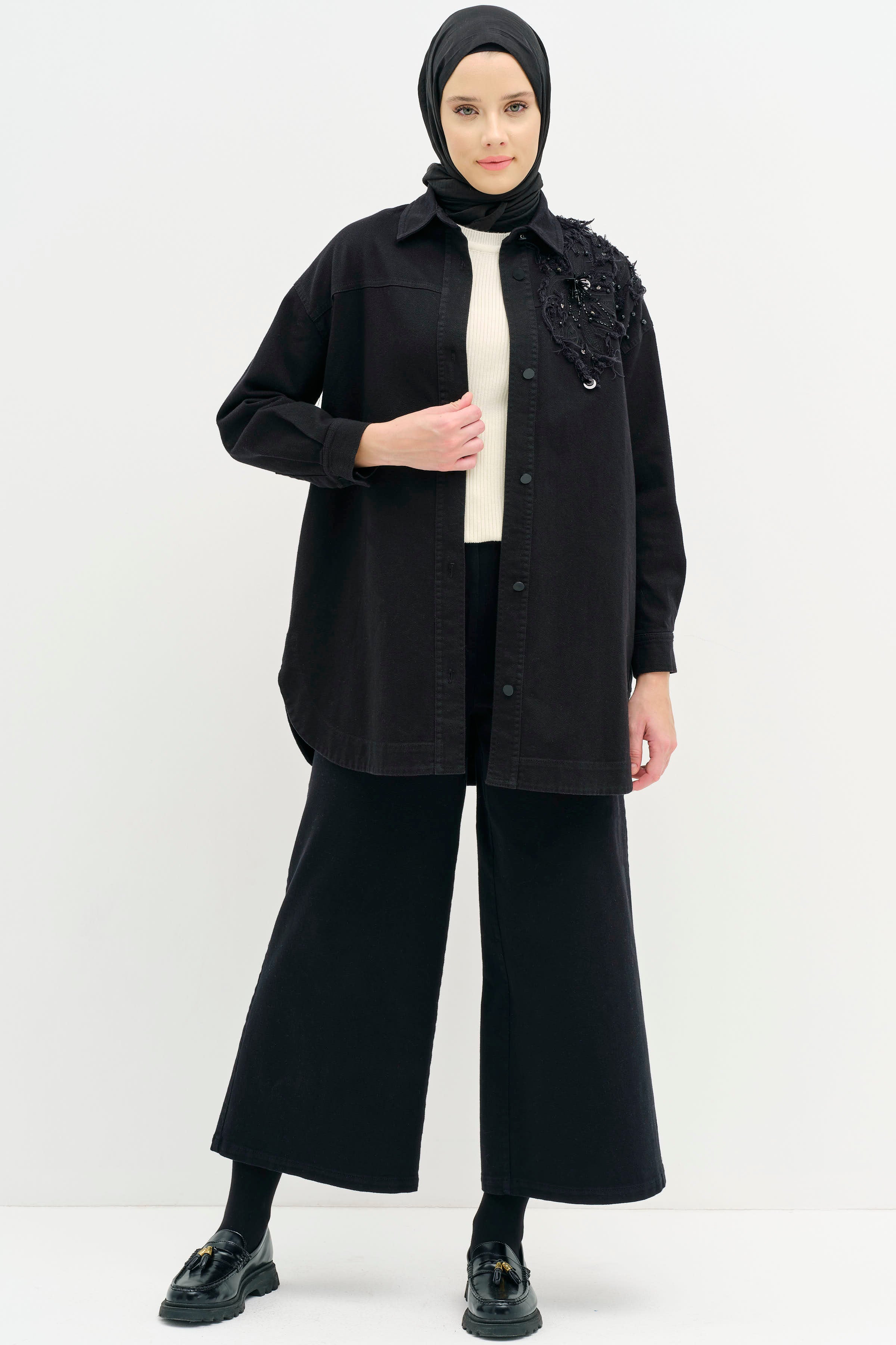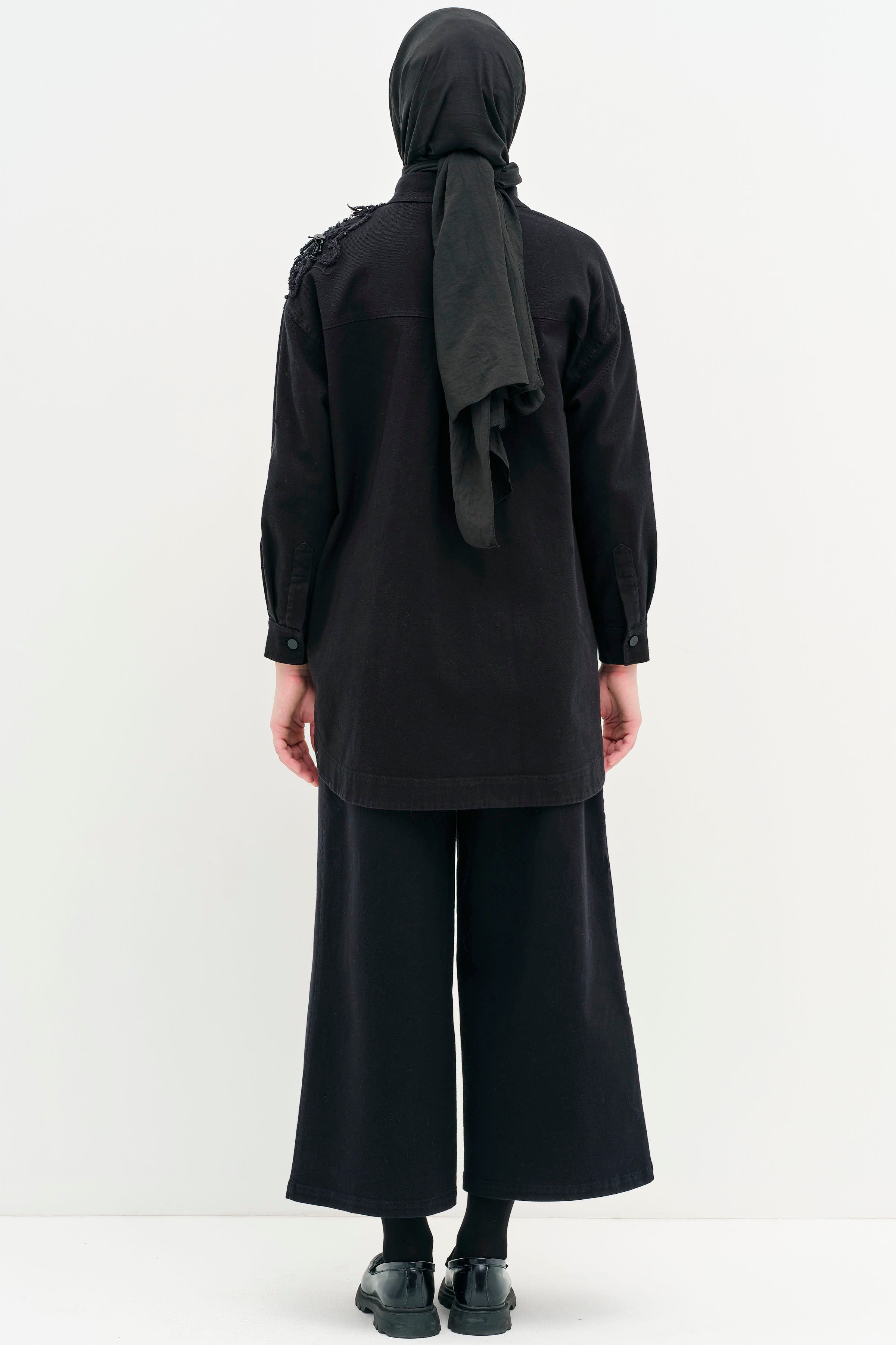 Veste en maille à col aviateur avec finitions élastiques - Noir