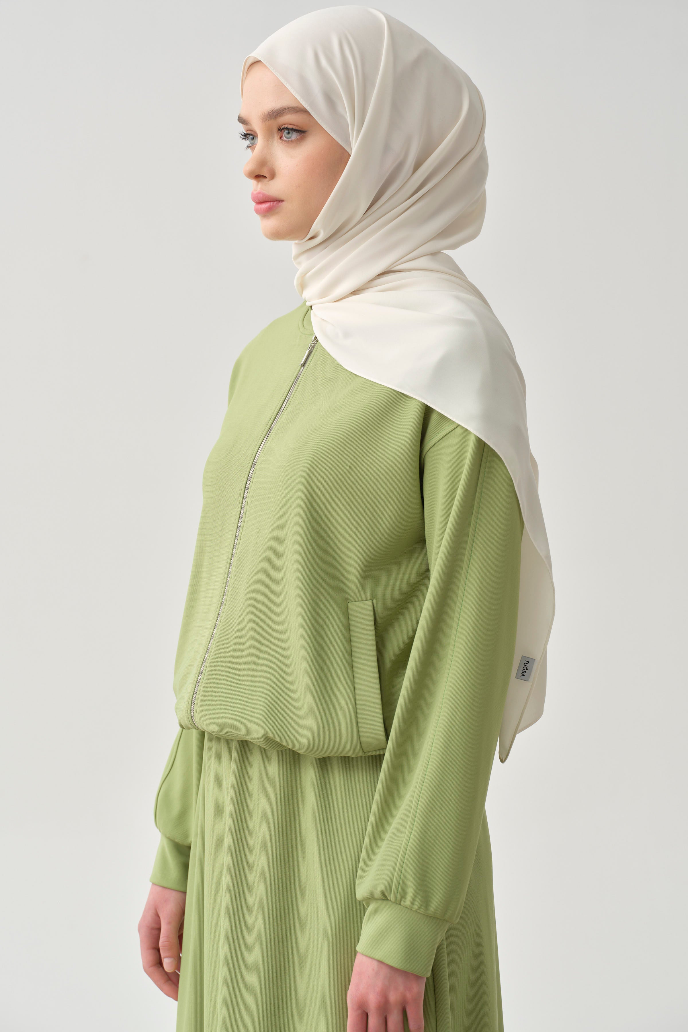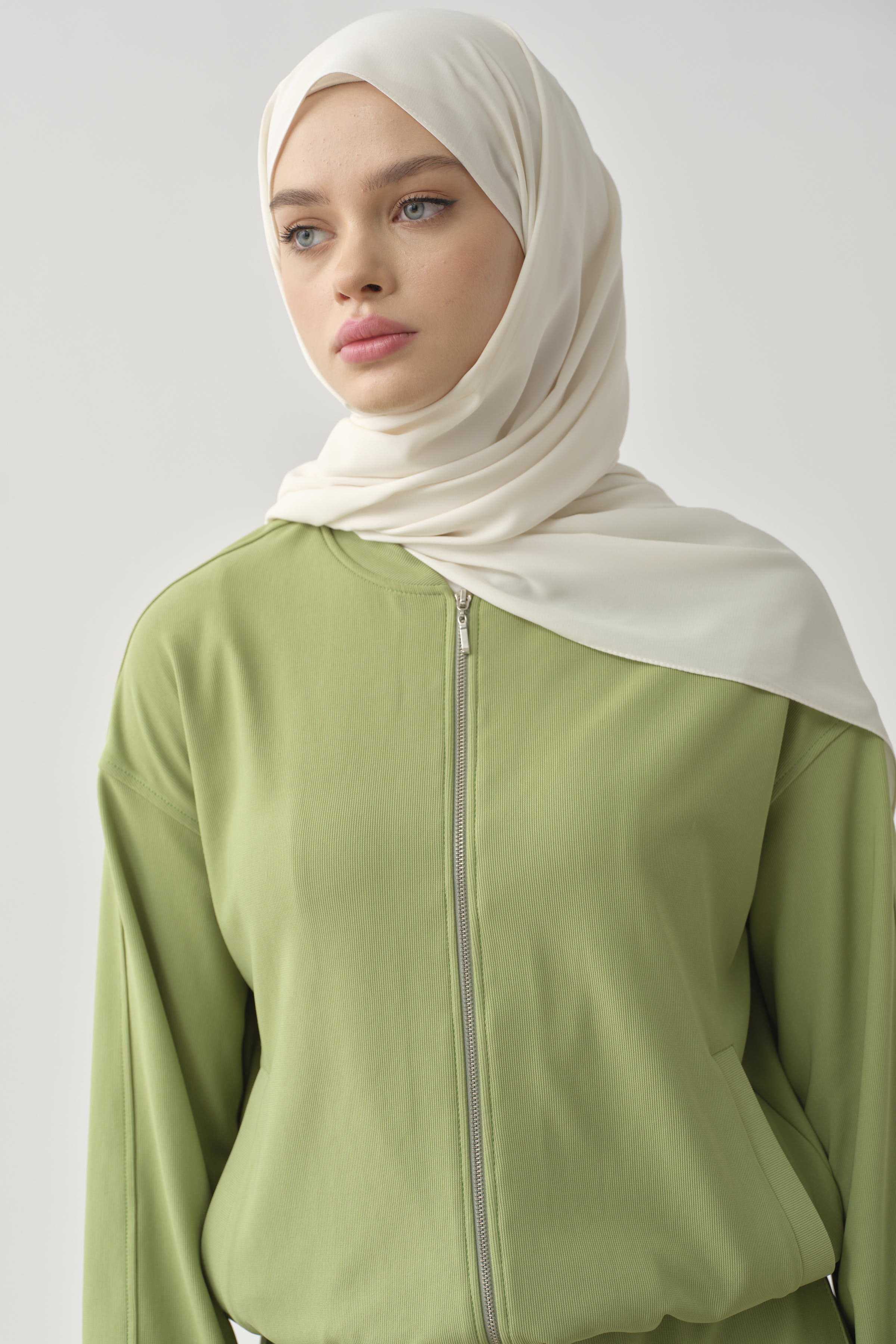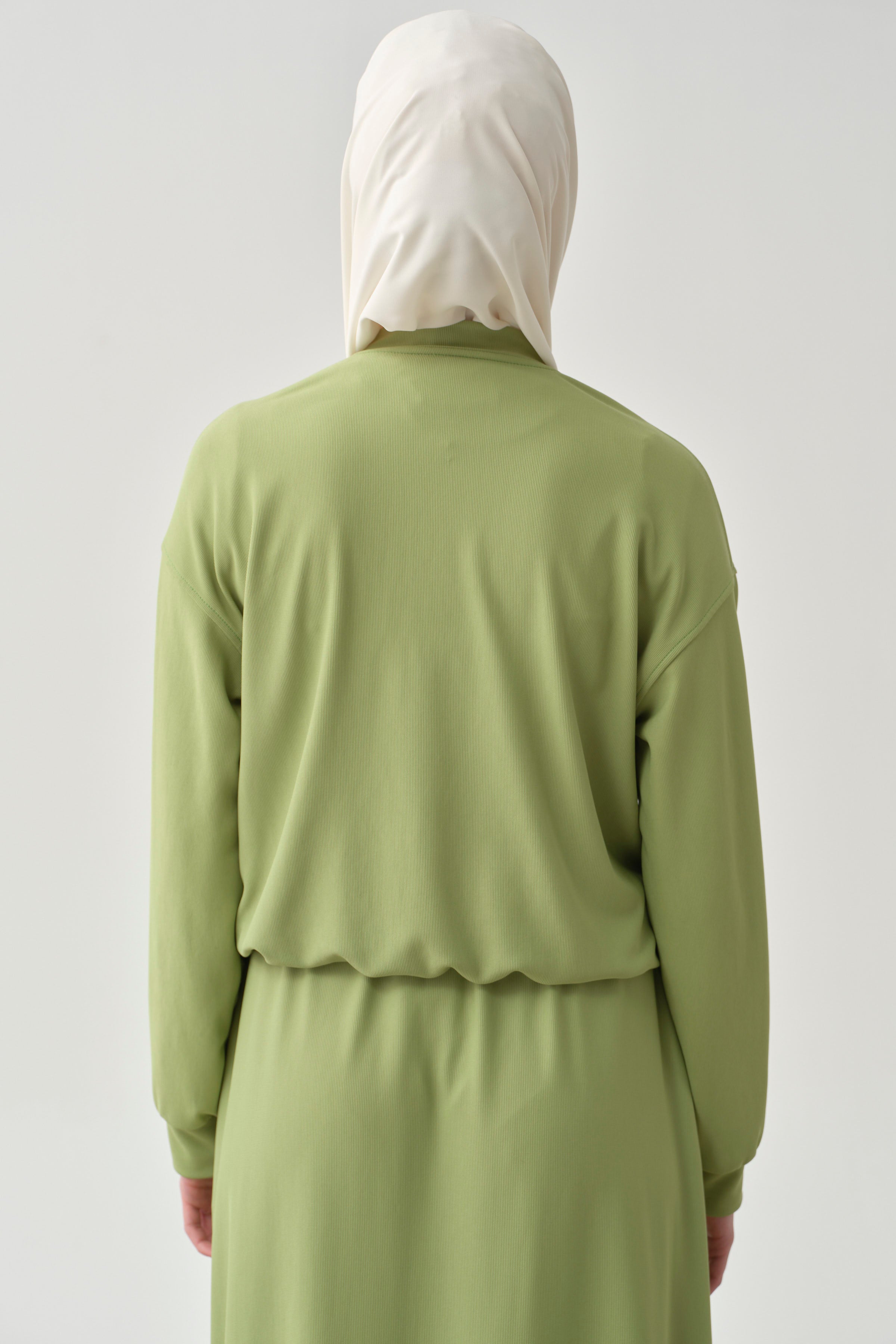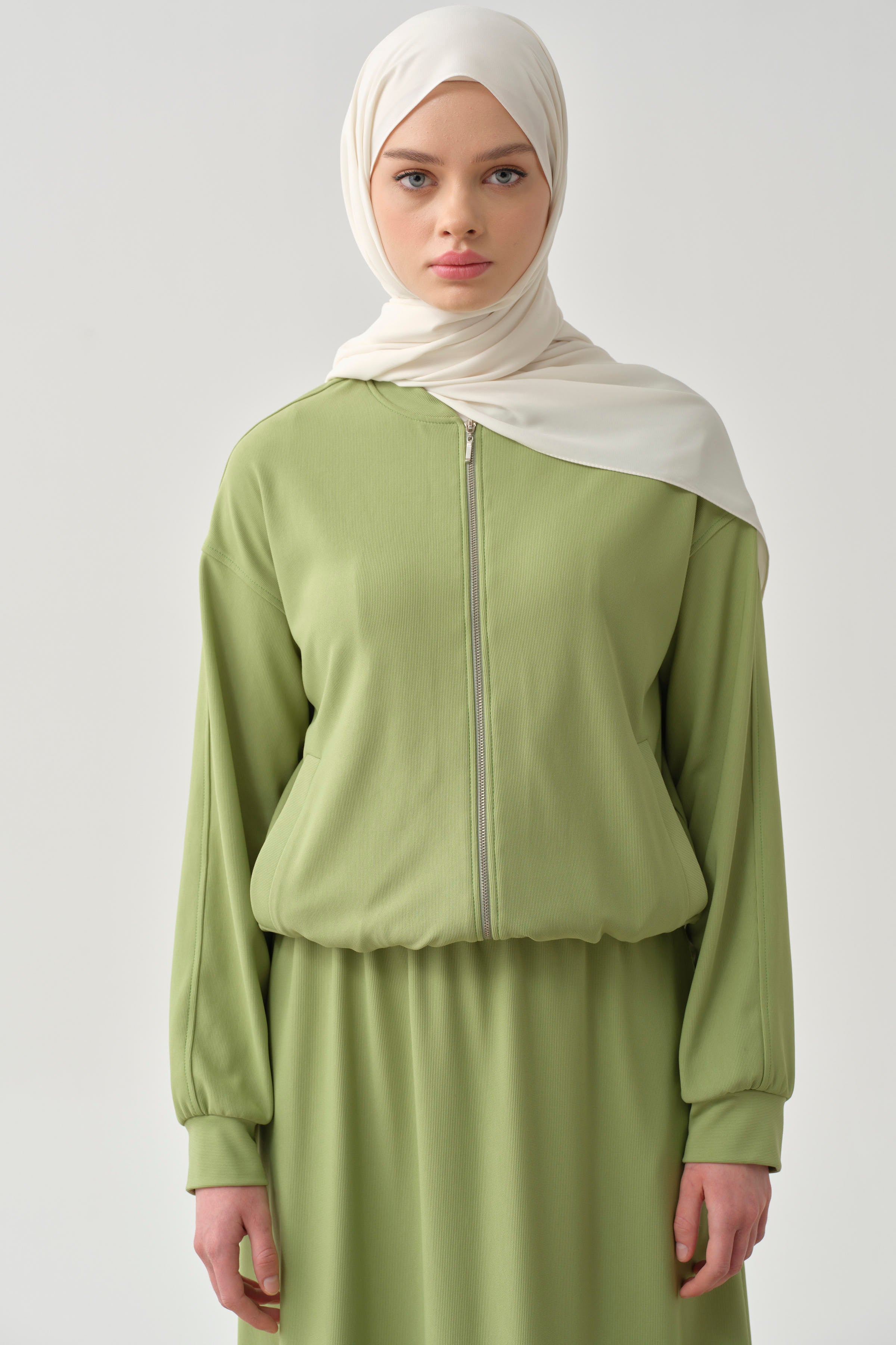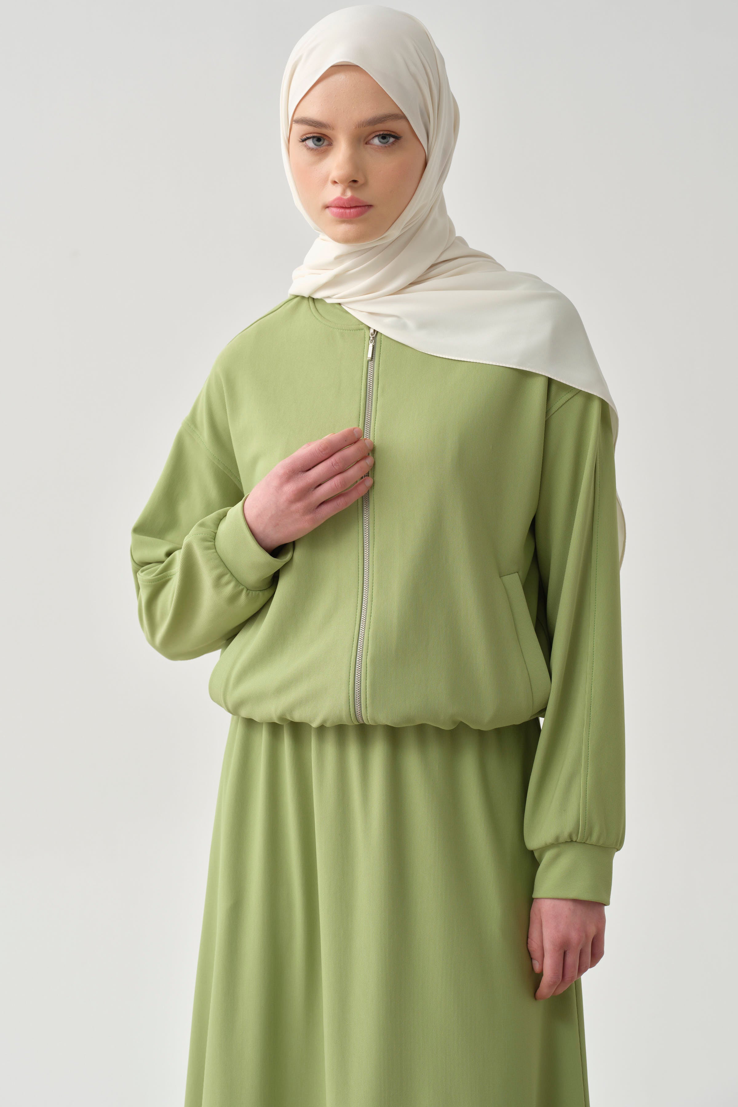 Veste en maille à col aviateur avec finitions élastiques - Vert pistache
